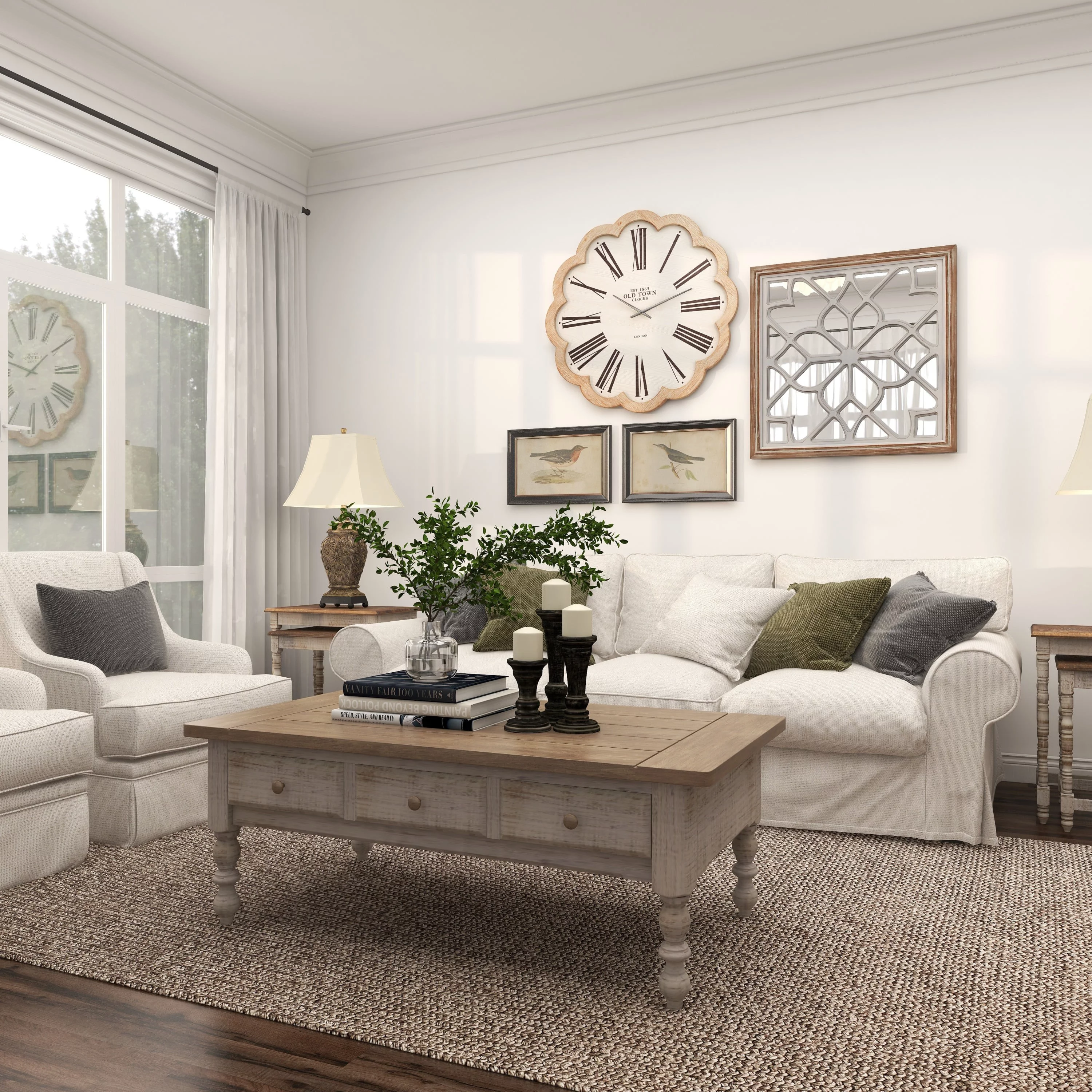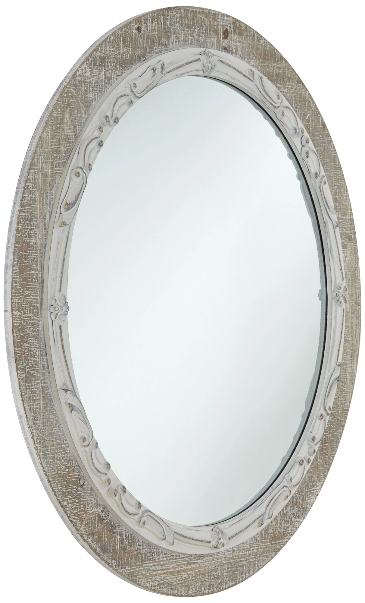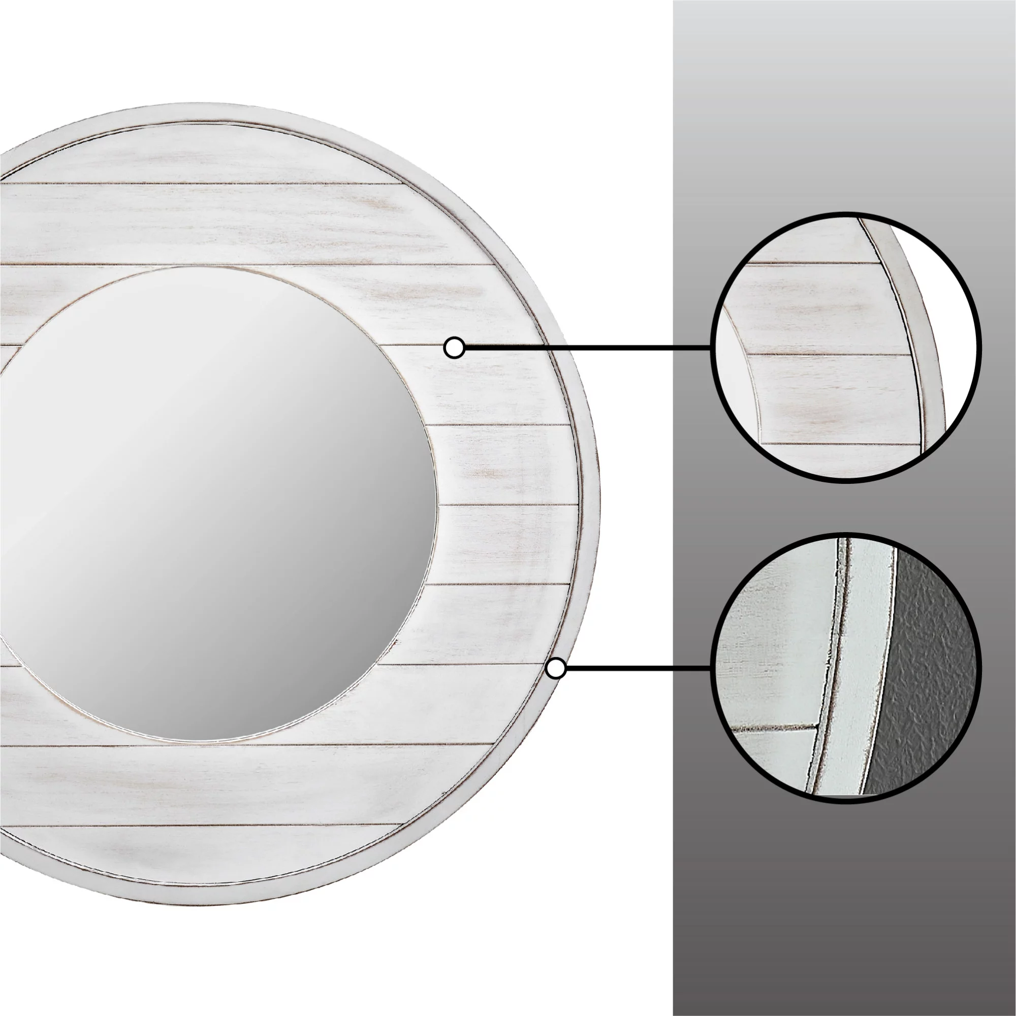 FirsTime & Co. White Ellison Shiplap Wall Mirror, Farmhouse, Round, 27 x 0.5 x 27 in