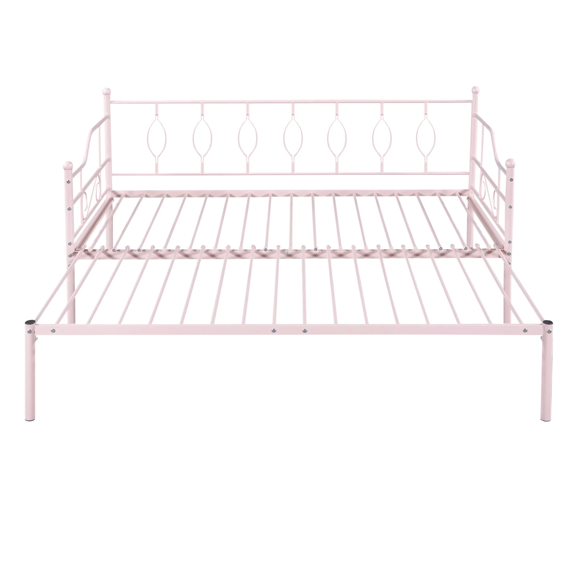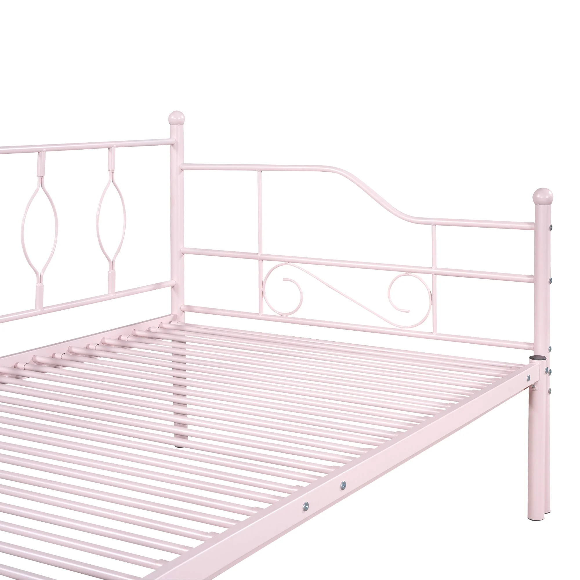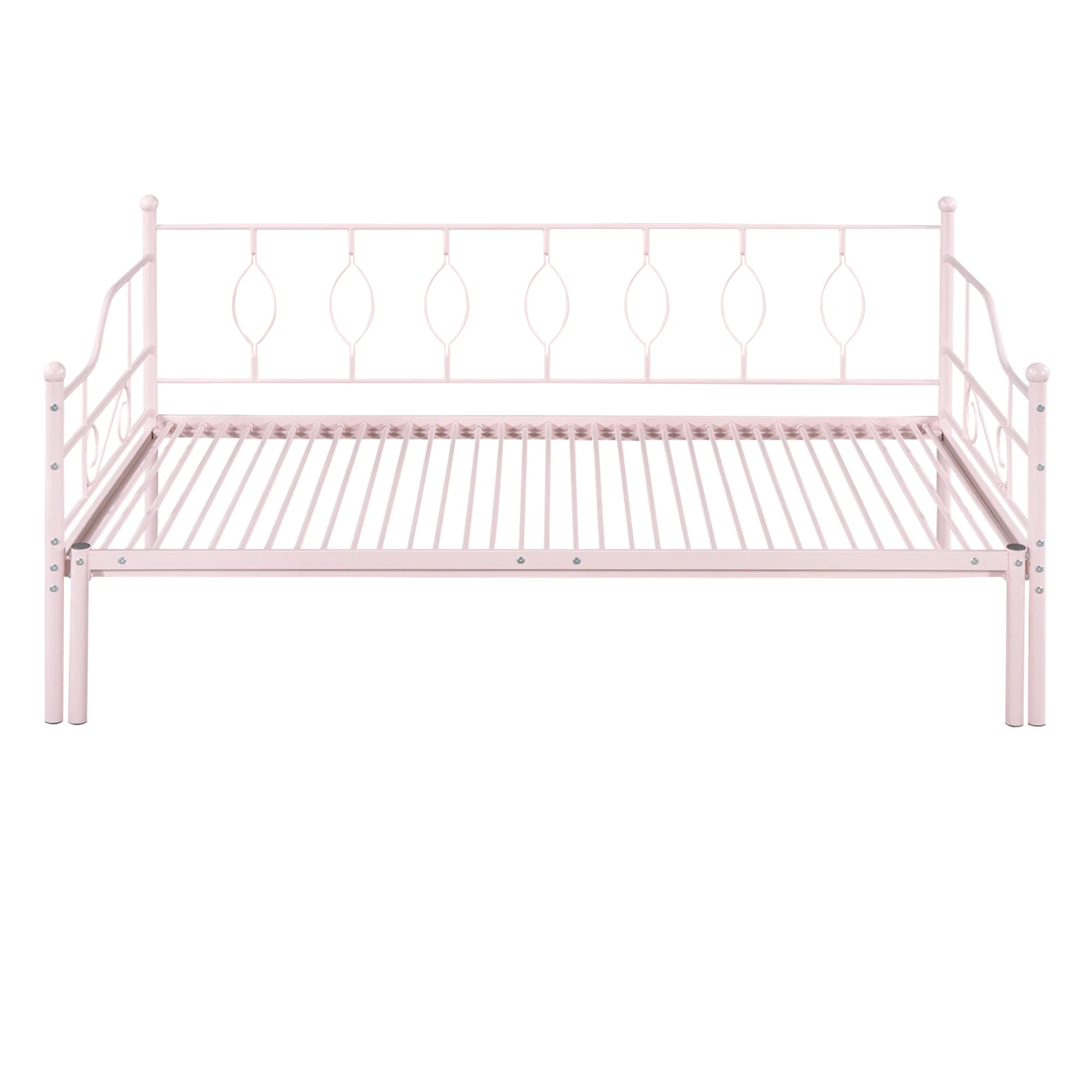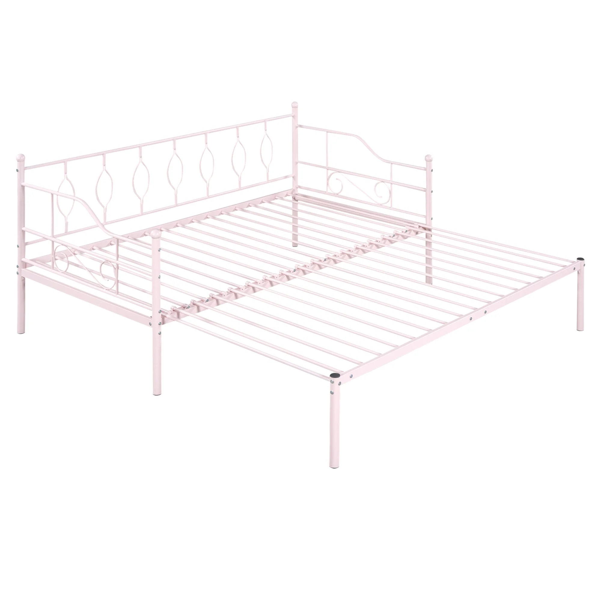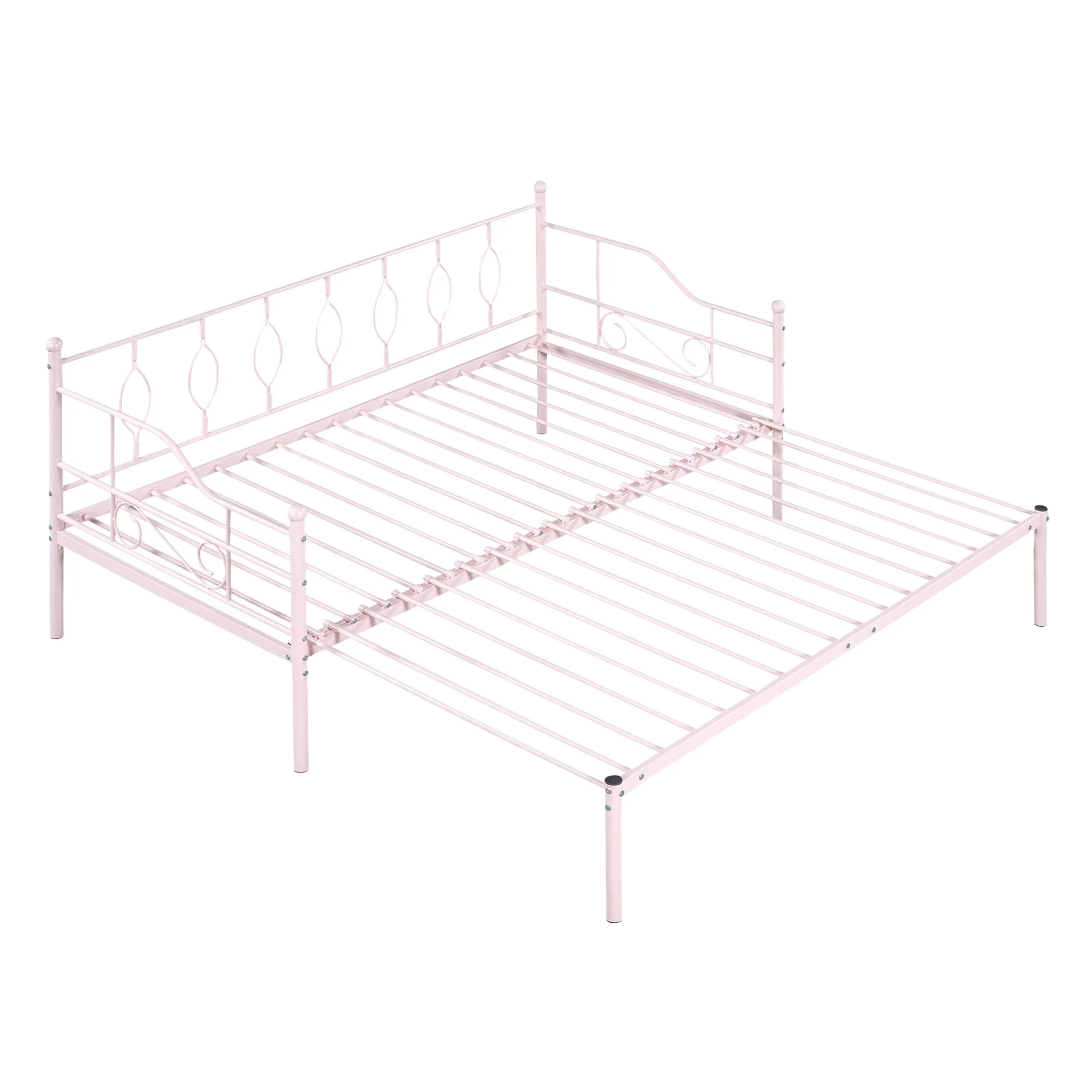 Twin Size Metal Daybed Equipped with Armrest and Backrest with Trundle Metal Support White