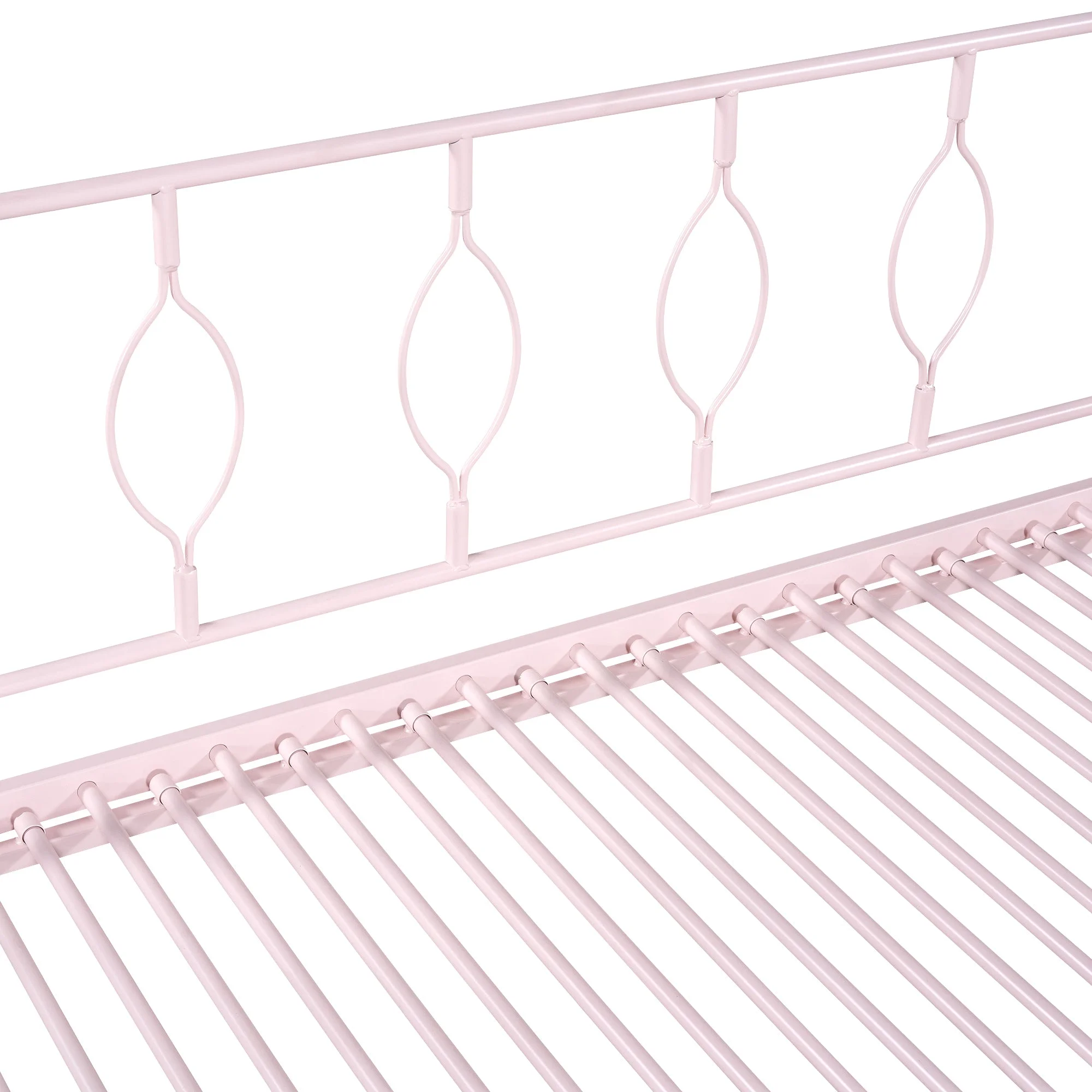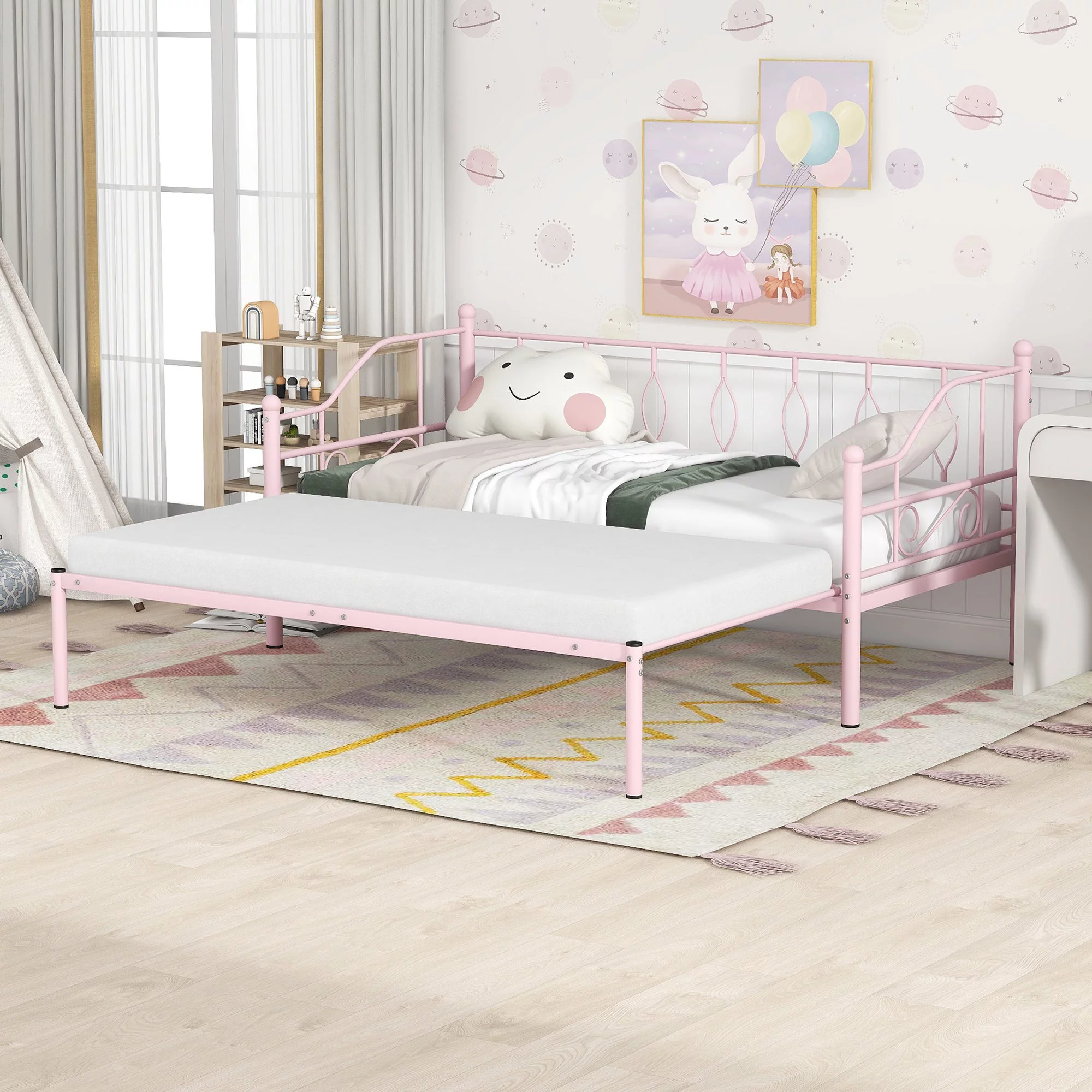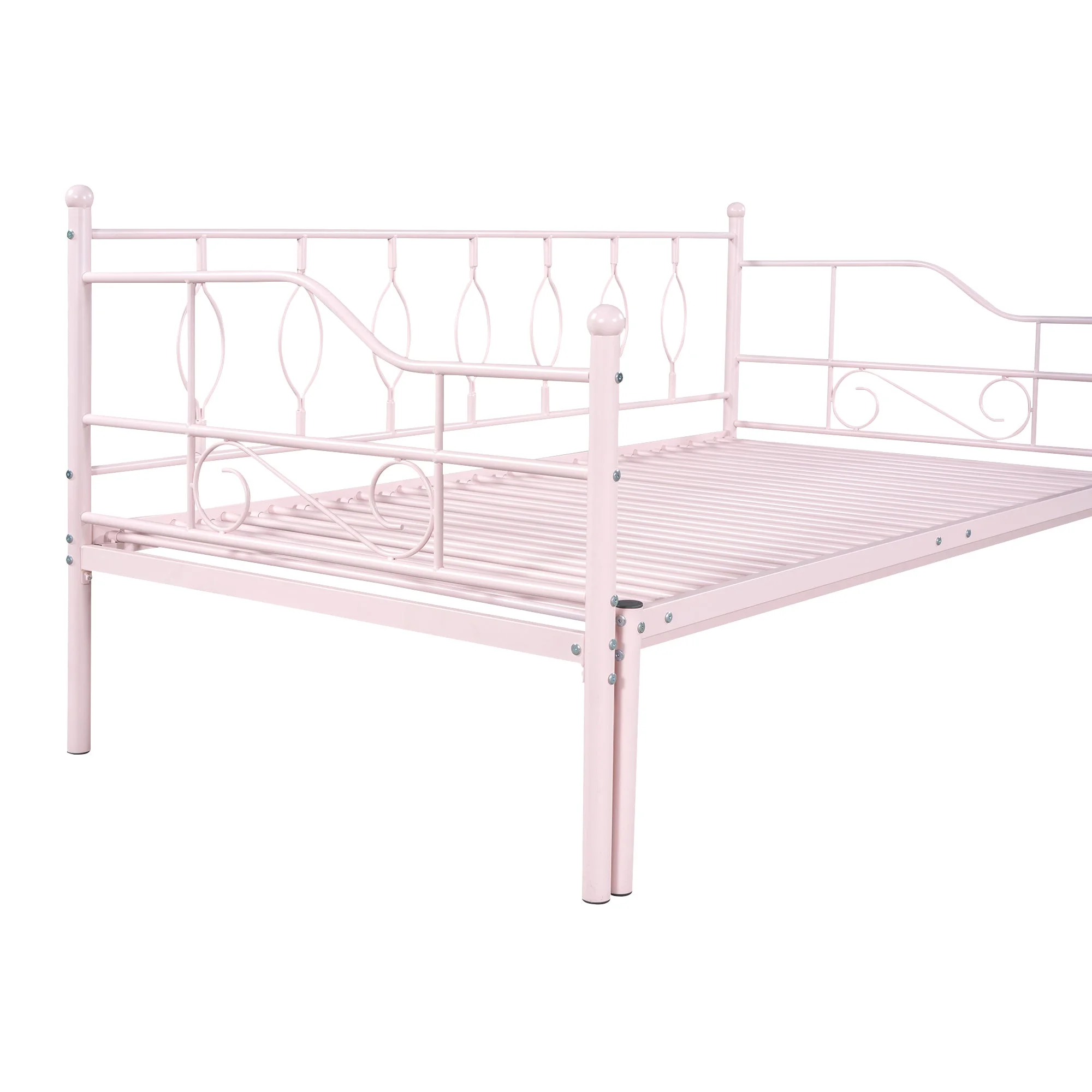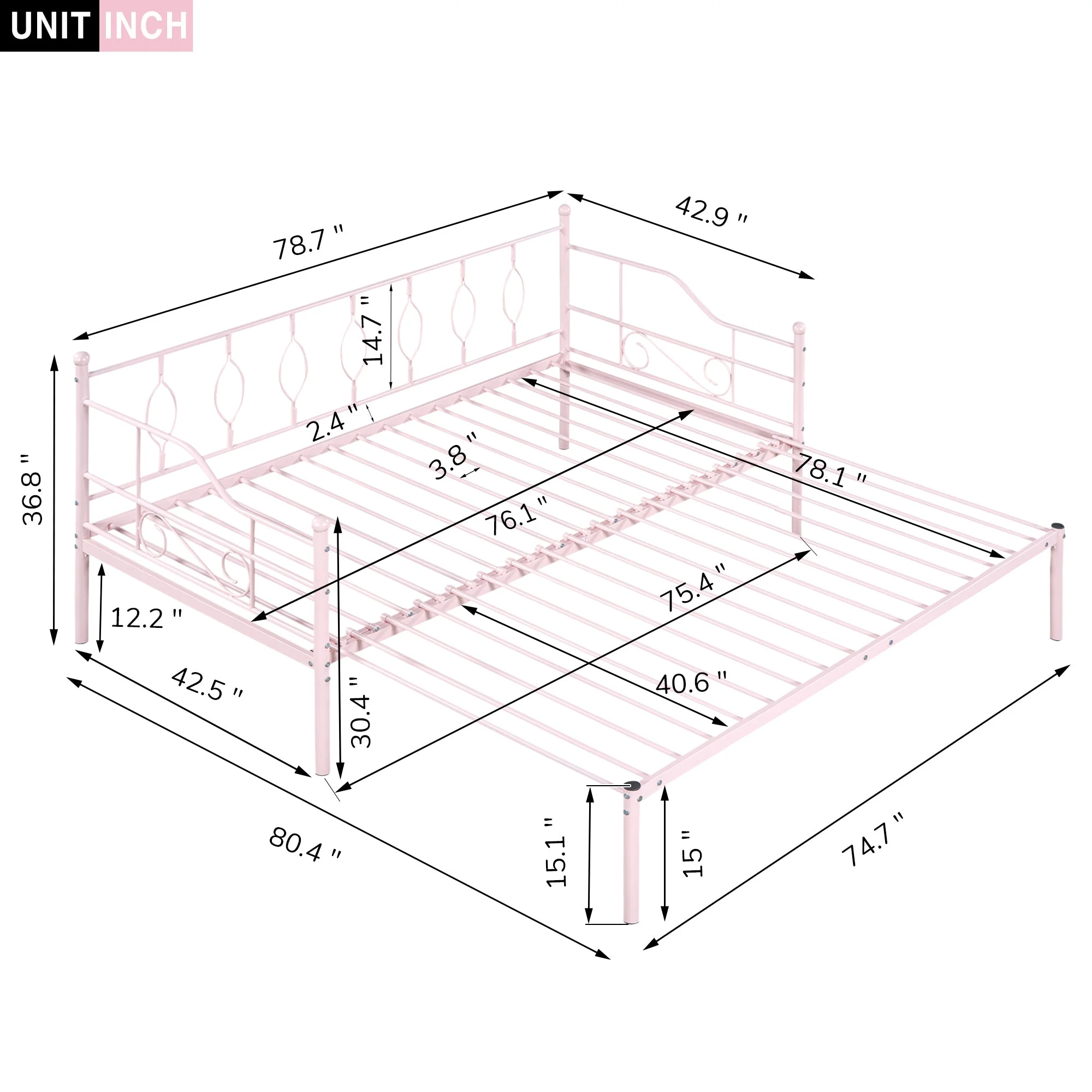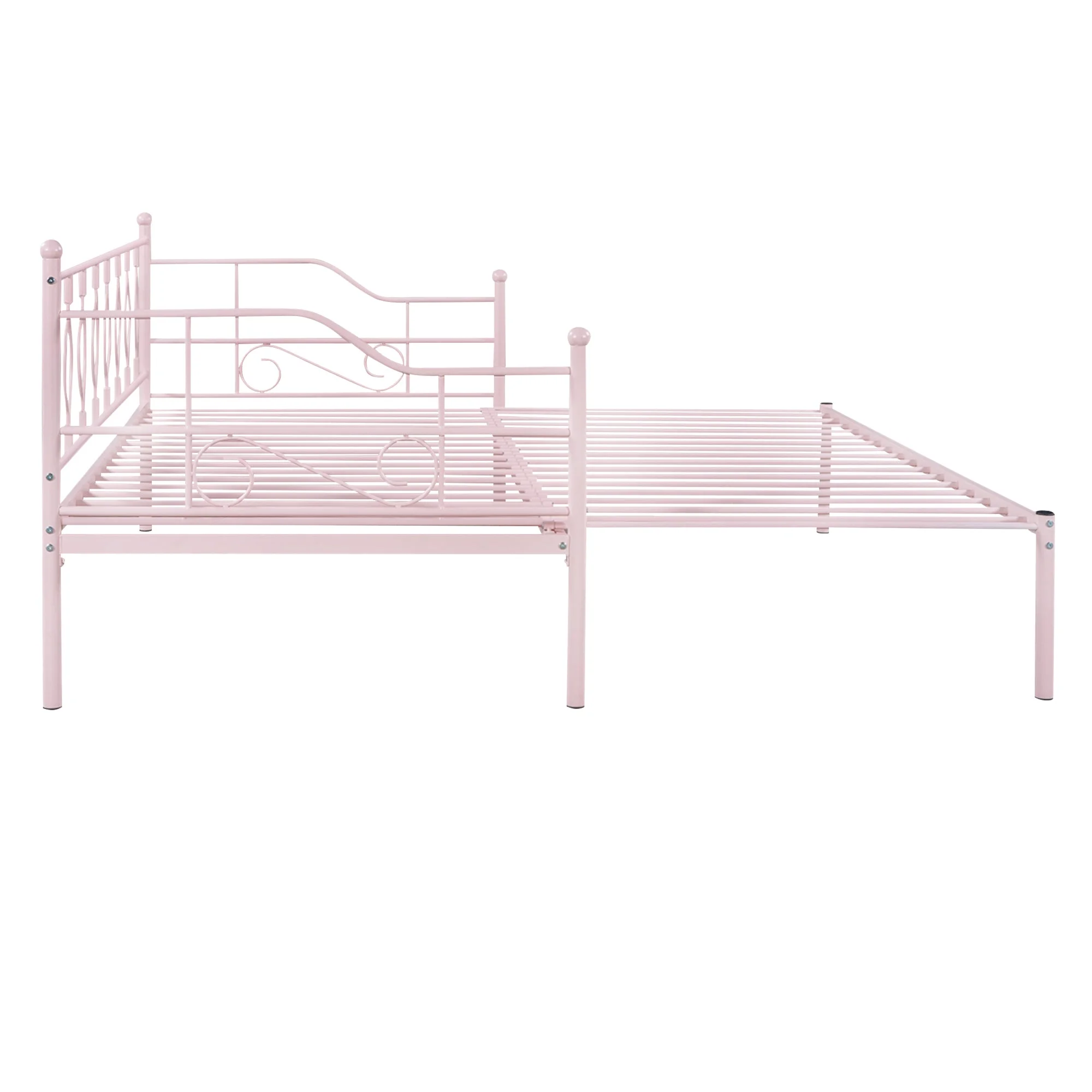 Twin Size Metal Daybed Equipped with Armrest and Backrest with Trundle Metal Support White