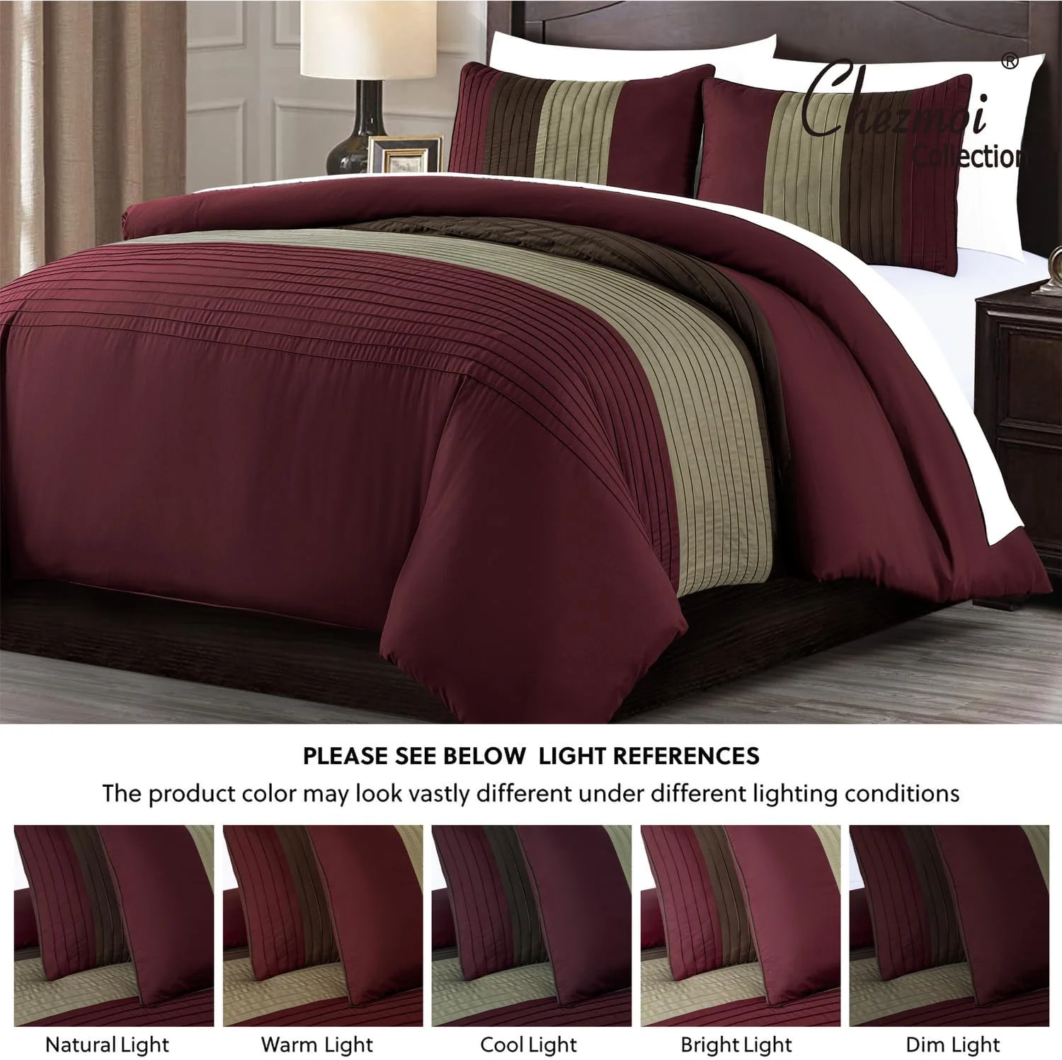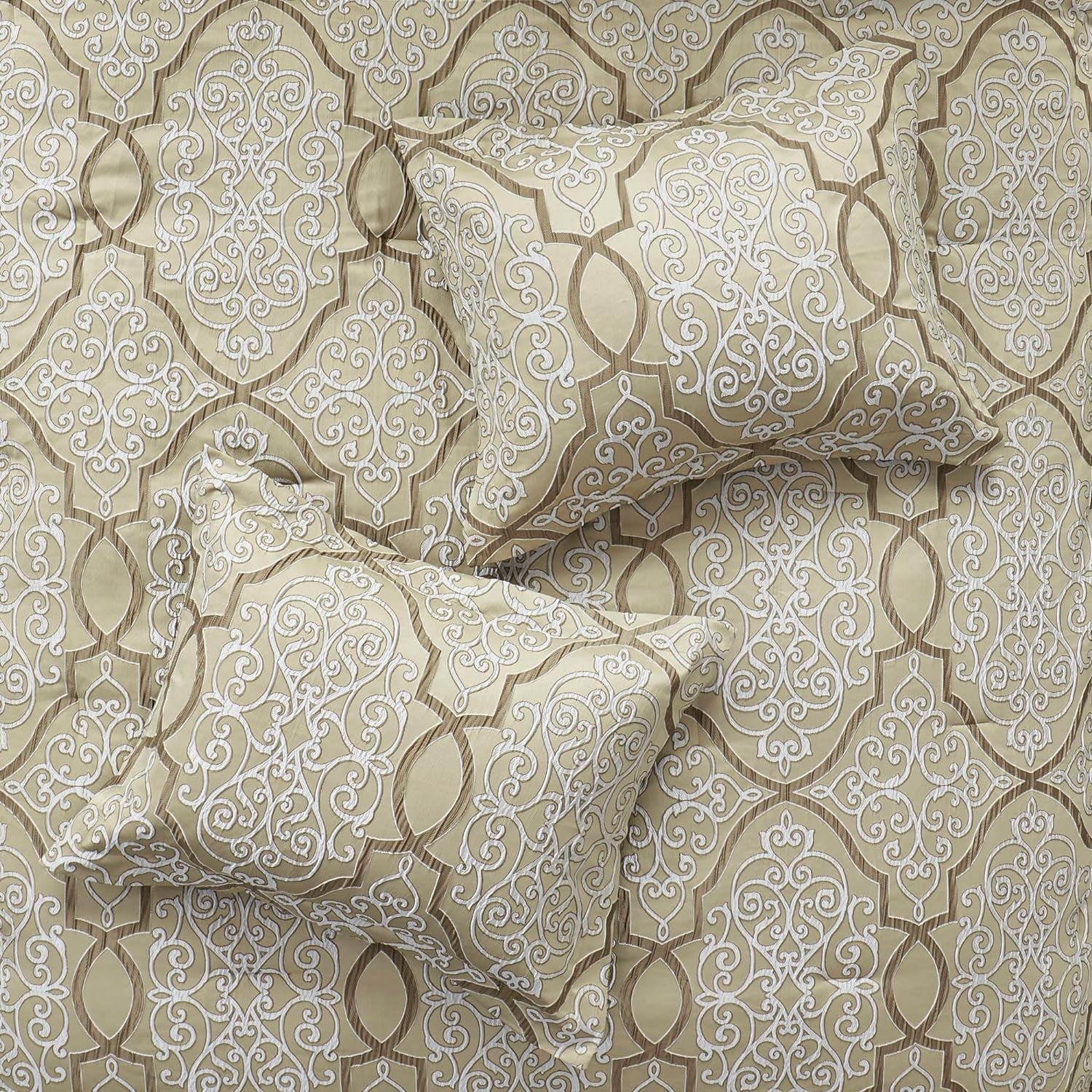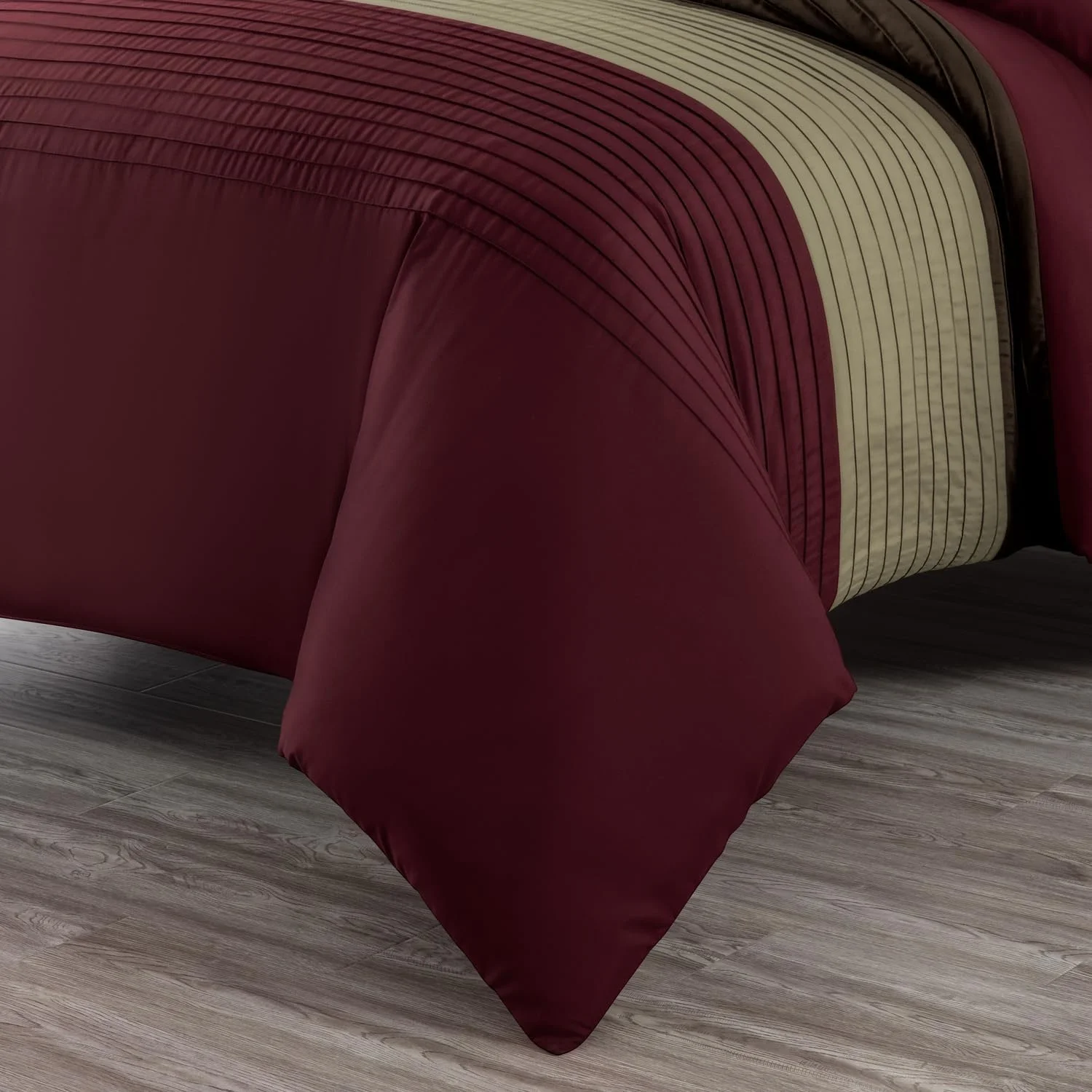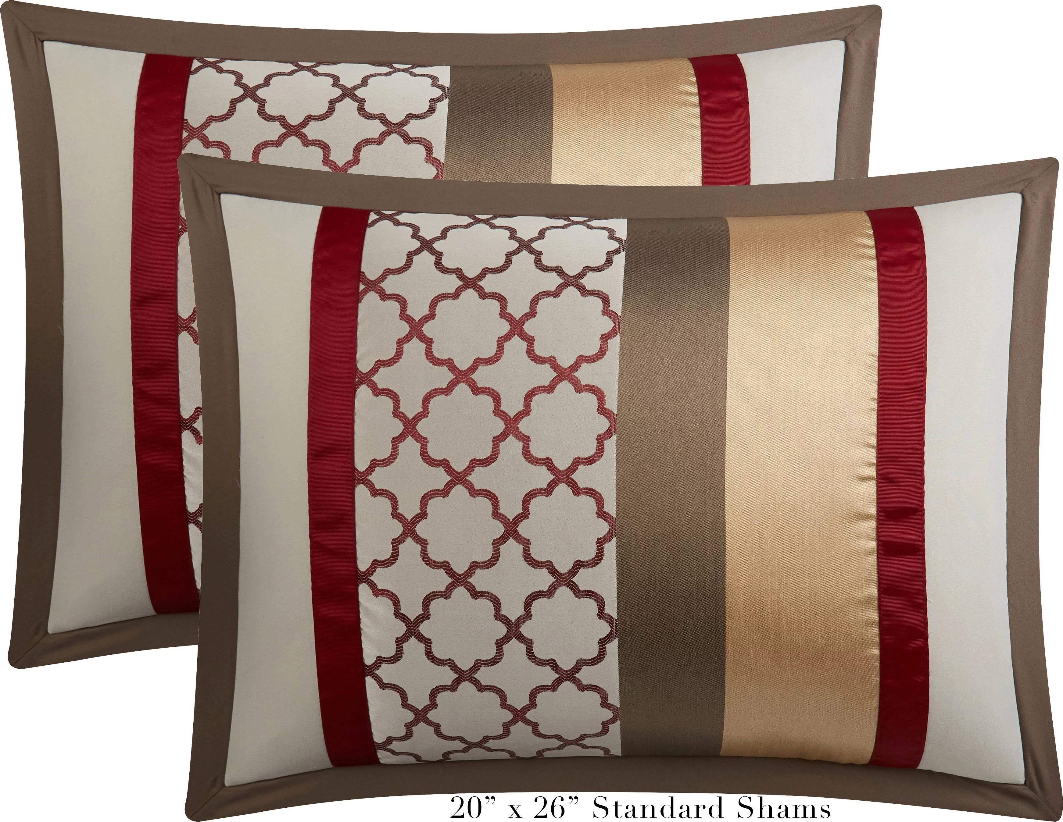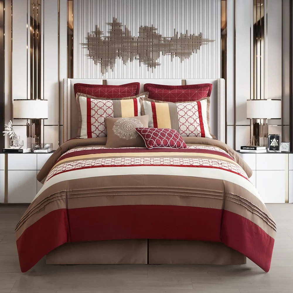 Lanco Moroccan Taupe/Red Berry/Gold, 8-Piece Comforter Set, California King, Striped/Geometric