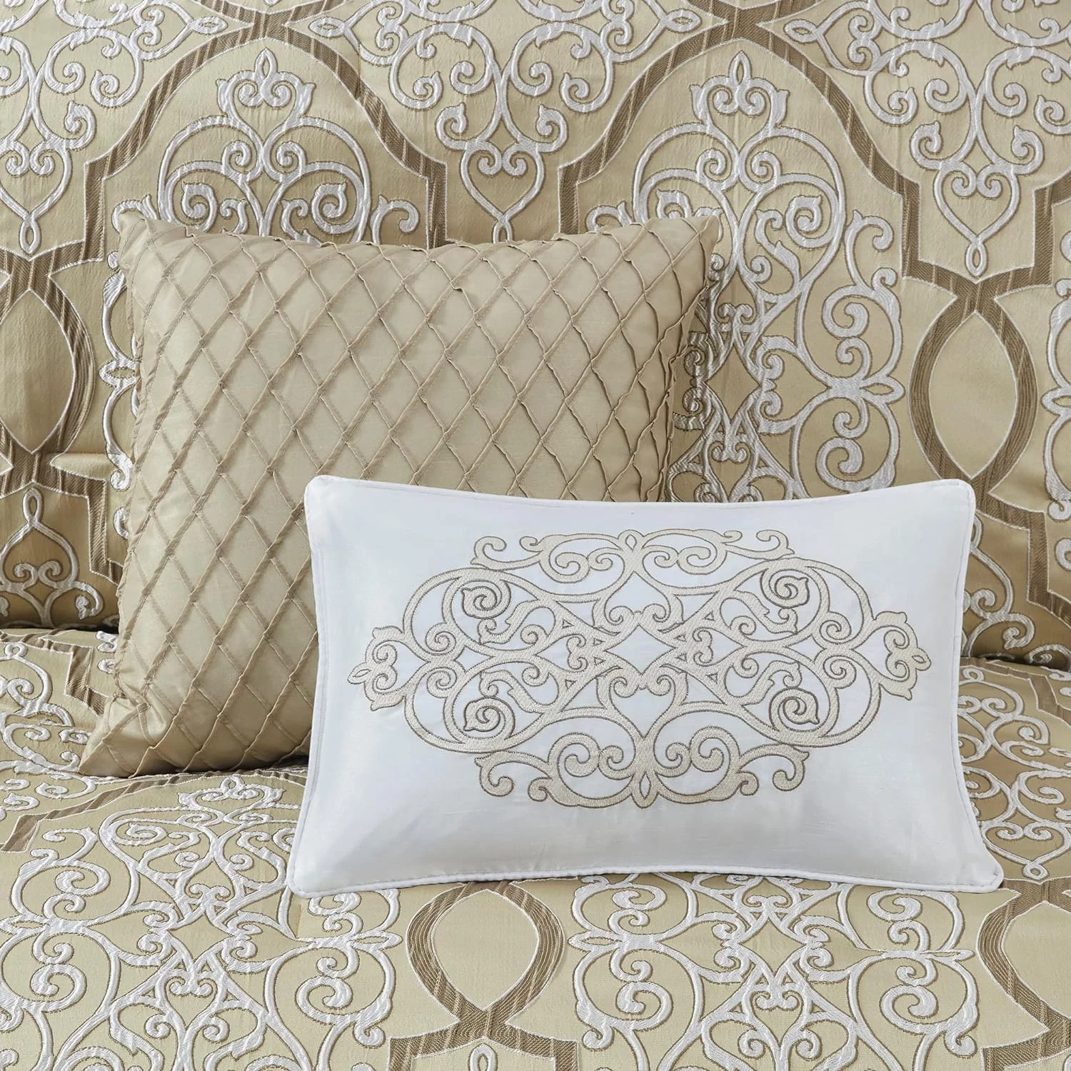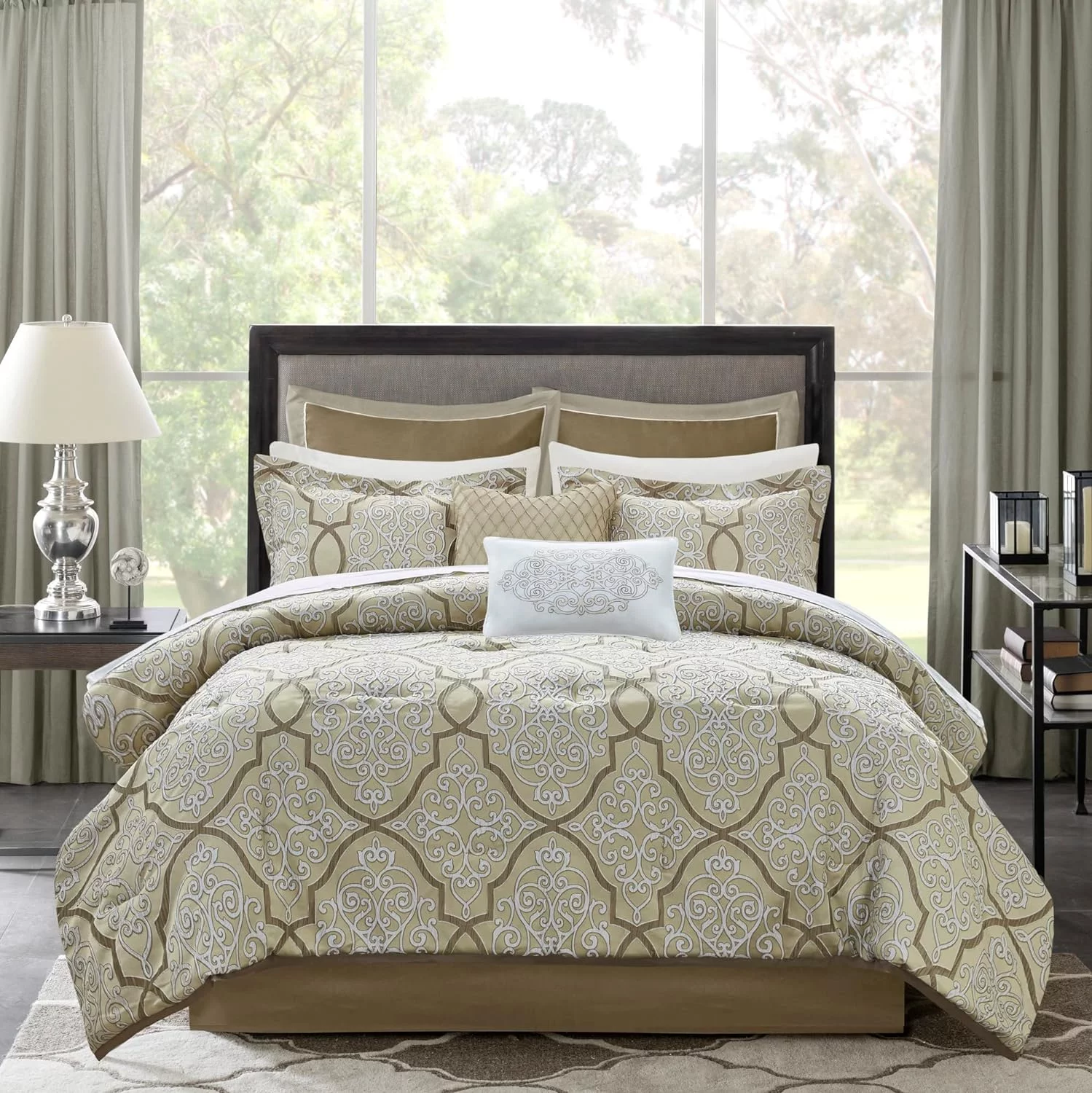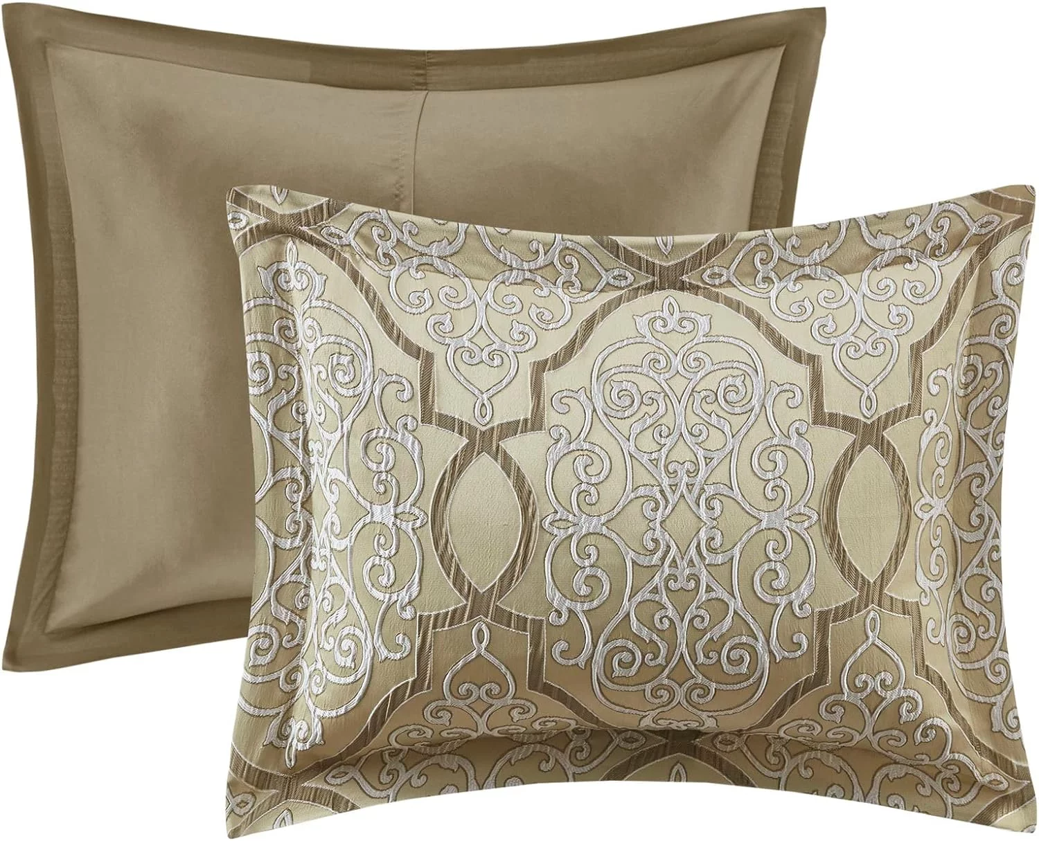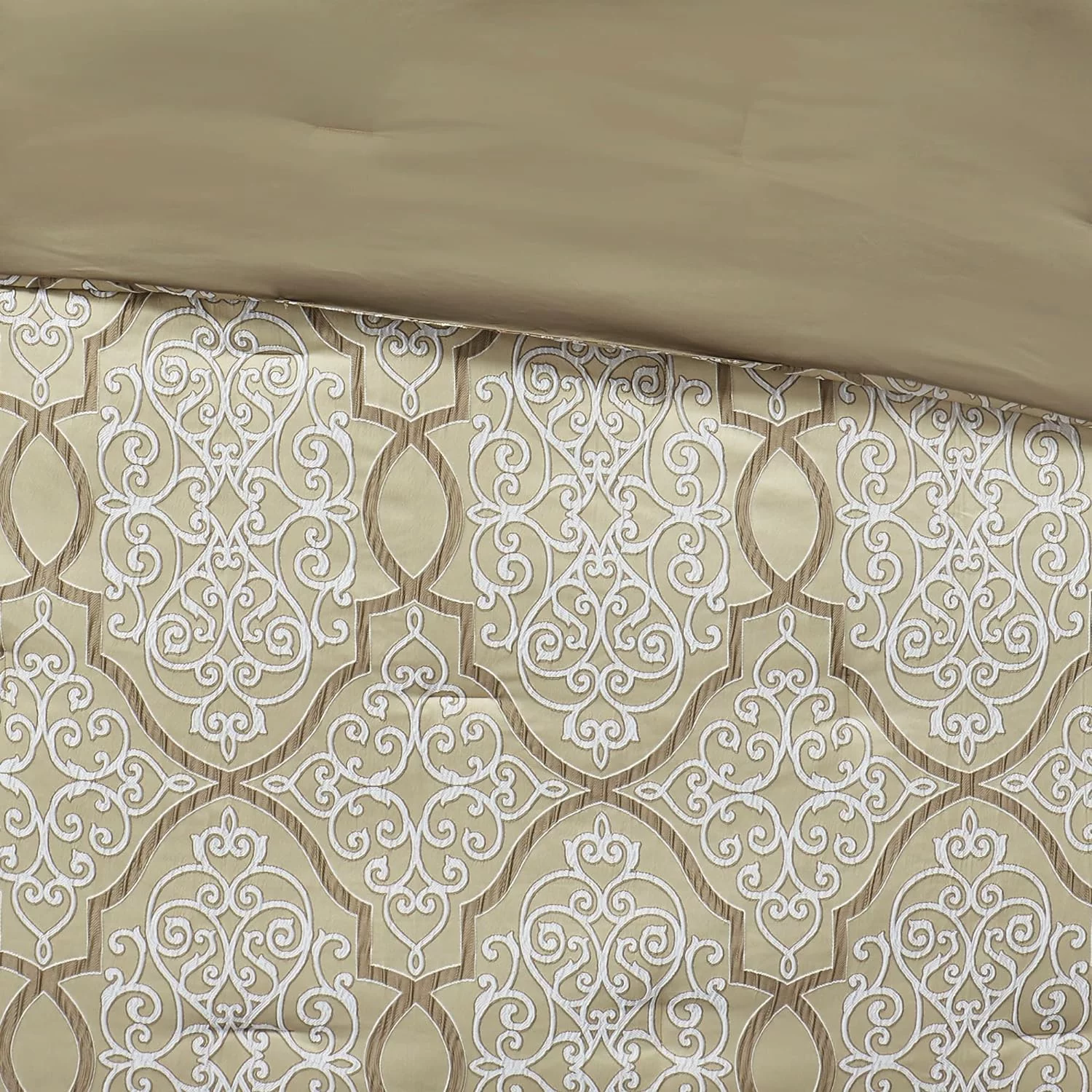 Lanco Moroccan Taupe/Red Berry/Gold, 8-Piece Comforter Set, California King, Striped/Geometric