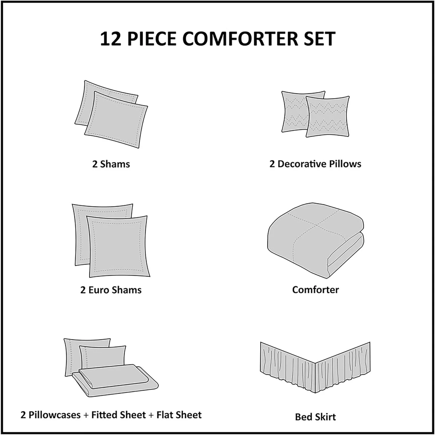microfiber california king size 12pc bed in a bag (comforter set and sheet set) aqua blue