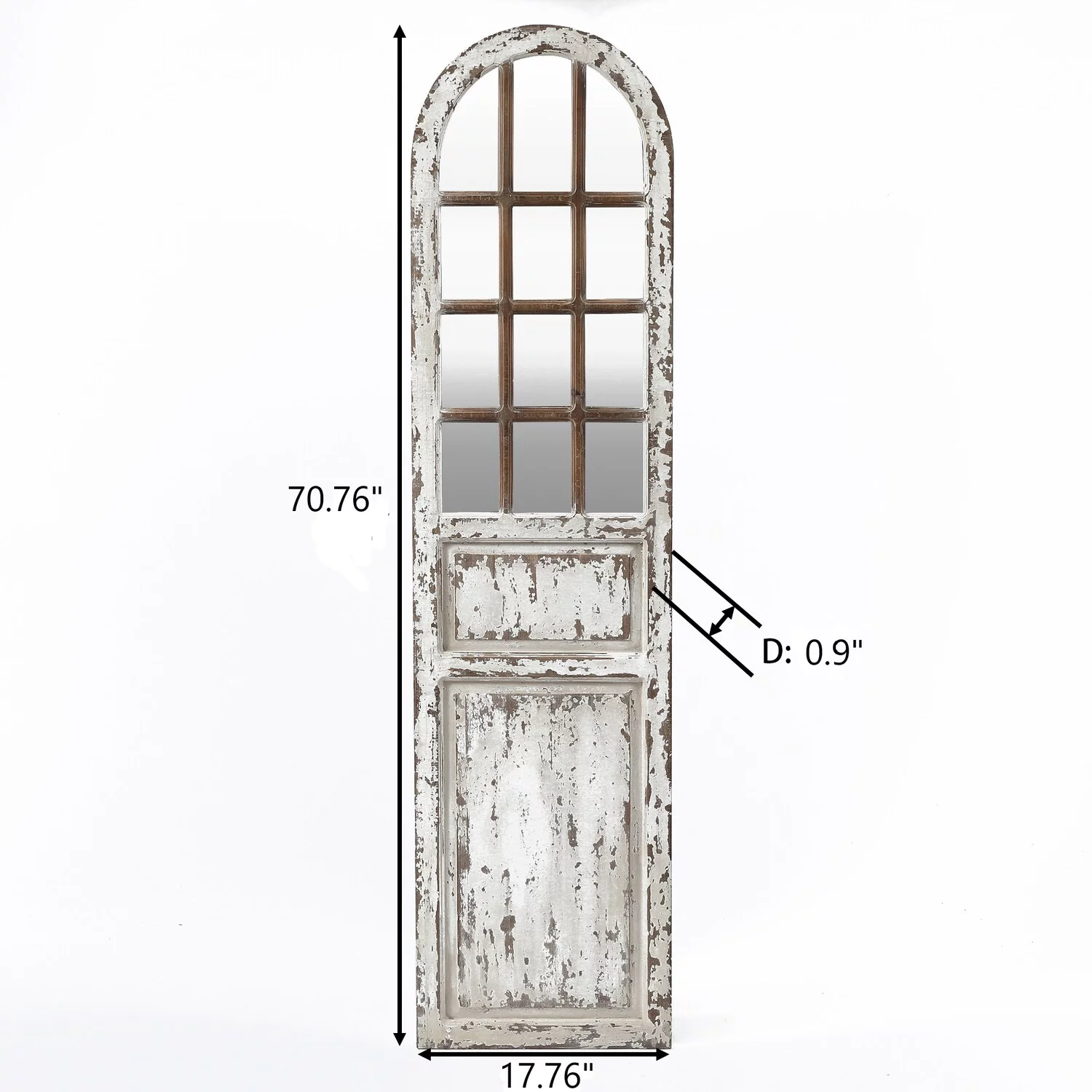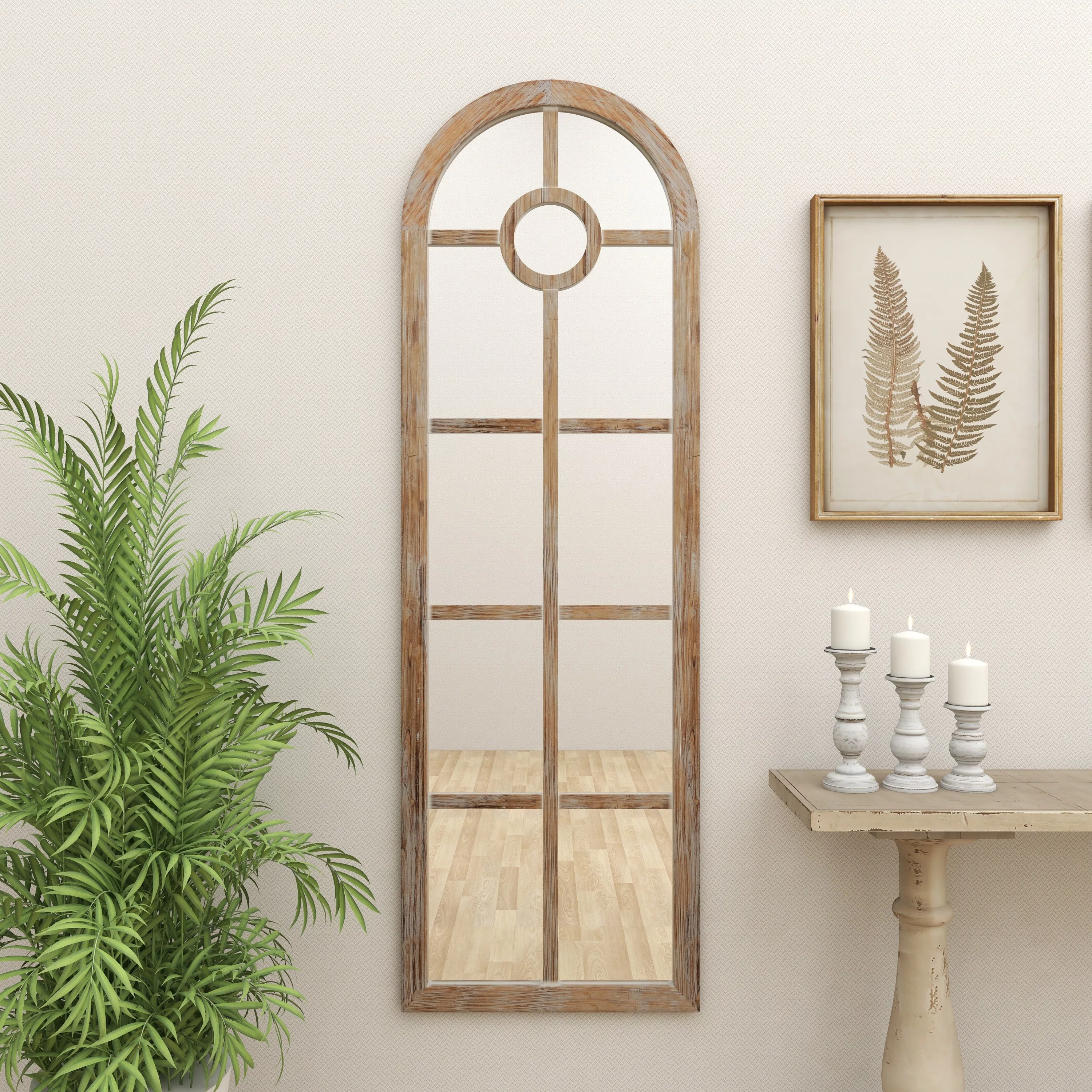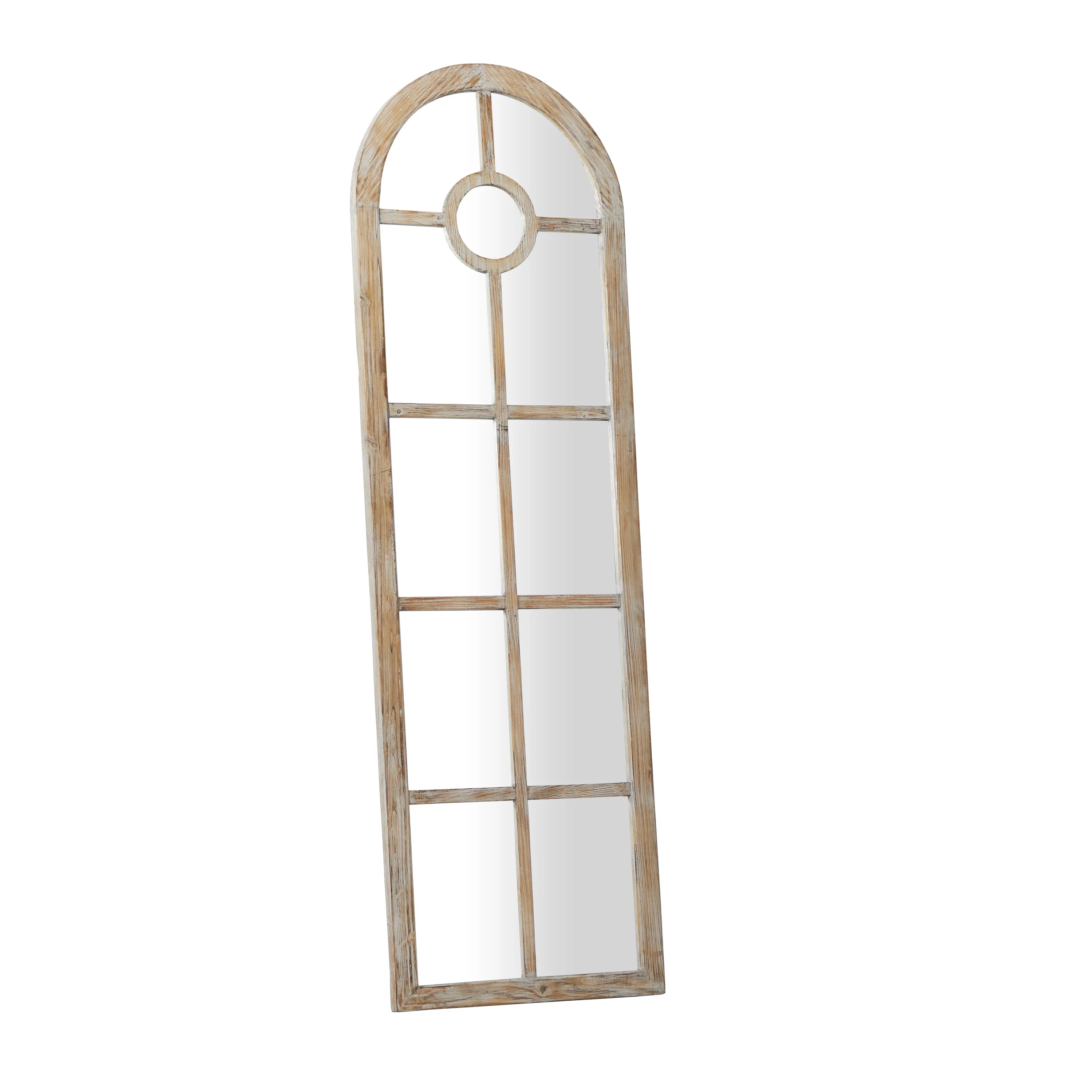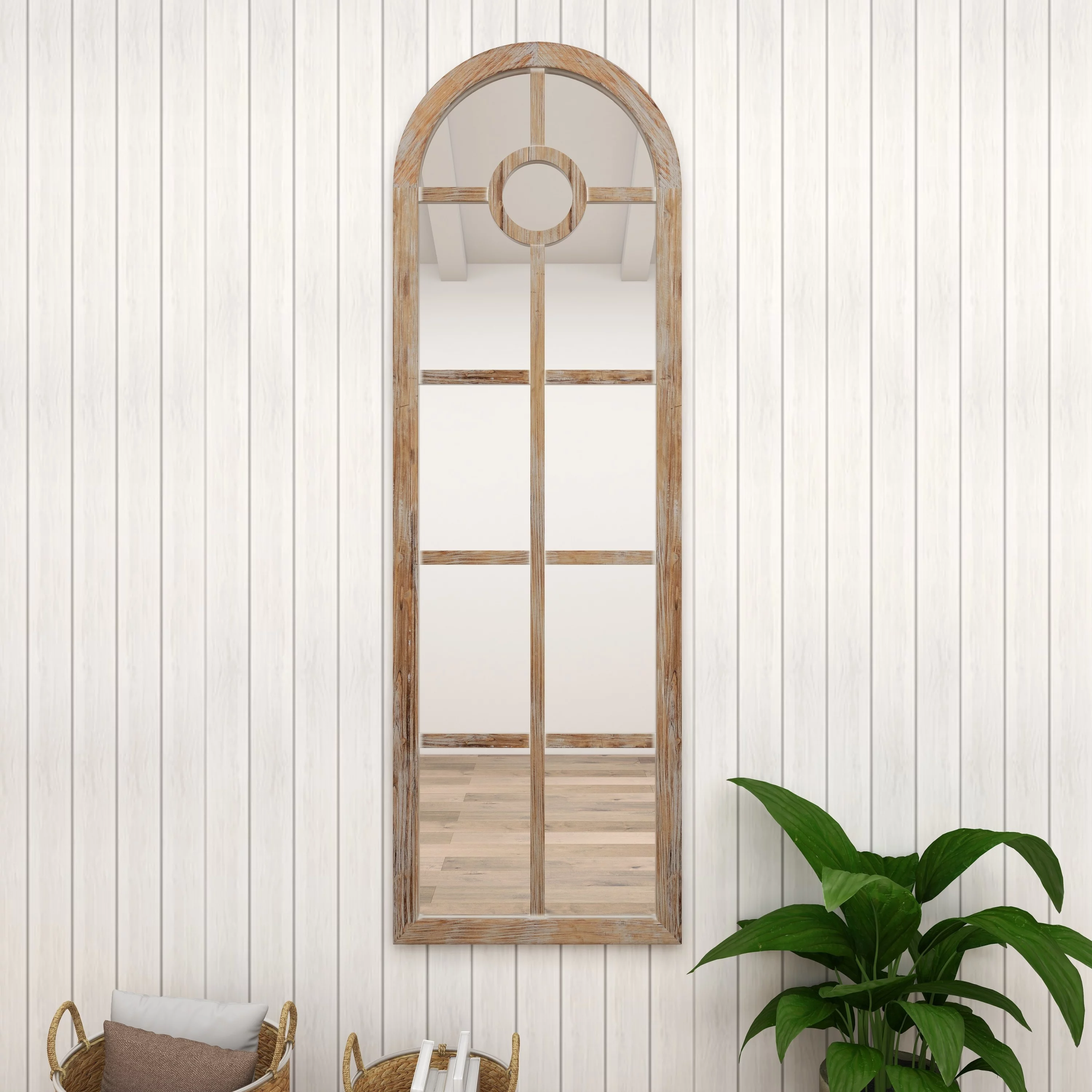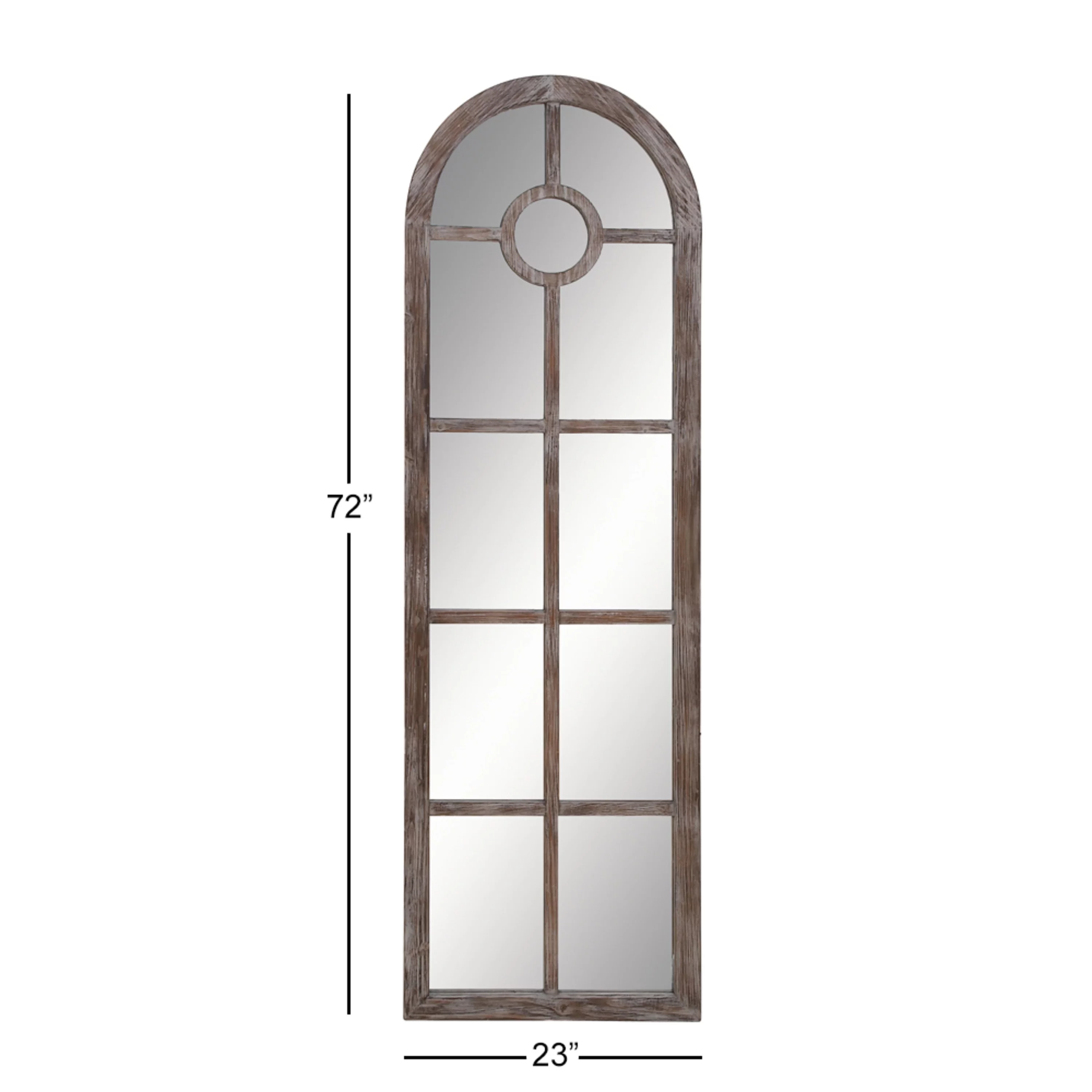 DecMode 23" x 72" Brown Window Pane Inspired Wall Mirror with Arched Top