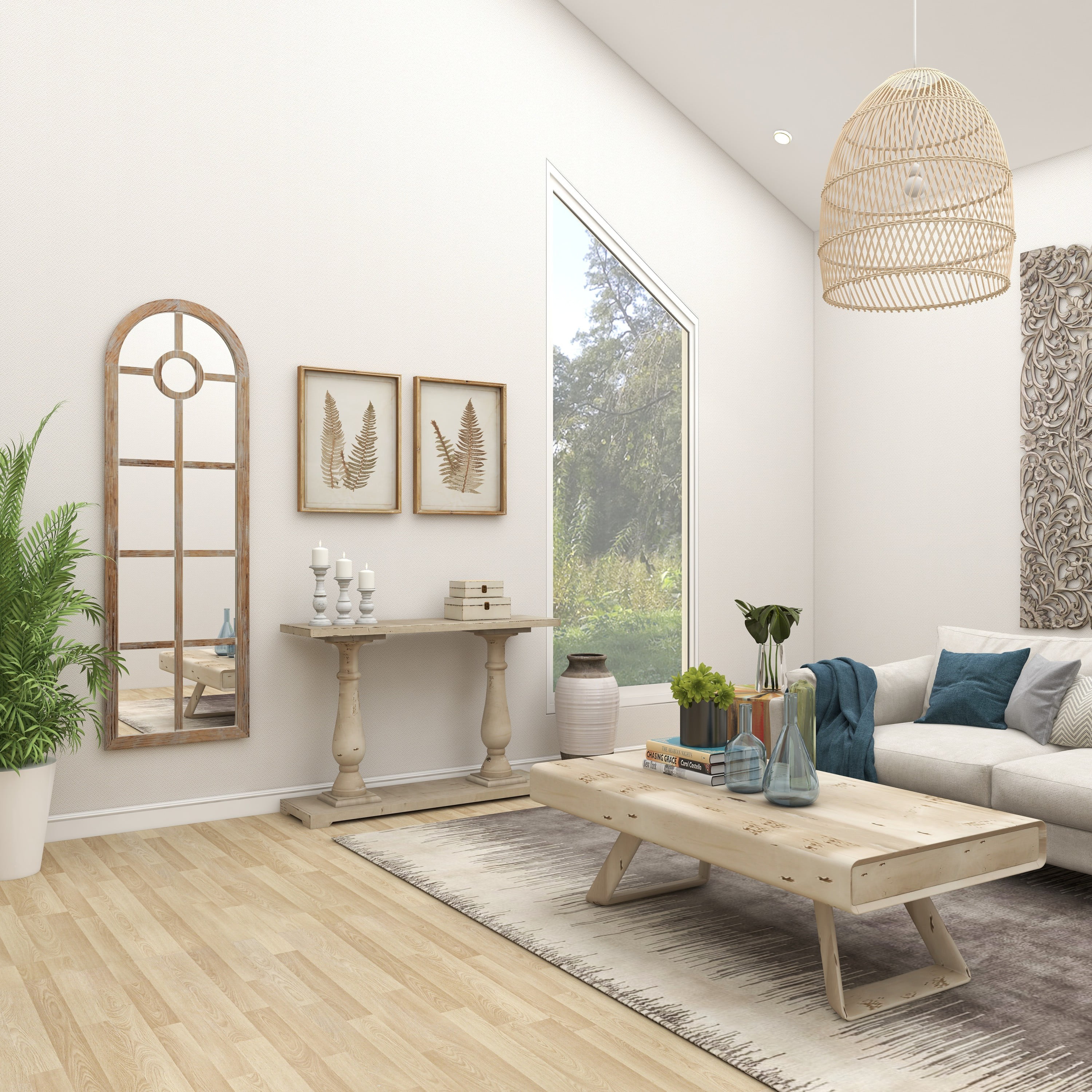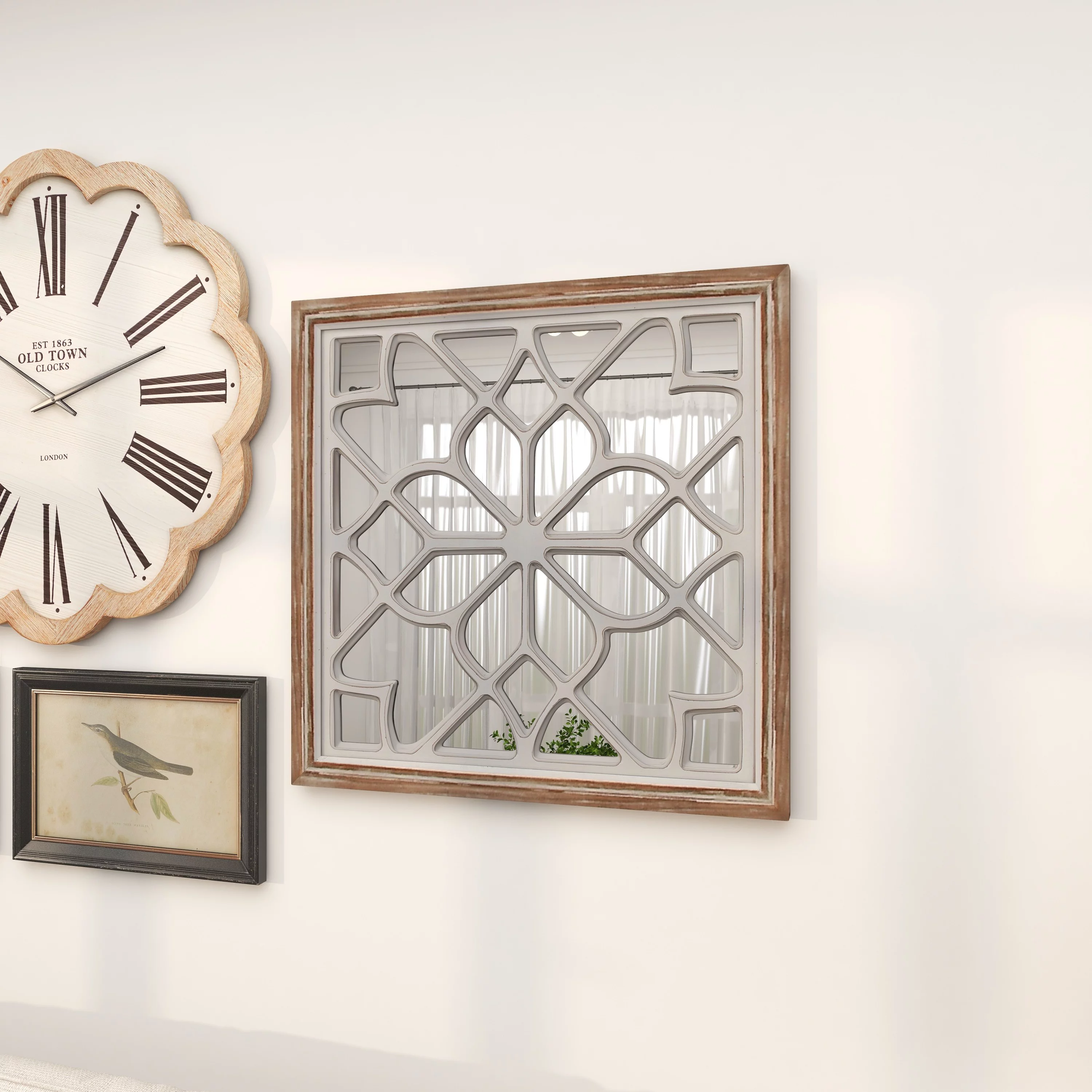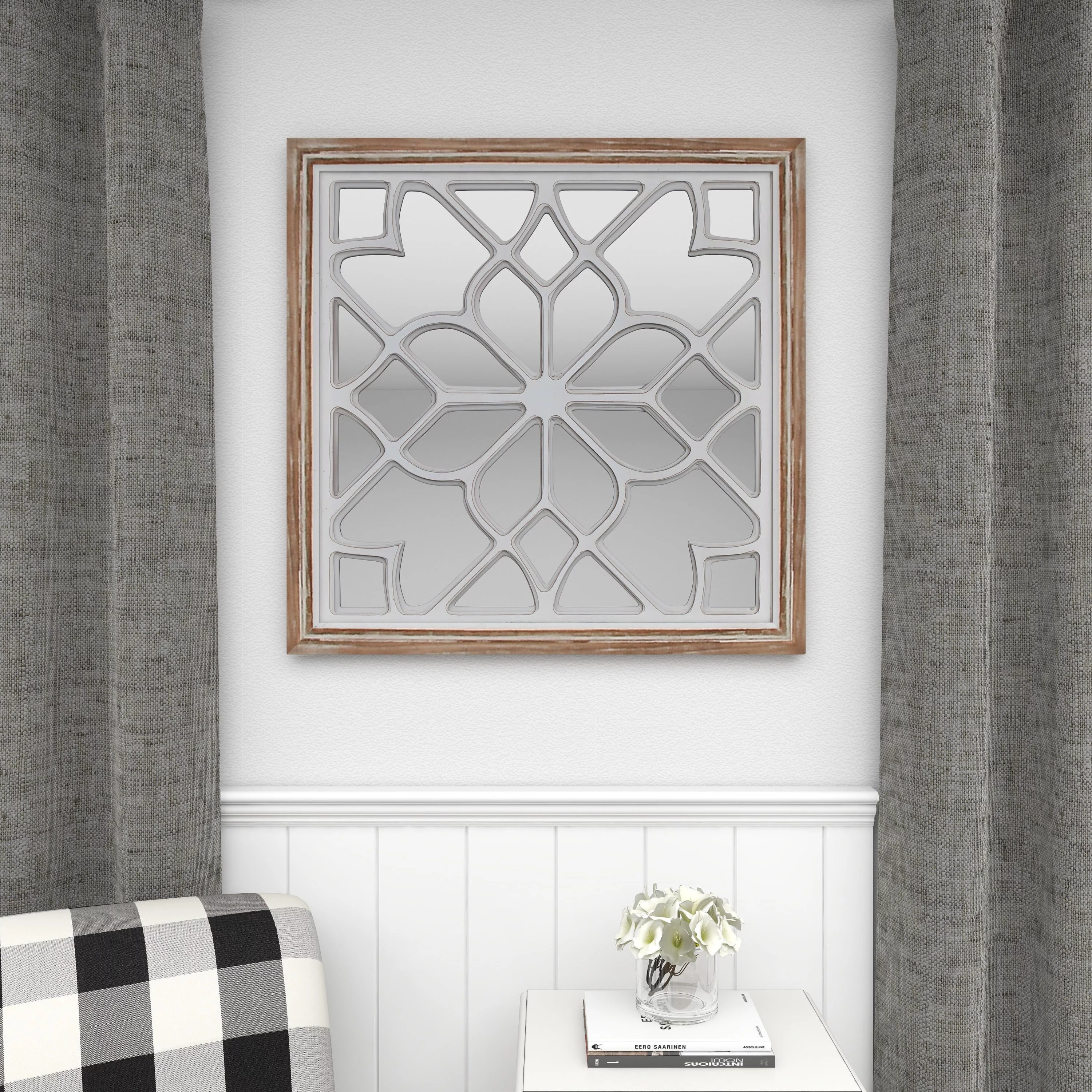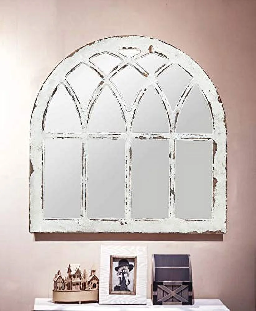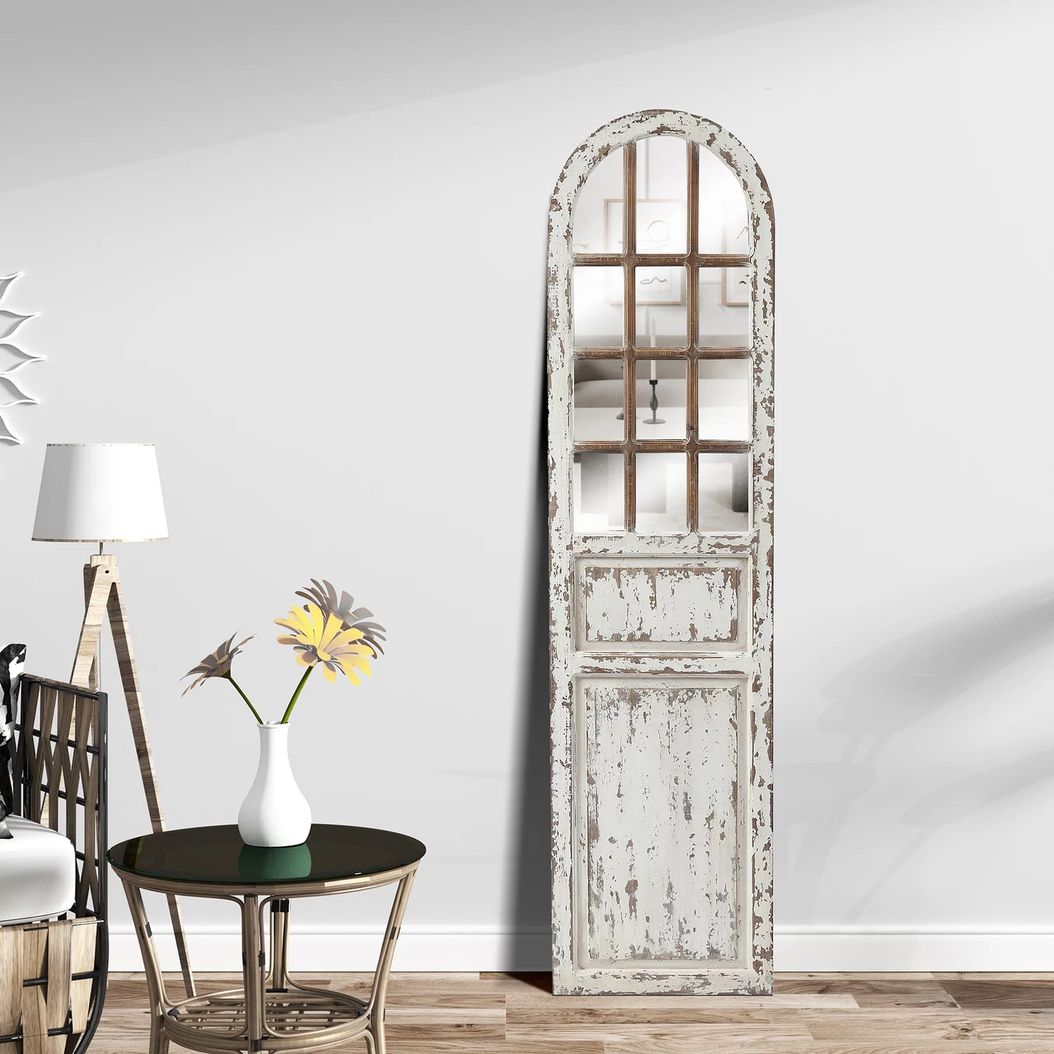 DecMode 23" x 72" Brown Window Pane Inspired Wall Mirror with Arched Top