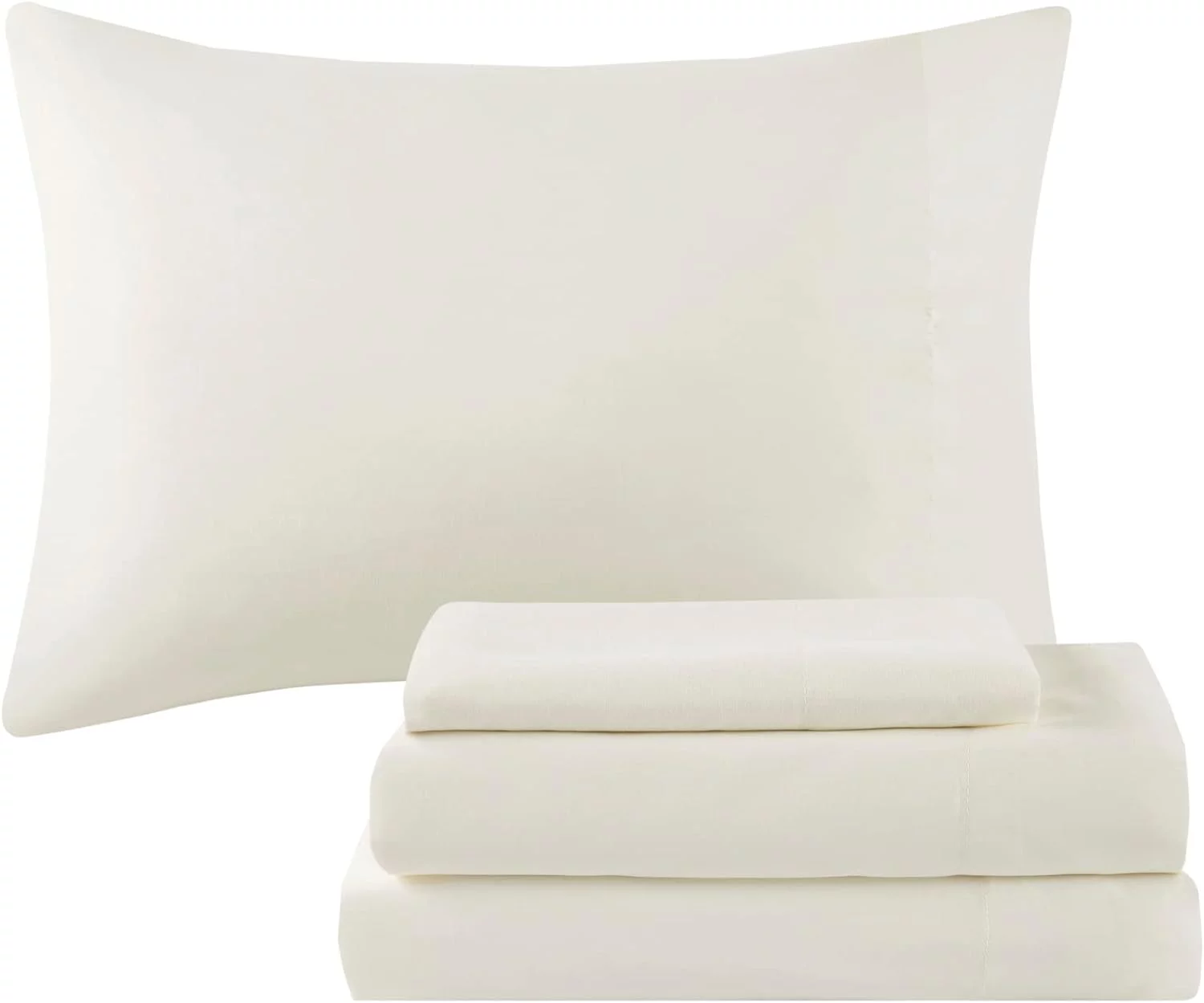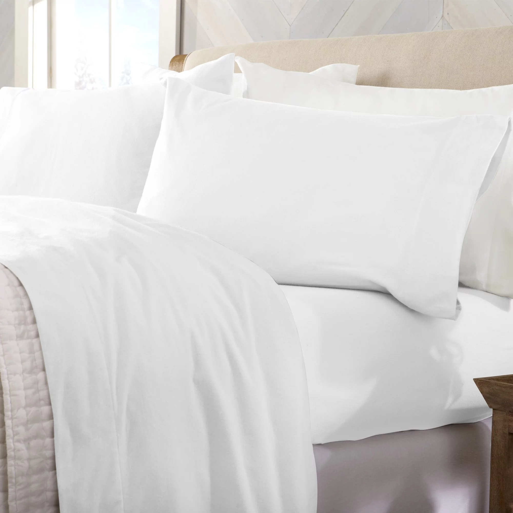 Great Bay Home Cotton Solid Flannel Sheet Set (California King, Winter White)