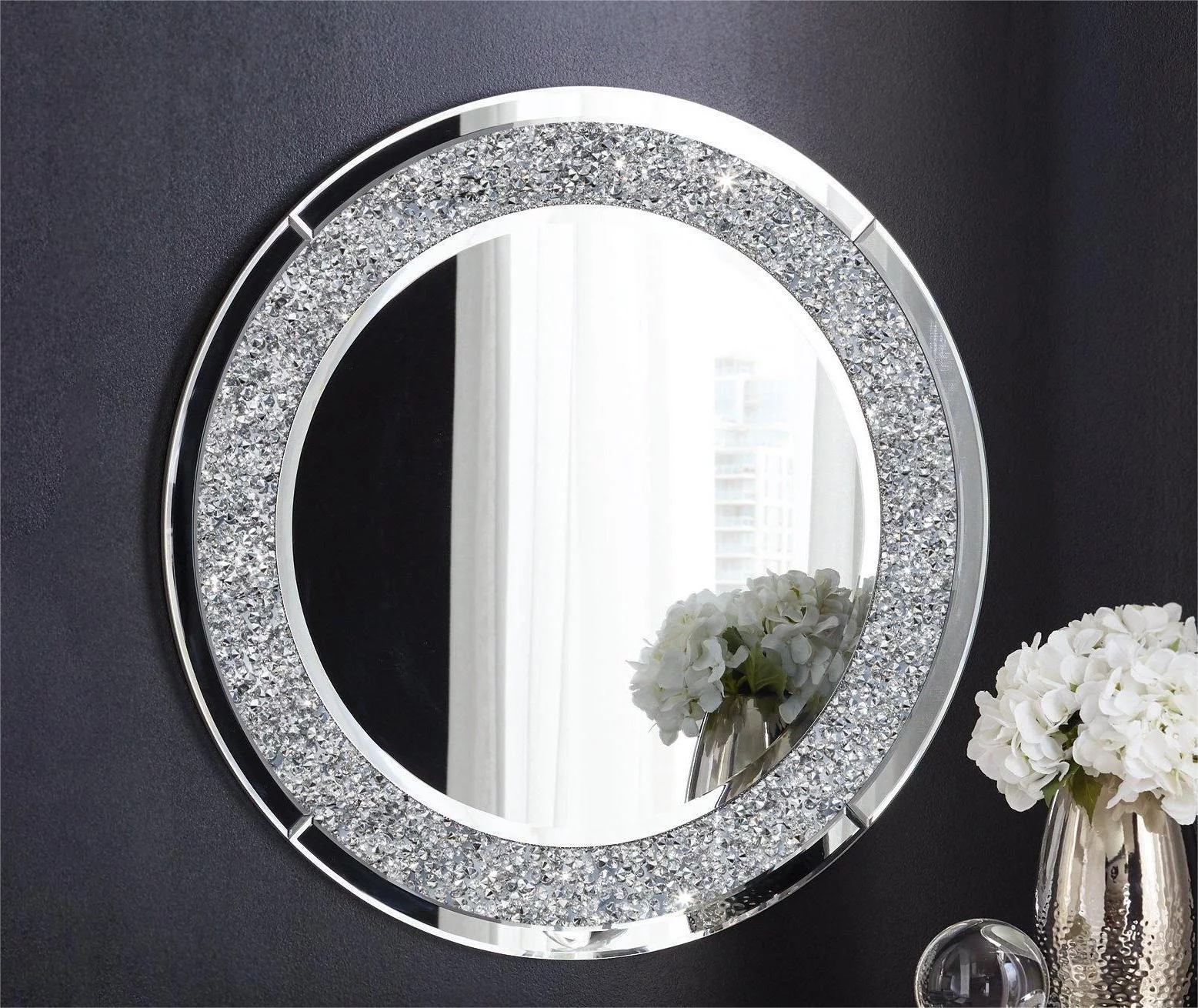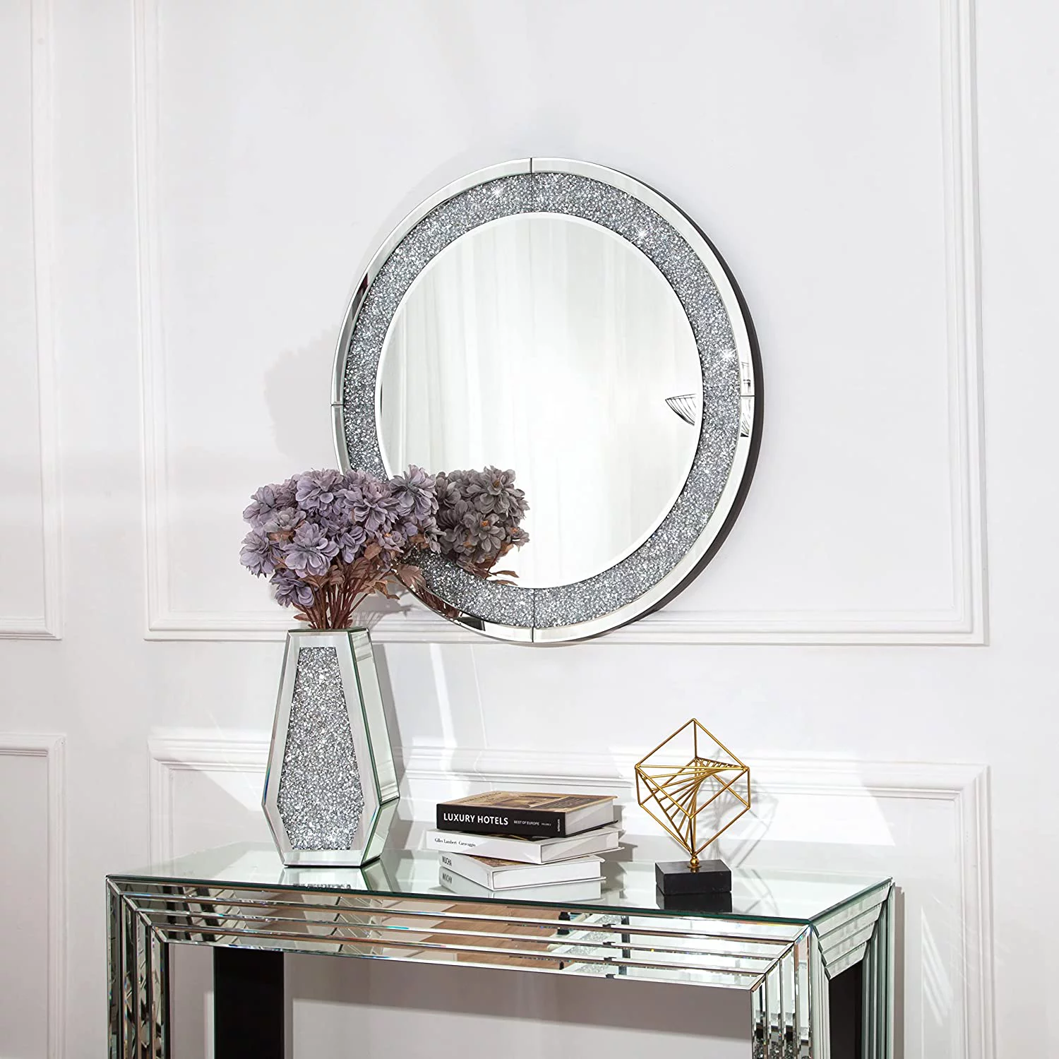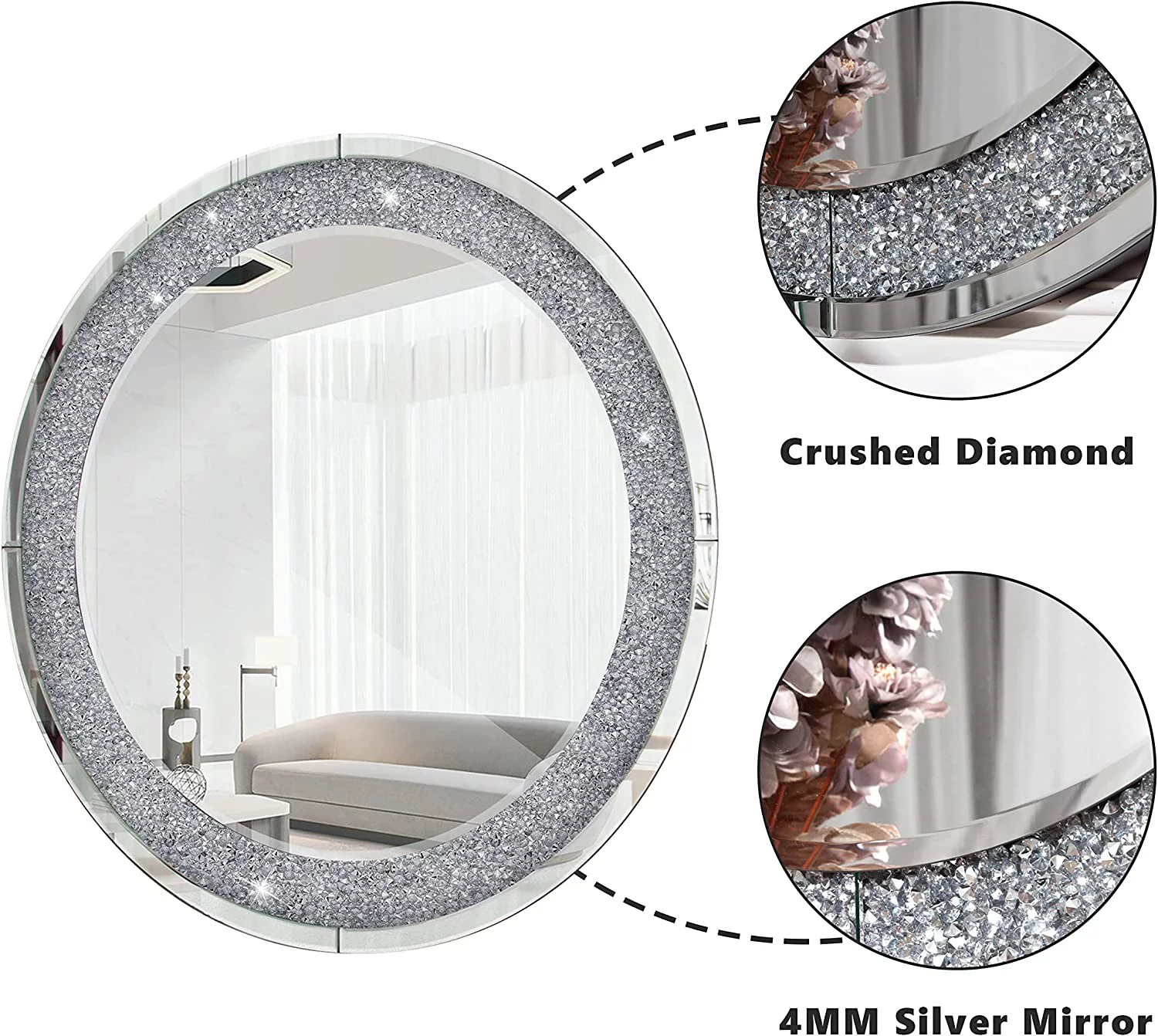 Decorative Round Mirrors Silver Wall Mirror Accent Wall Diamond Mirror for Living Room Home Decor - 32 inch