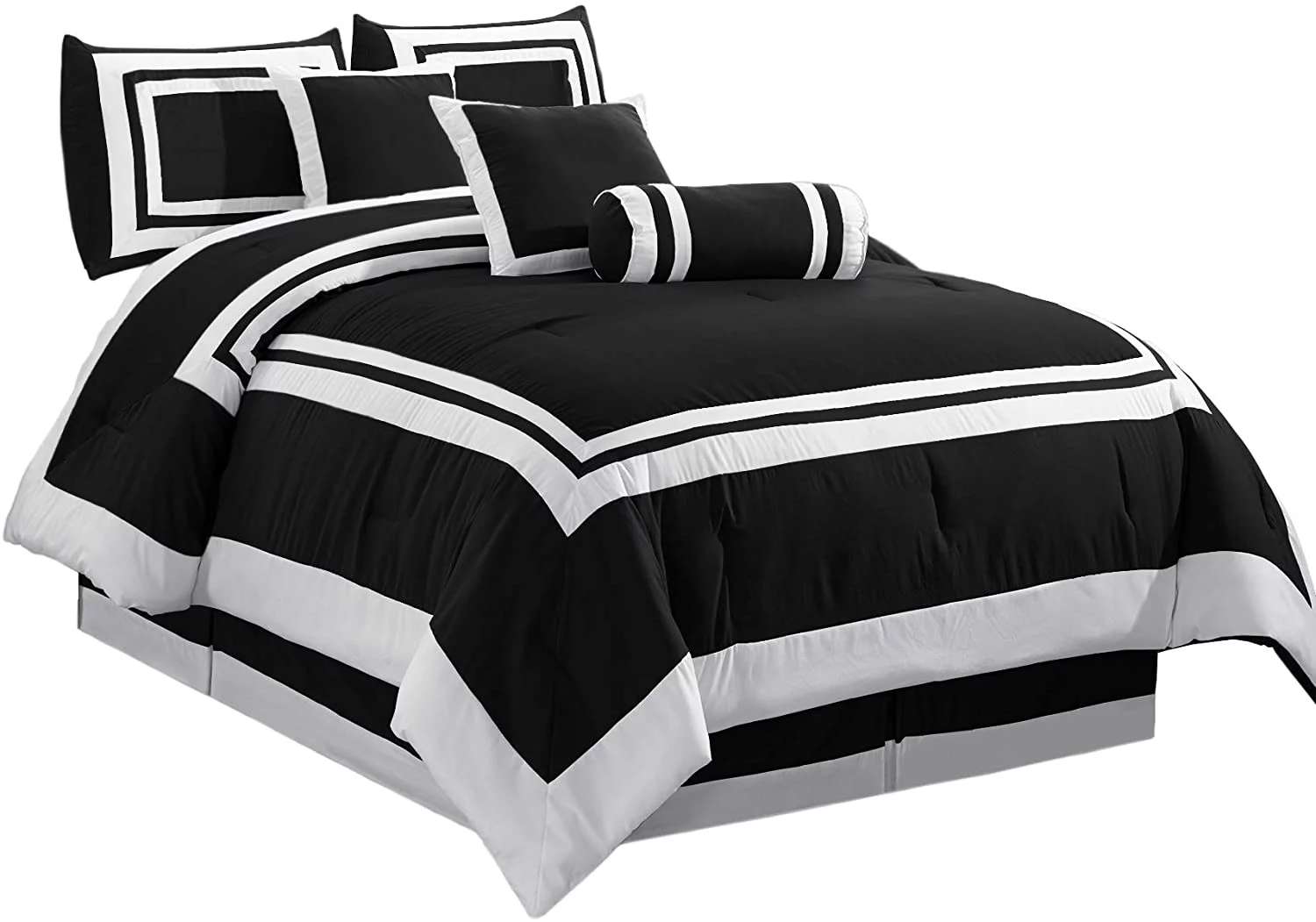 Chezmoi Collection Caprice 7-Piece Black/White Square Pattern Hotel Style Comforter Set California King