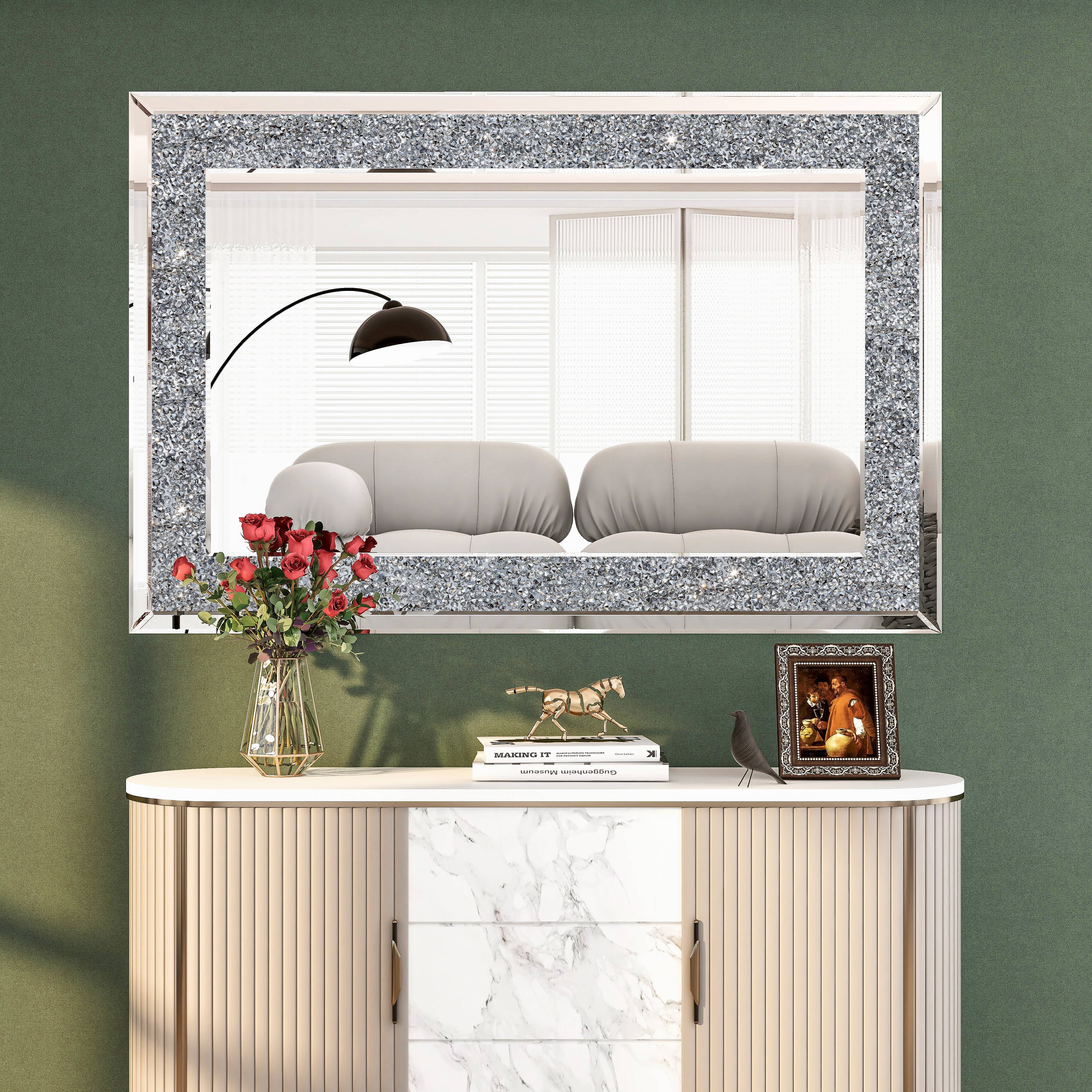Decorative Wall Mirror Crushed Diamond Vanity Mirror Rectangle Mirrors for Wall Decor 35.4"X23.6"
