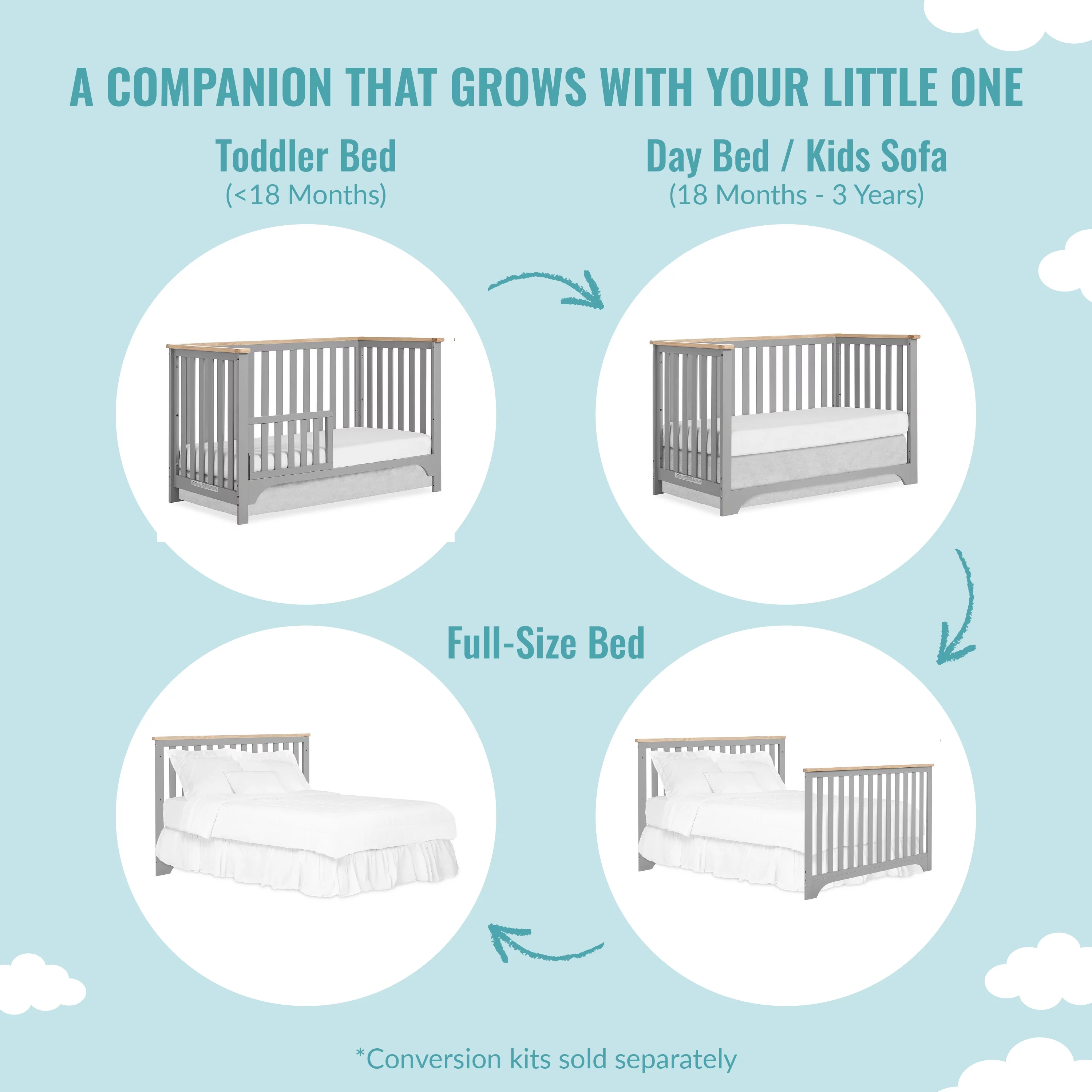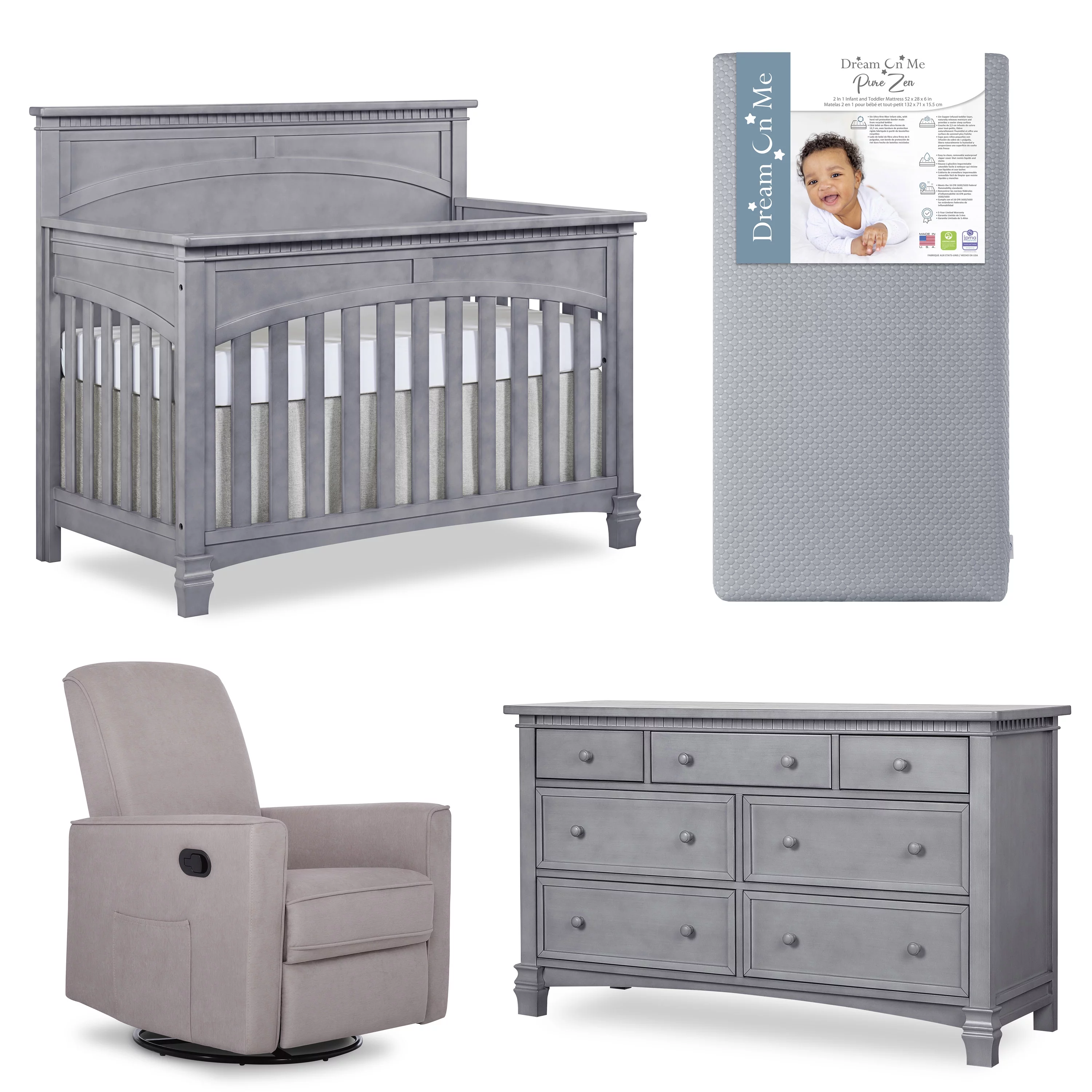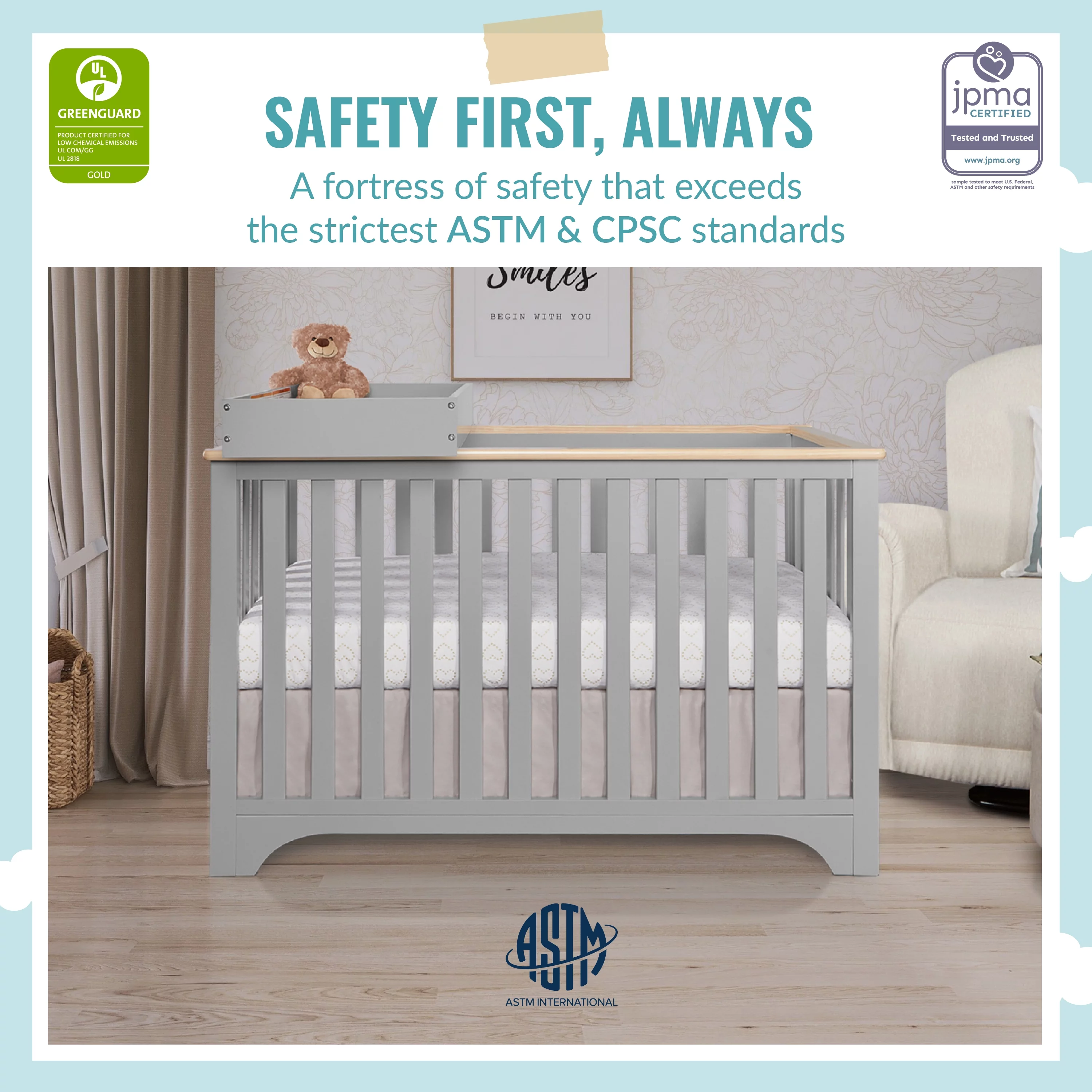 Dream On Me Harper 4-in-1 Convertible Crib, JPMA Certified, 3 Mattress Height Setting, Metallic Grey