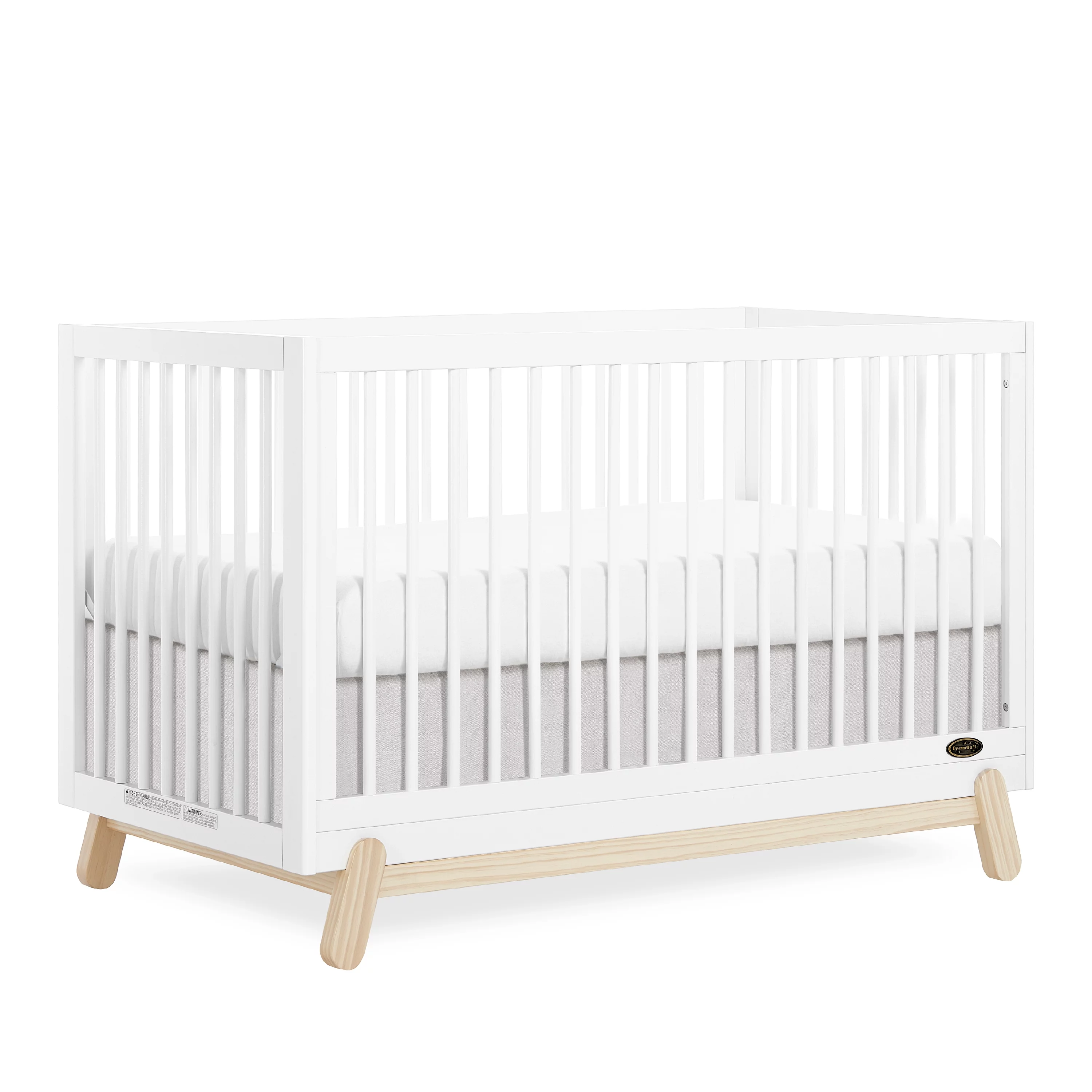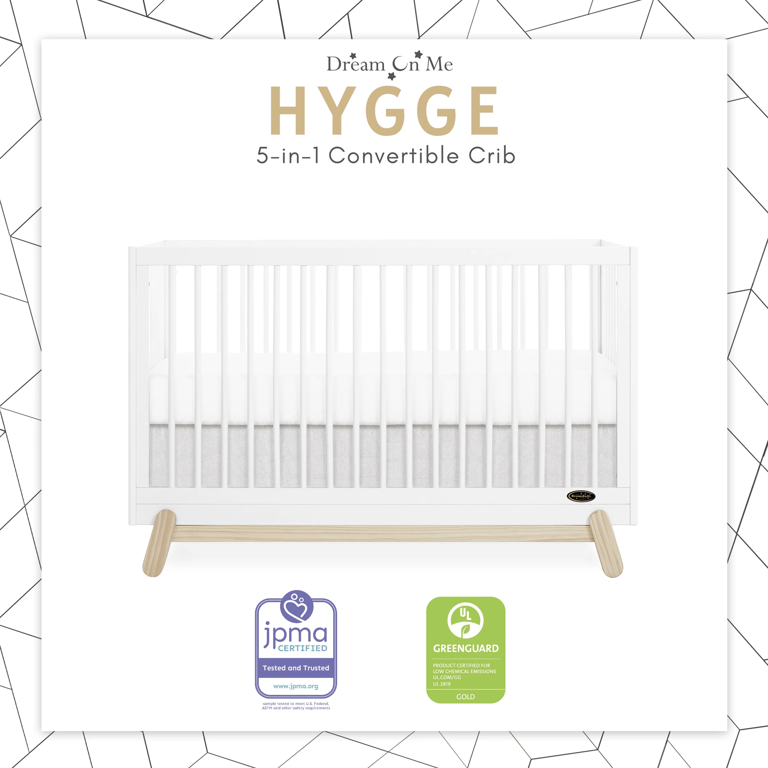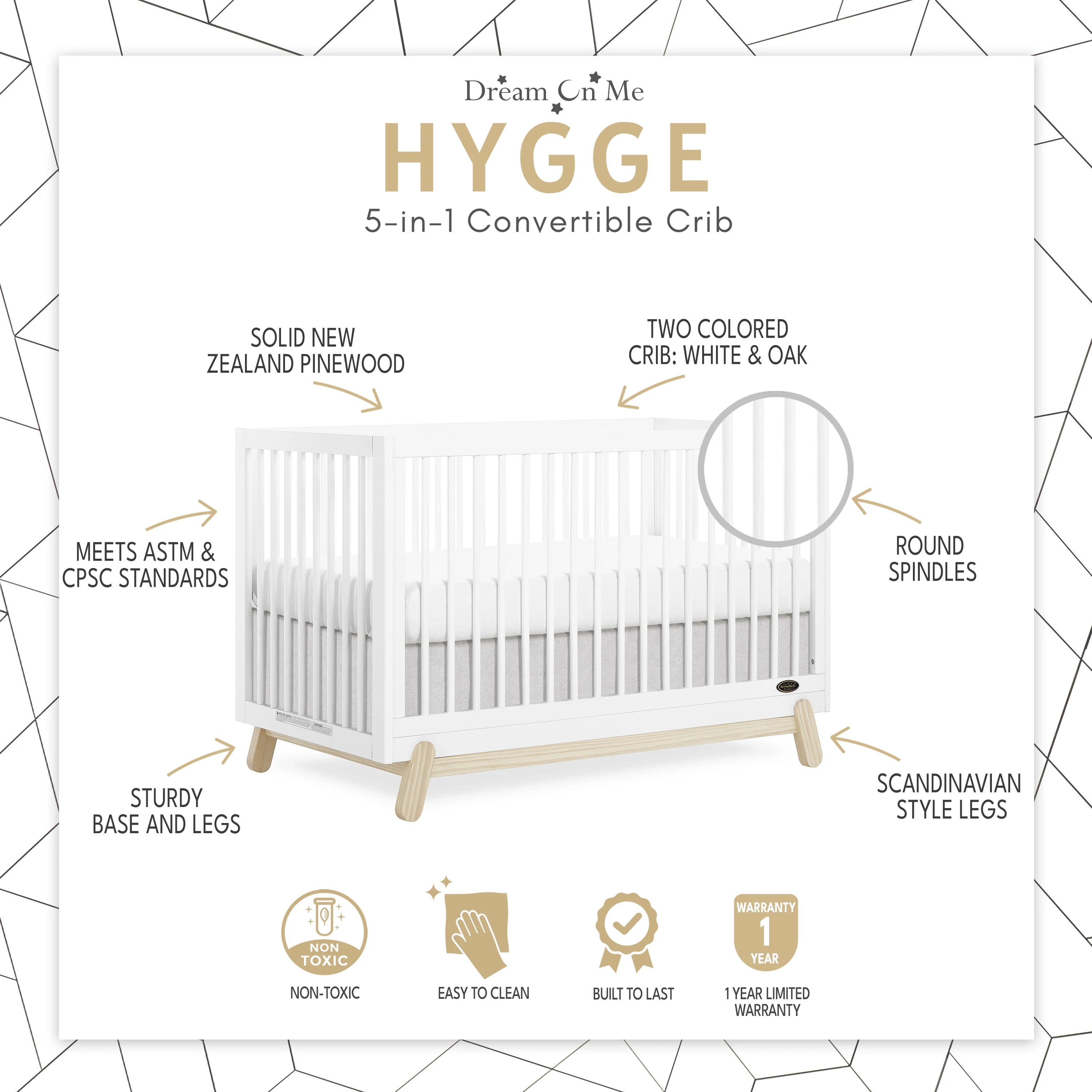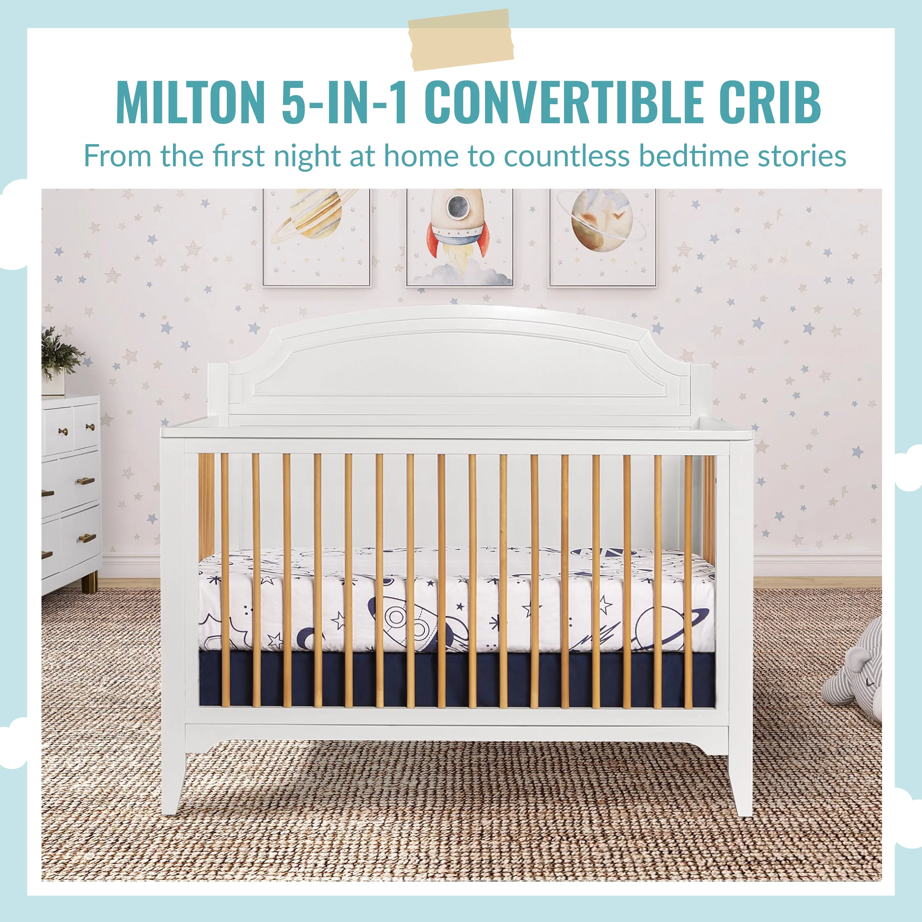 Dream On Me Milton 5 in 1 Convertible Crib made with Sustainable New Zealand Pinewood, White And Natural