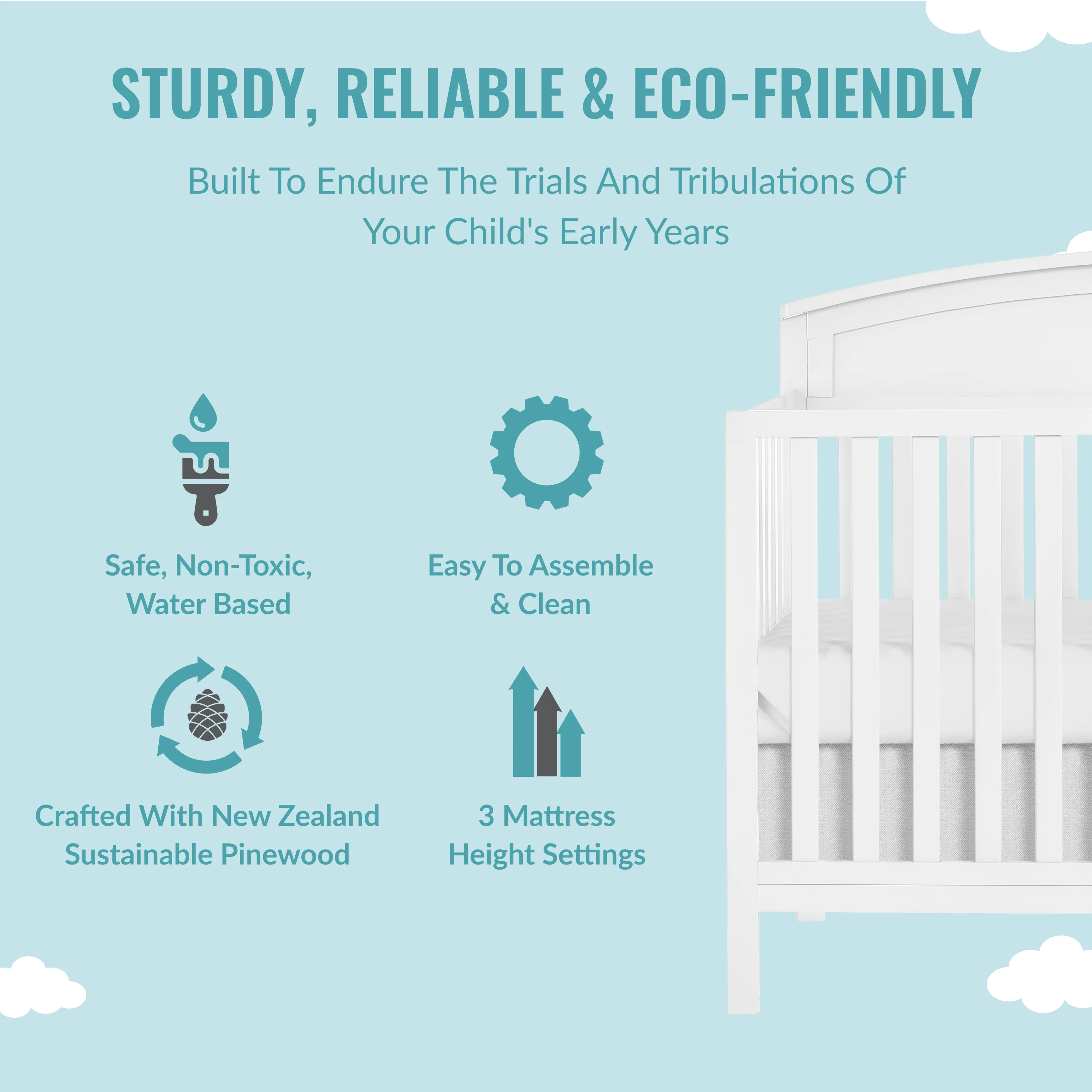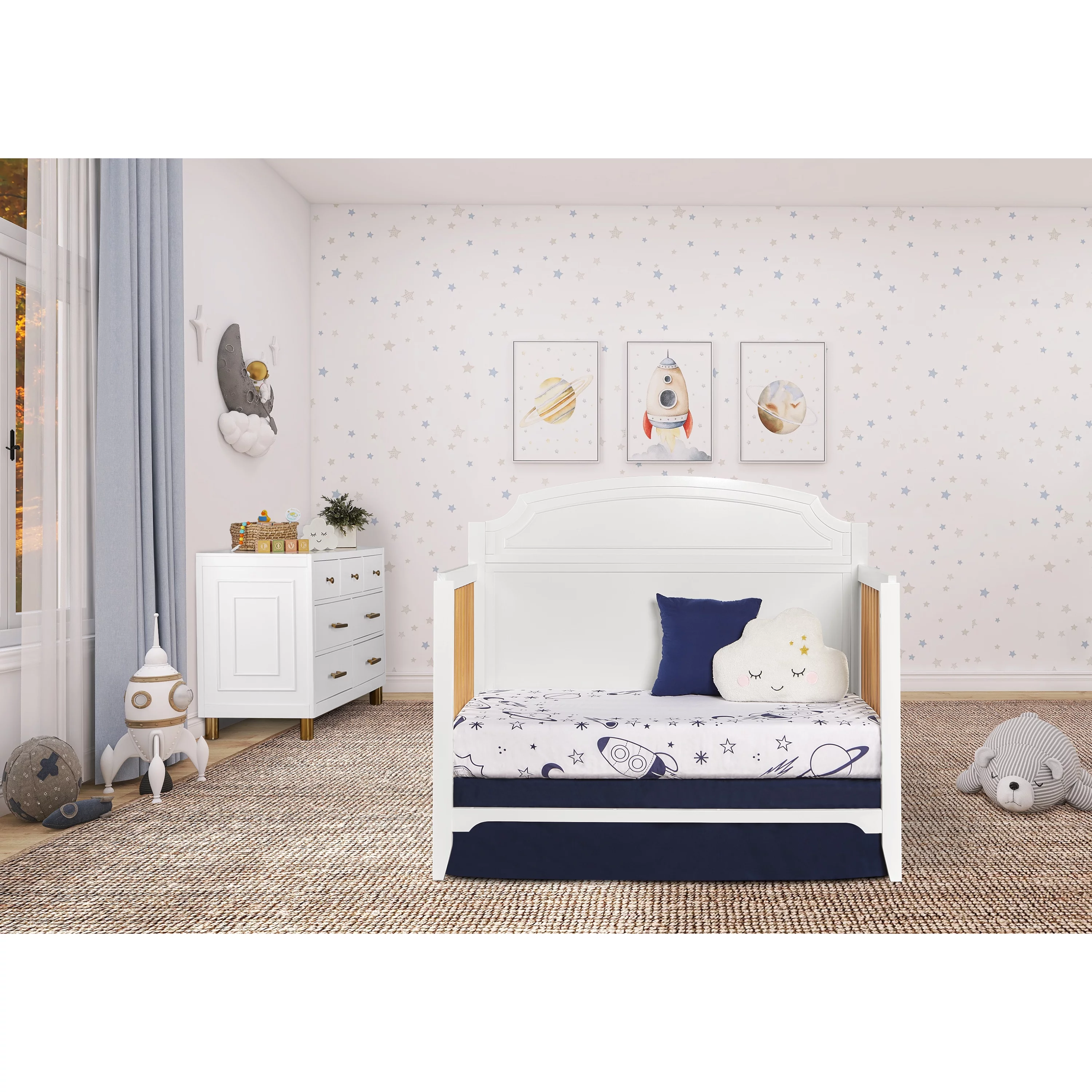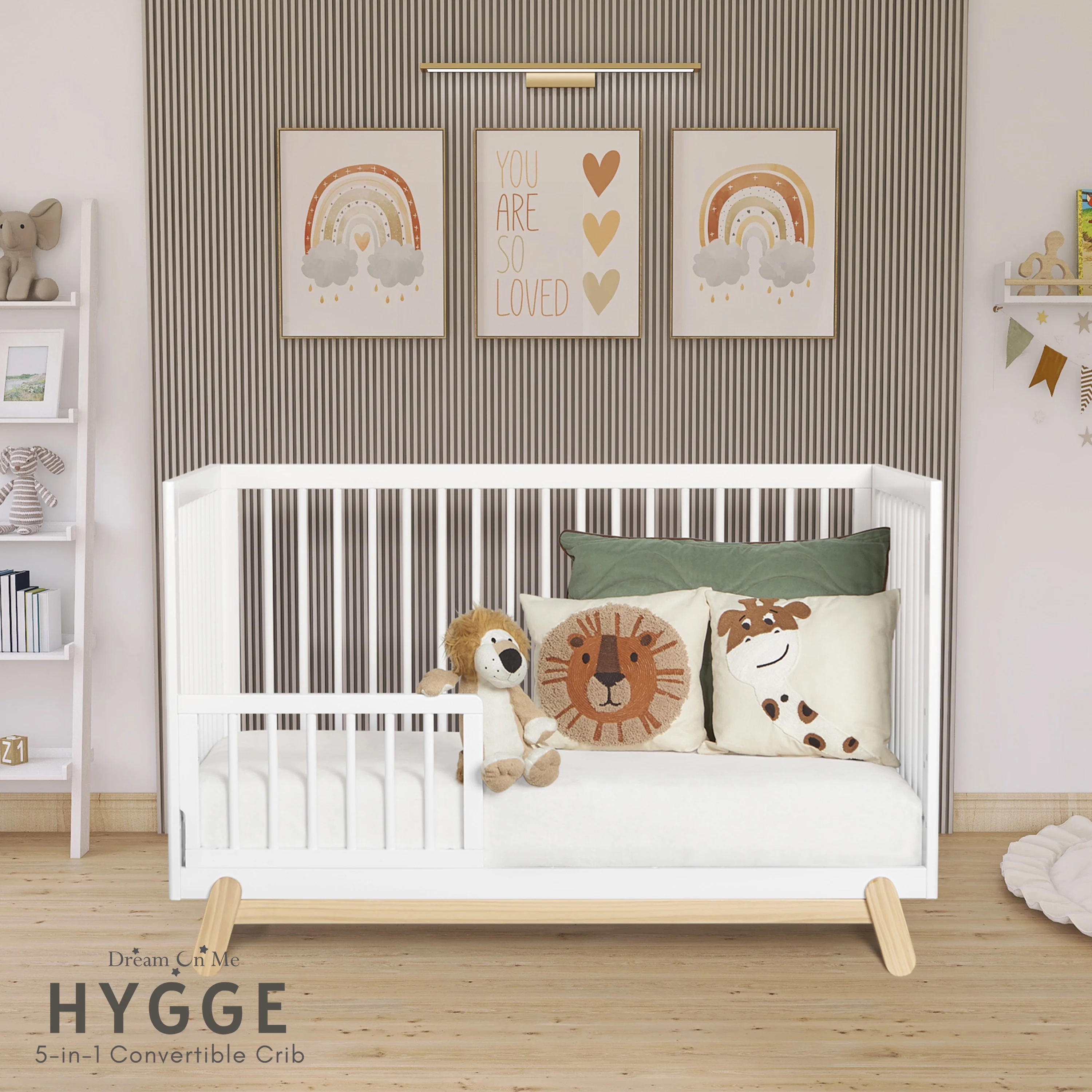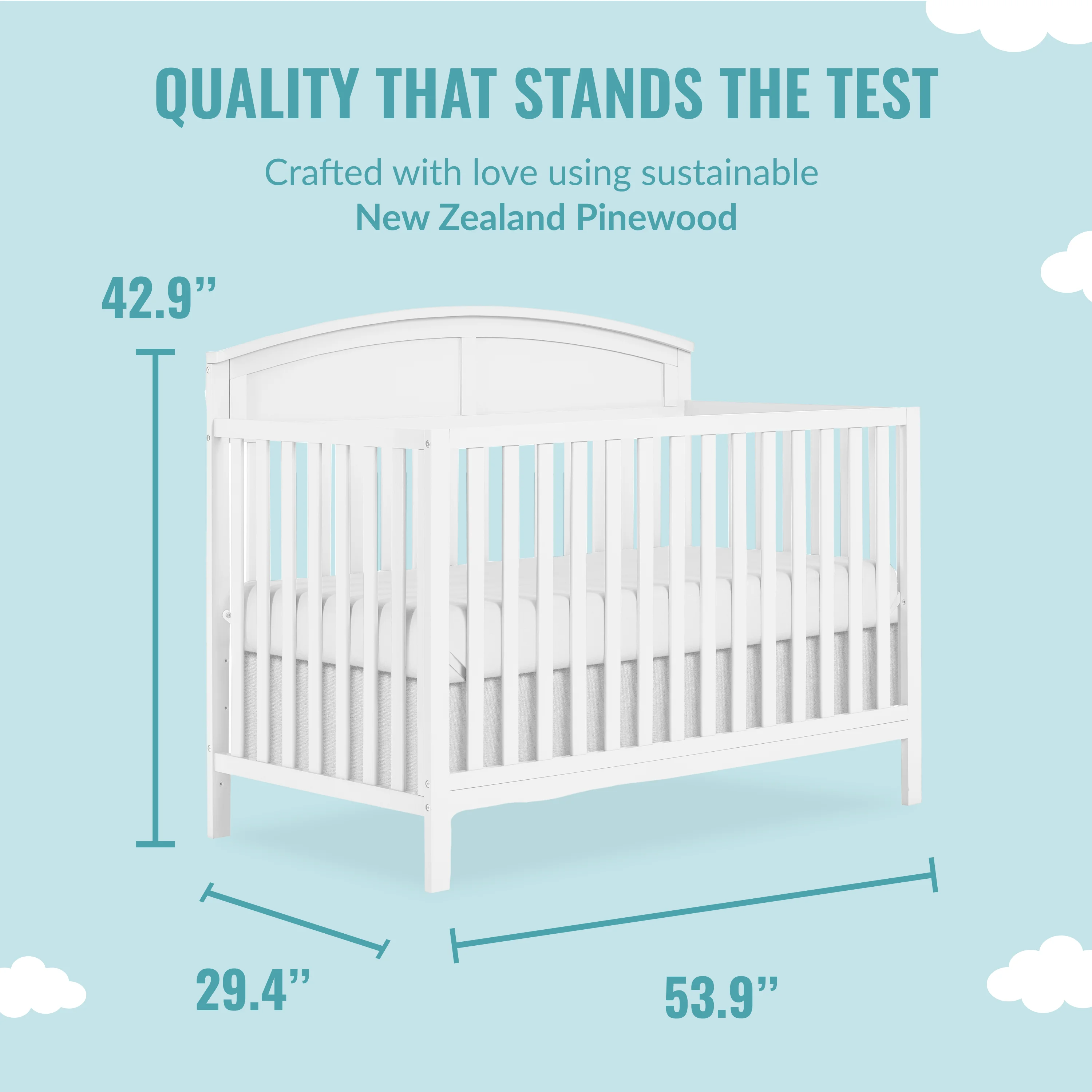 Dream On Me Milton 5 in 1 Convertible Crib made with Sustainable New Zealand Pinewood, White And Natural