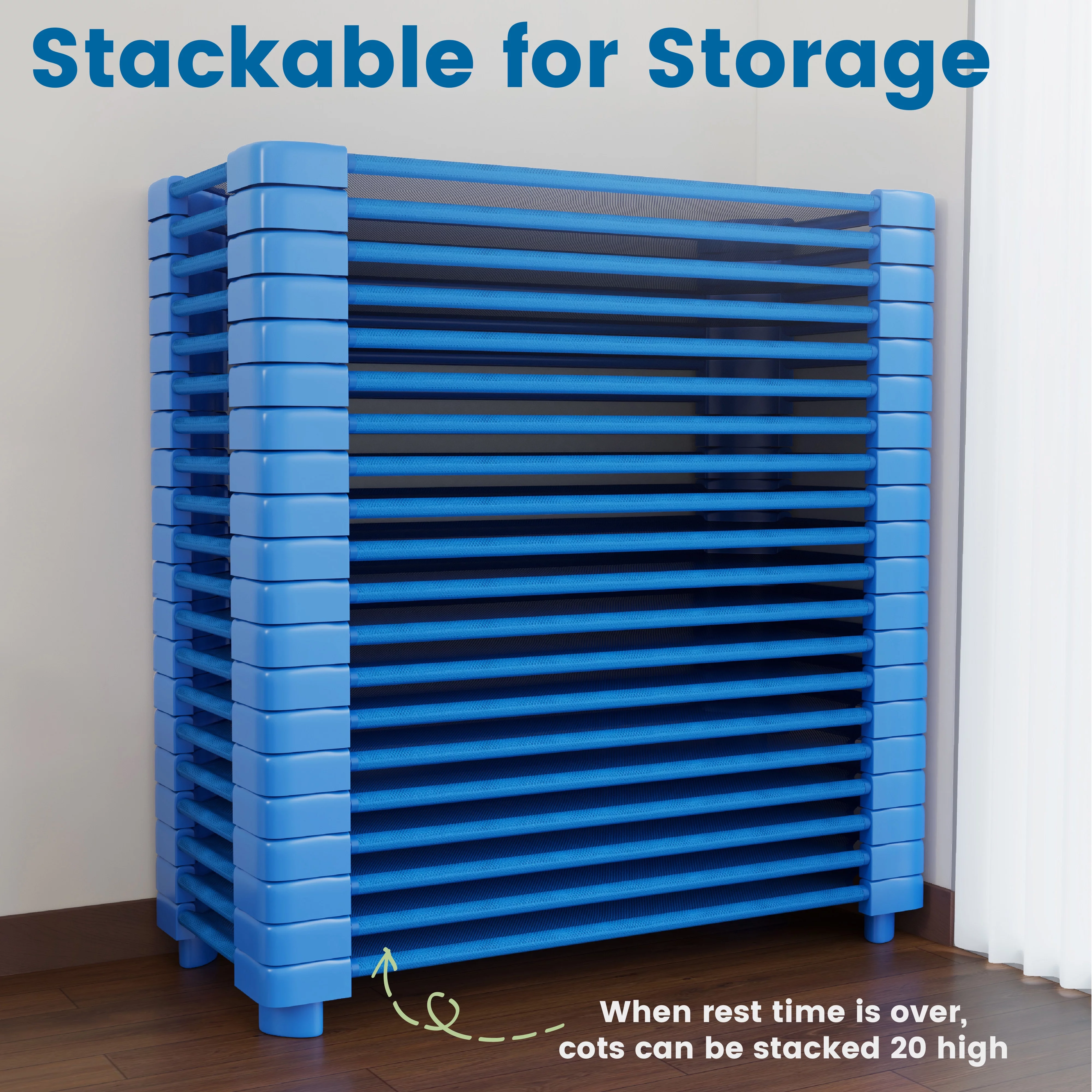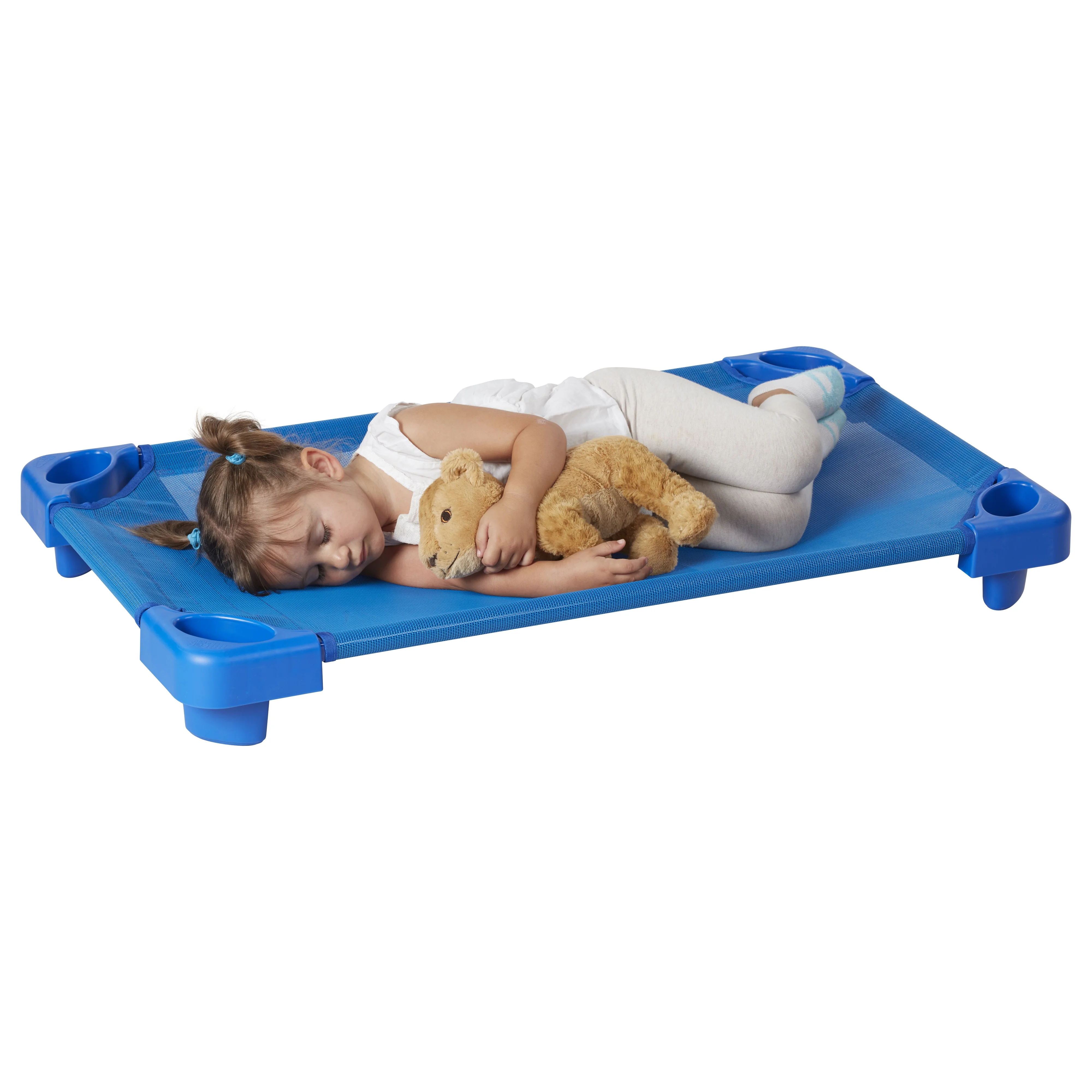 ECR4Kids Stackable Kiddie Cot, Toddler Size, Classroom Furniture, Blue, 6-Pack