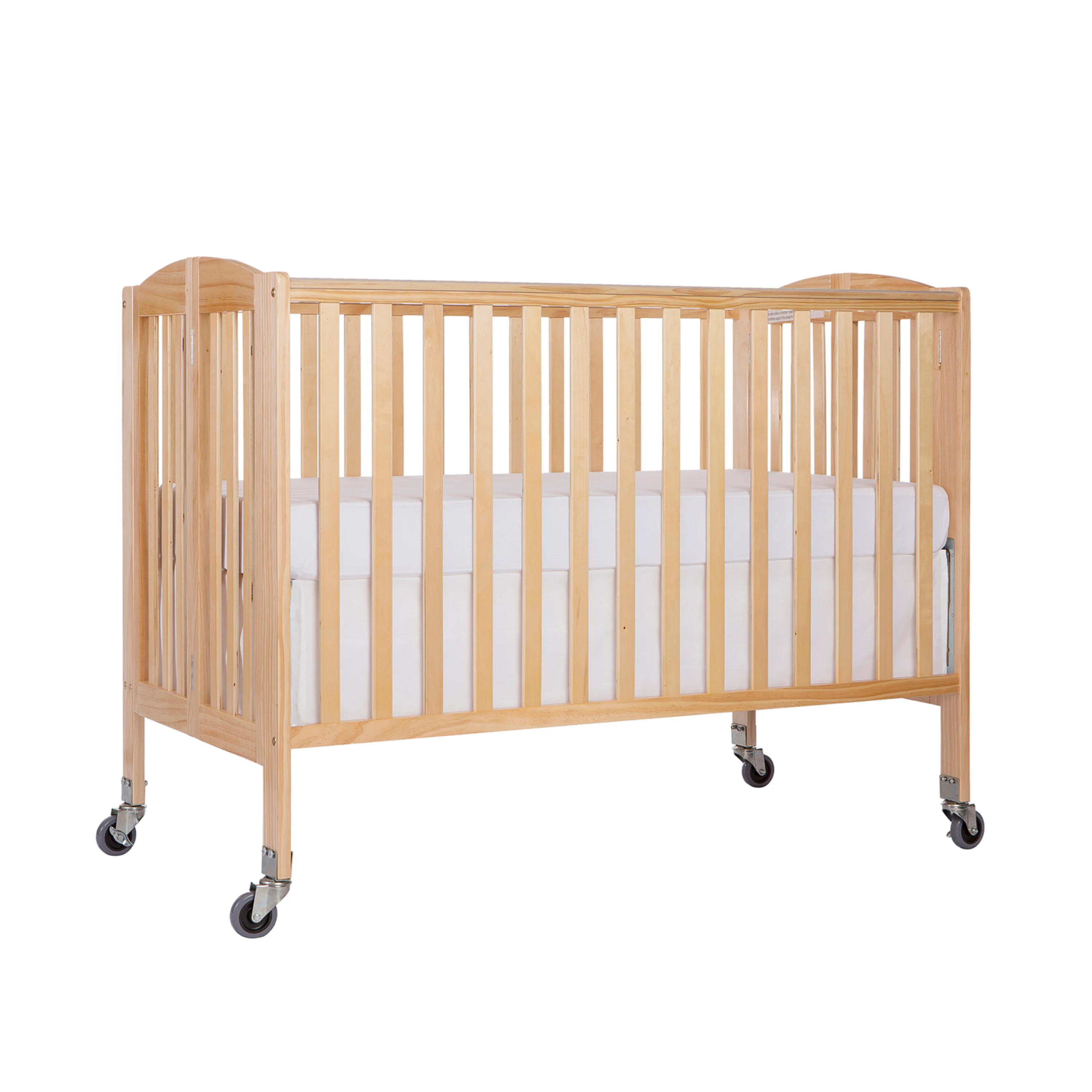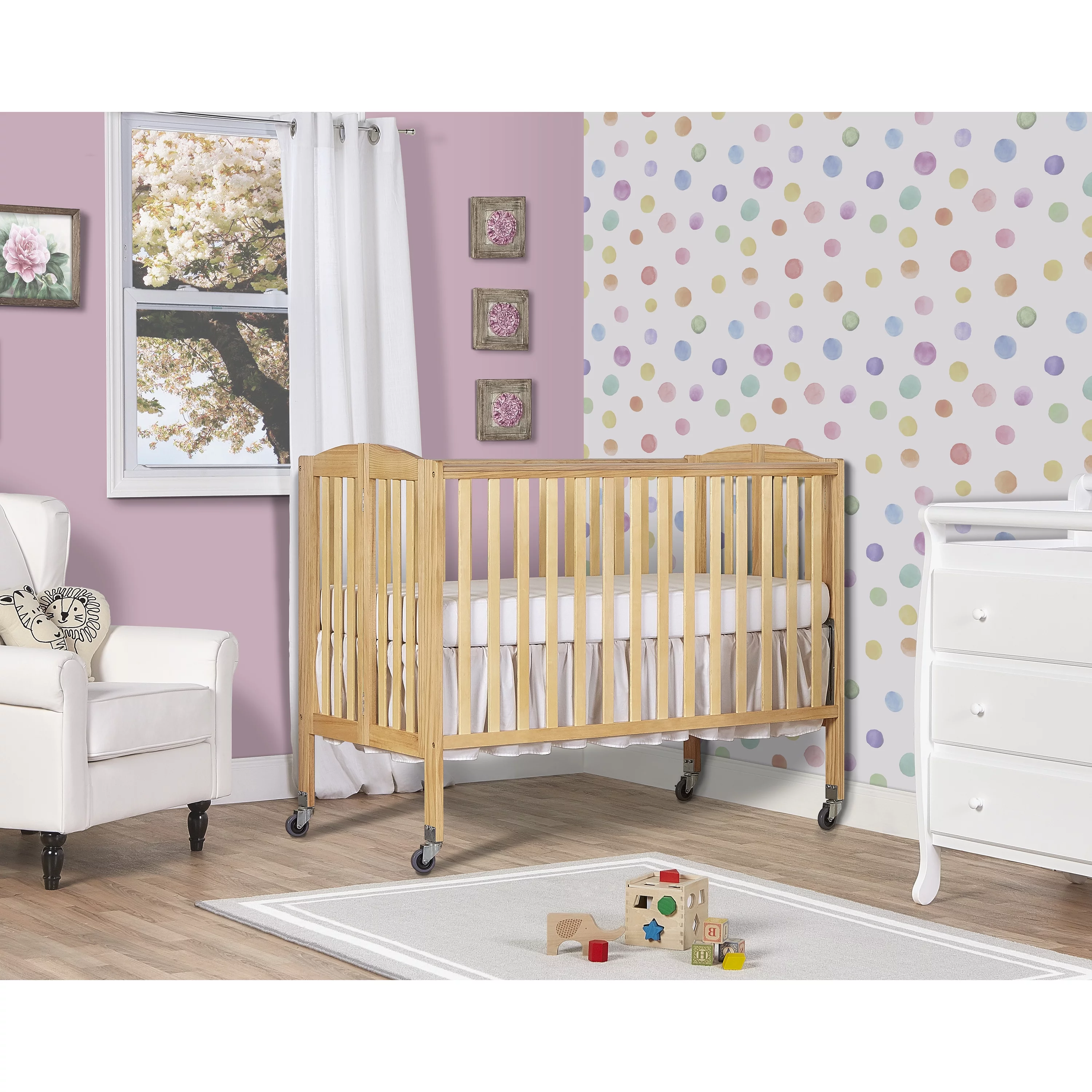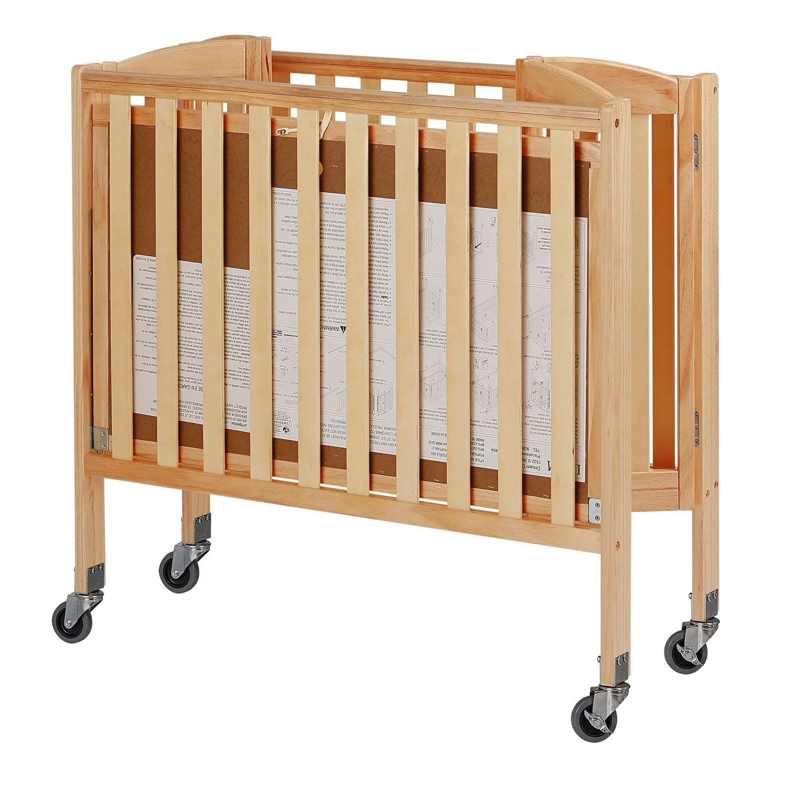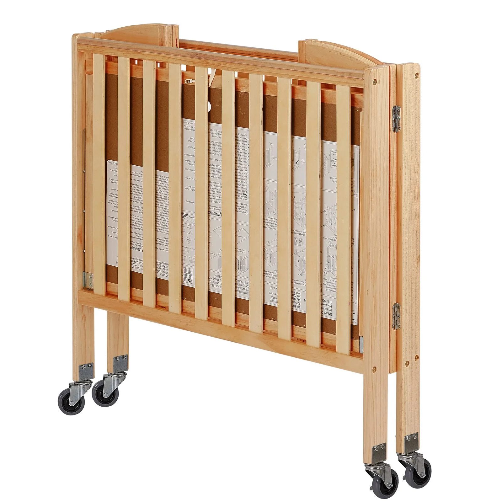 Dream On Me Folding Full Size Convenience Crib in Natural, Comes With Heavy Duty Locking Wheels