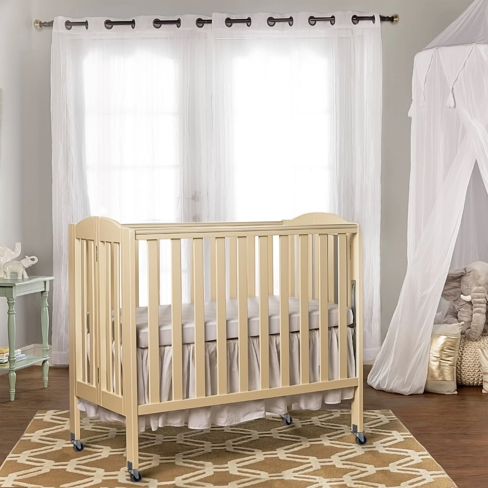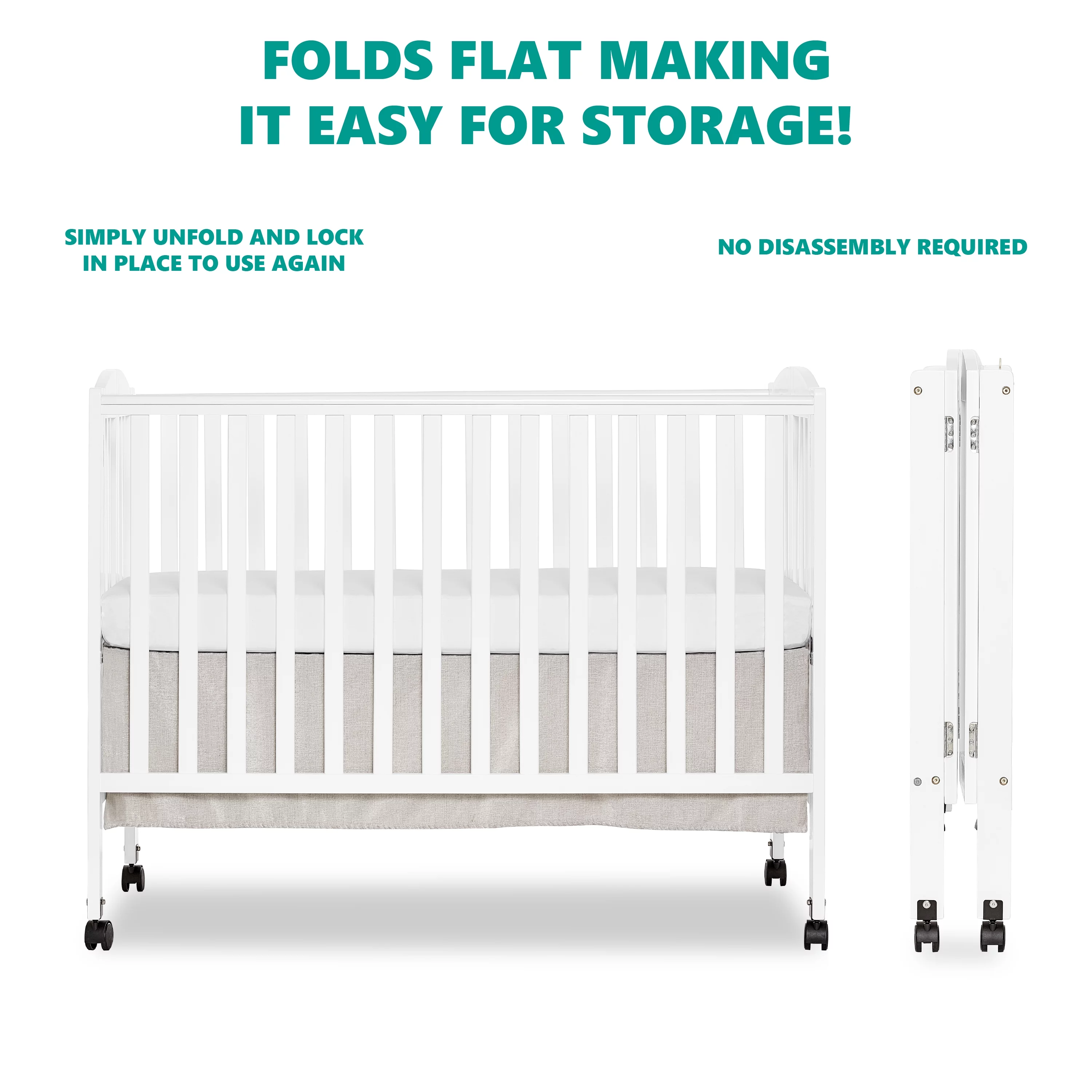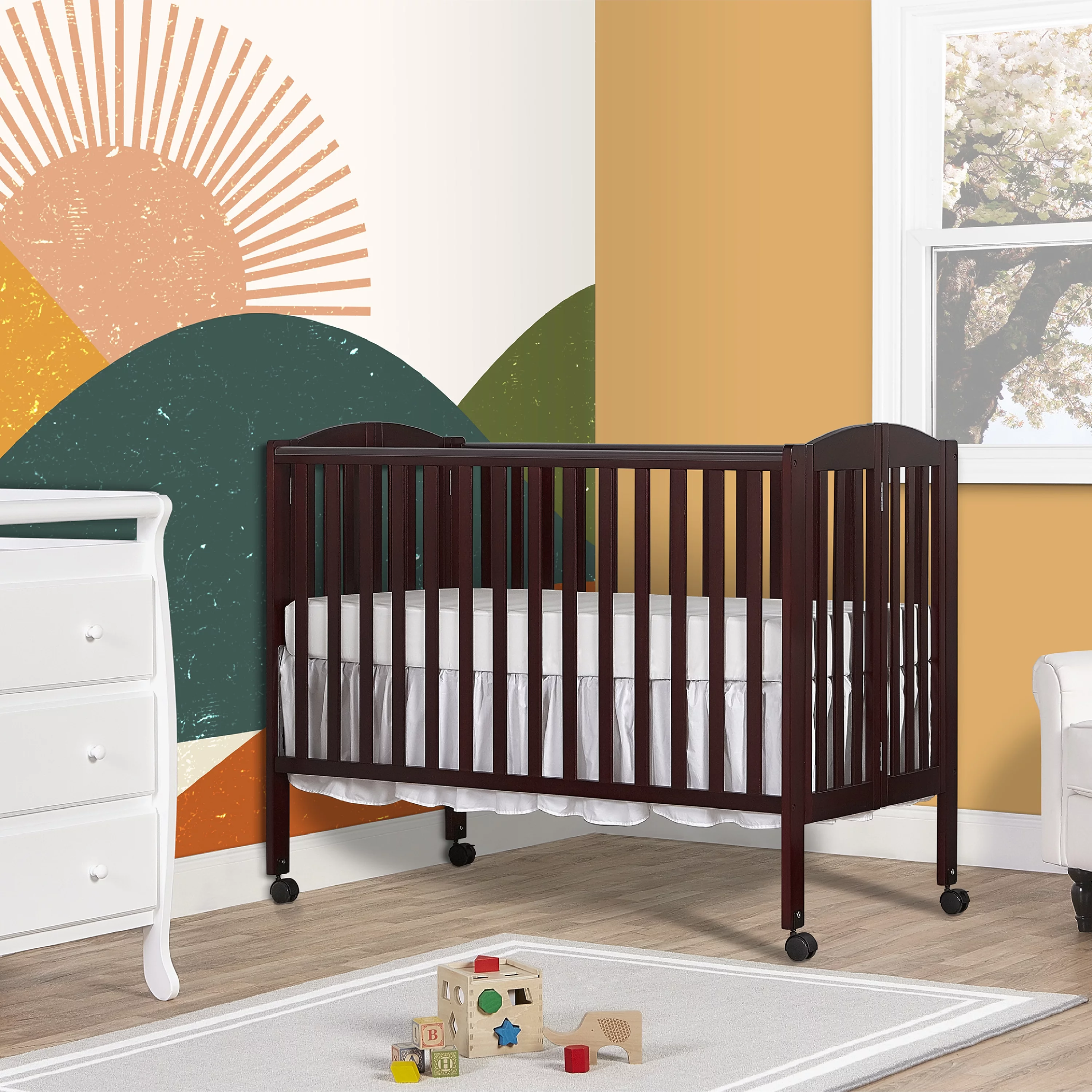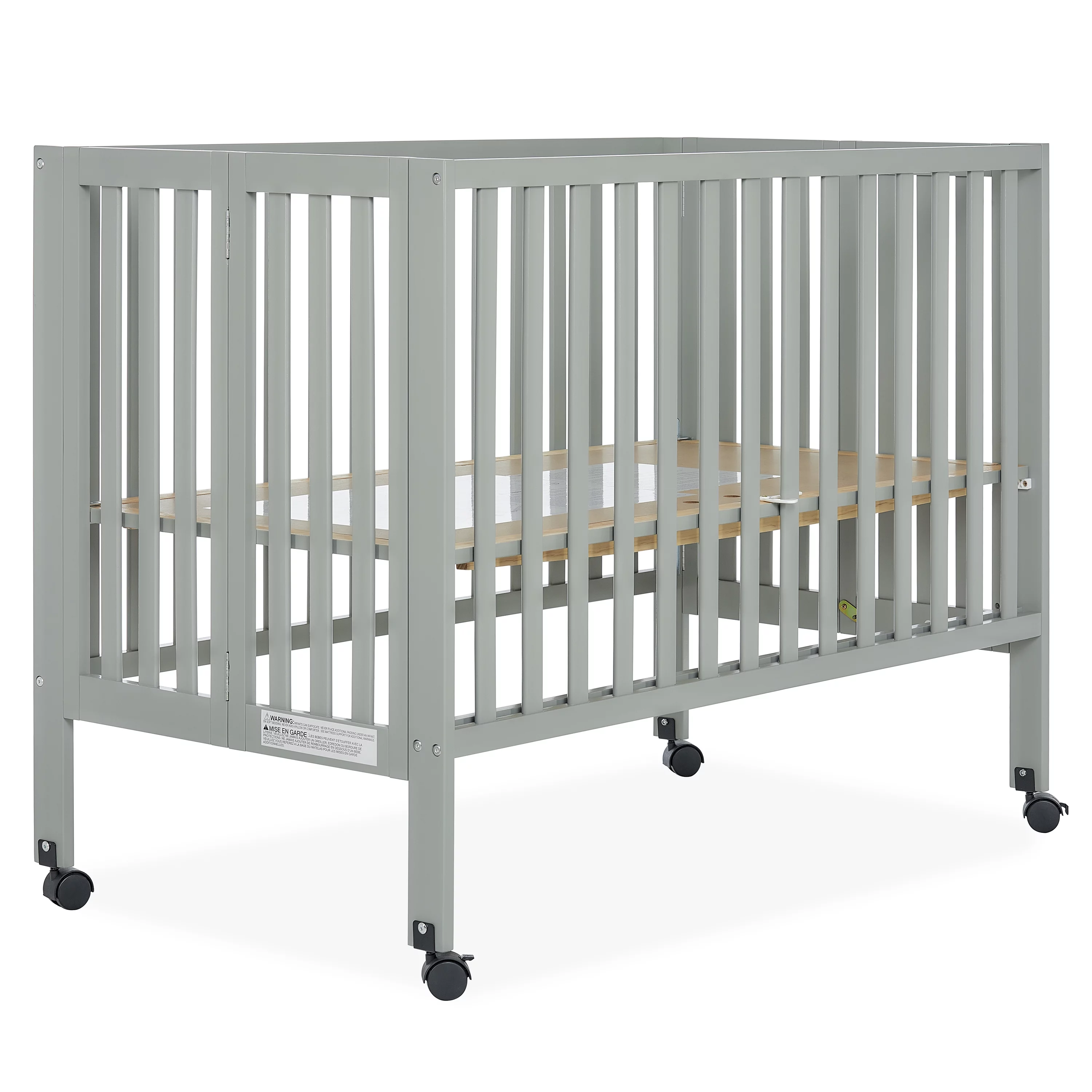 Dream On Me Folding Full Size Convenience Crib in Natural, Comes With Heavy Duty Locking Wheels
