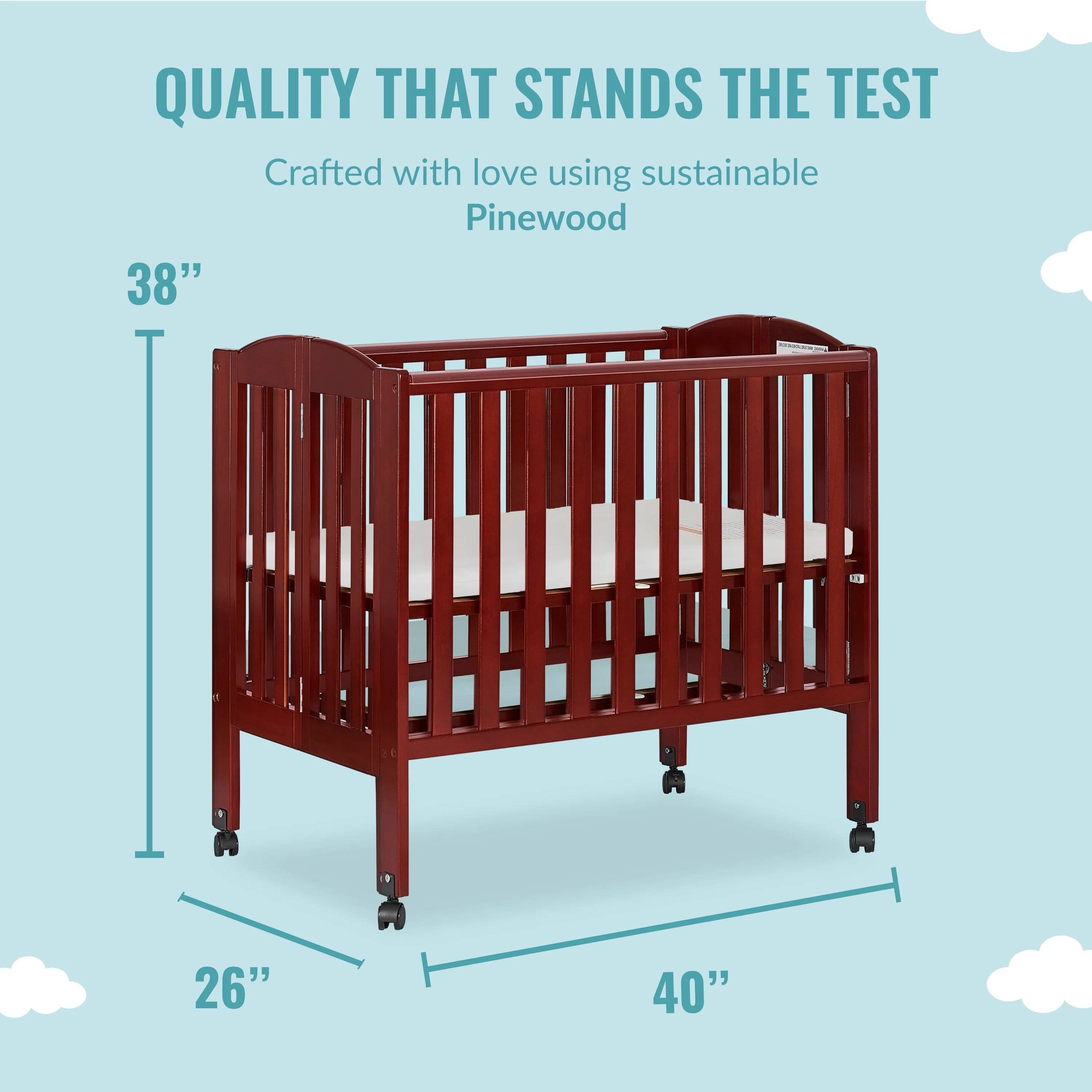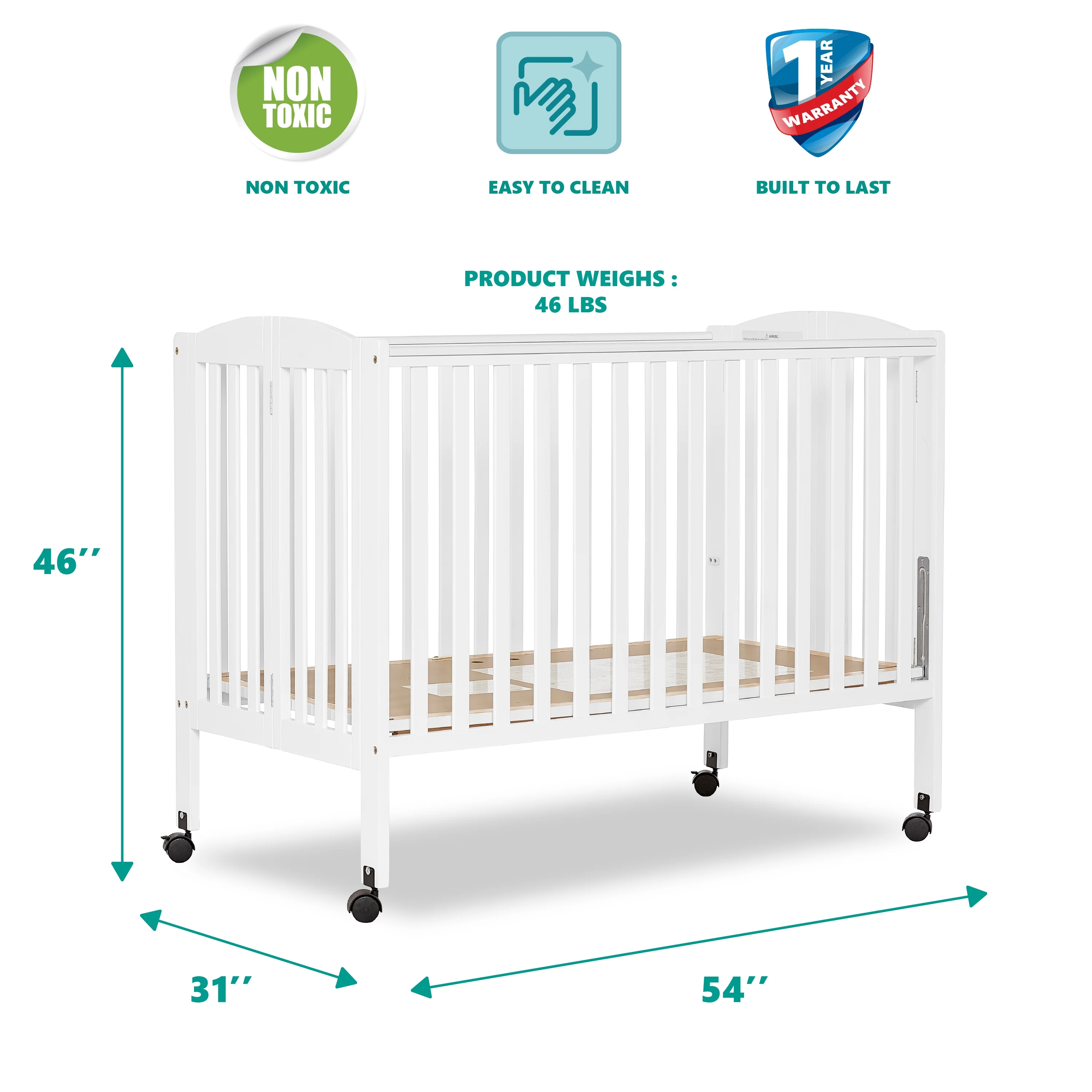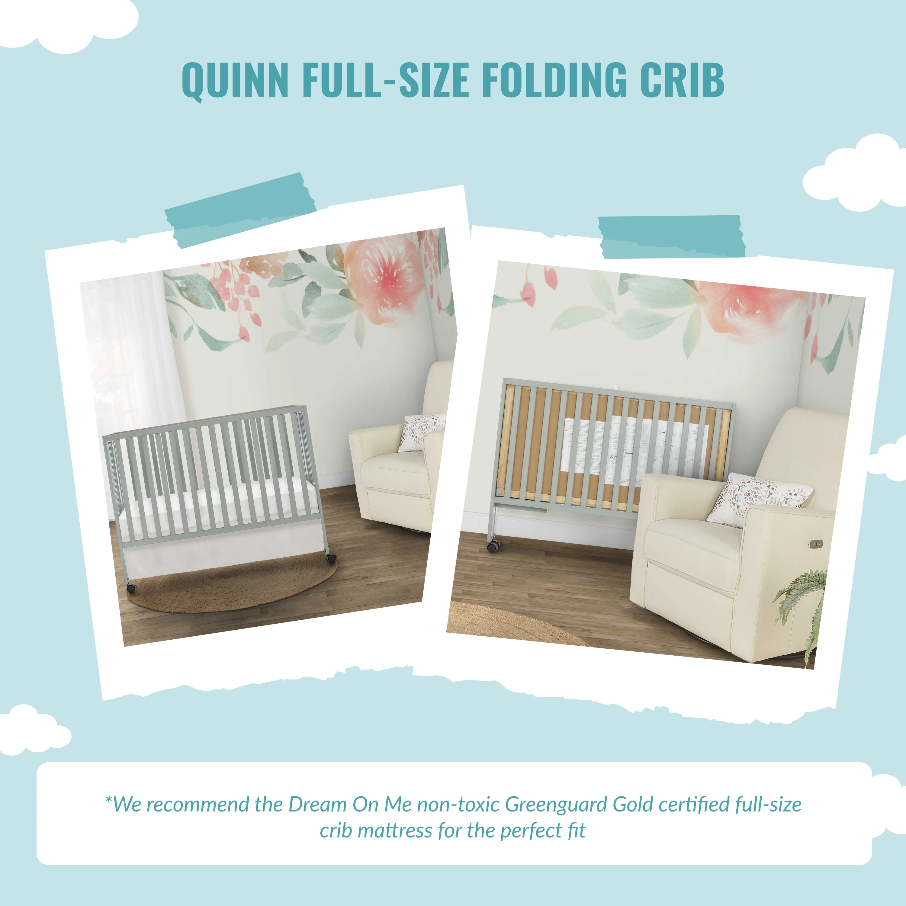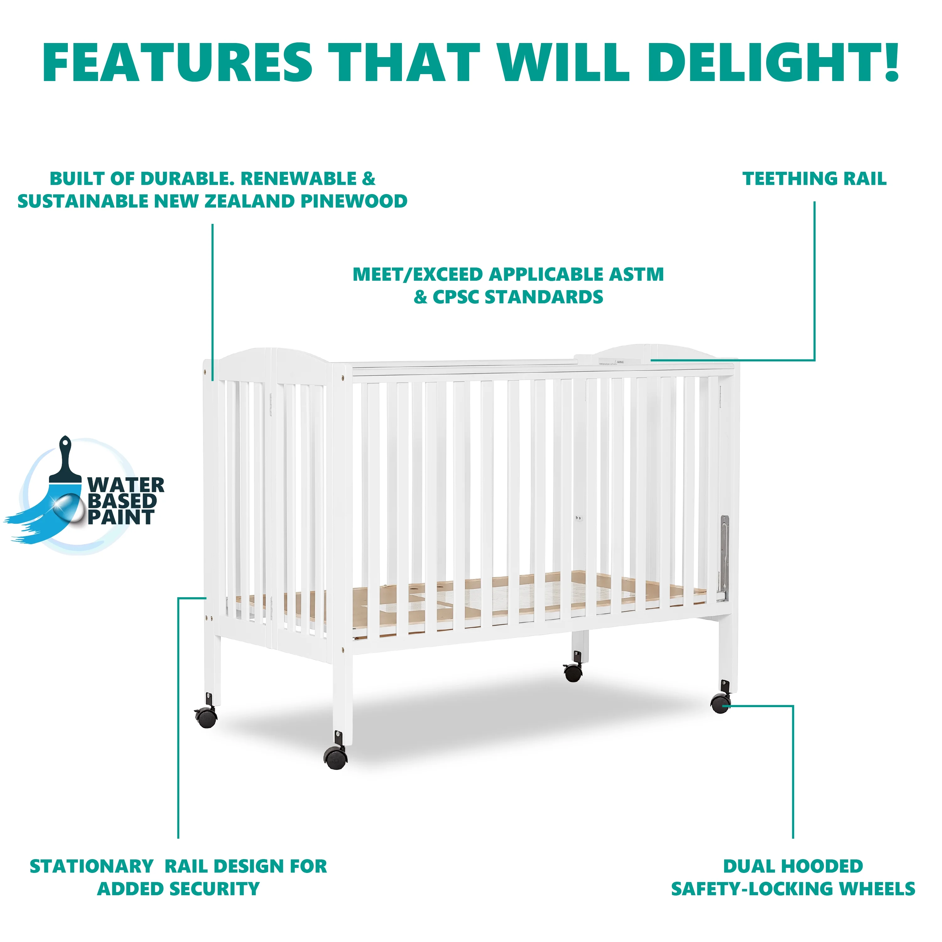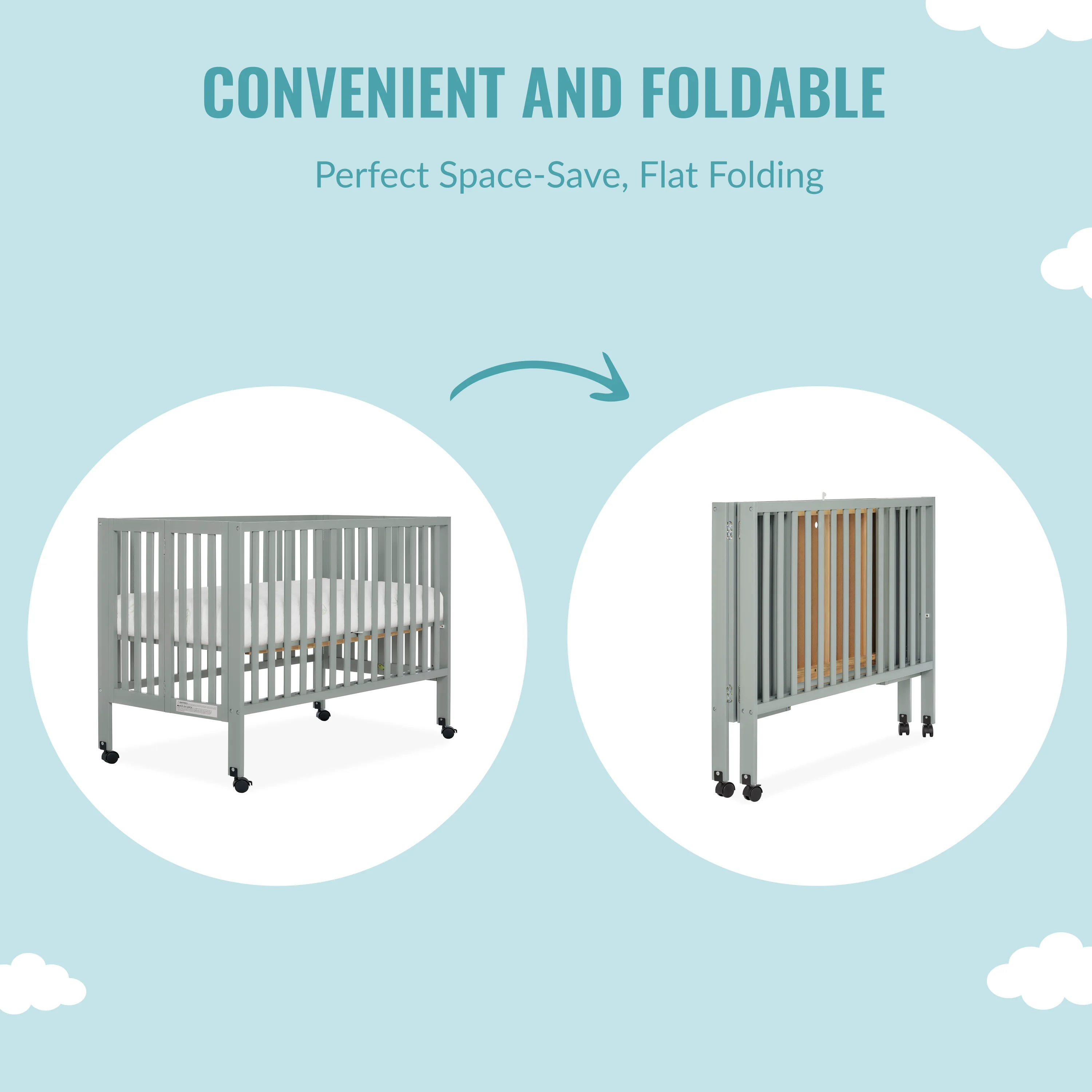 Dream On Me Folding Full Size Convenience Crib in Natural, Comes With Heavy Duty Locking Wheels