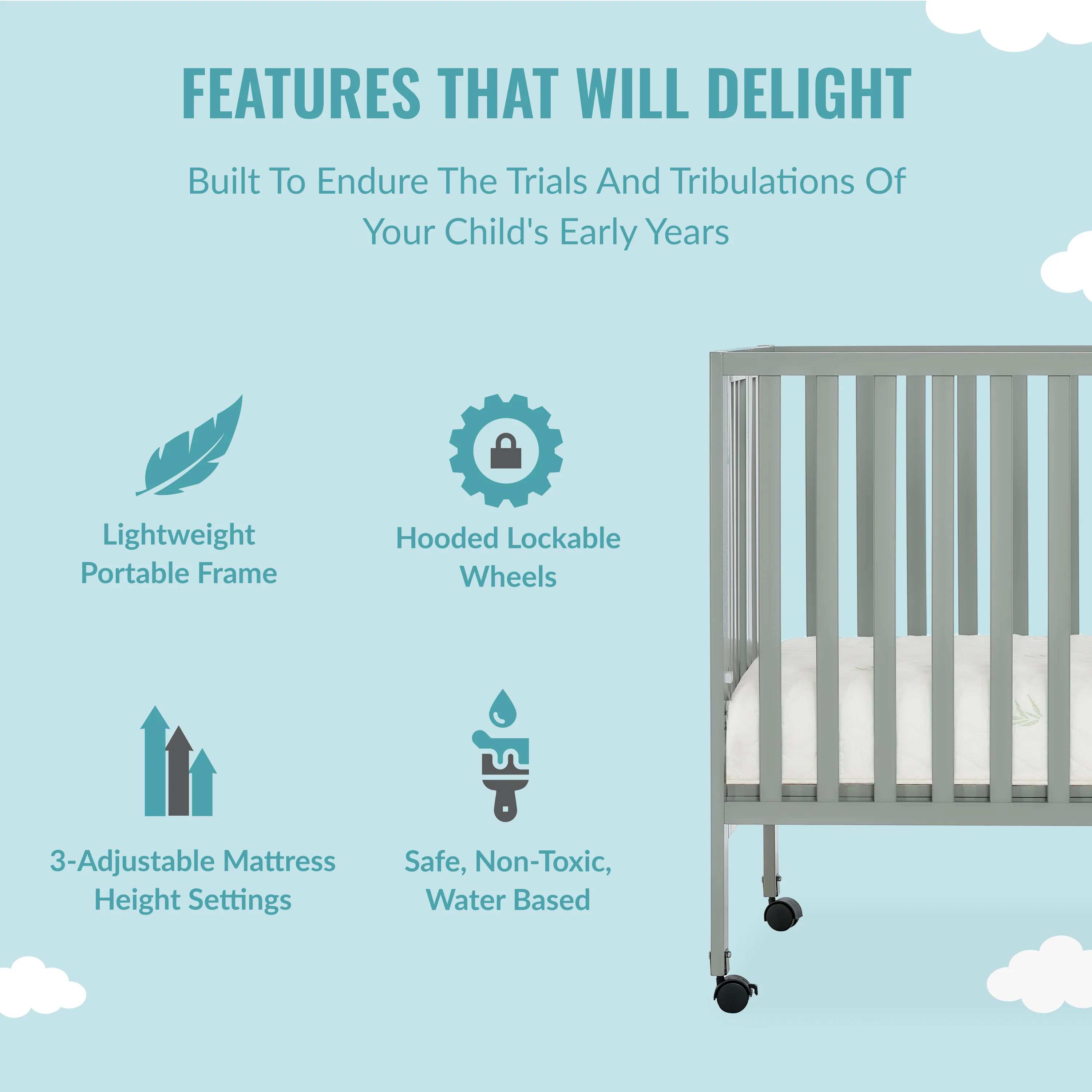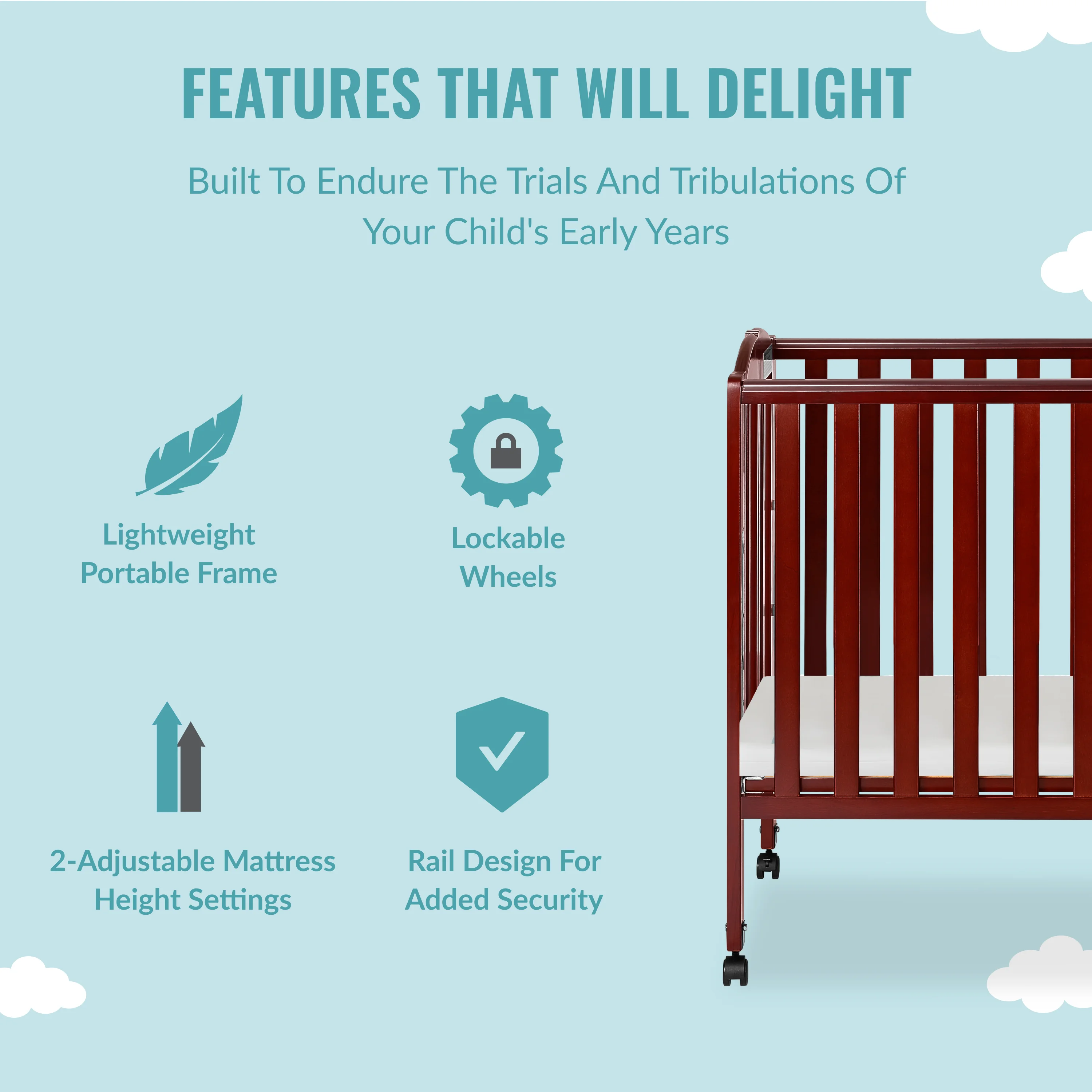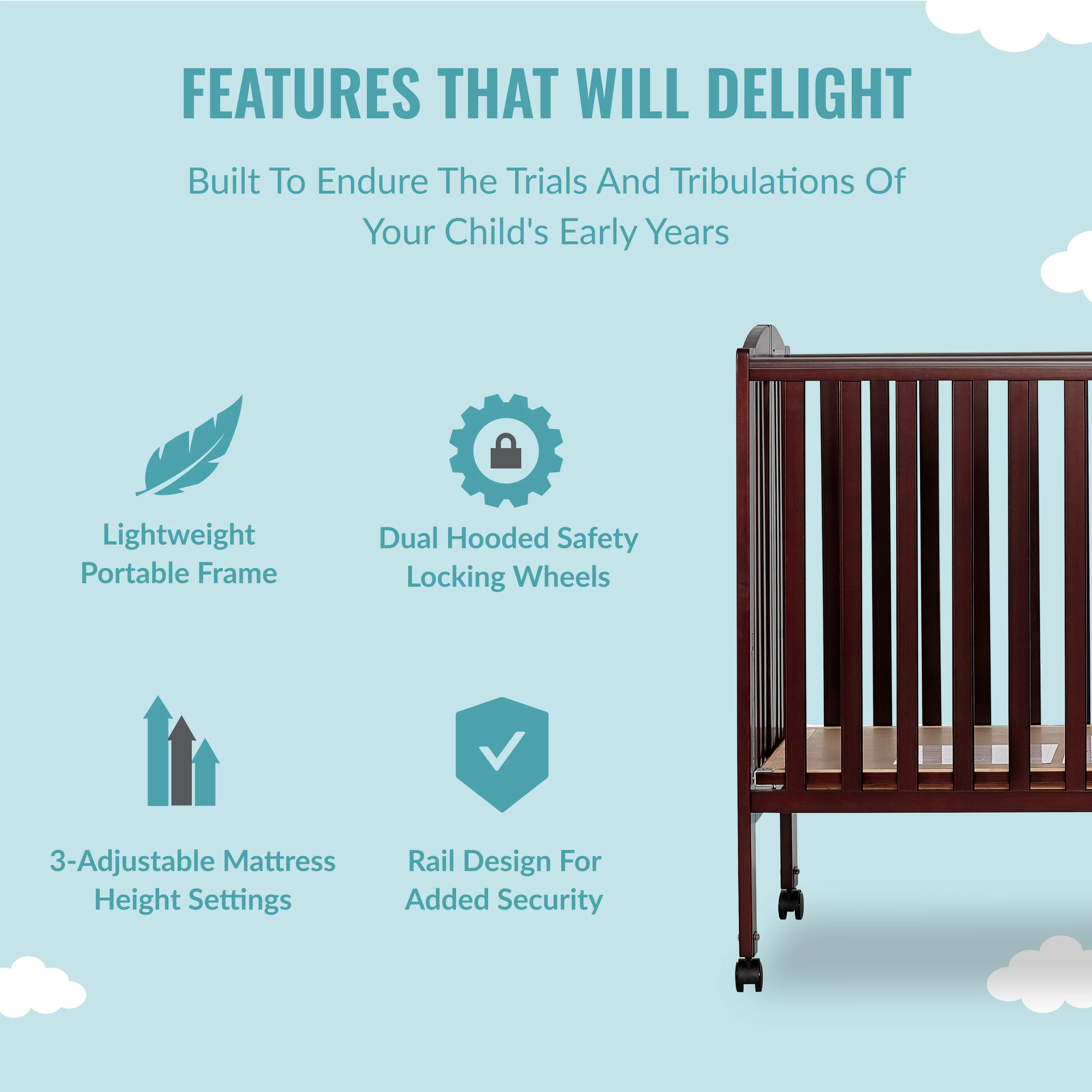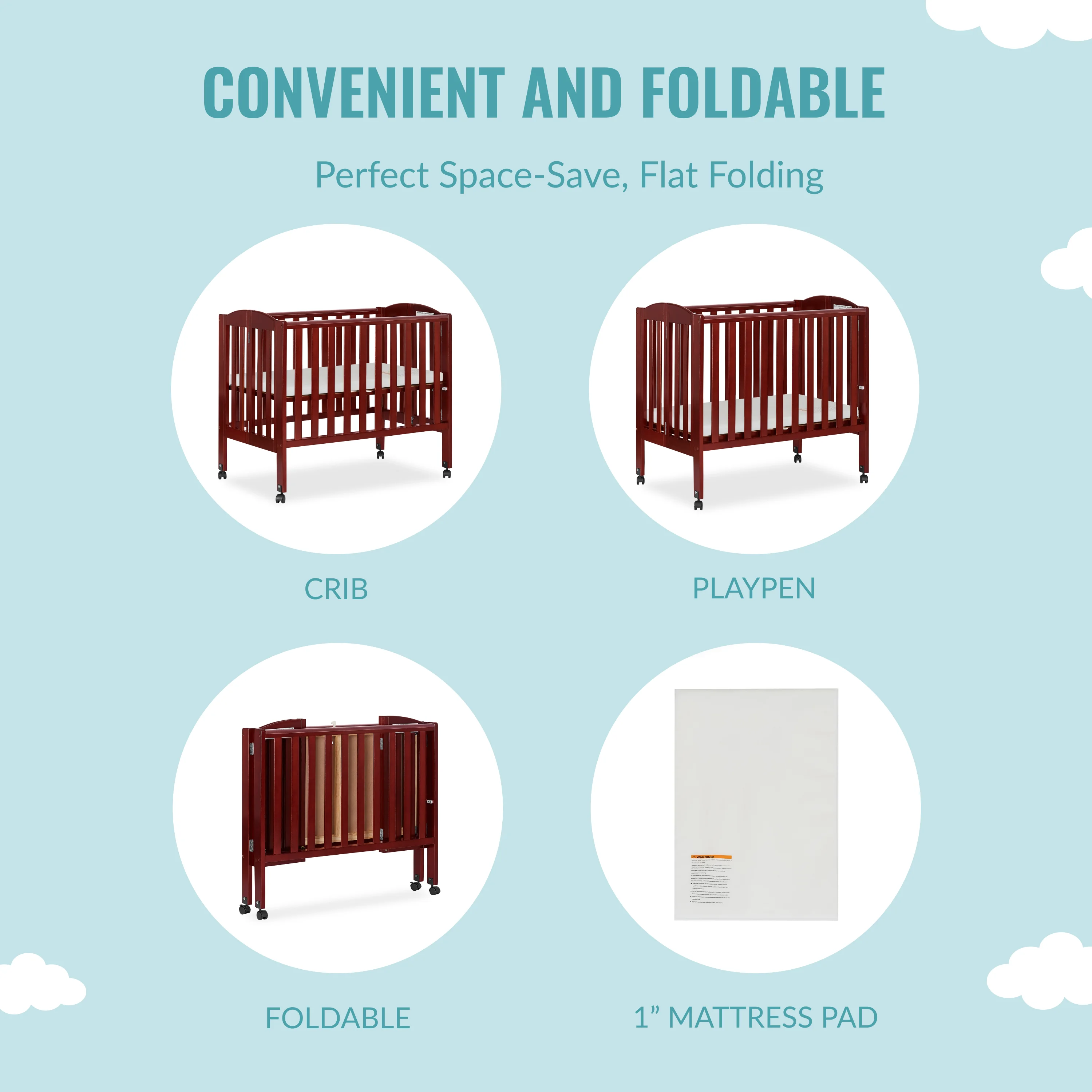 Dream On Me Folding Full Size Convenience Crib in Natural, Comes With Heavy Duty Locking Wheels