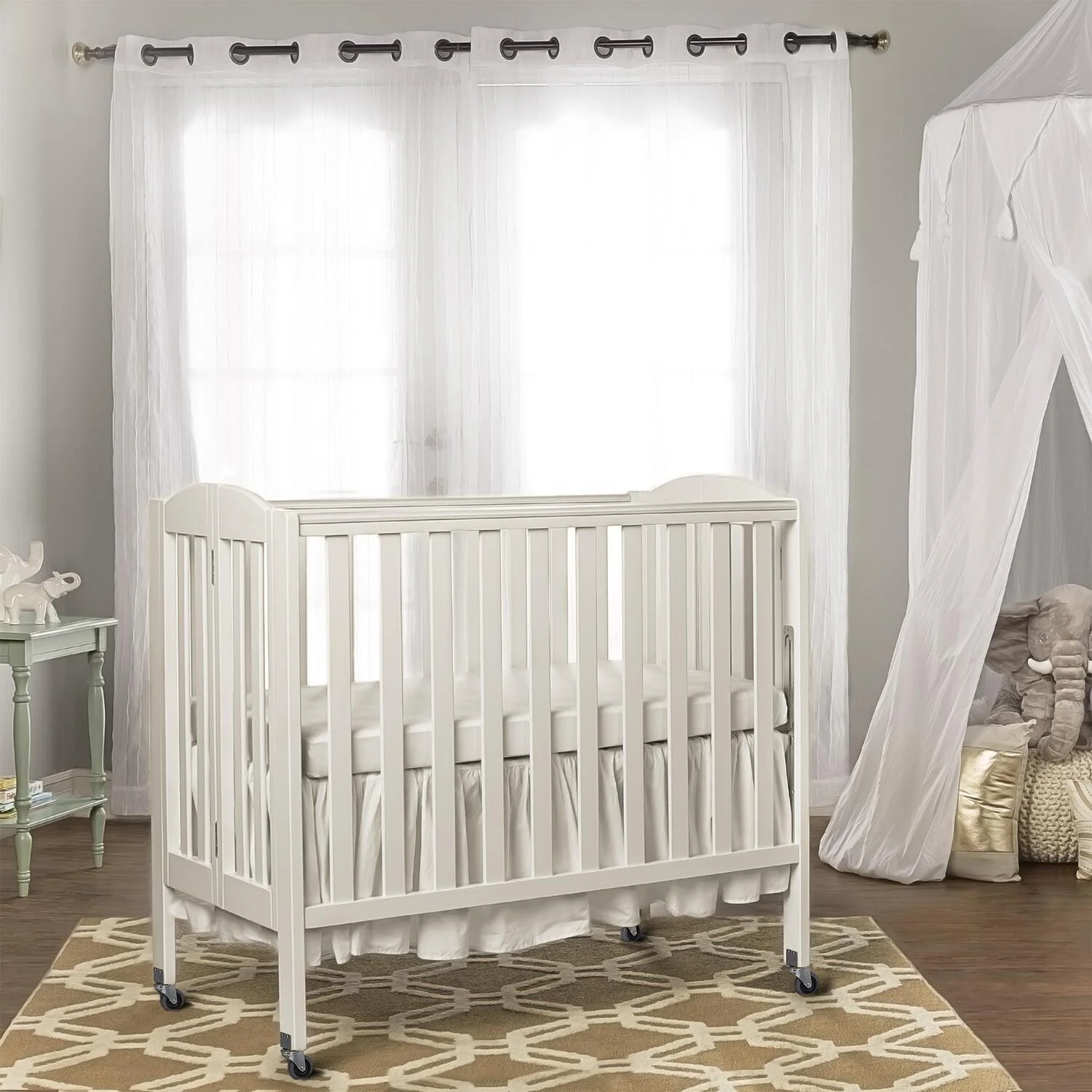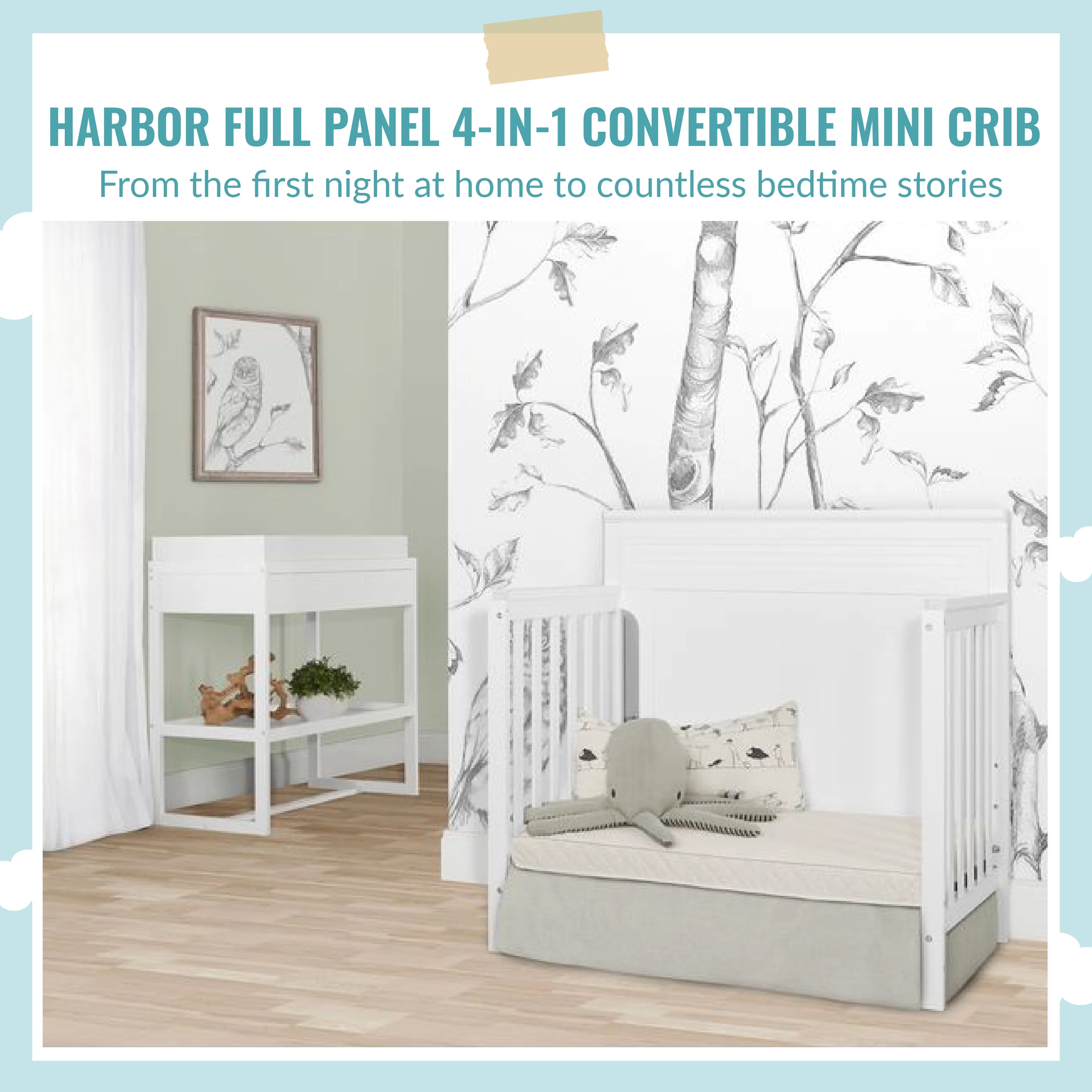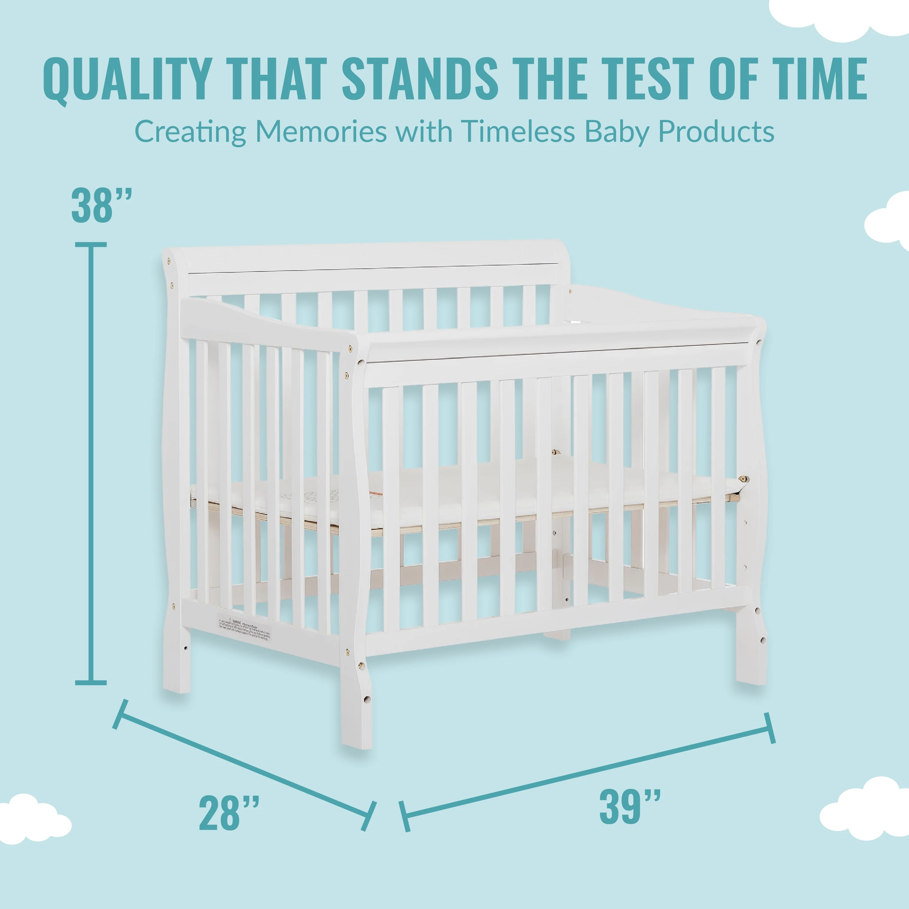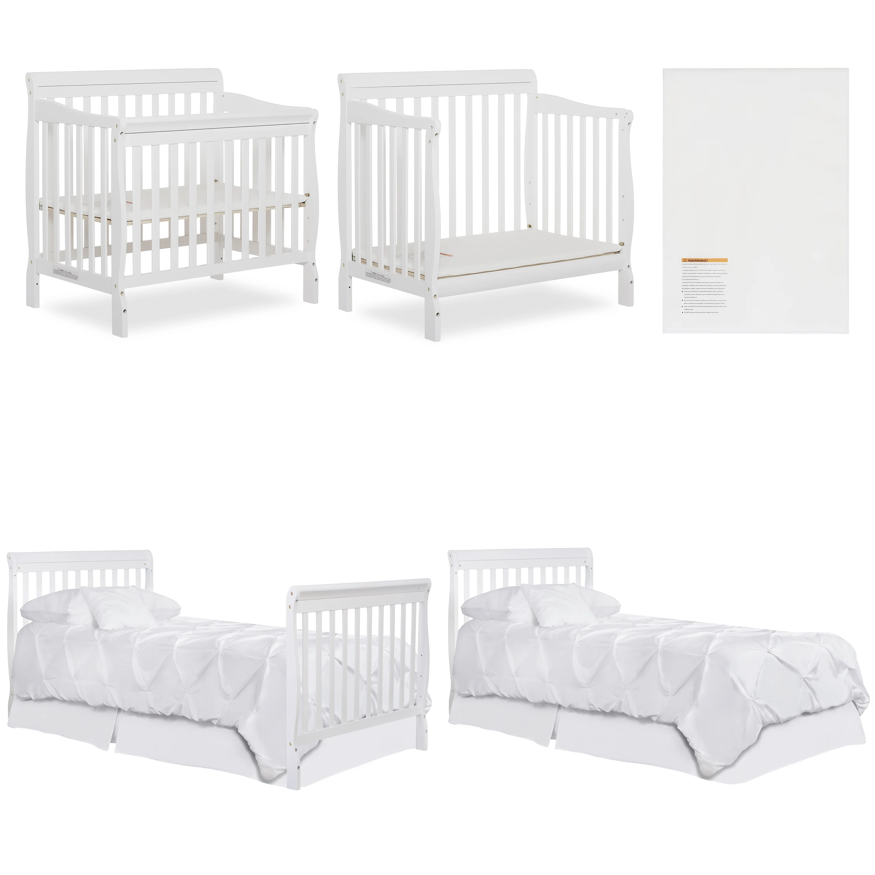 Dream On Me Aden 4-in-1 Convertible Mini Crib In White, Greenguard Gold Certified
