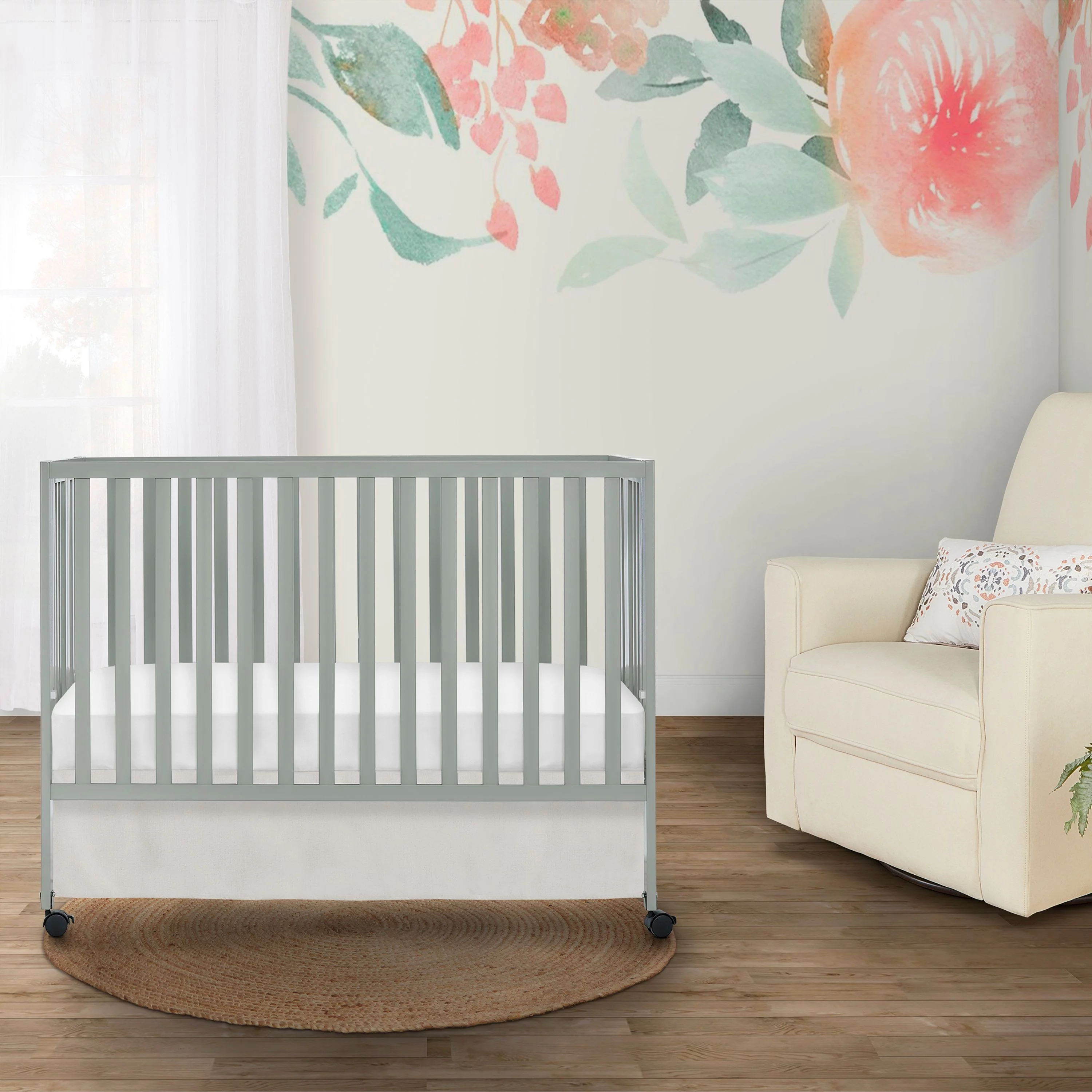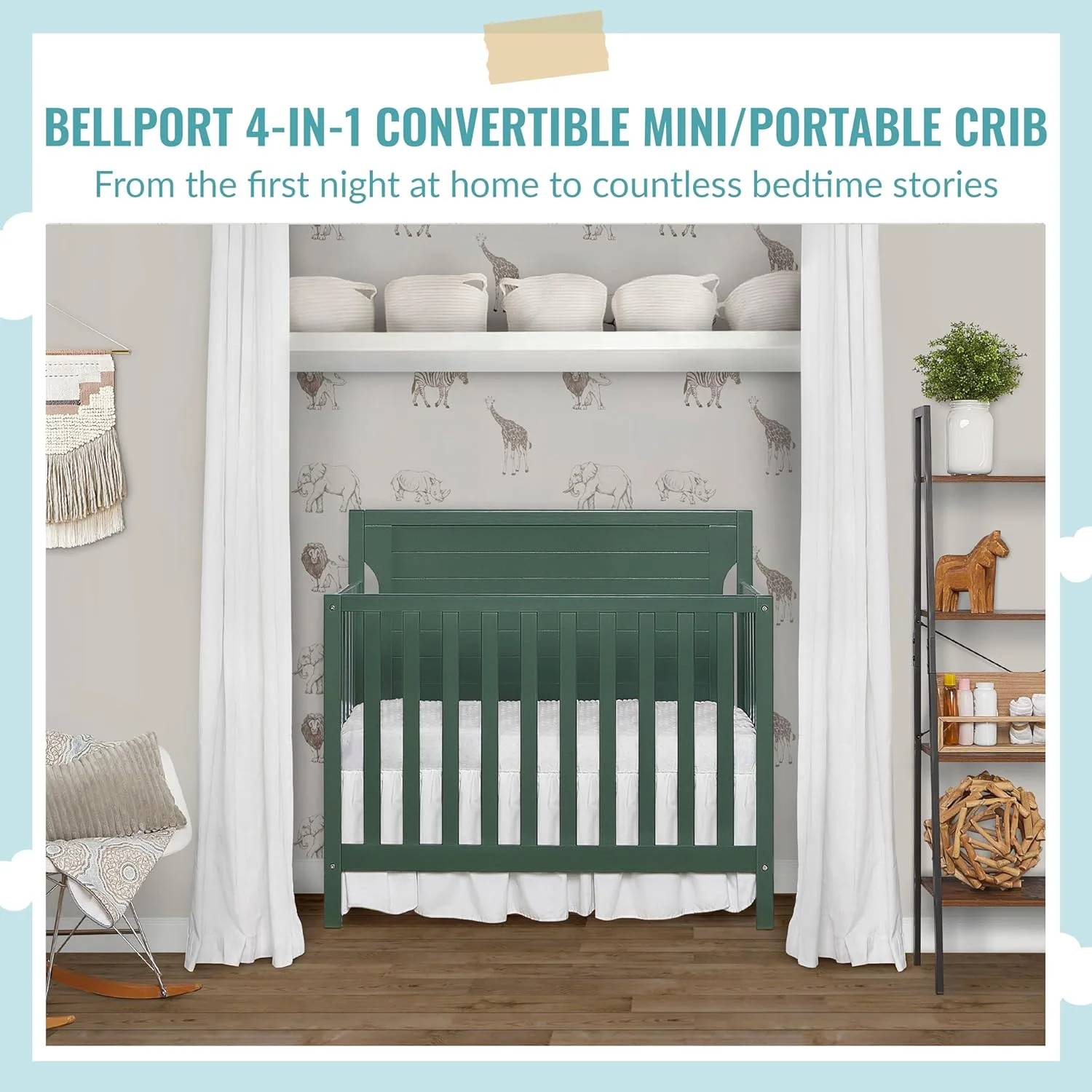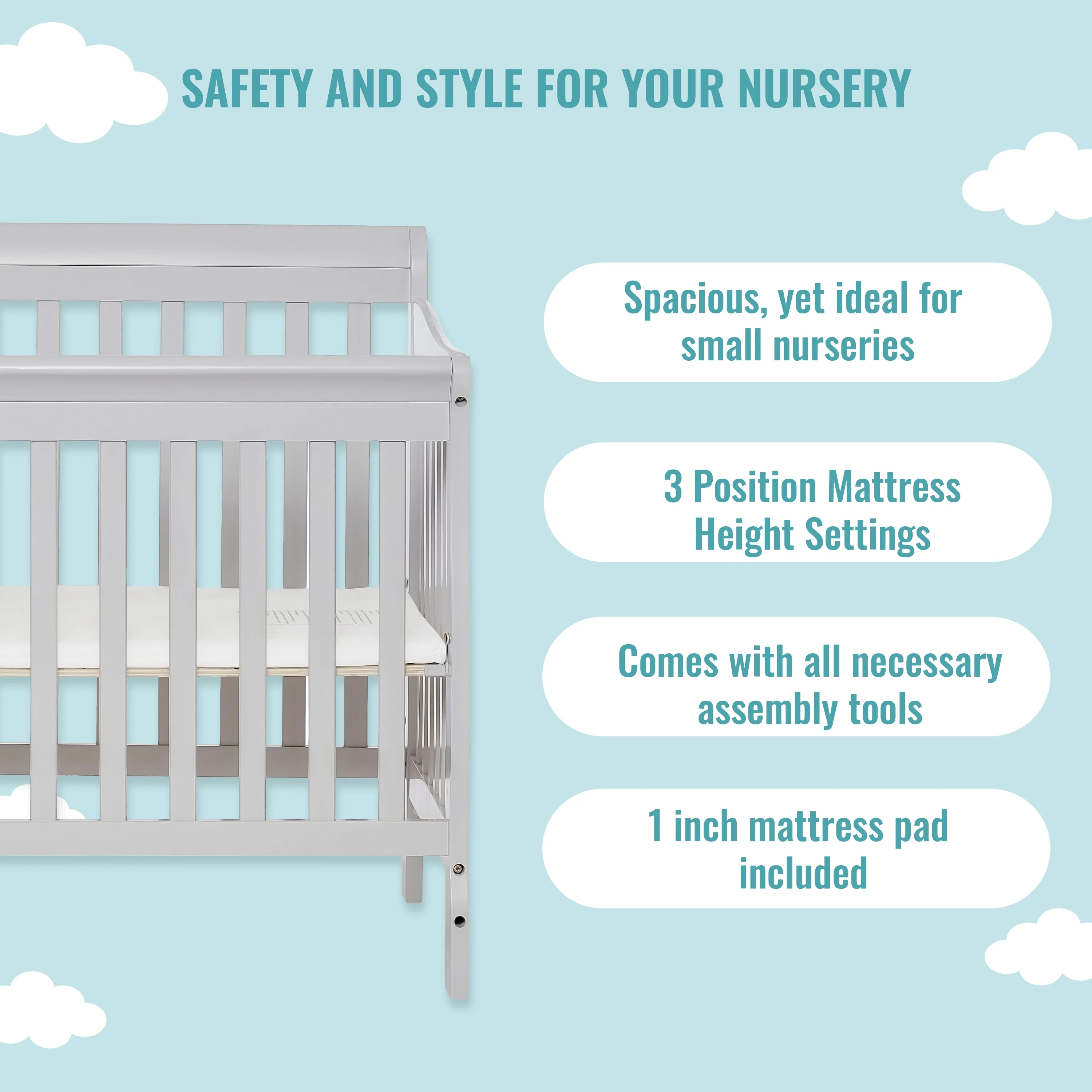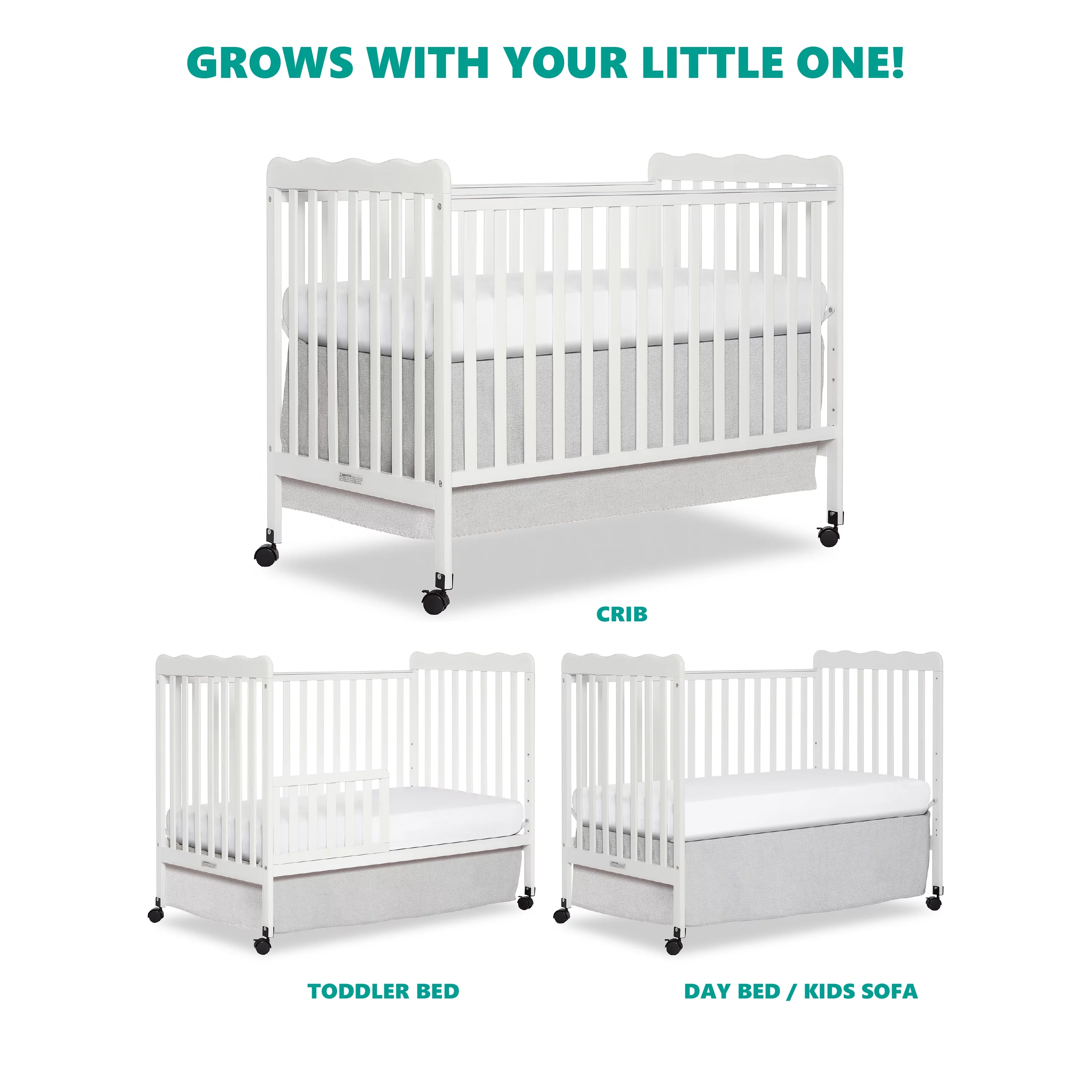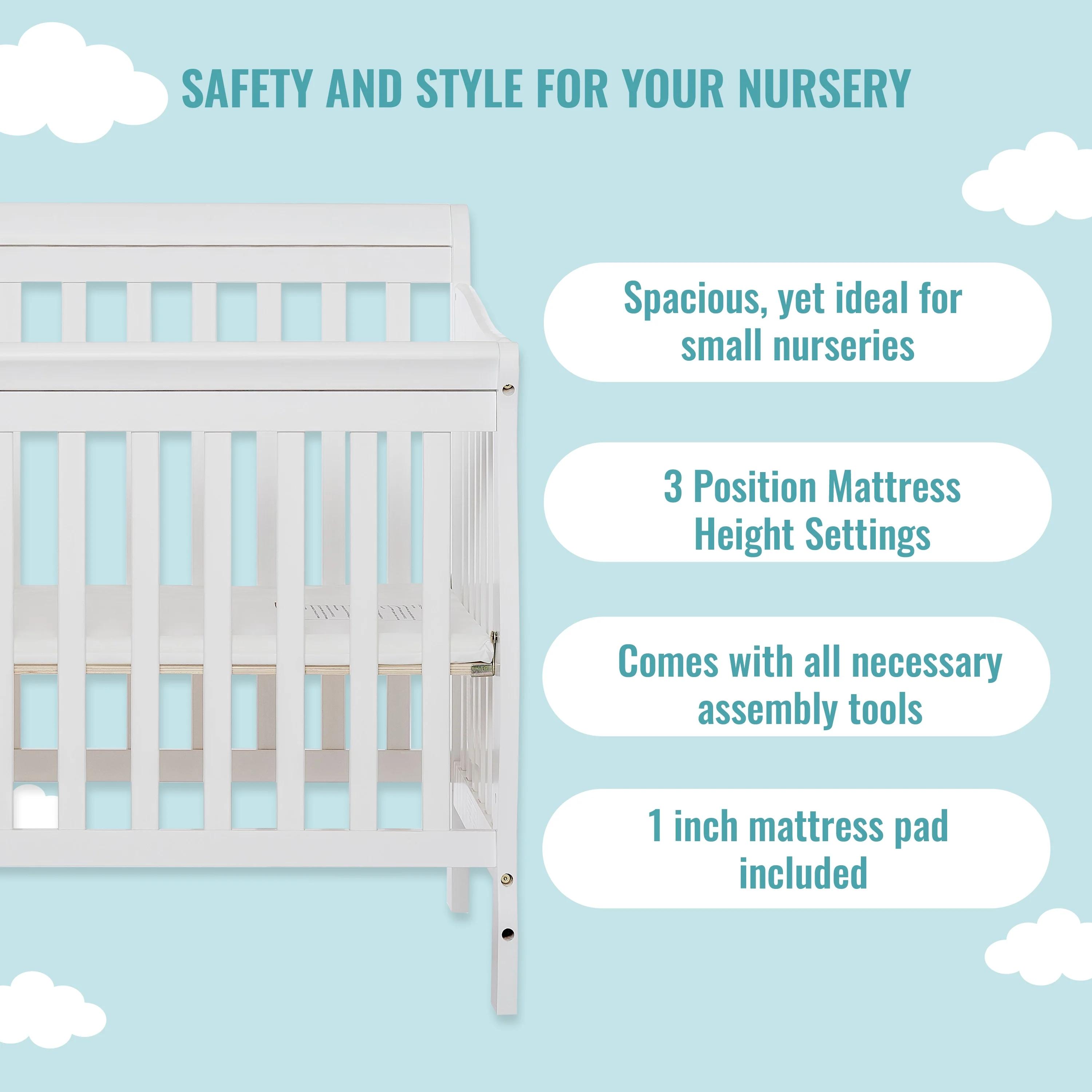 Dream On Me Aden 4-in-1 Convertible Mini Crib In White, Greenguard Gold Certified
