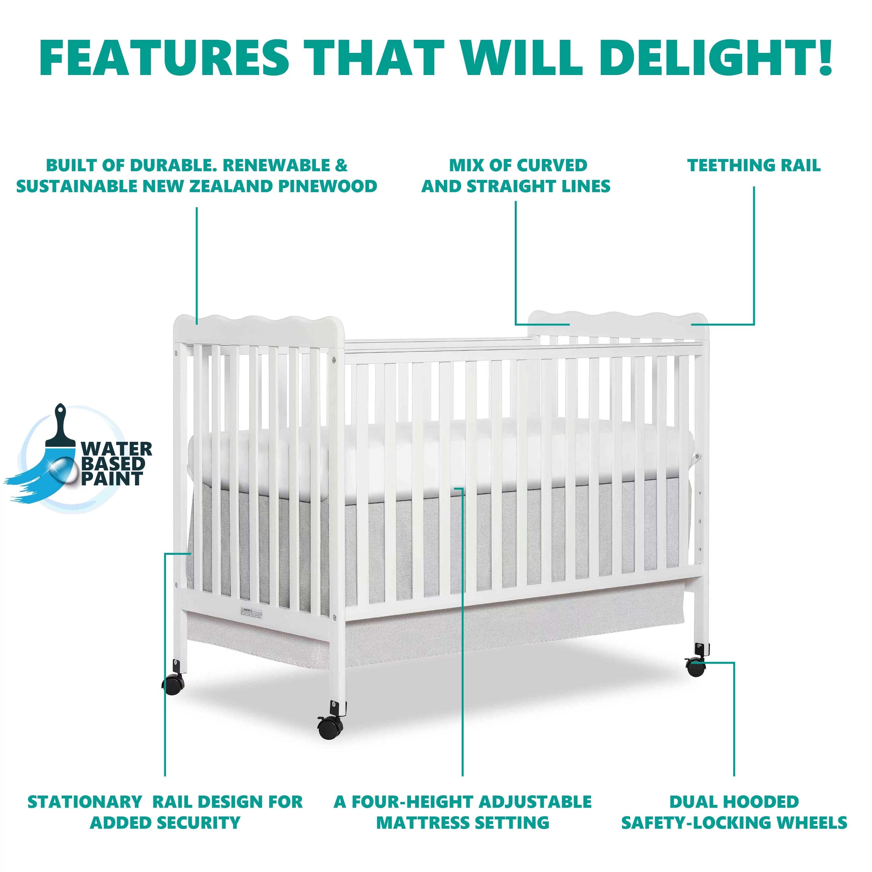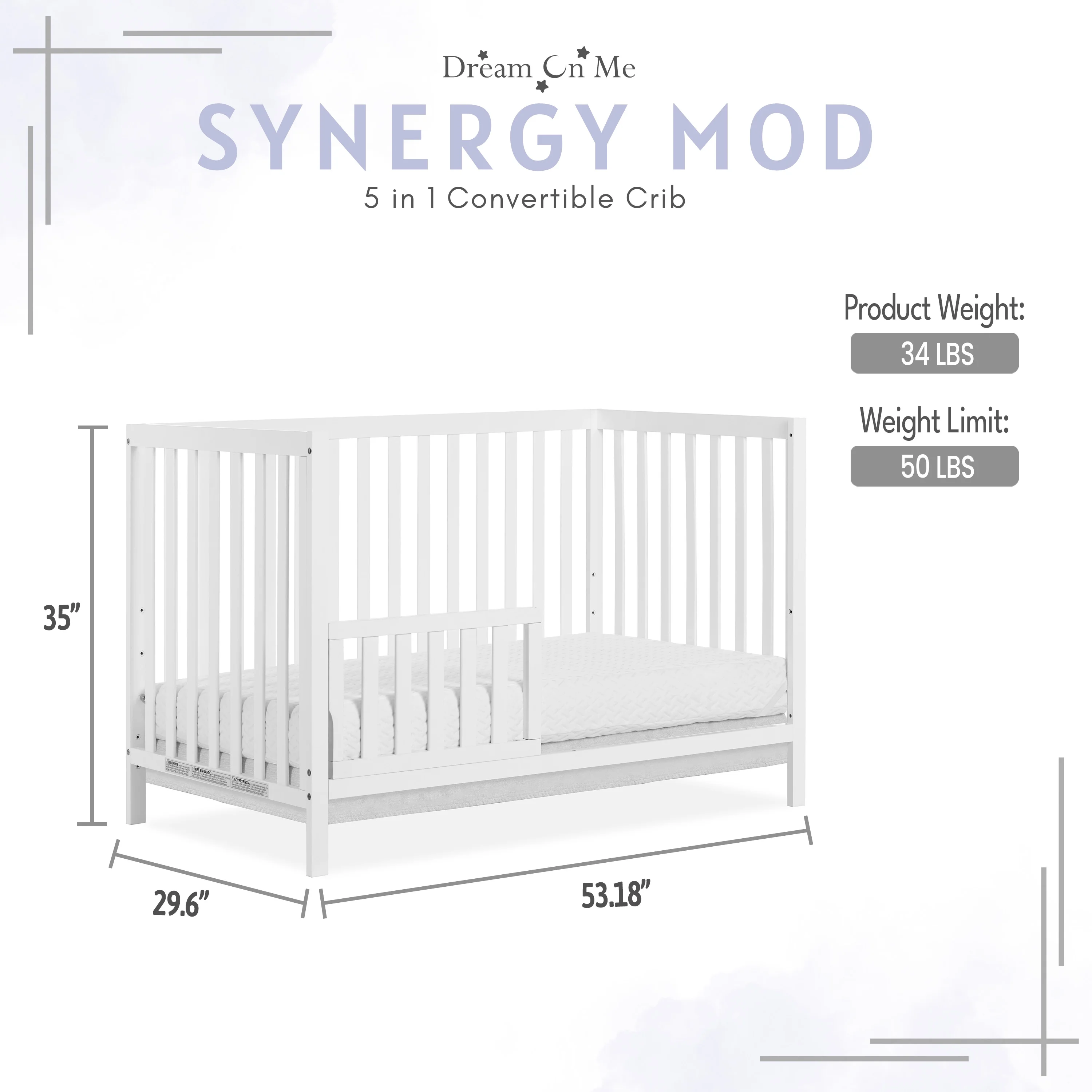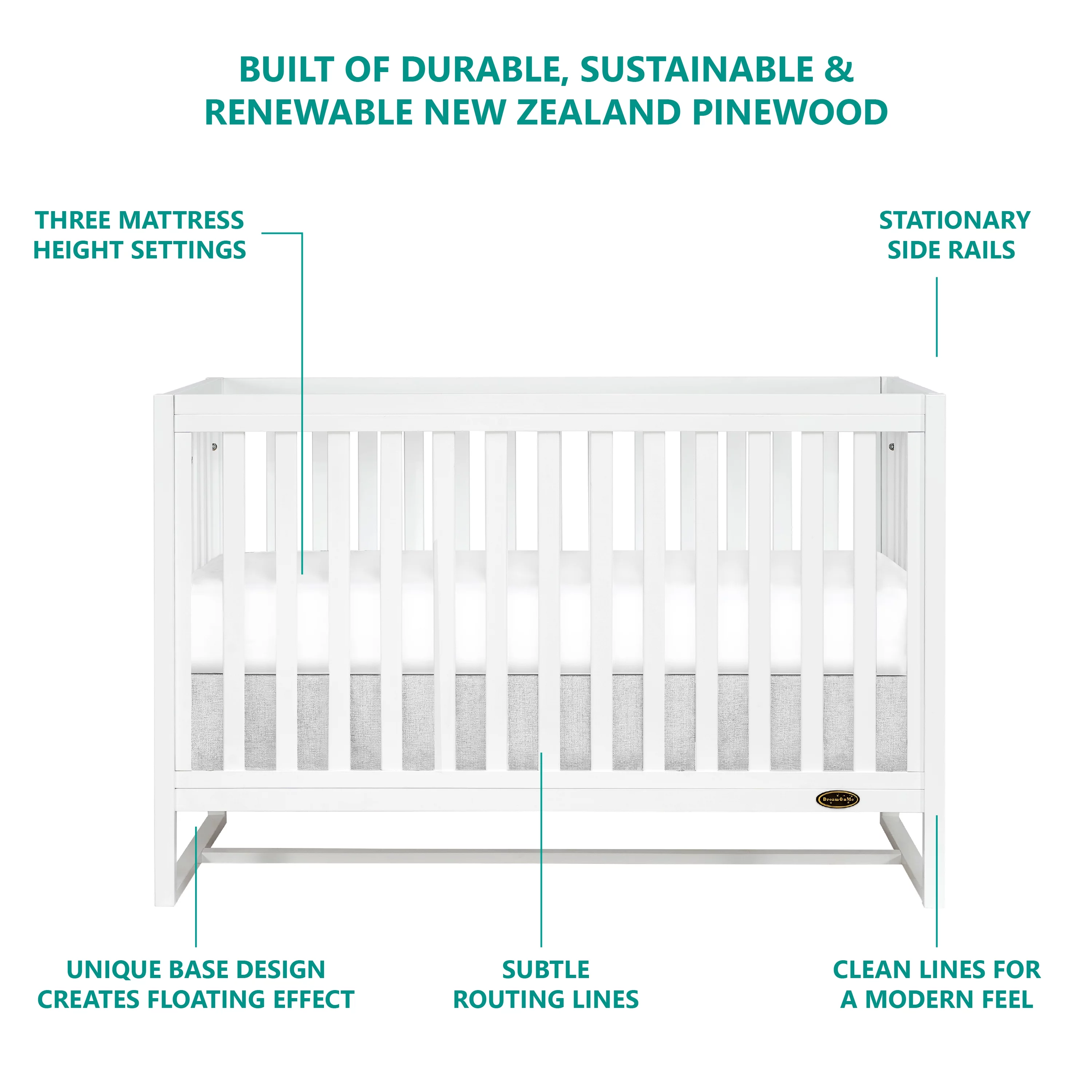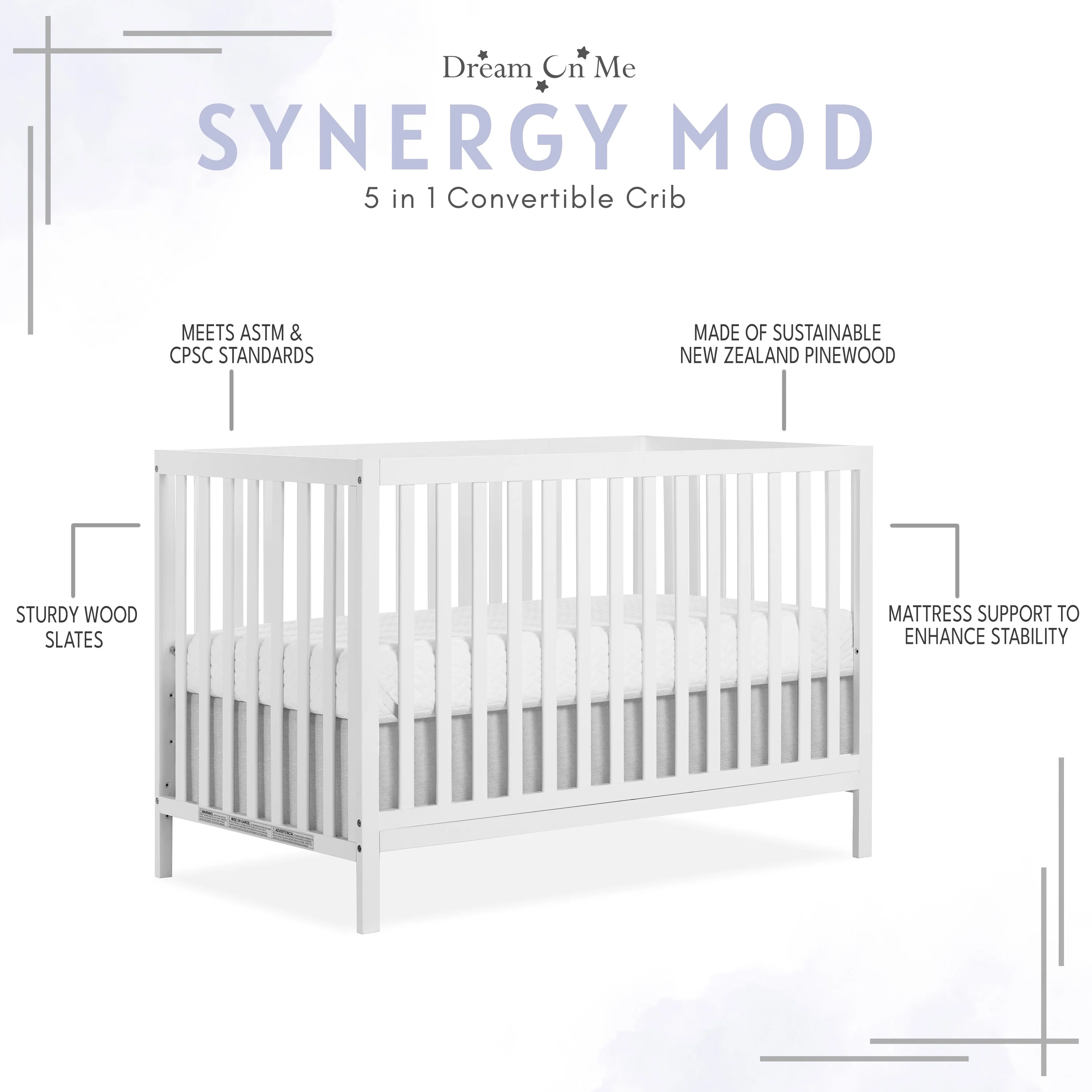 Dream On Me Synergy MOD Crib, Made with Sustainable New Zealand Pinewood, White
