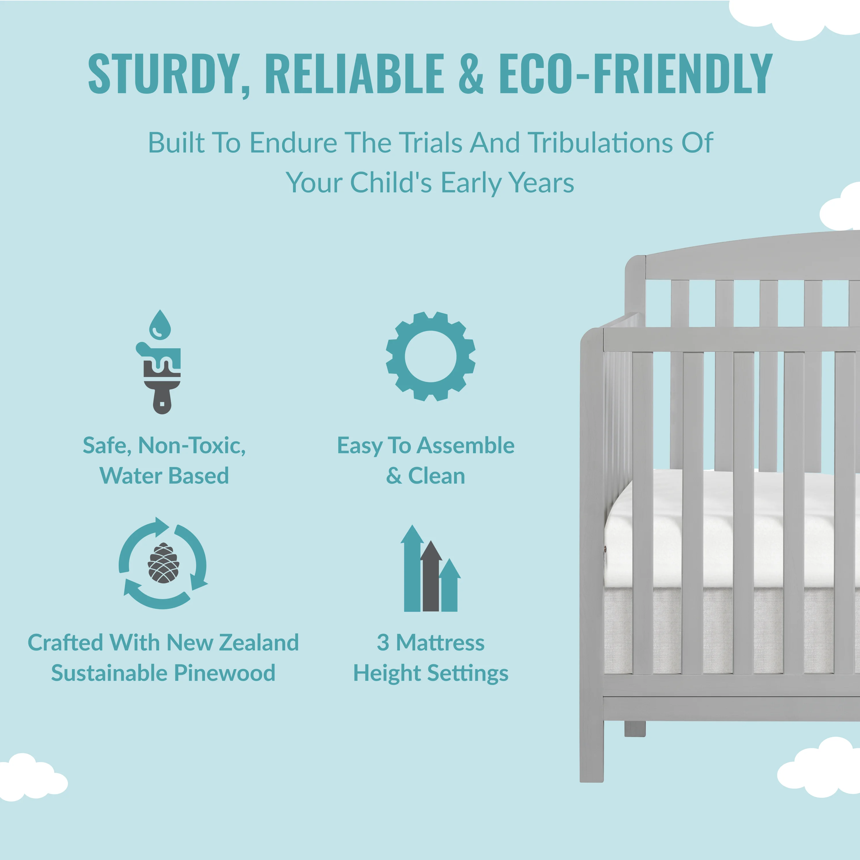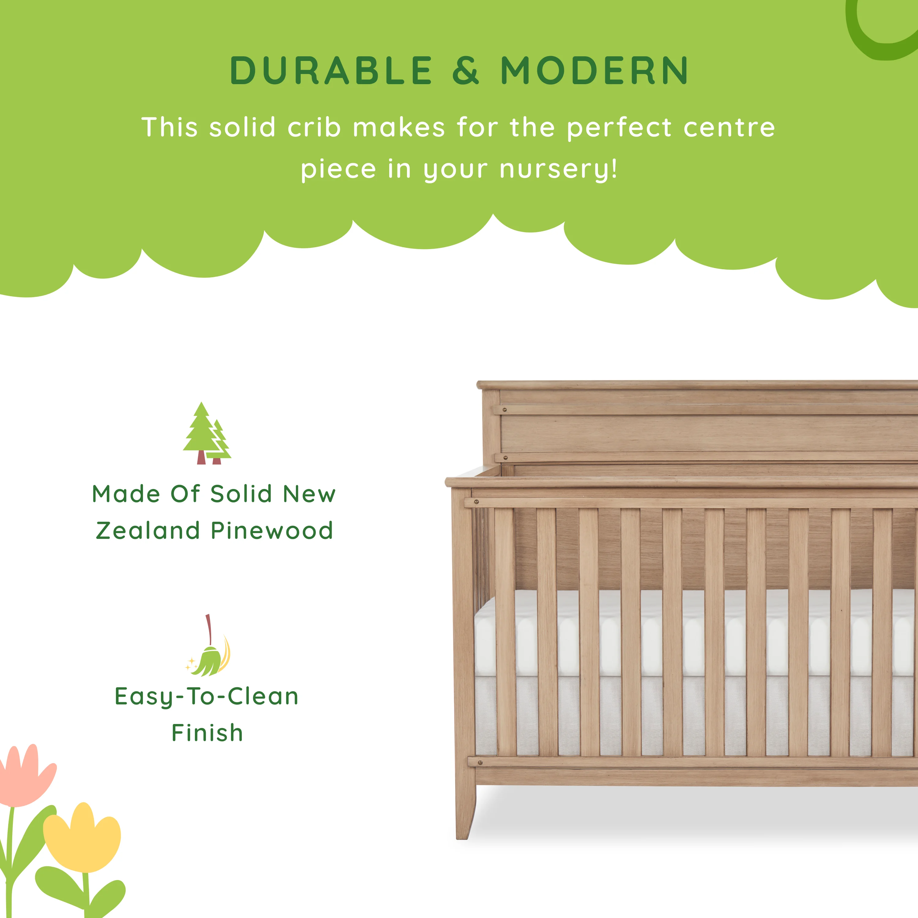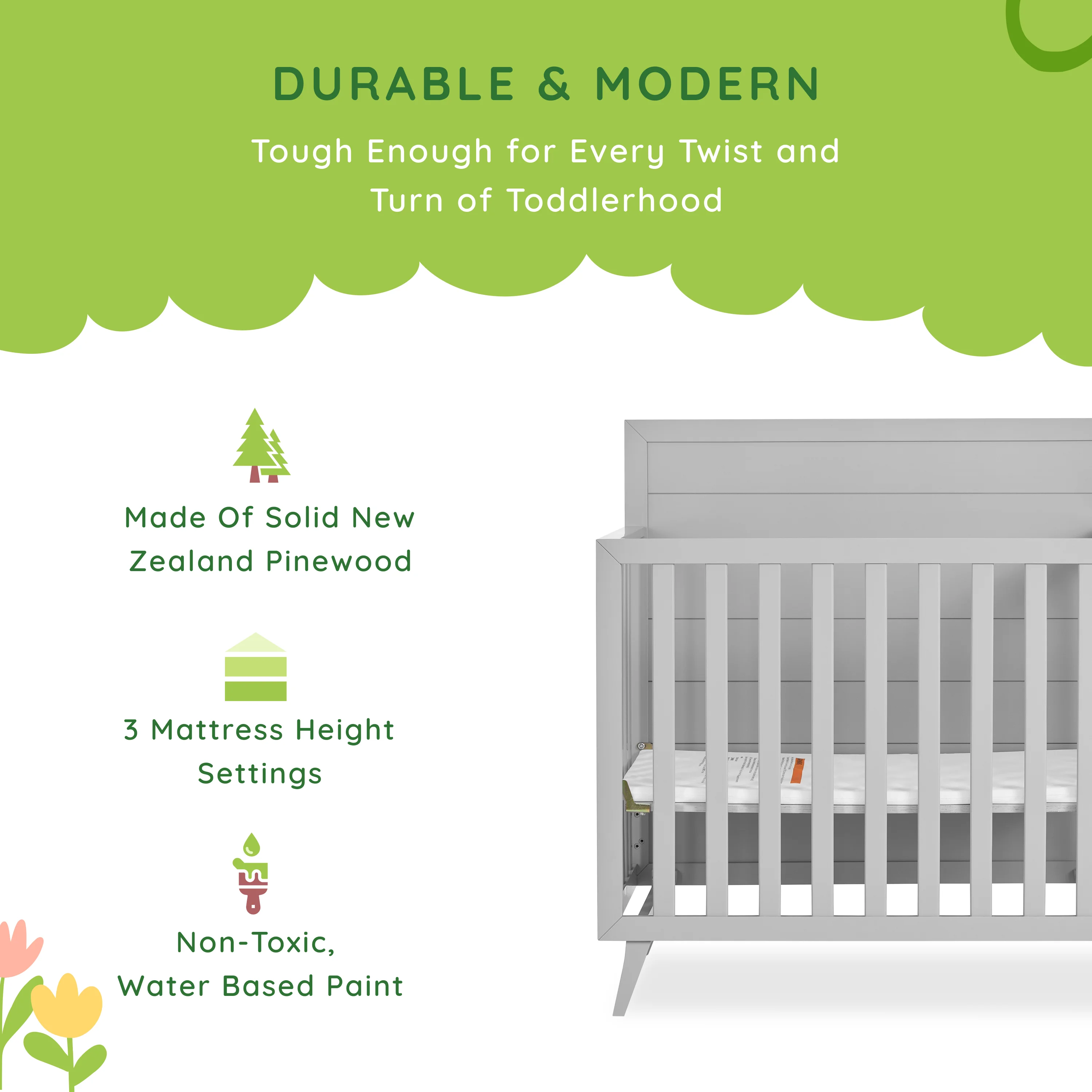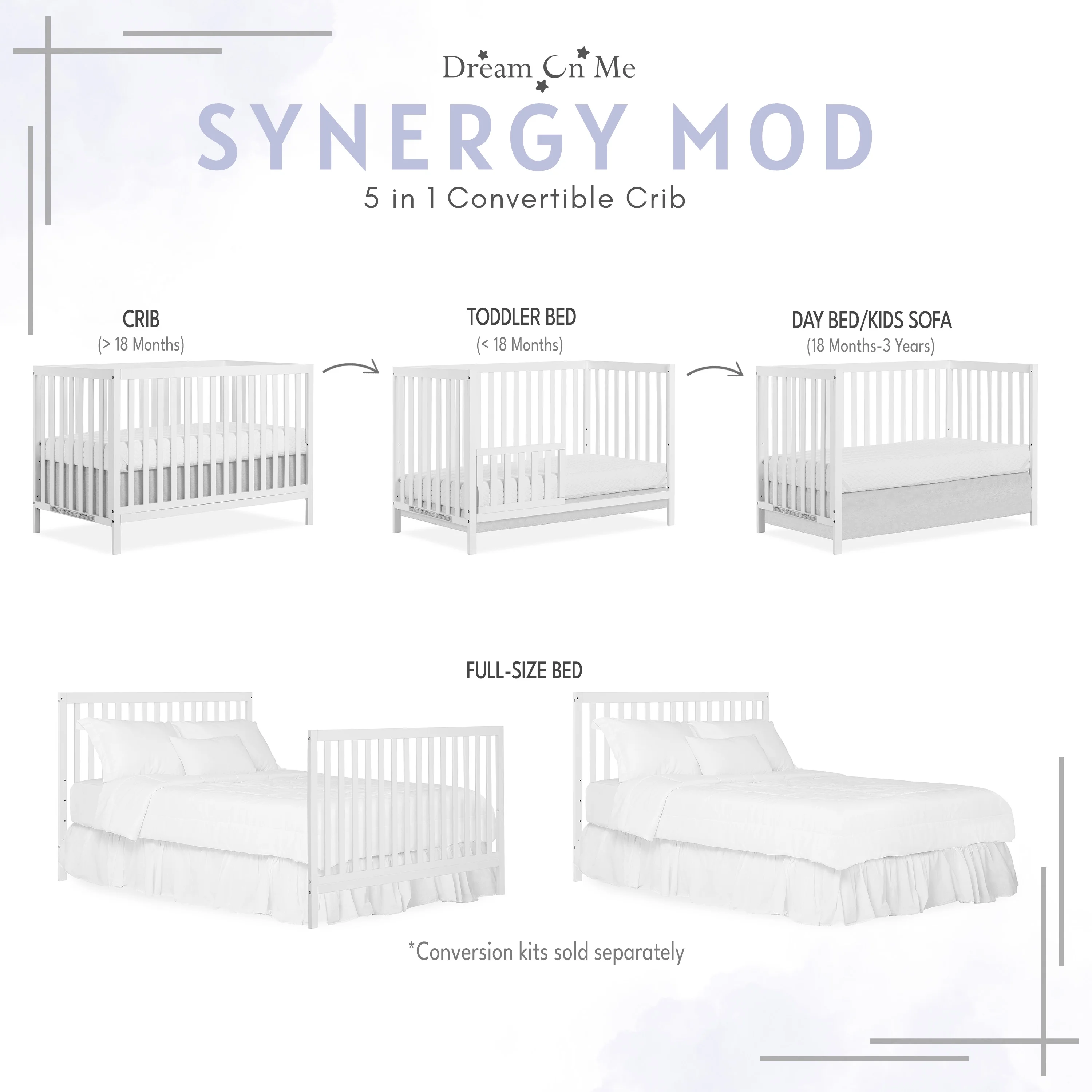 Dream On Me Synergy MOD Crib, Made with Sustainable New Zealand Pinewood, White