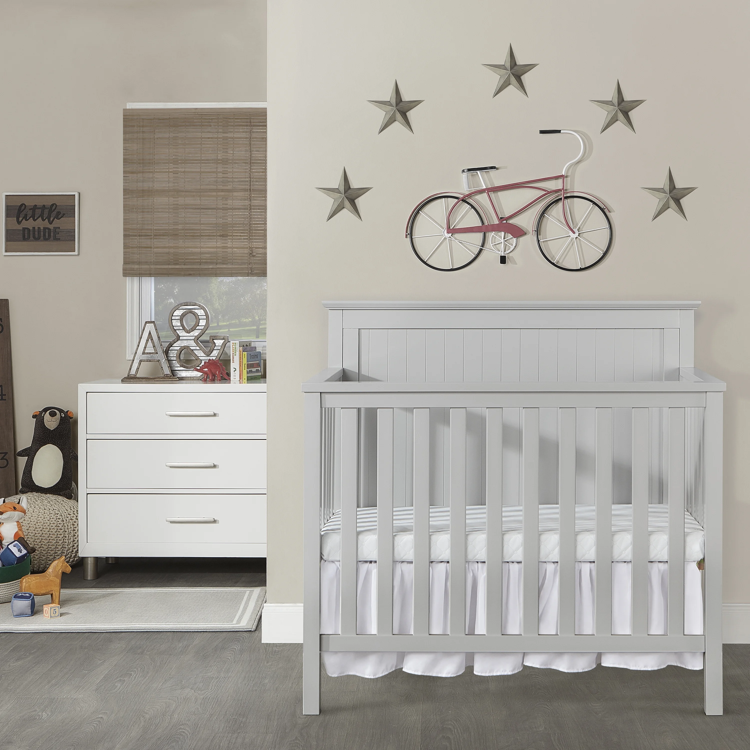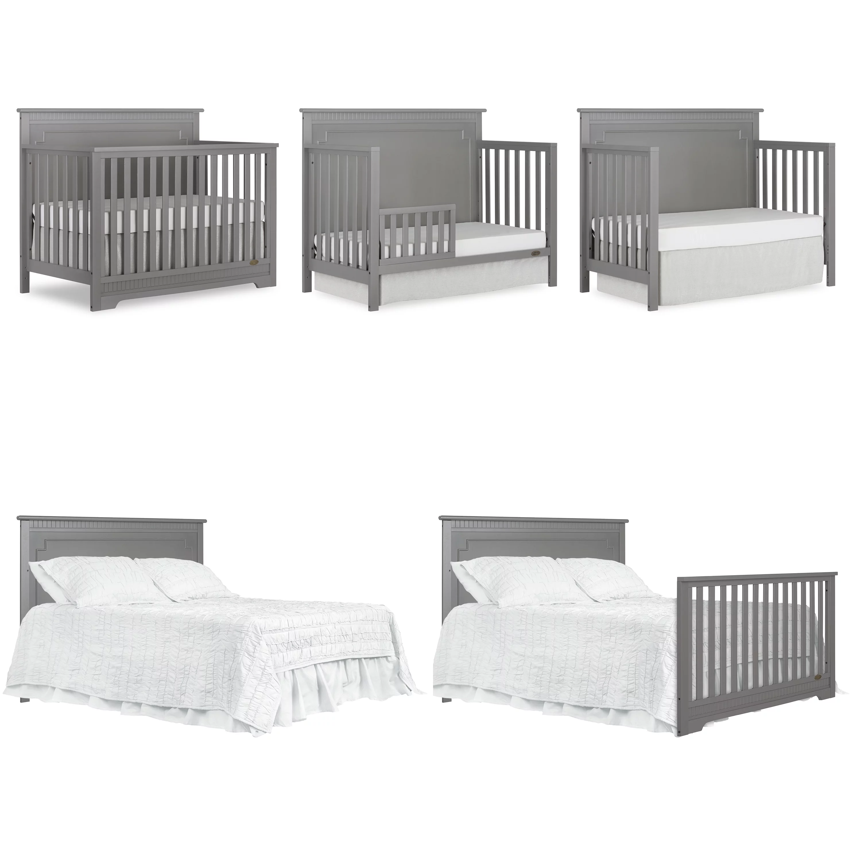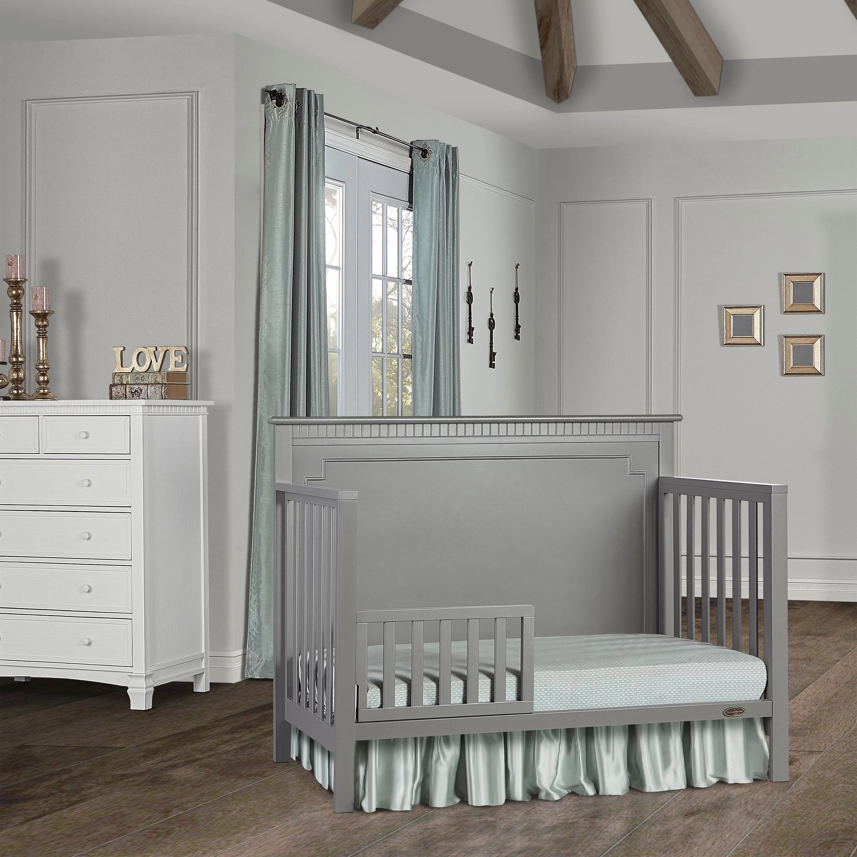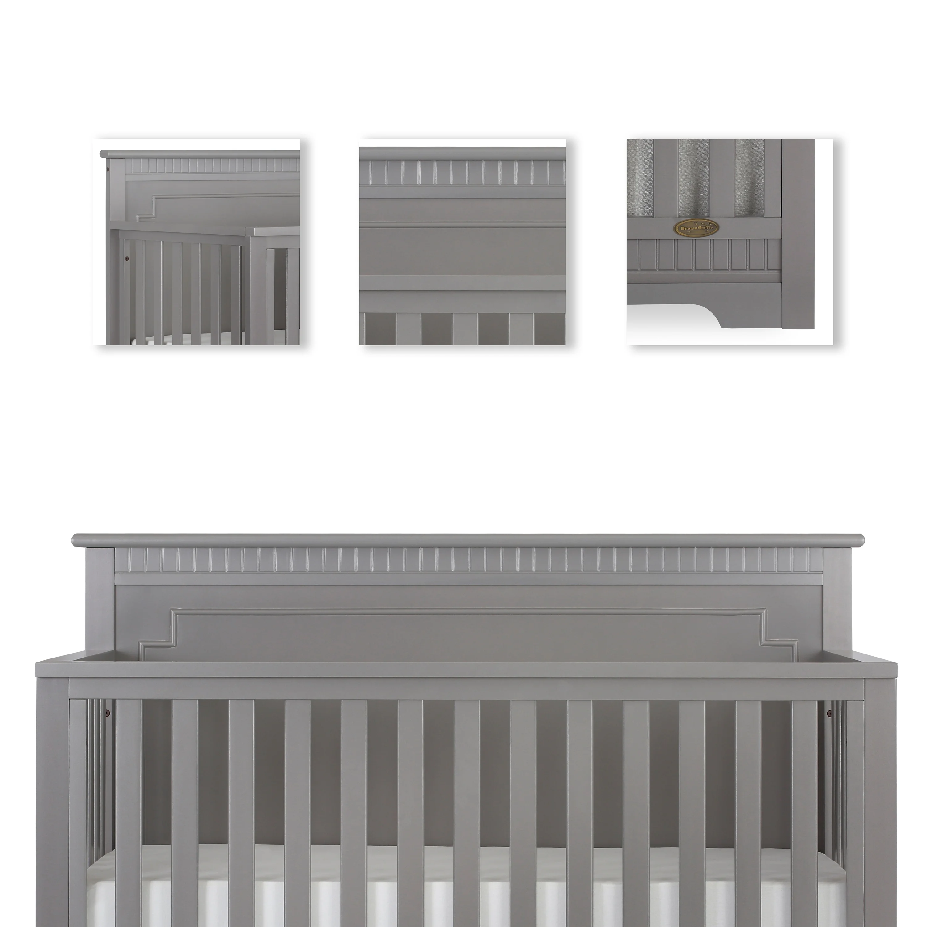 Dream On Me Blue Ridge 4 in 1 Convertible Crib in Pebble Grey, Three Mattress Height Settings