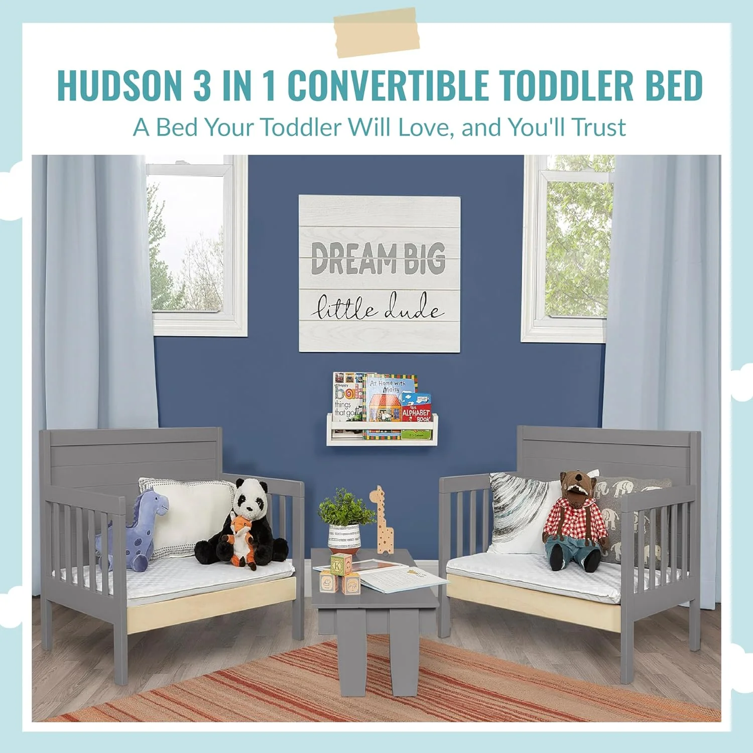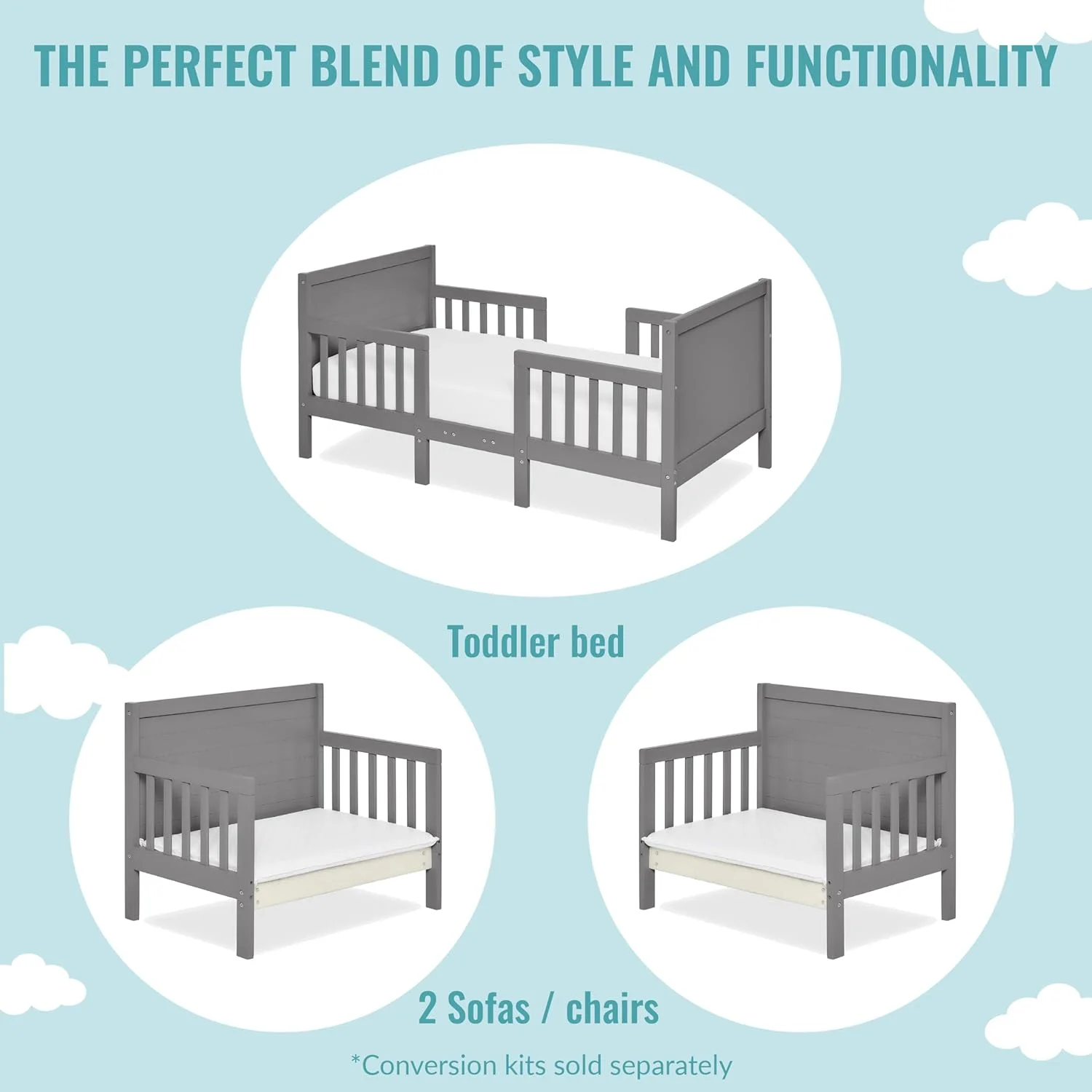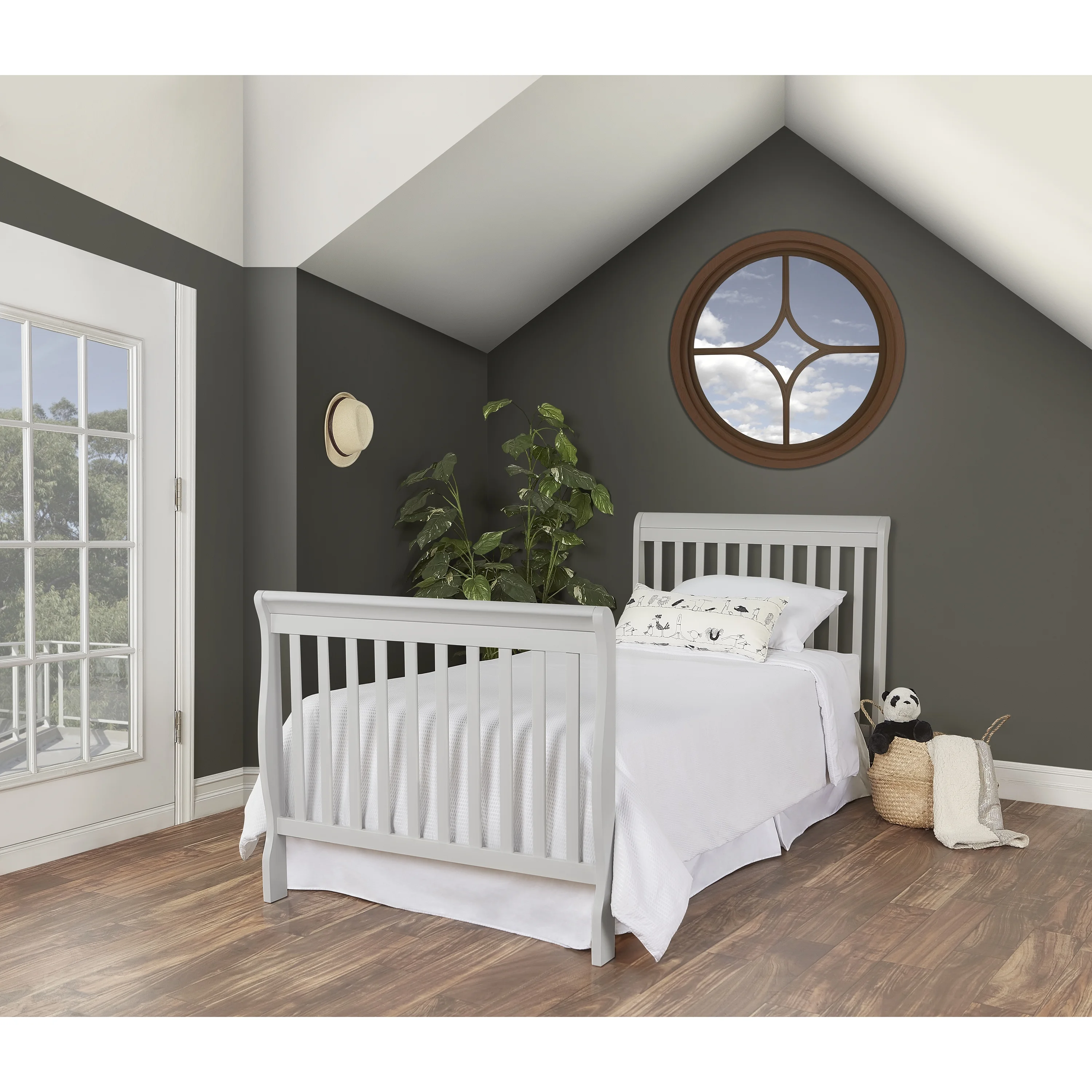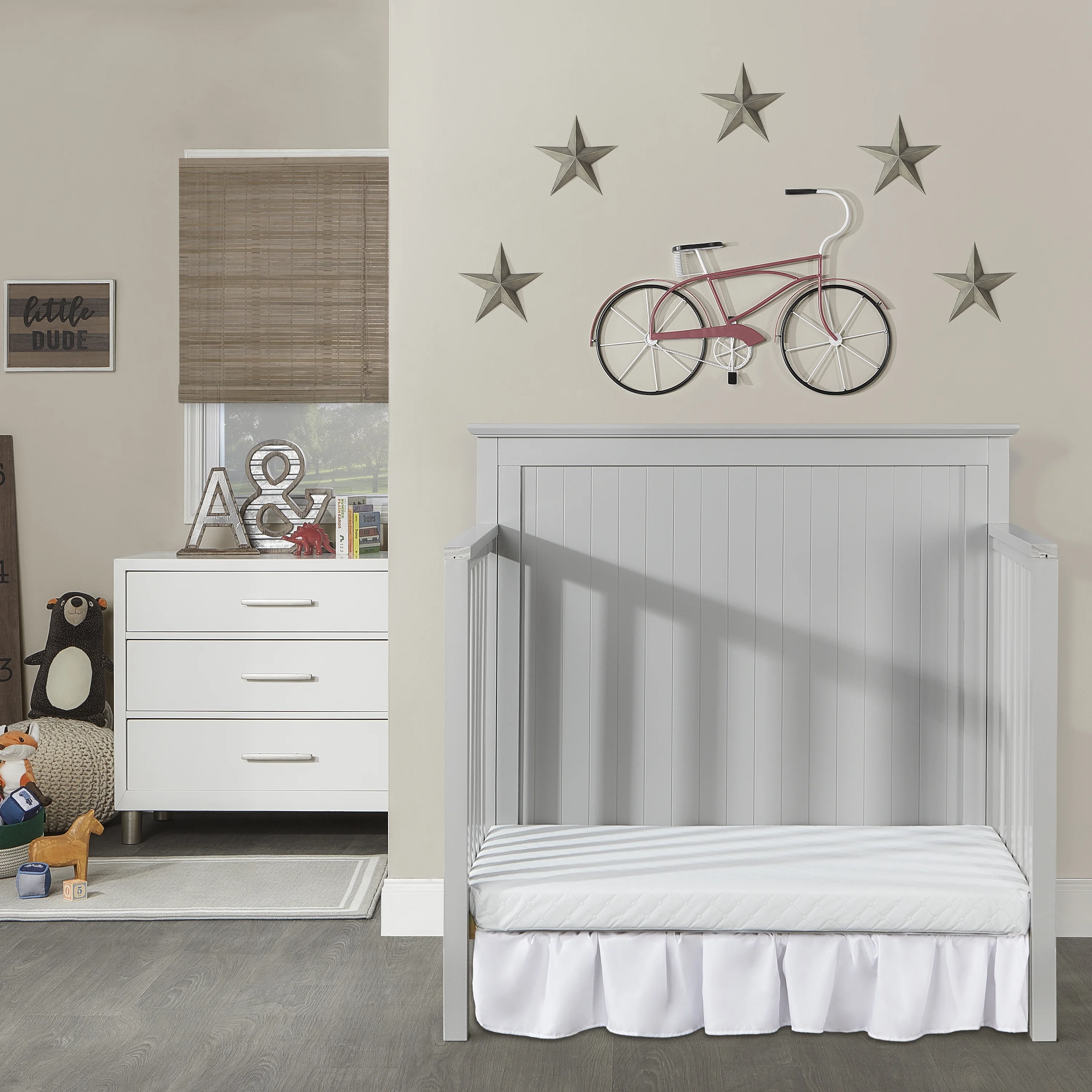 Dream On Me Blue Ridge 4 in 1 Convertible Crib in Pebble Grey, Three Mattress Height Settings