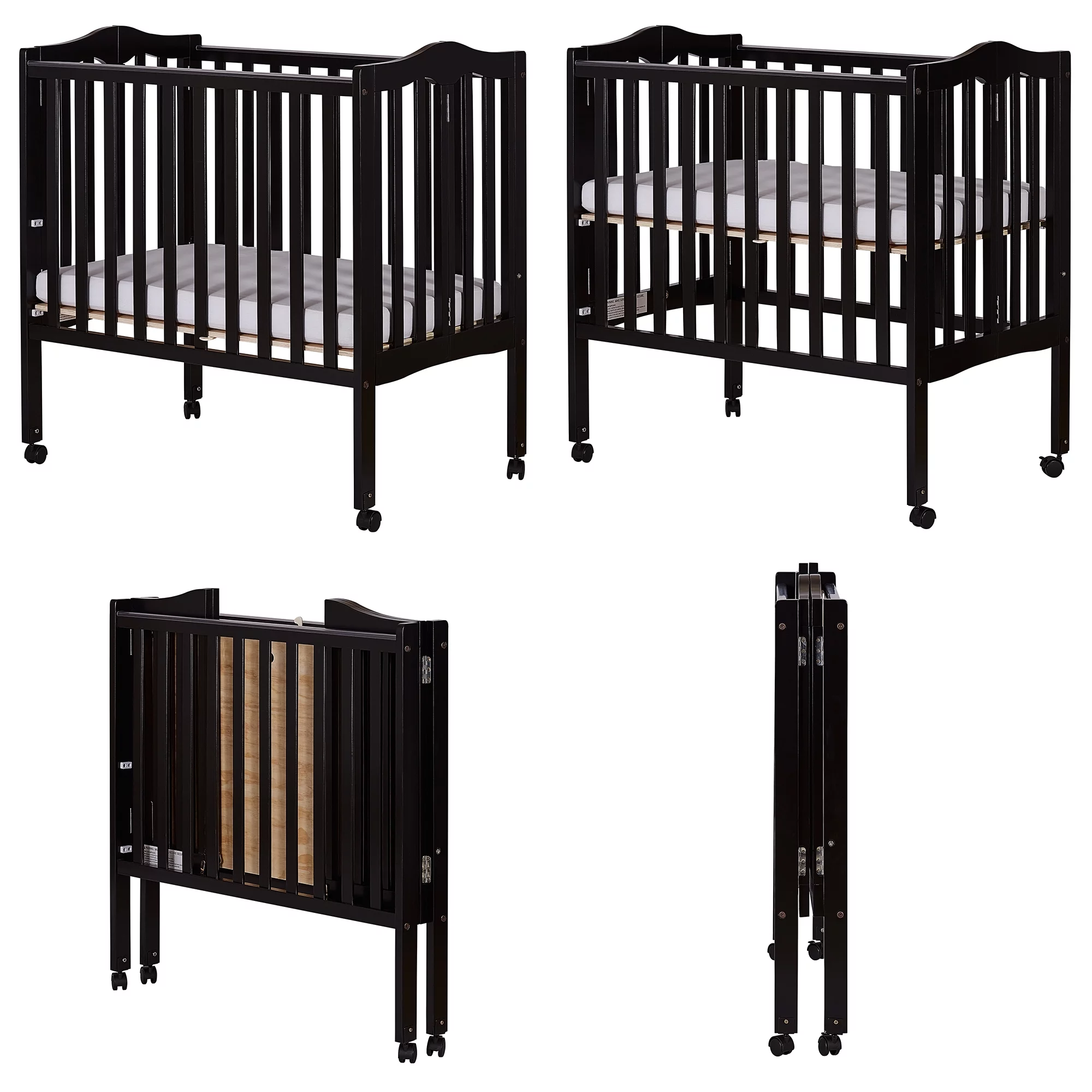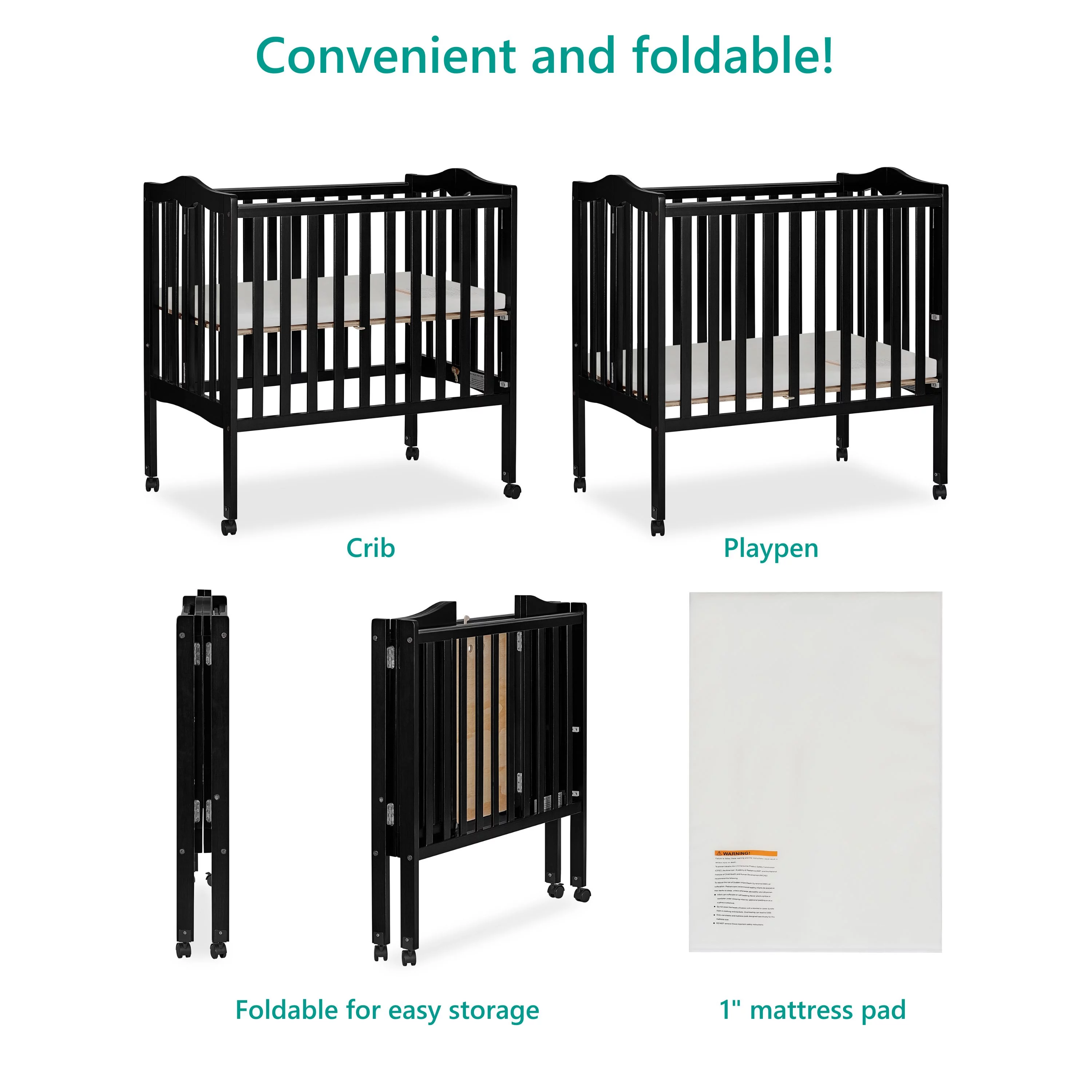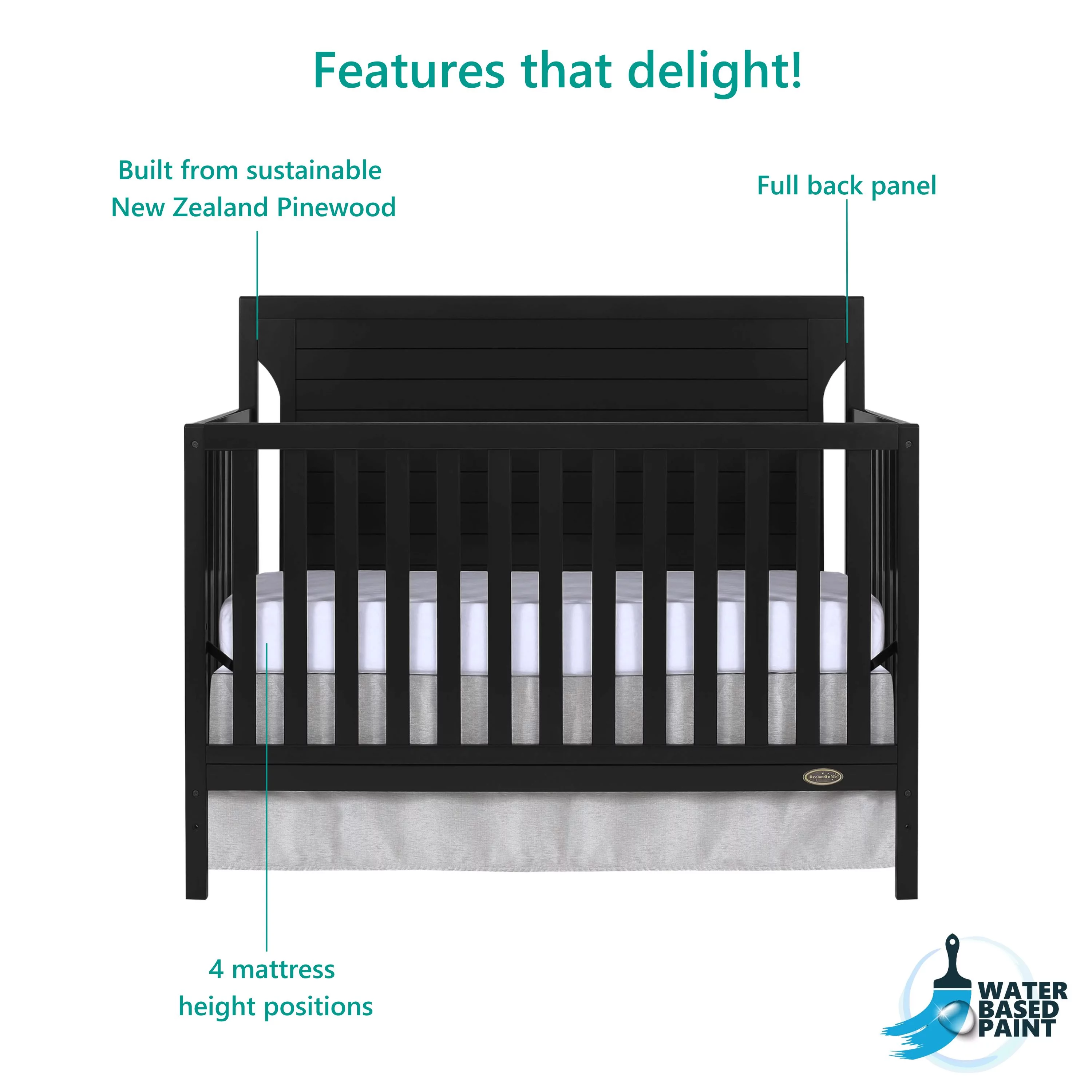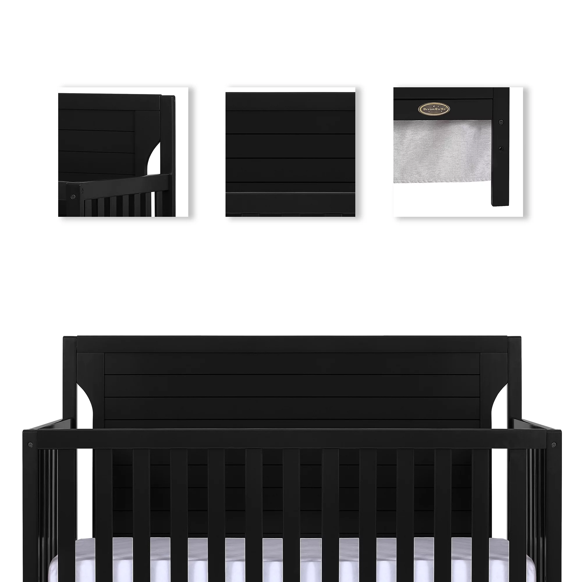 Dream On Me Aden Full Panel Convertible 4-in-1 Mini Crib In Black, Greeguard Gold Certified