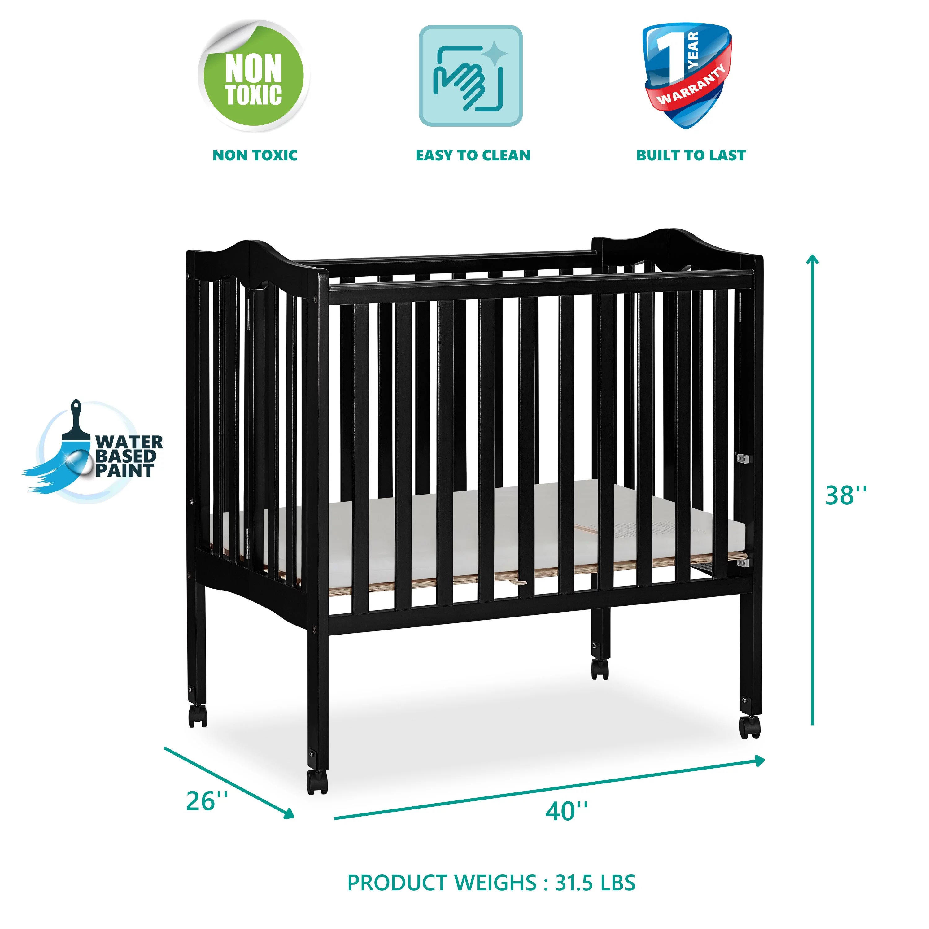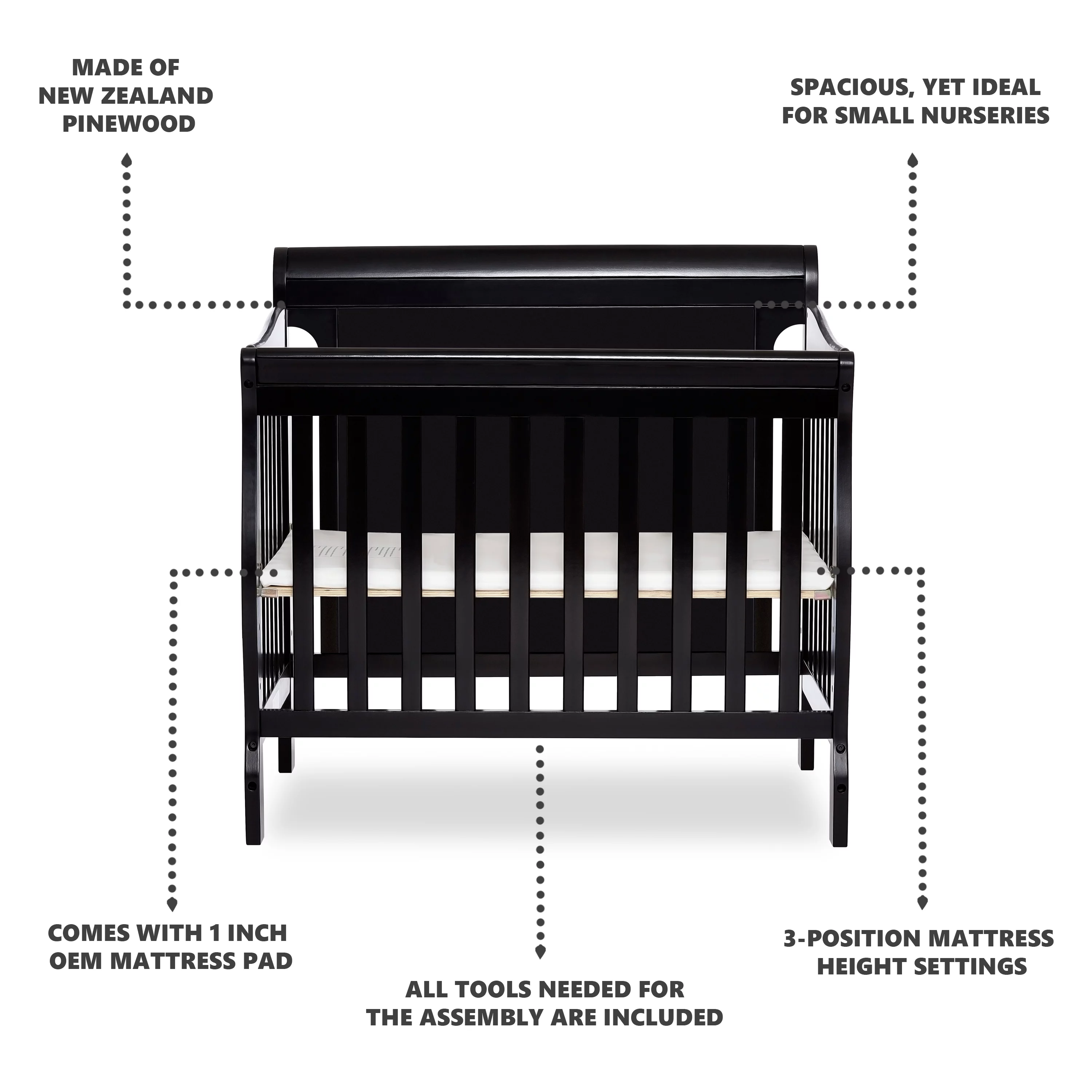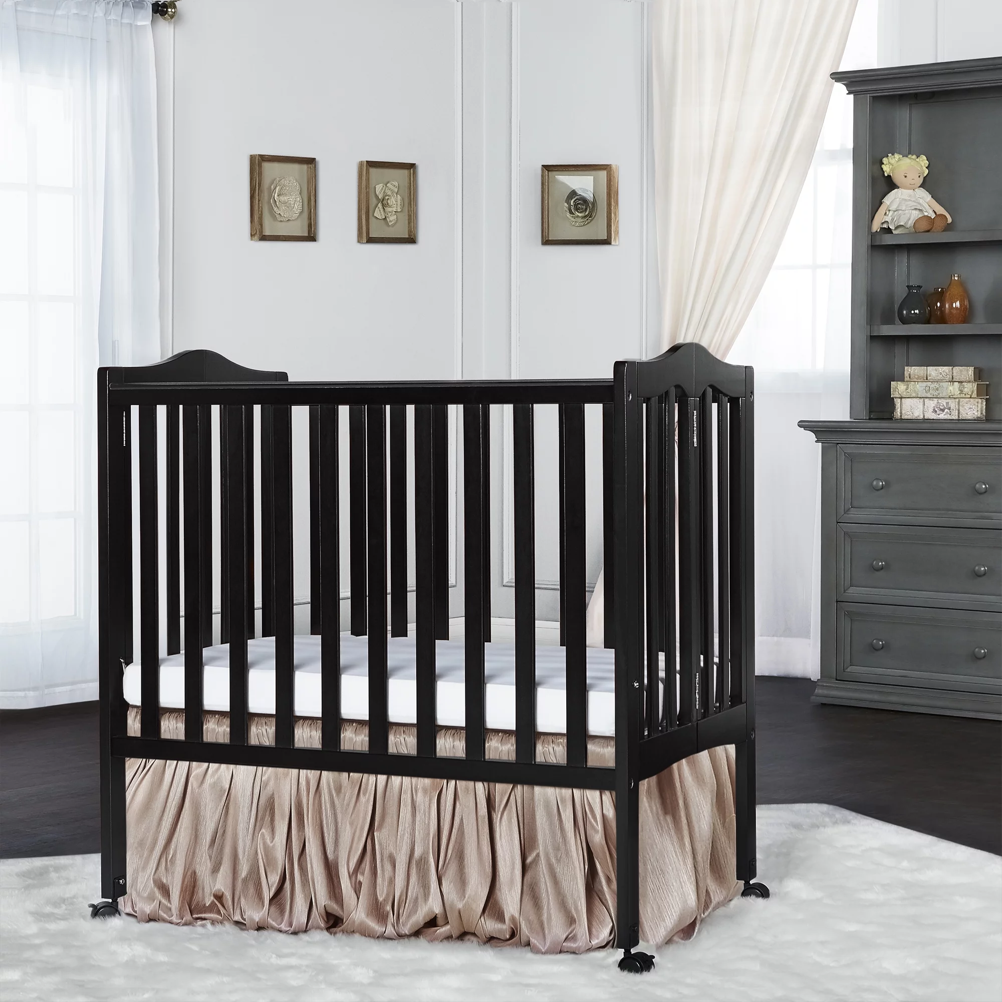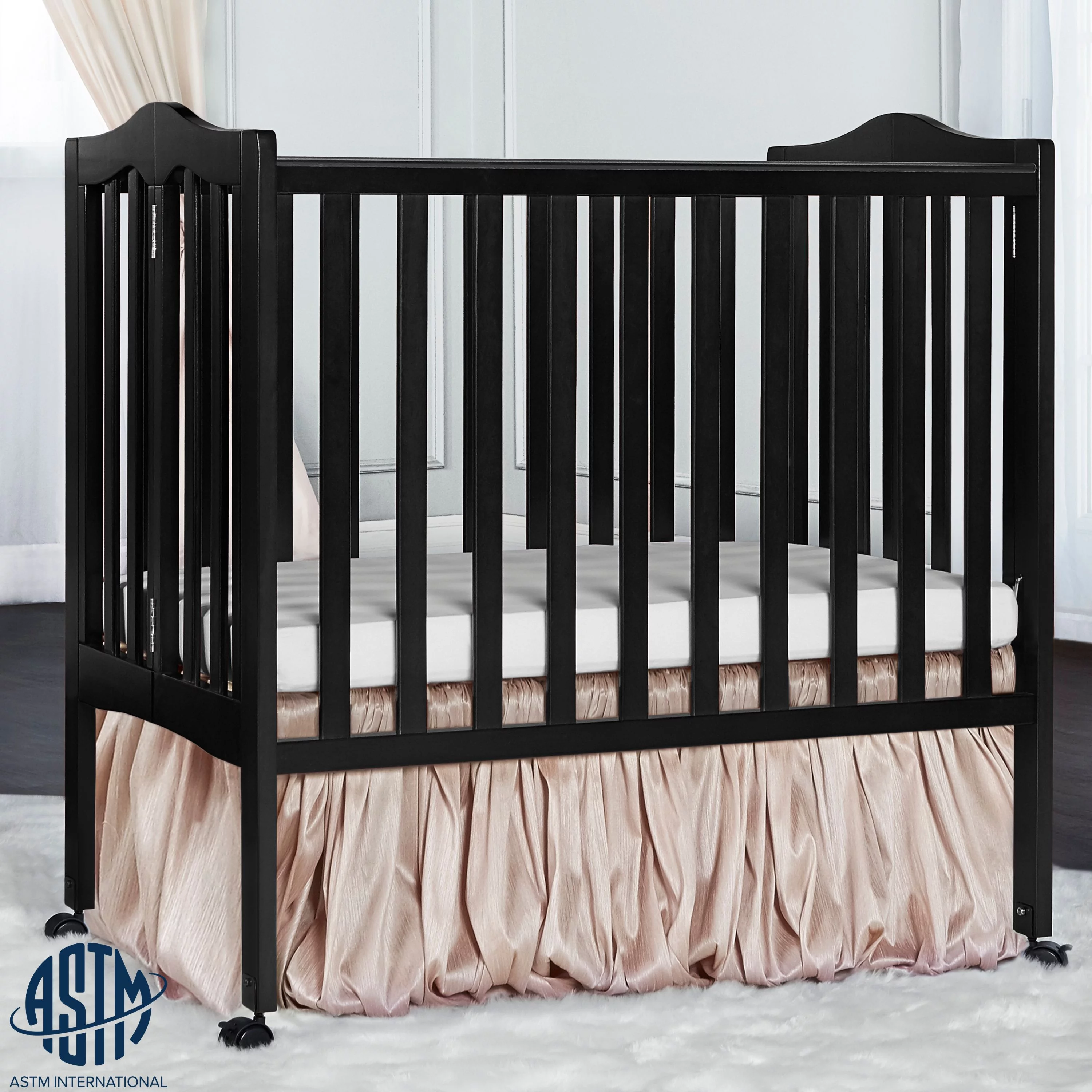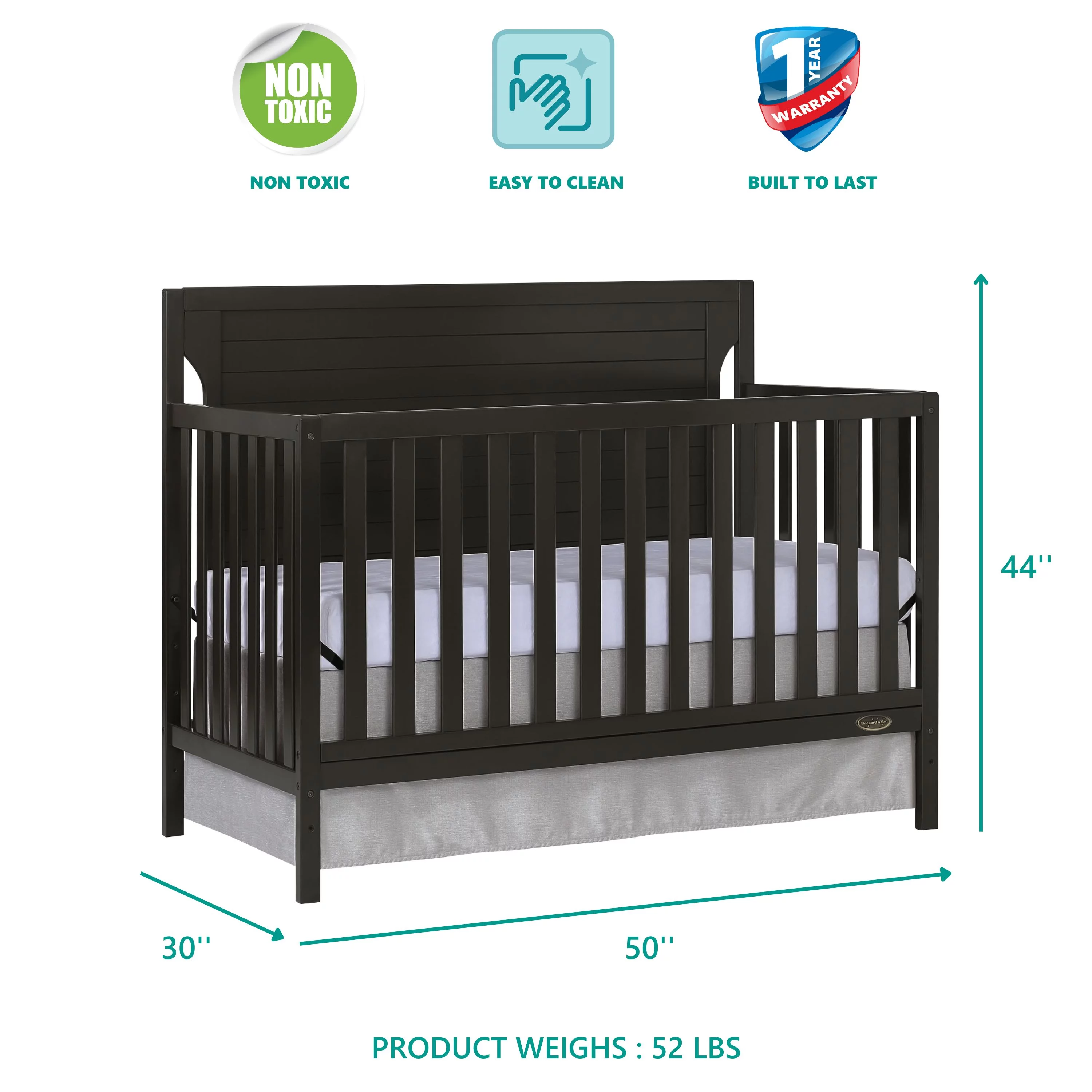 Dream On Me Aden Full Panel Convertible 4-in-1 Mini Crib In Black, Greeguard Gold Certified