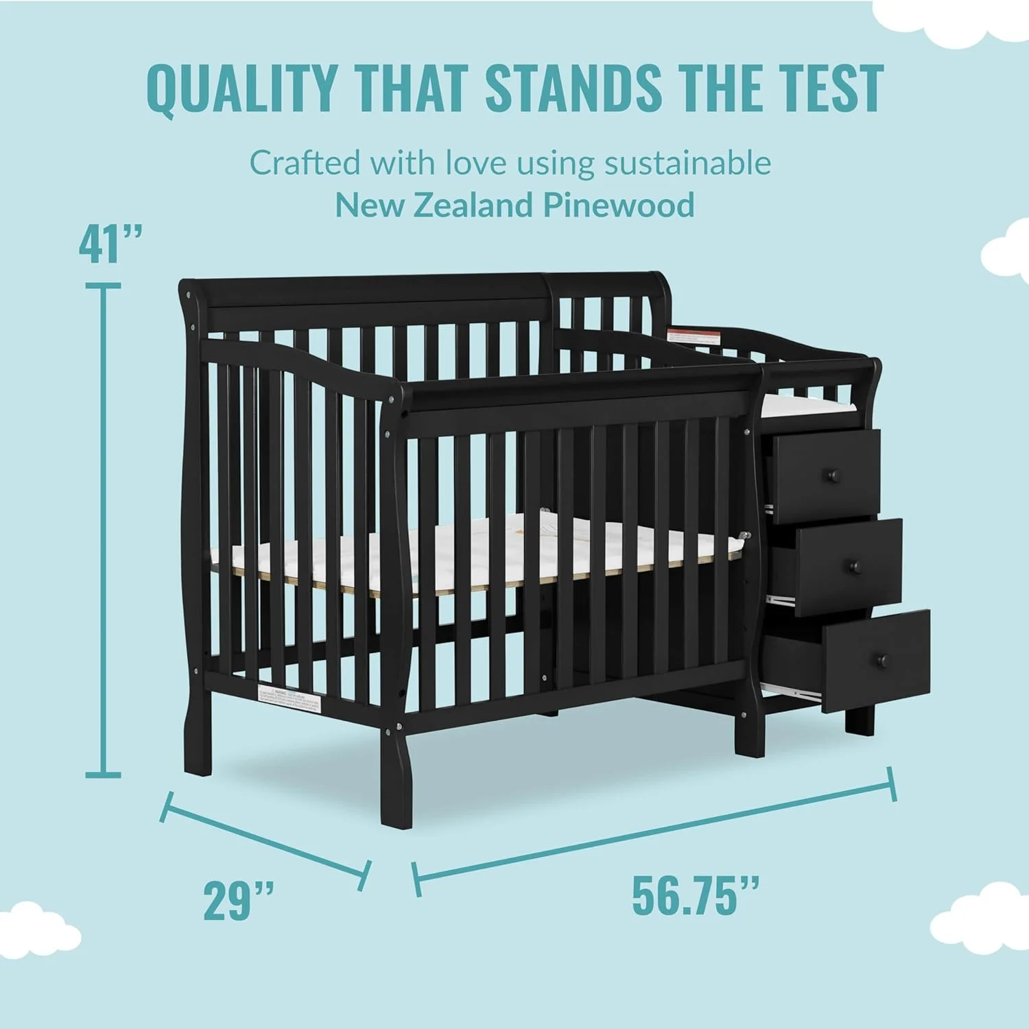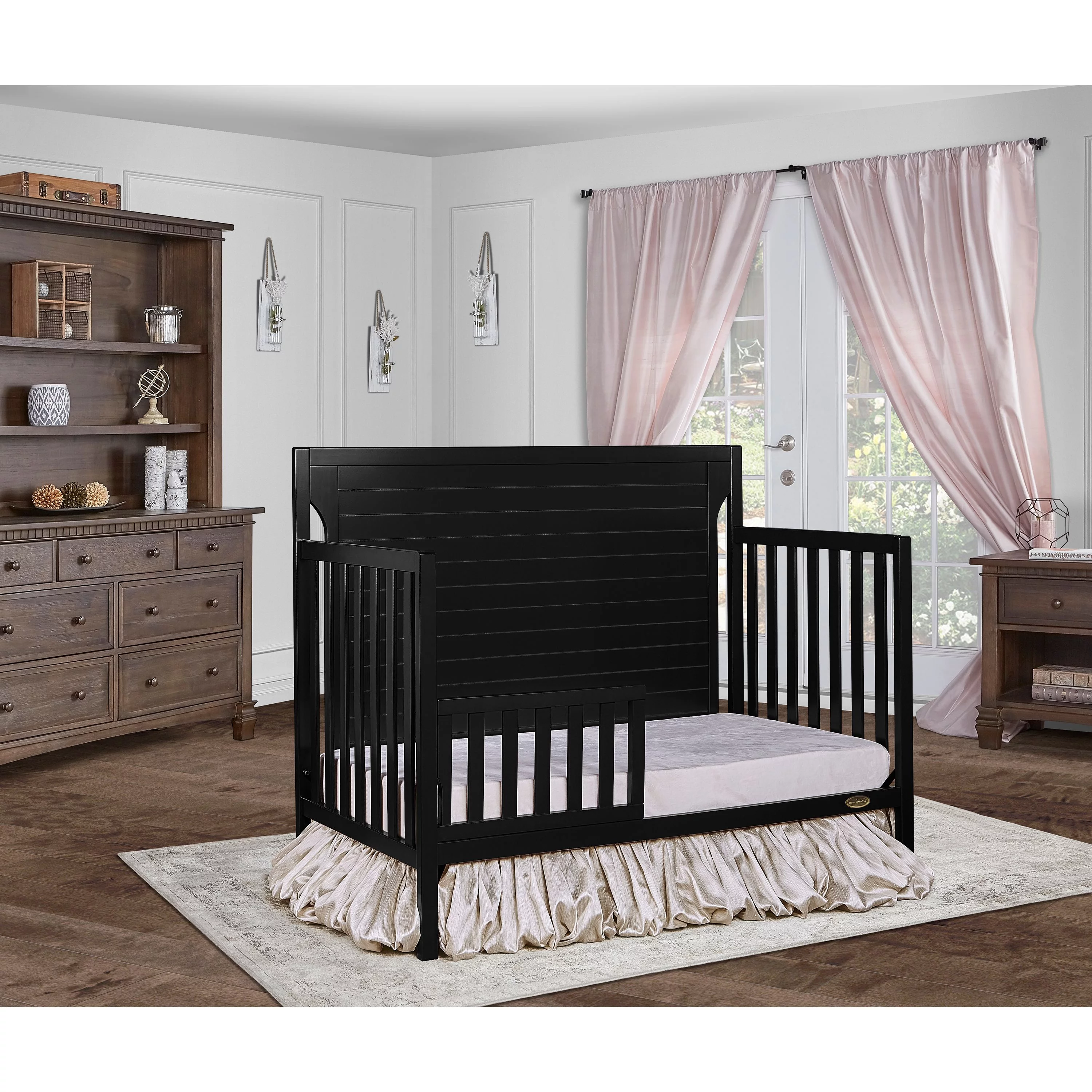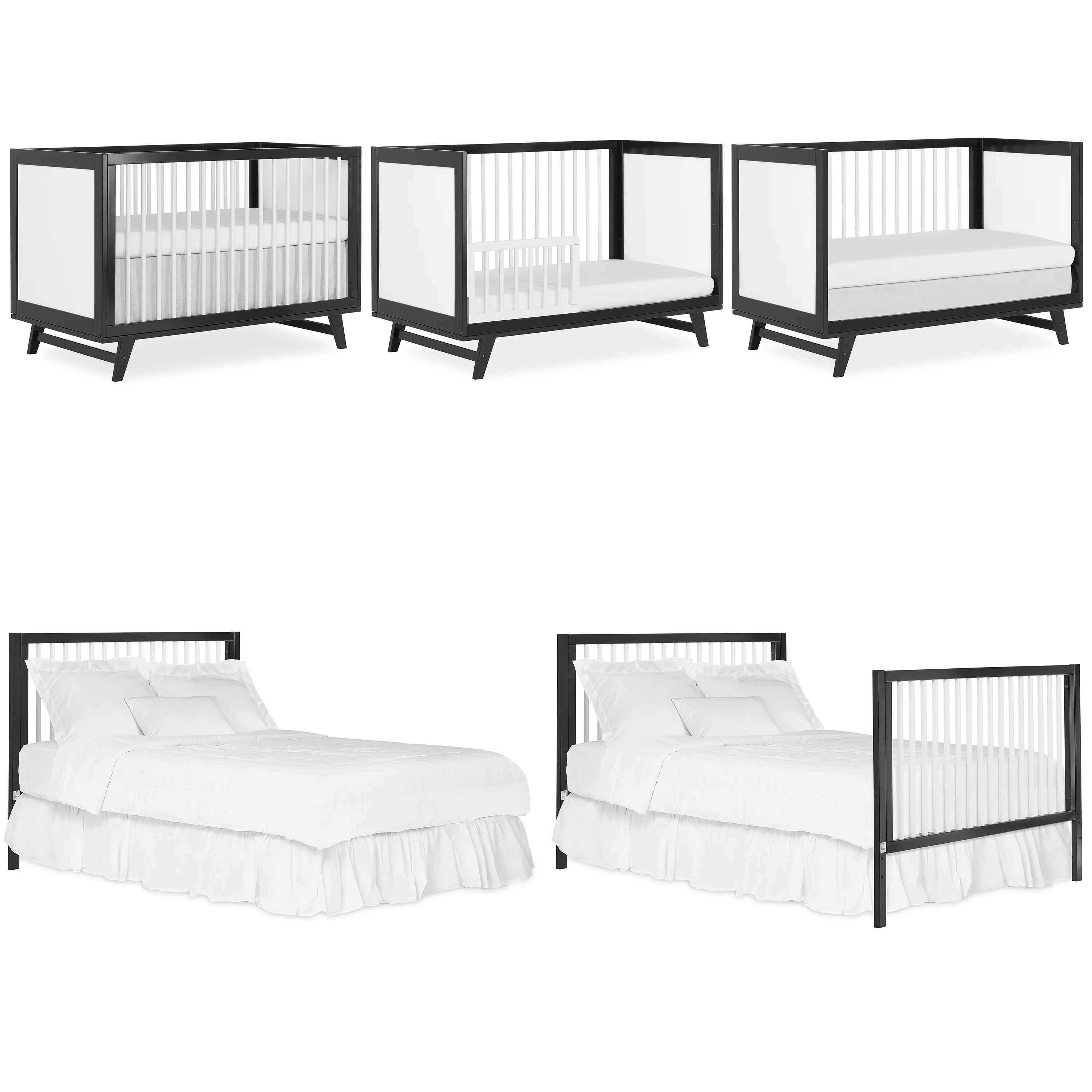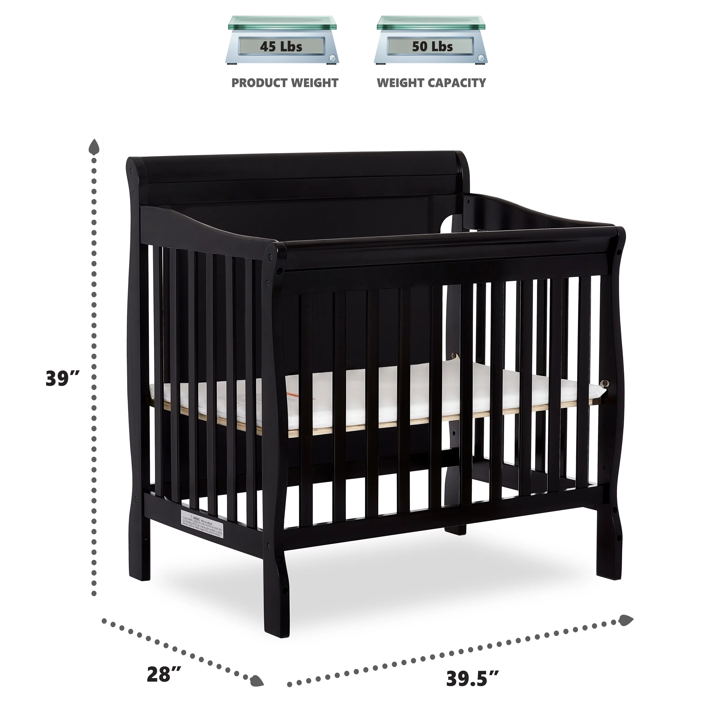 Dream On Me Aden Full Panel Convertible 4-in-1 Mini Crib In Black, Greeguard Gold Certified