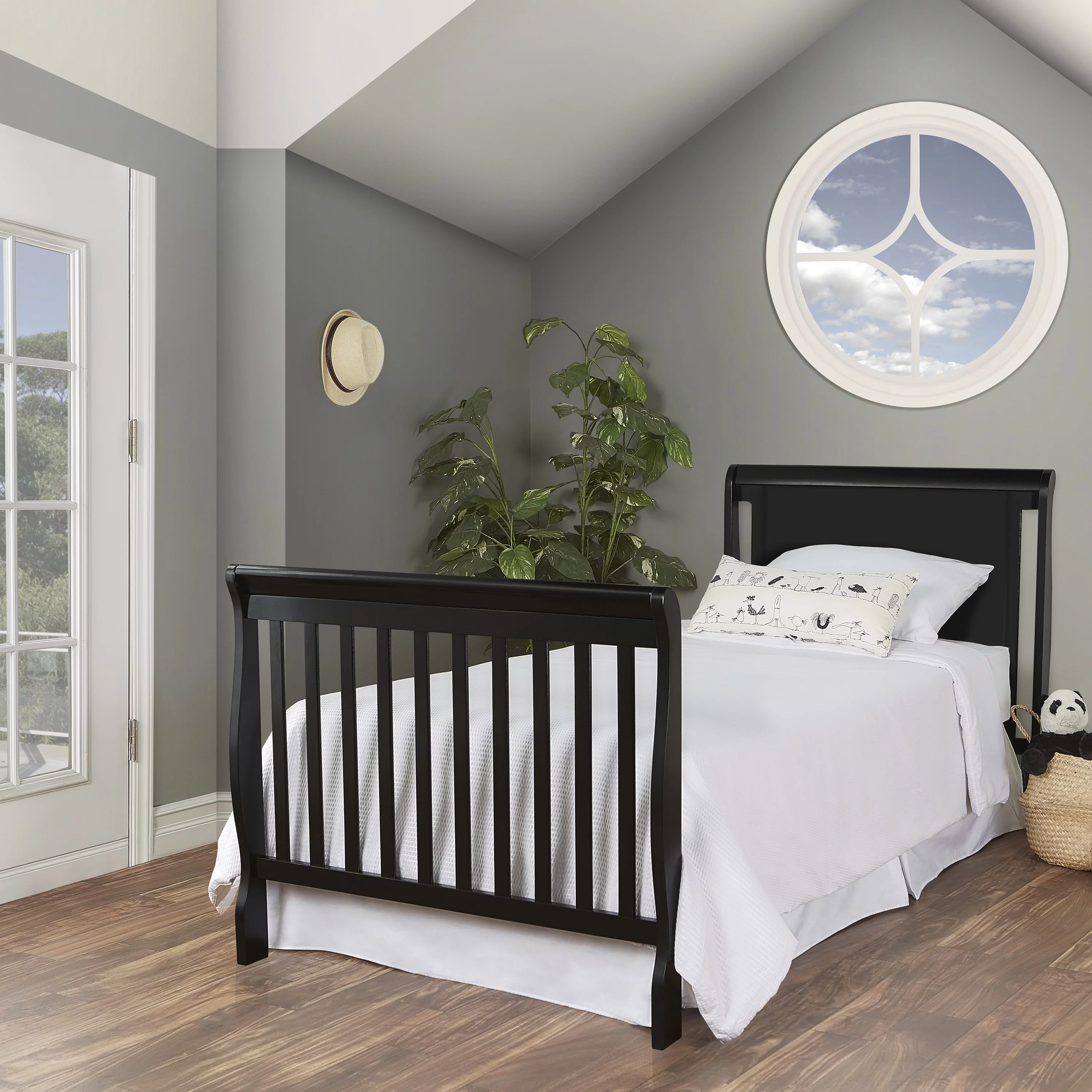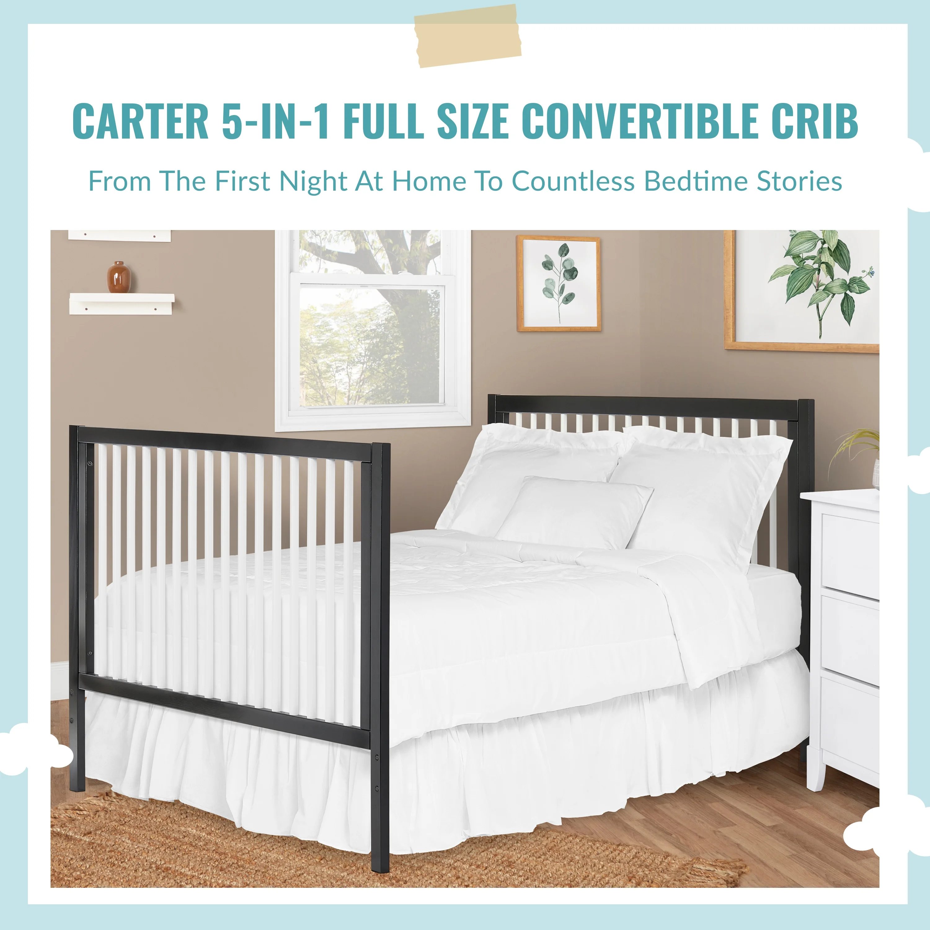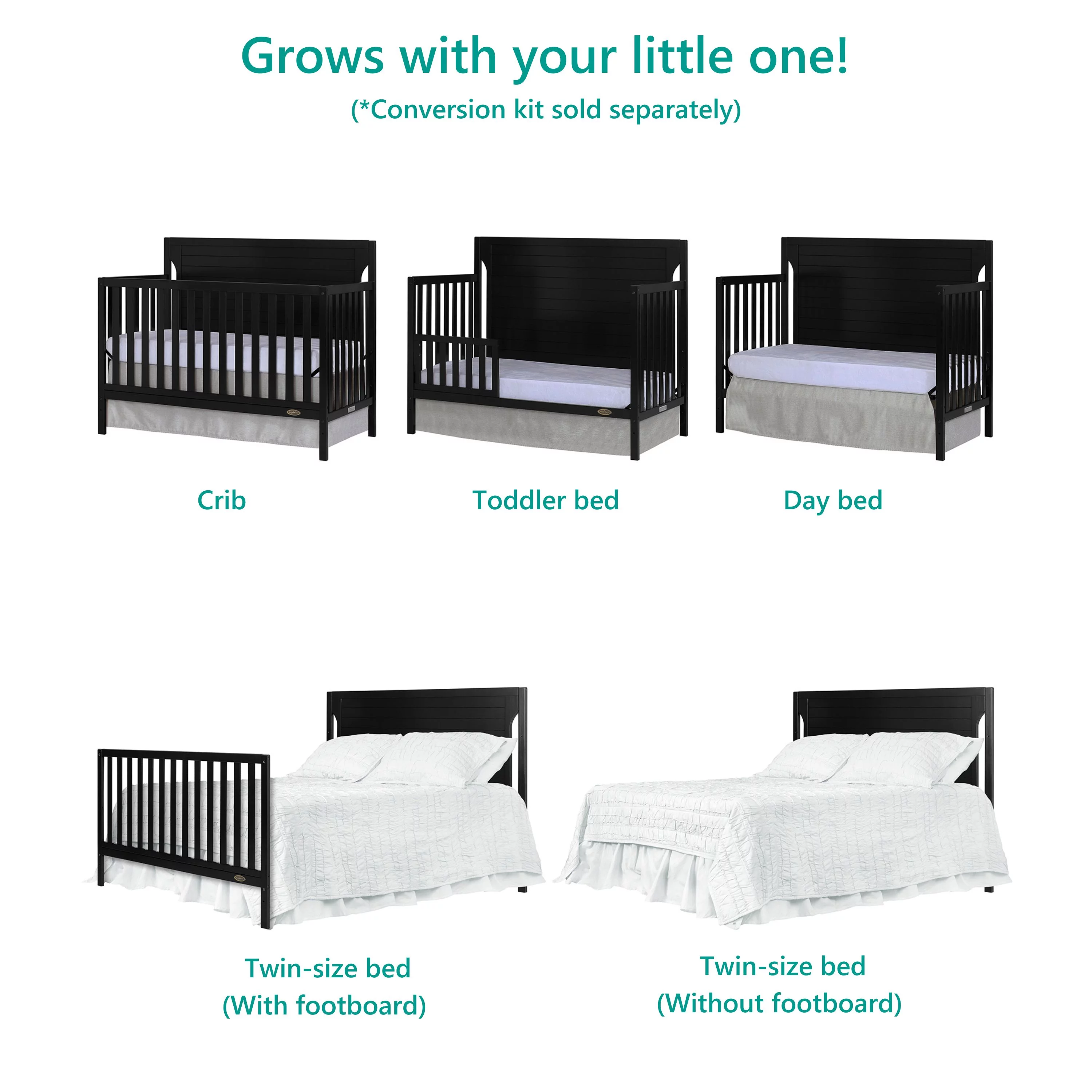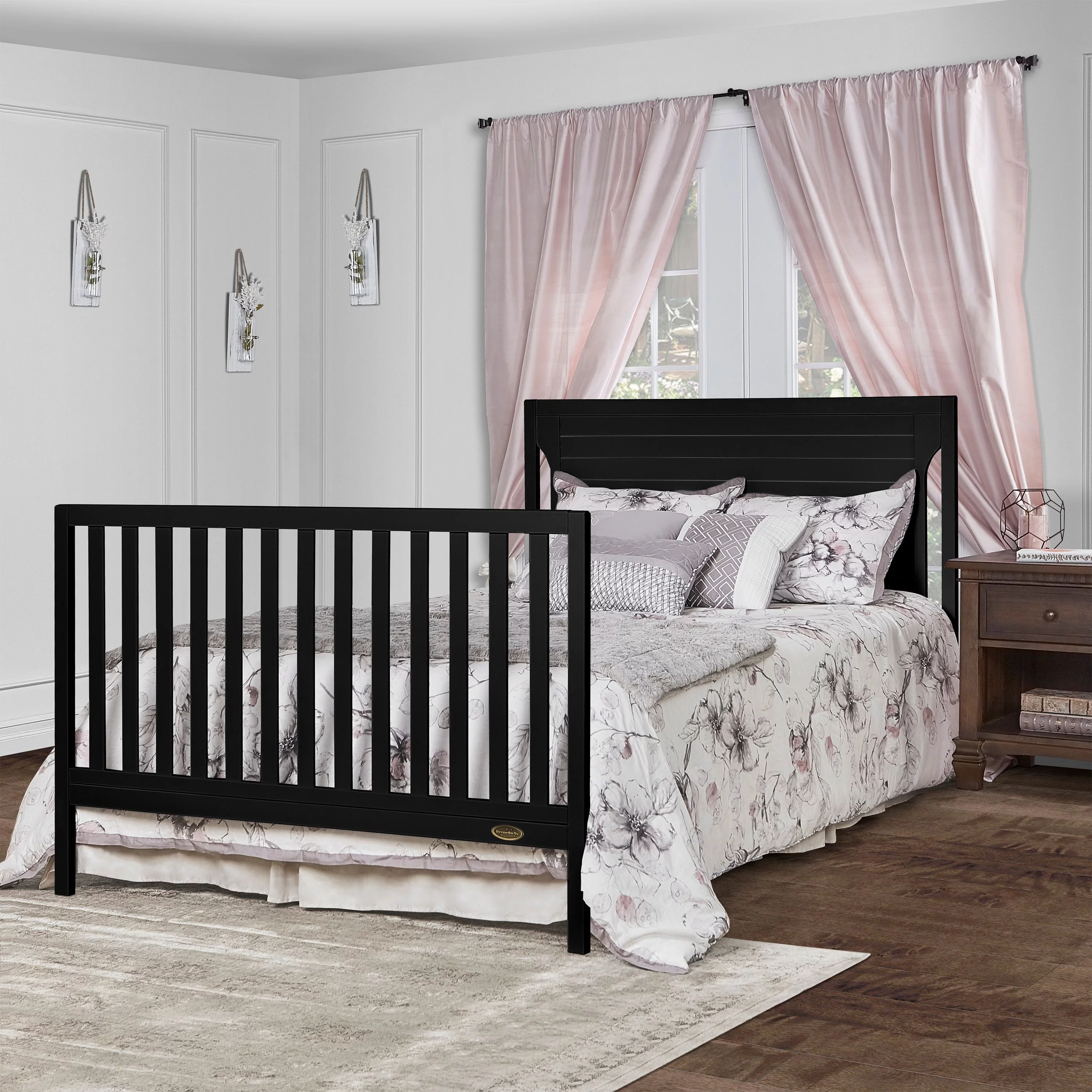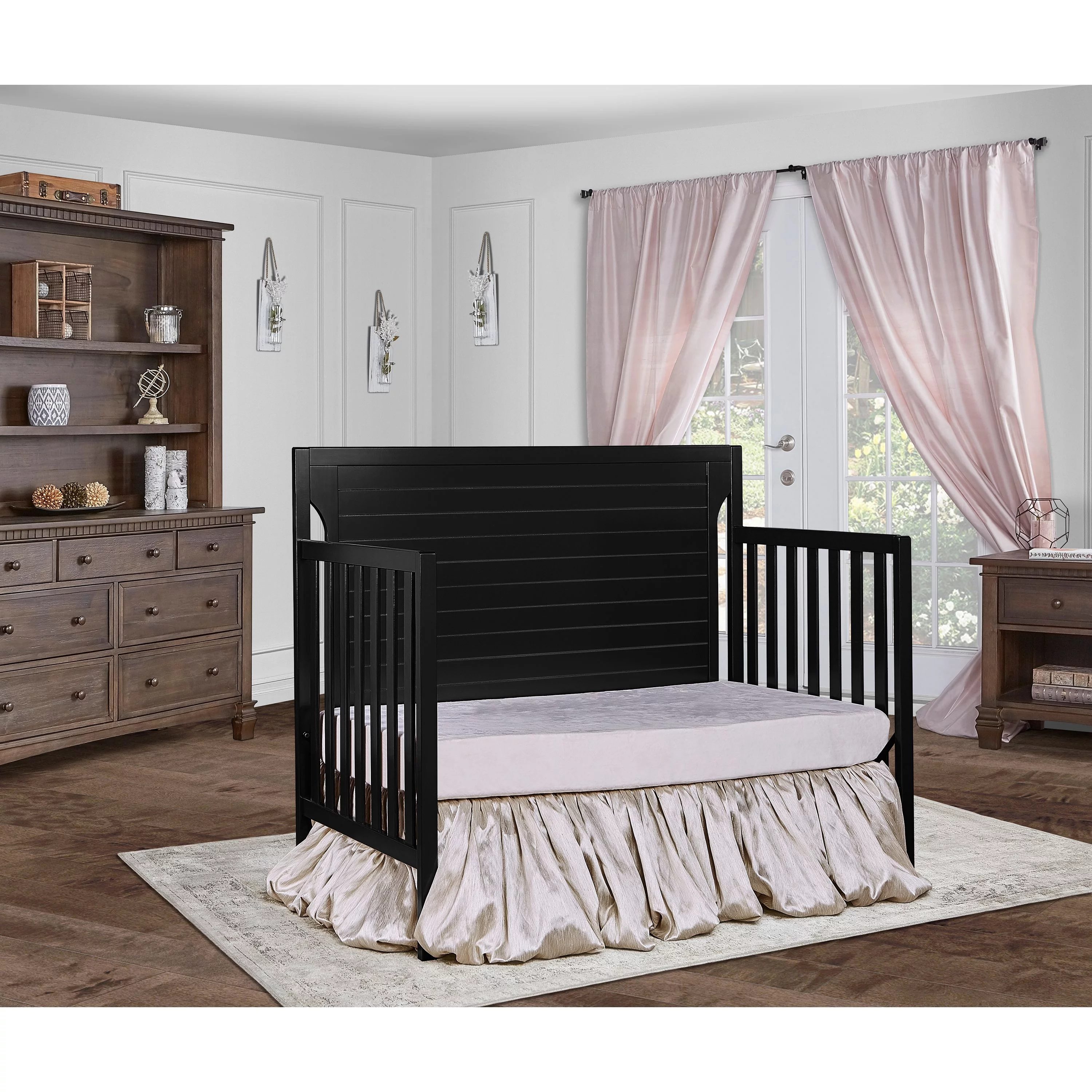 Dream On Me Aden Full Panel Convertible 4-in-1 Mini Crib In Black, Greeguard Gold Certified