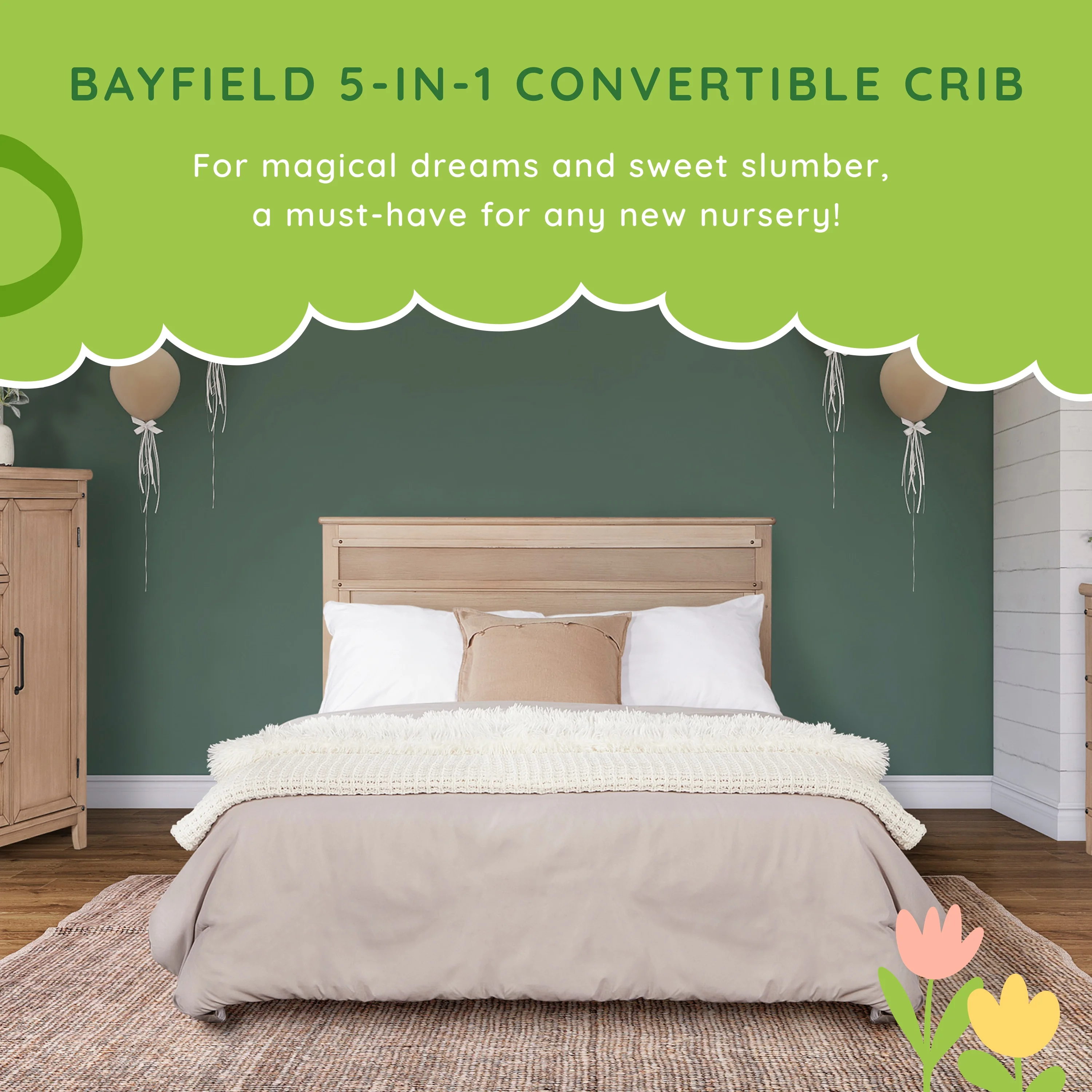 Dream On Me Bayfield 5-in-1 Convertible Crib, JPMA and Greenguard Gold Certified, Sand Dunes