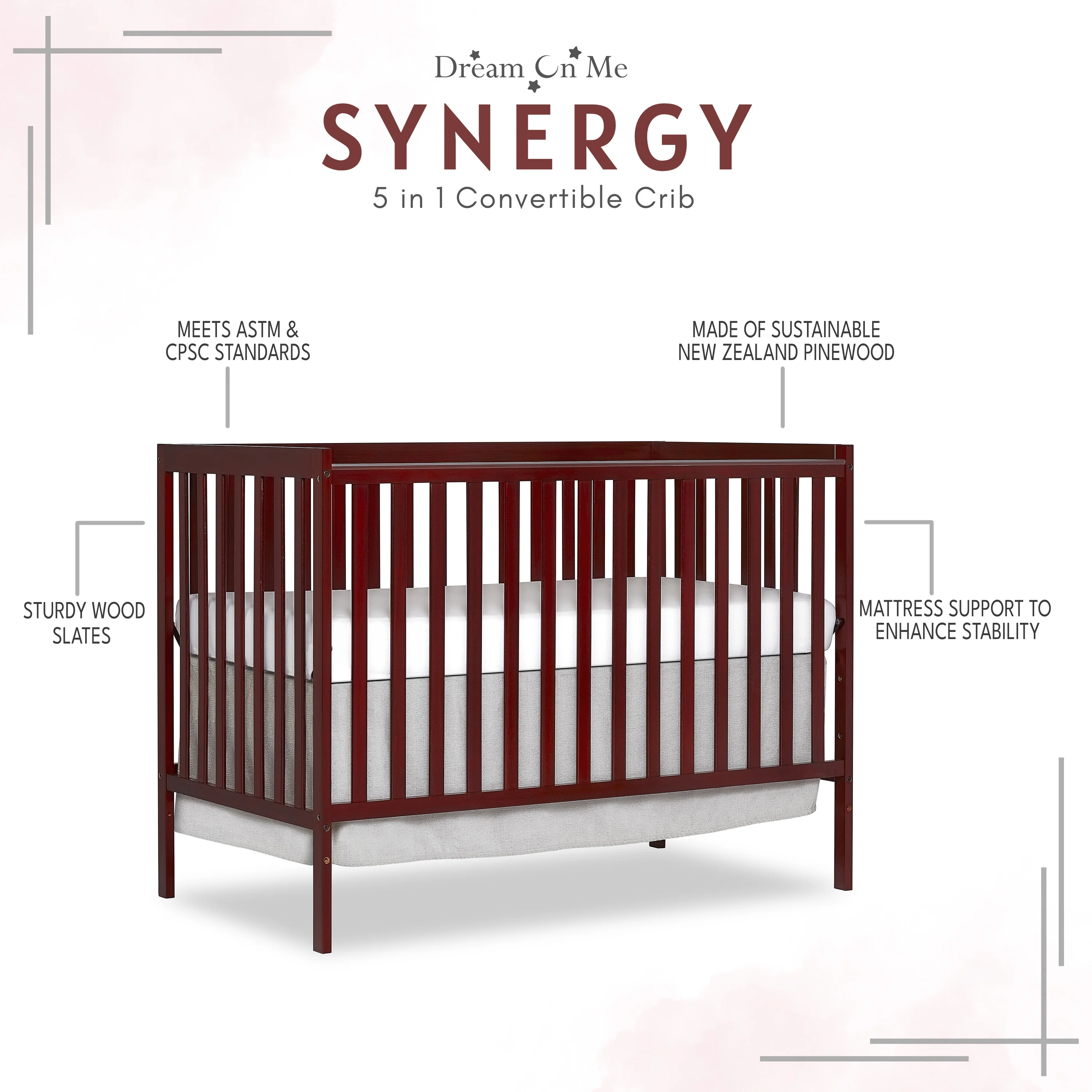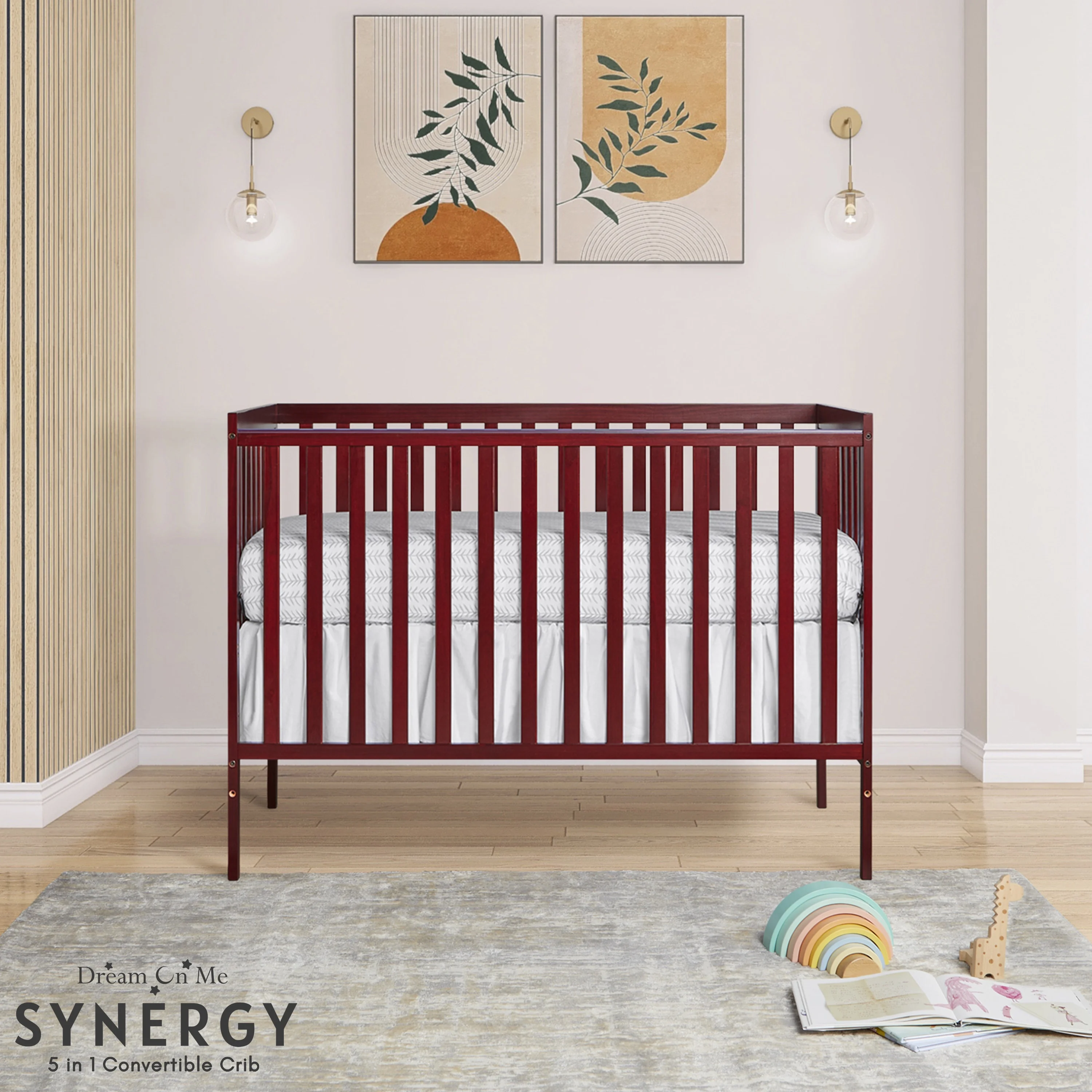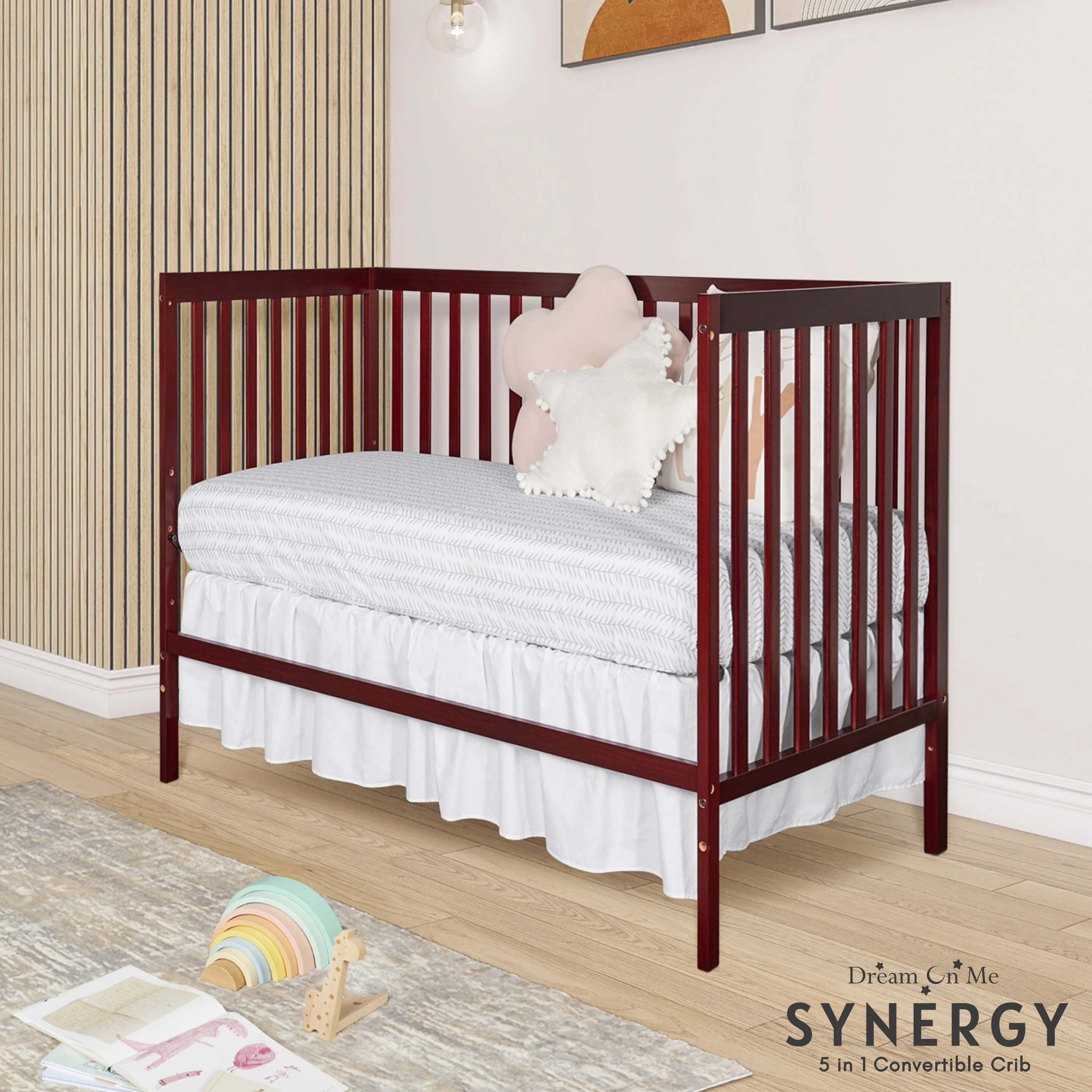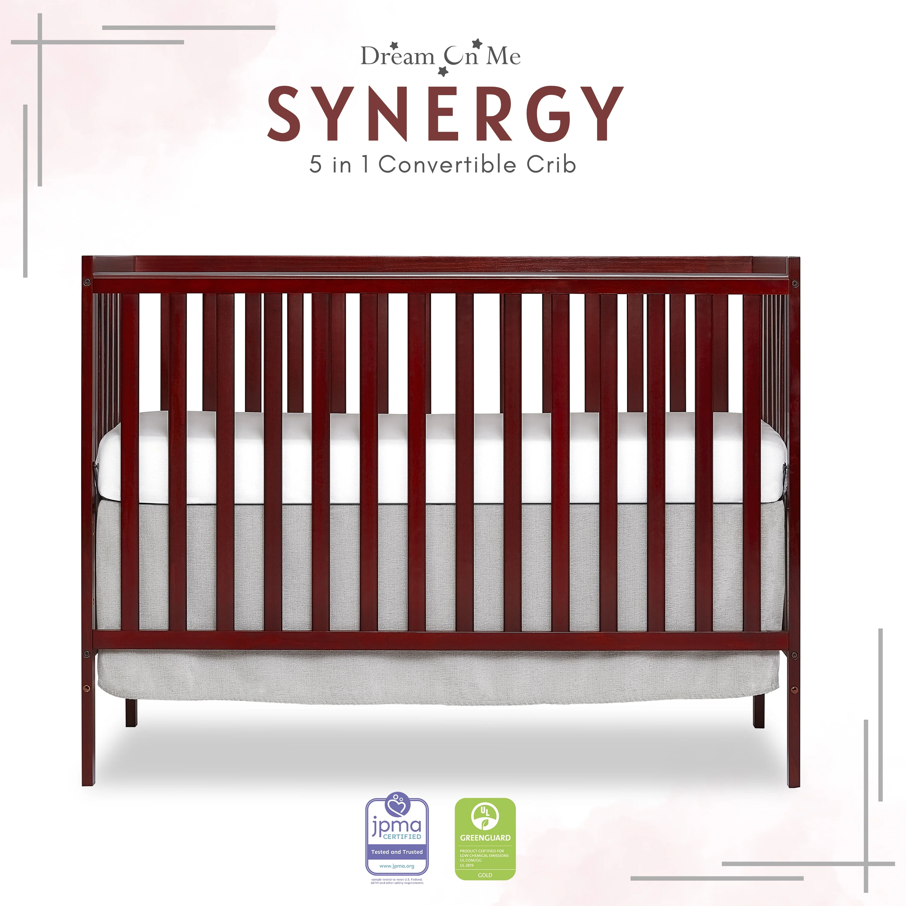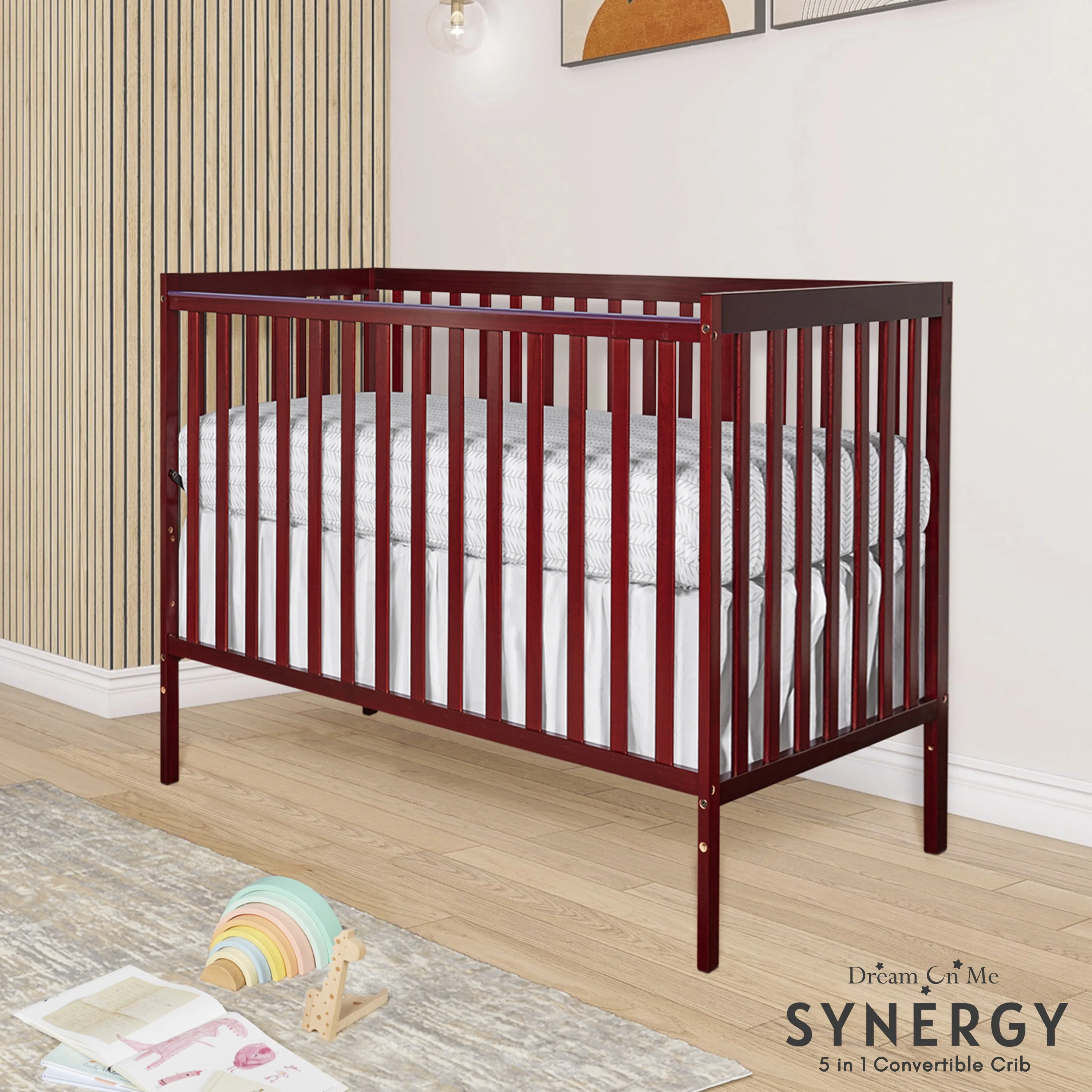 Dream On Me Synergy 5-in-1 Convertible Crib in Cherry, Greenguard Gold Certified