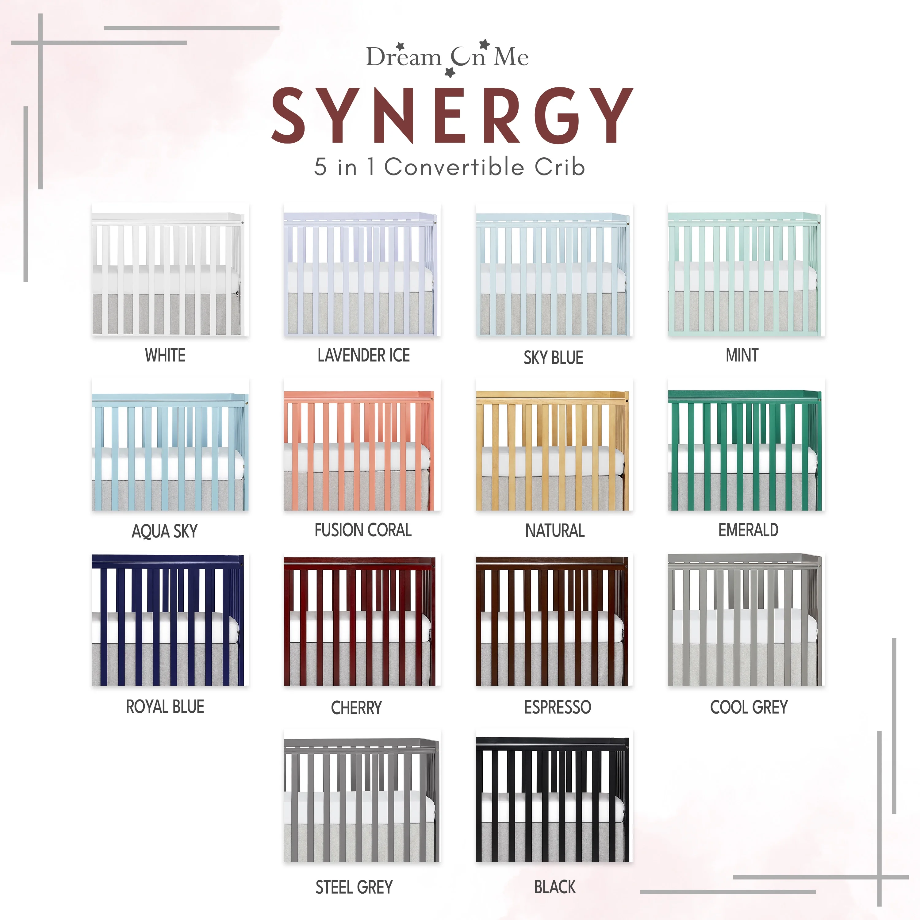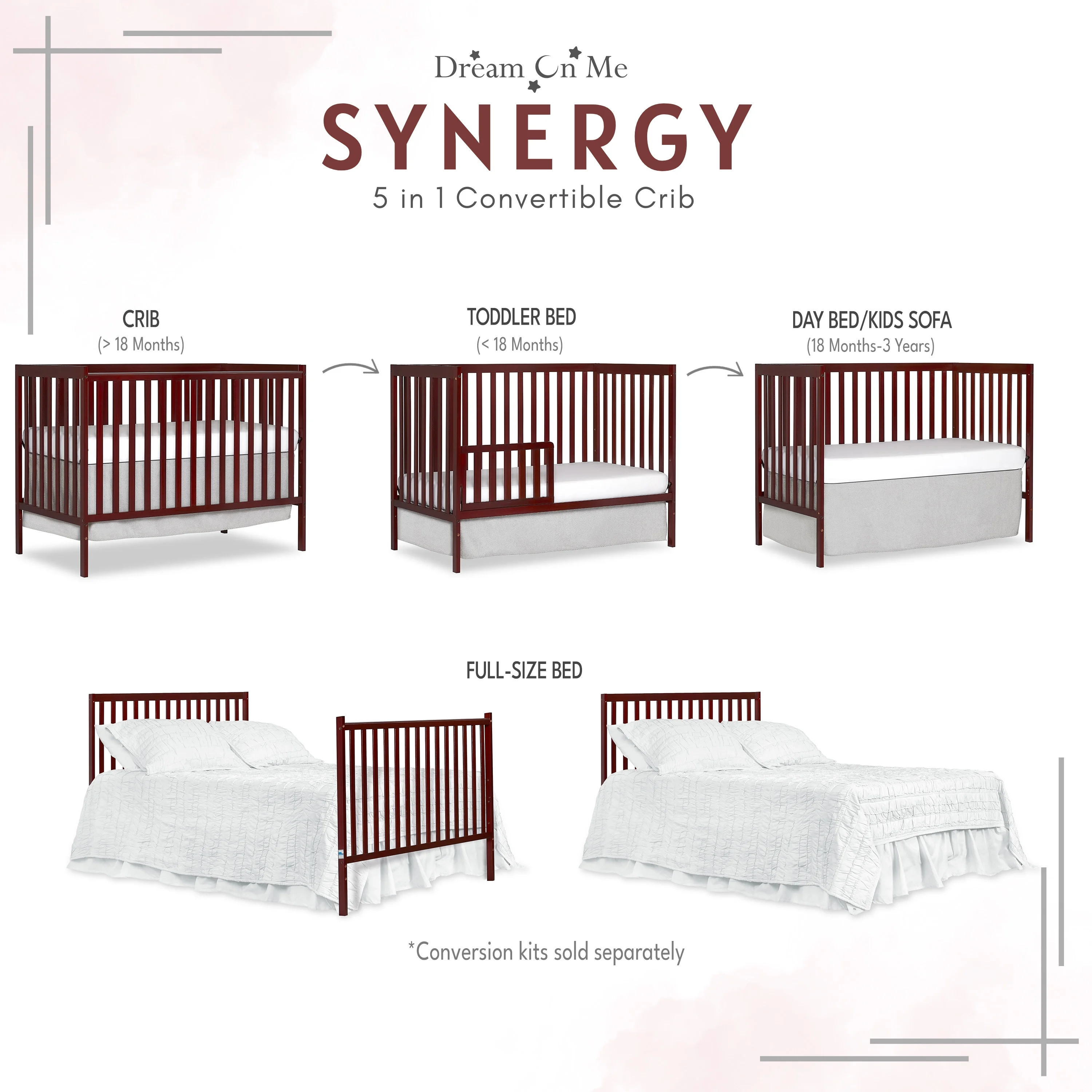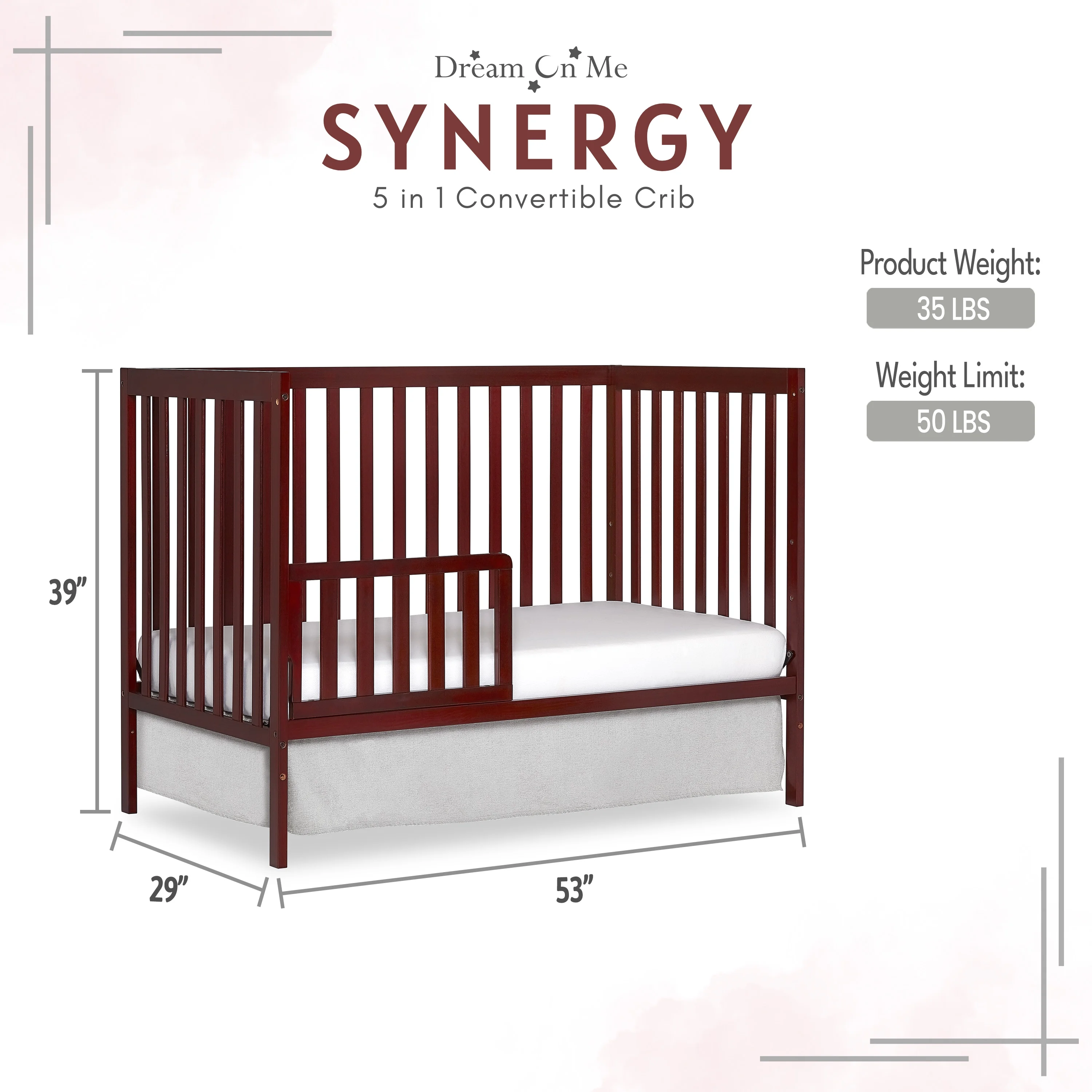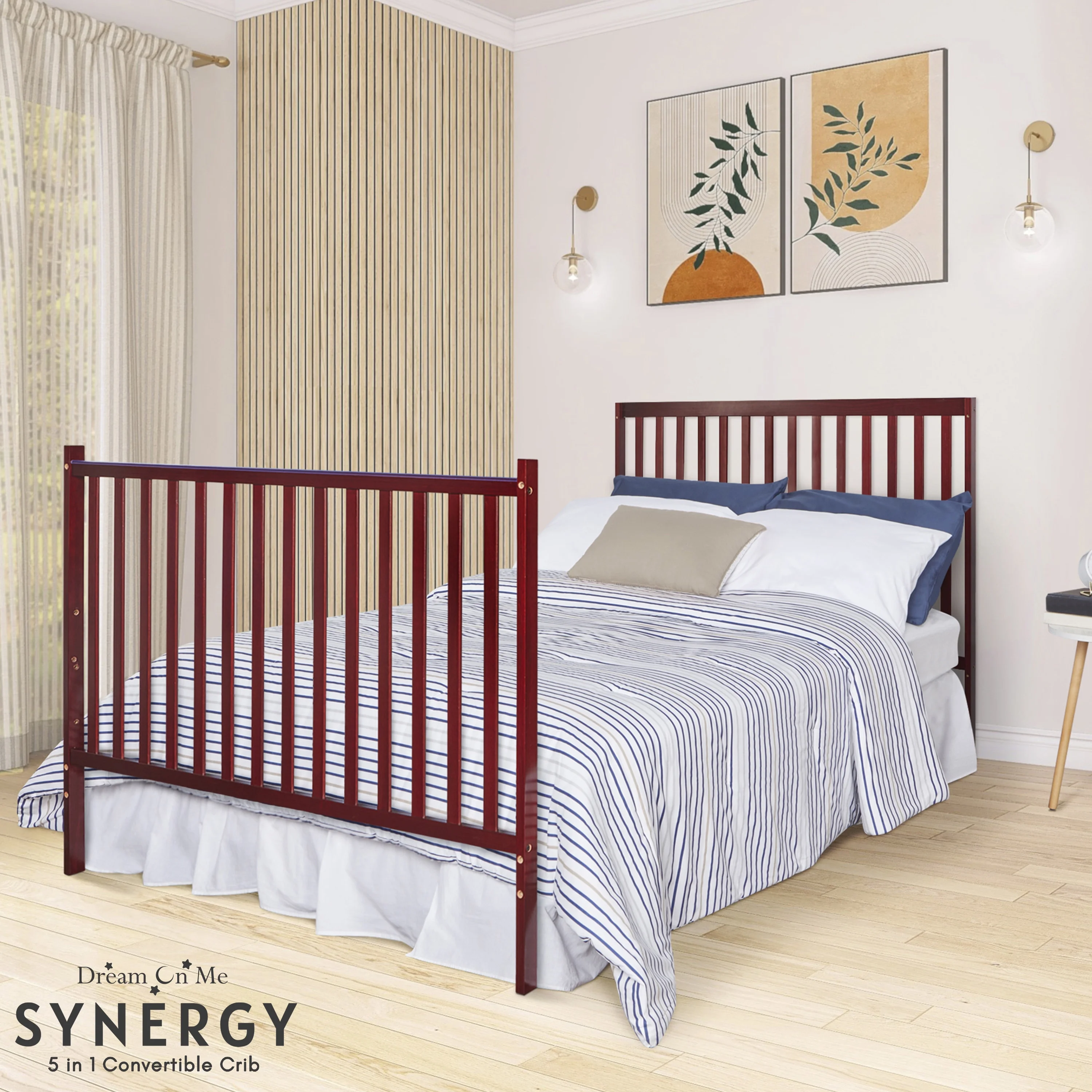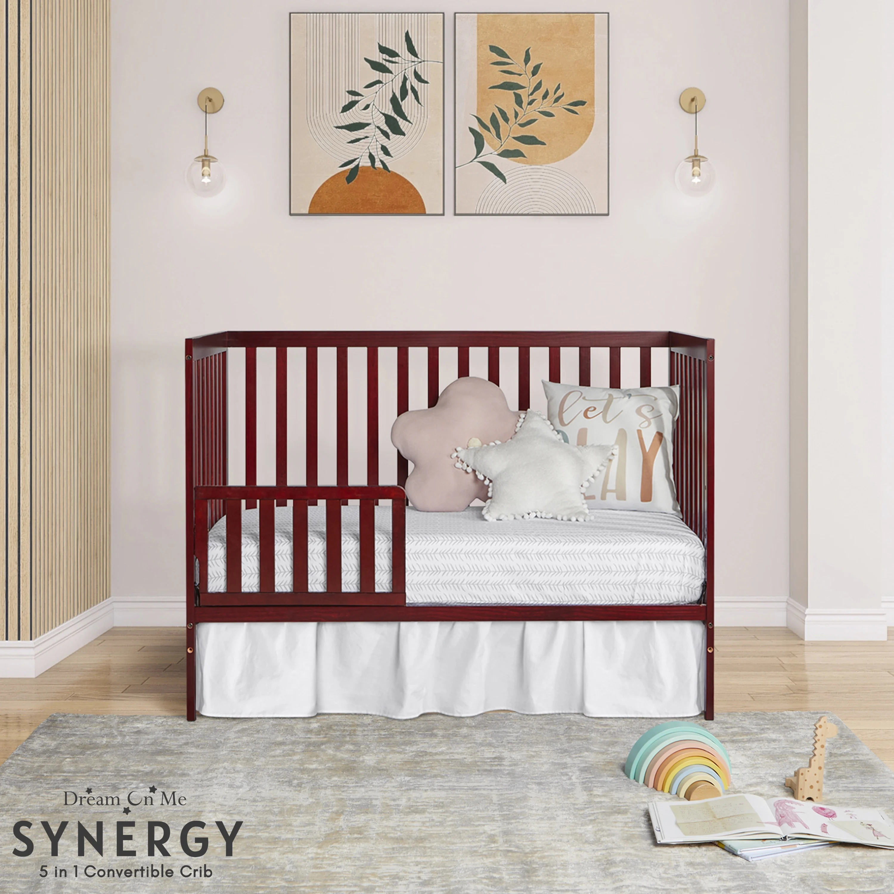 Dream On Me Synergy 5-in-1 Convertible Crib in Cherry, Greenguard Gold Certified