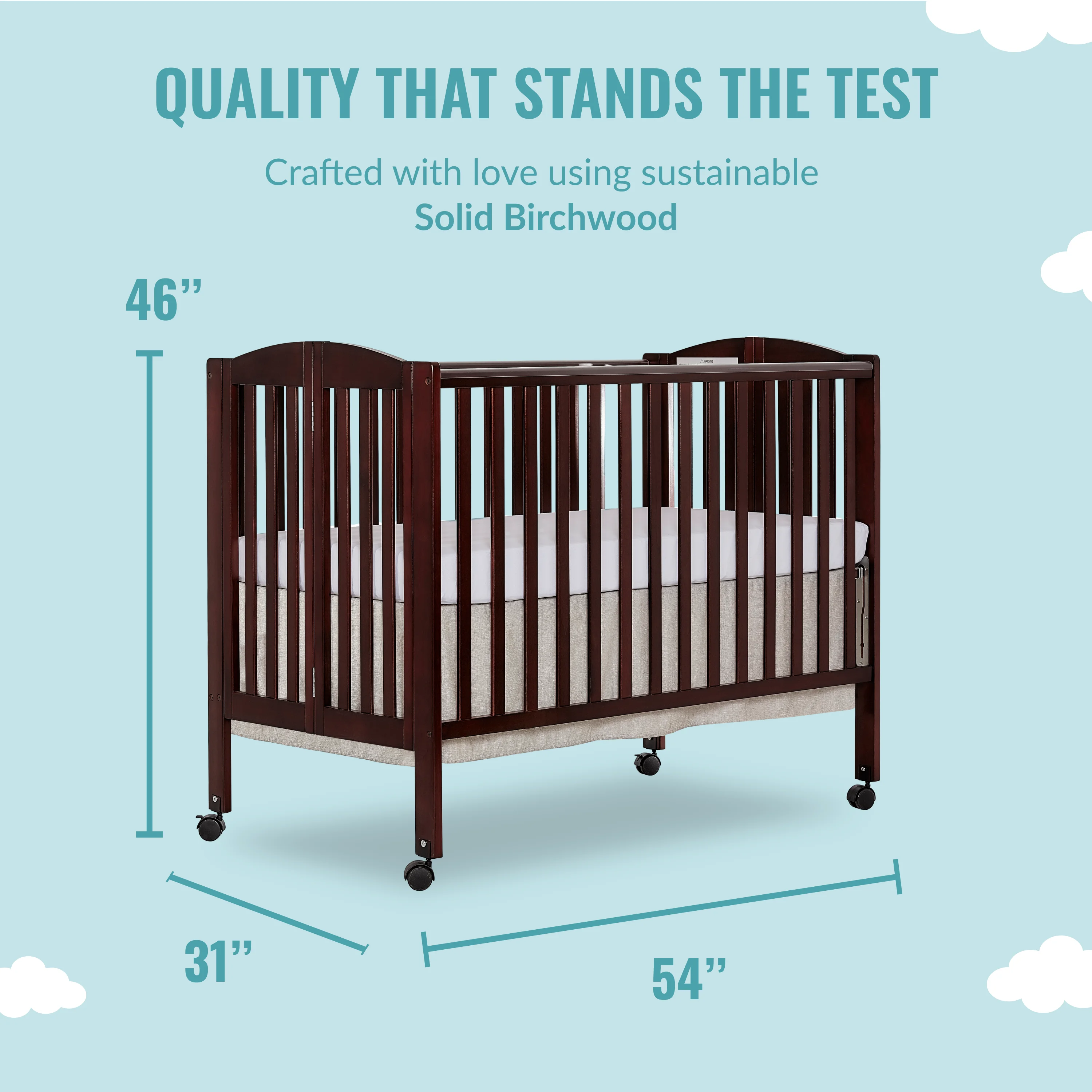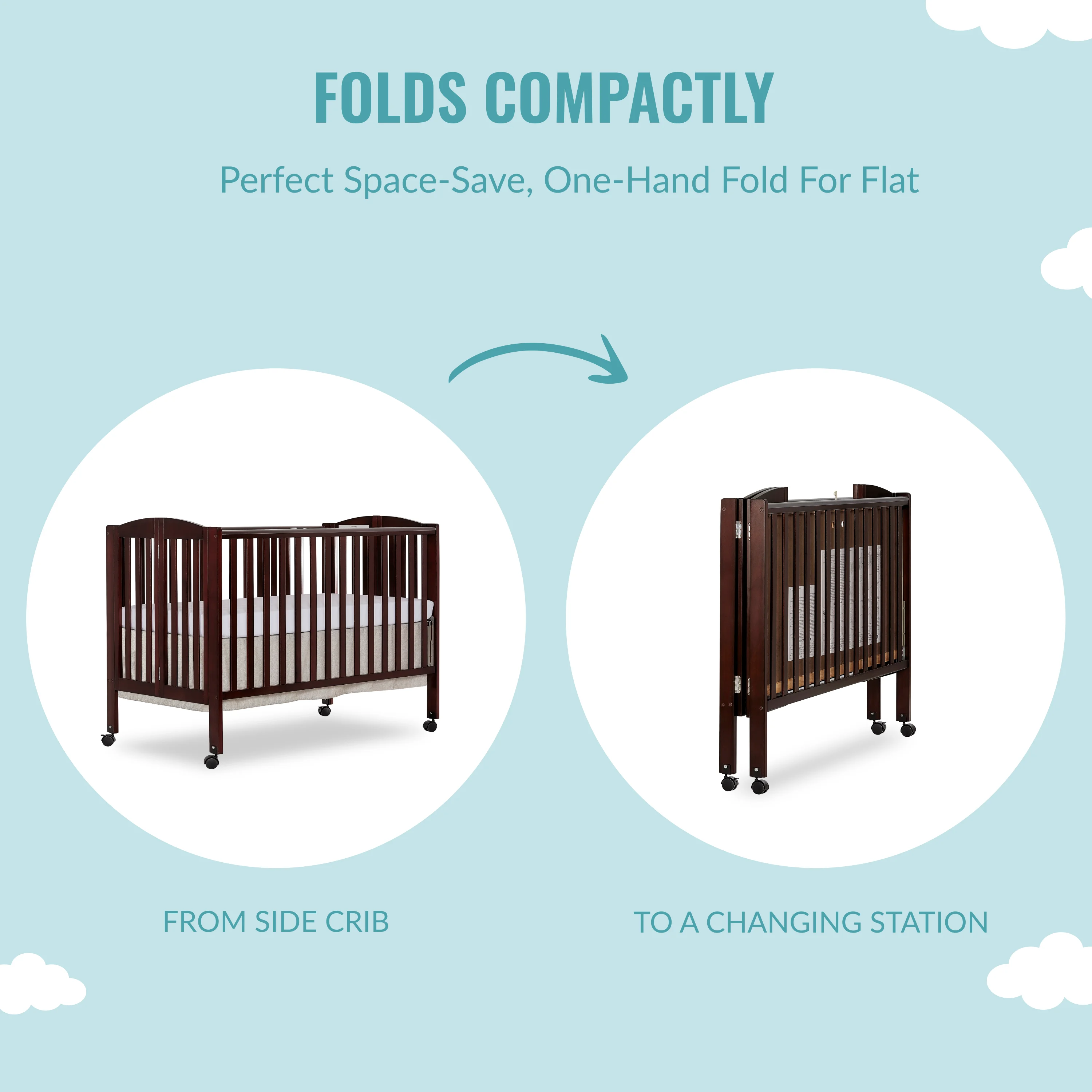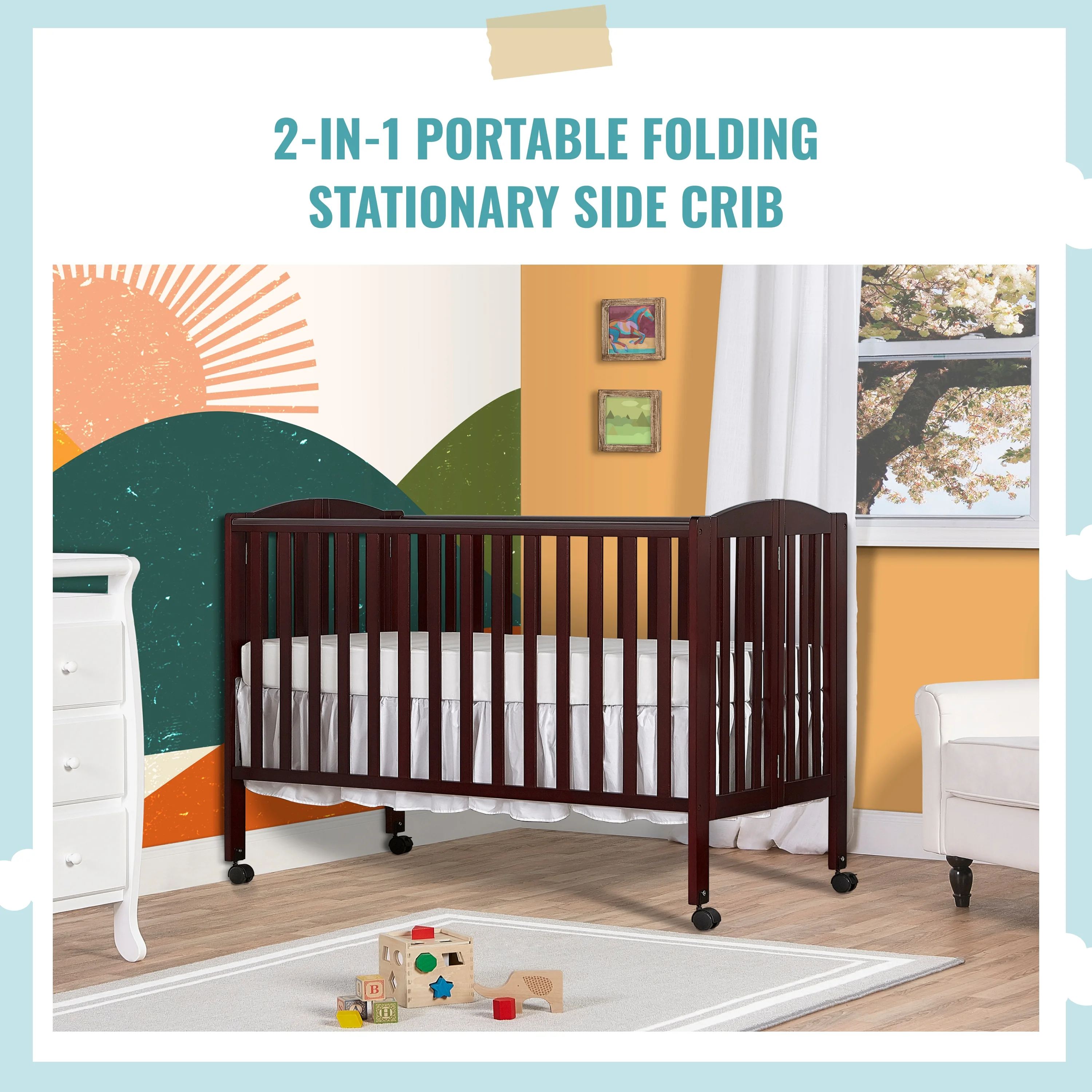 Dream On Me Full Size 2-in-1 Folding Stationary Side Crib, Locking Wheels, Espresso