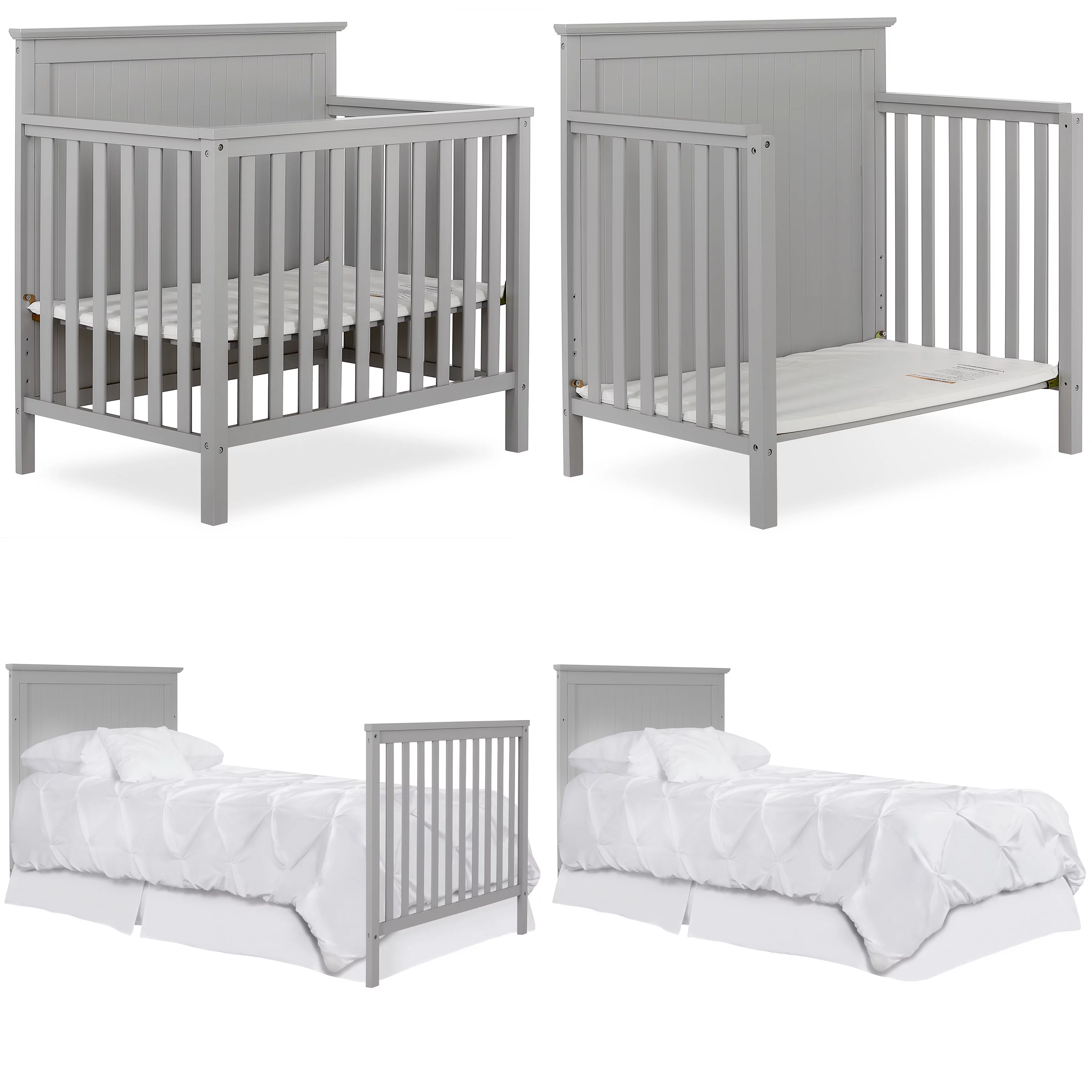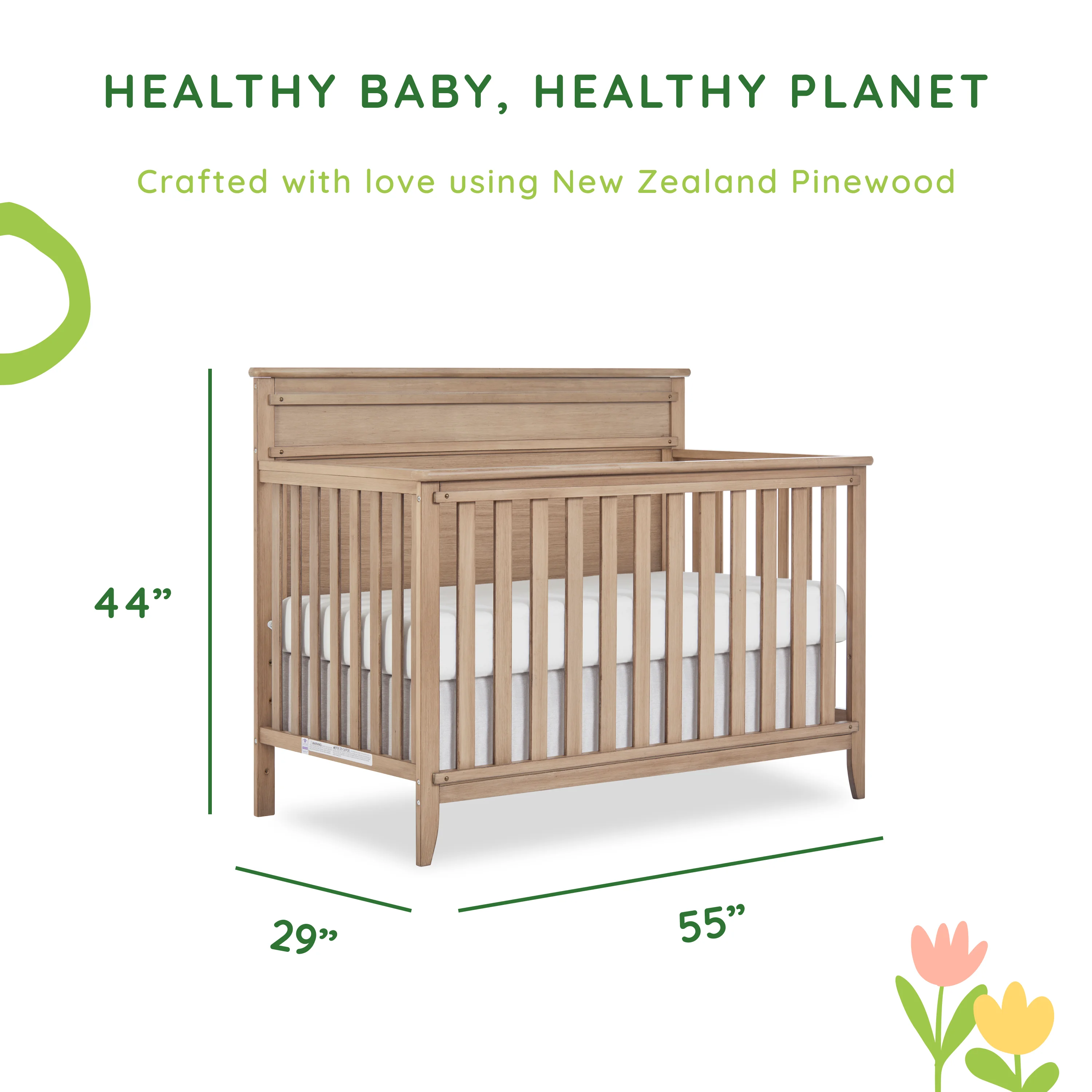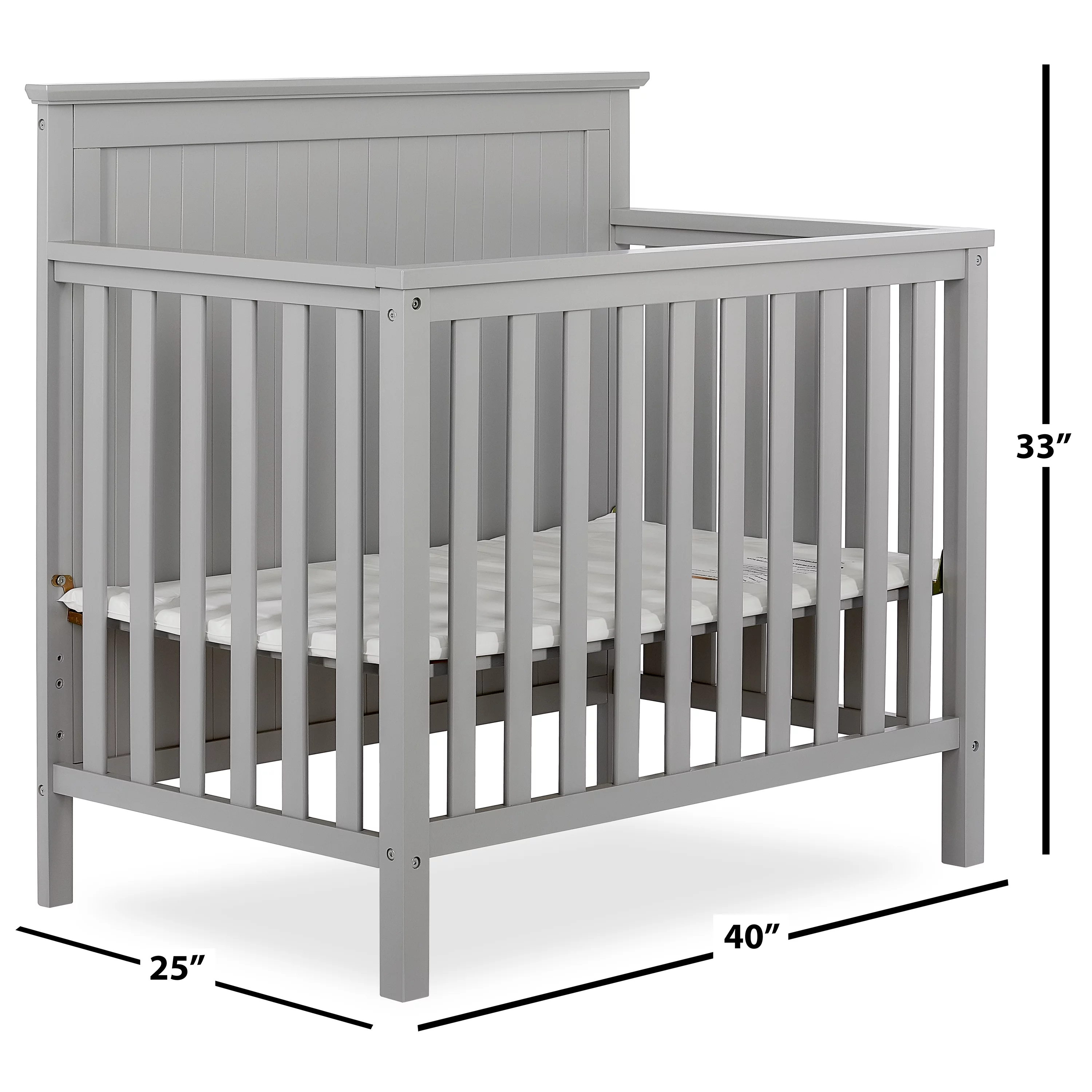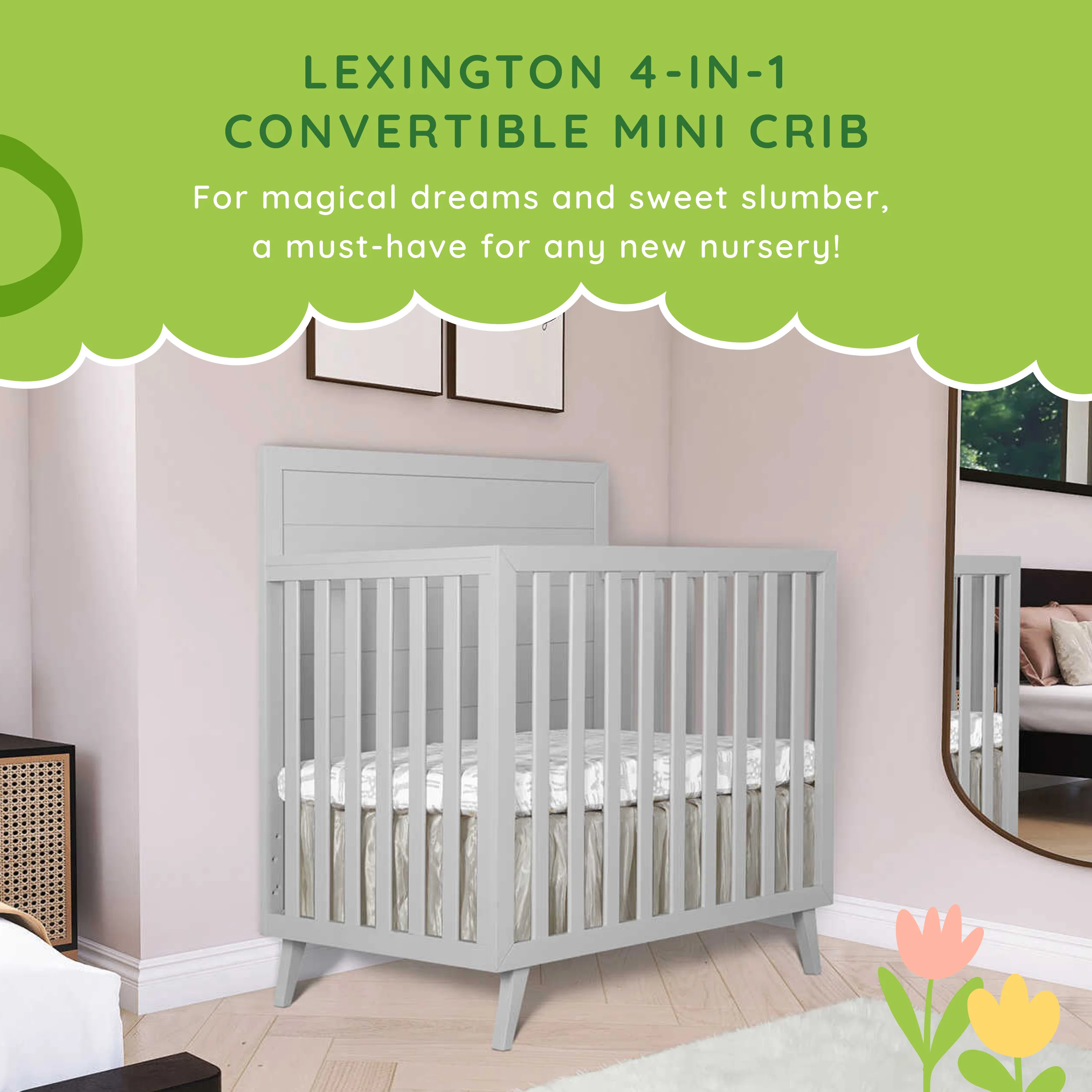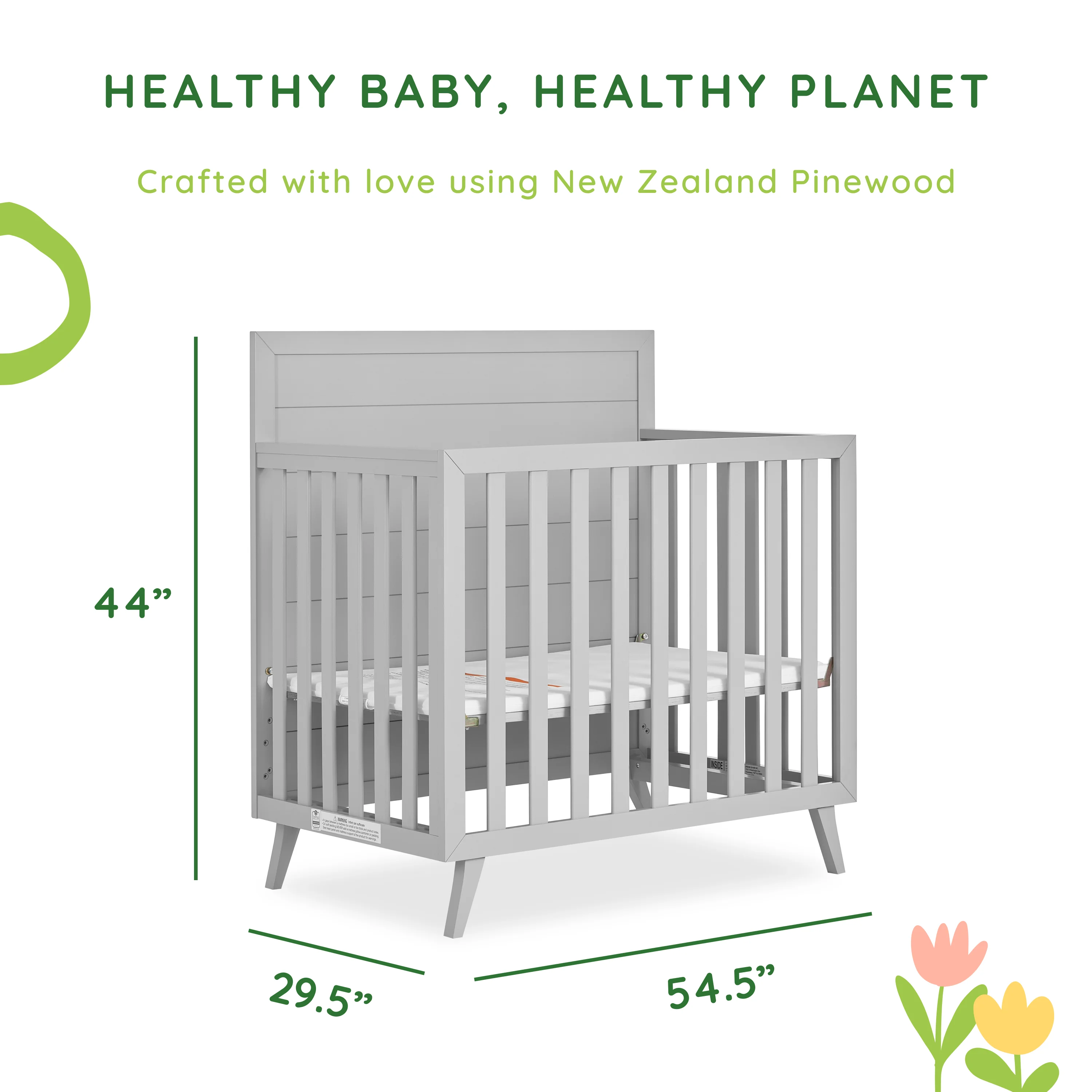 Dream On Me Lexington 4 in 1 Convertible Mini Crib, Sustainable New Zealand Pinewood, Pebble Grey