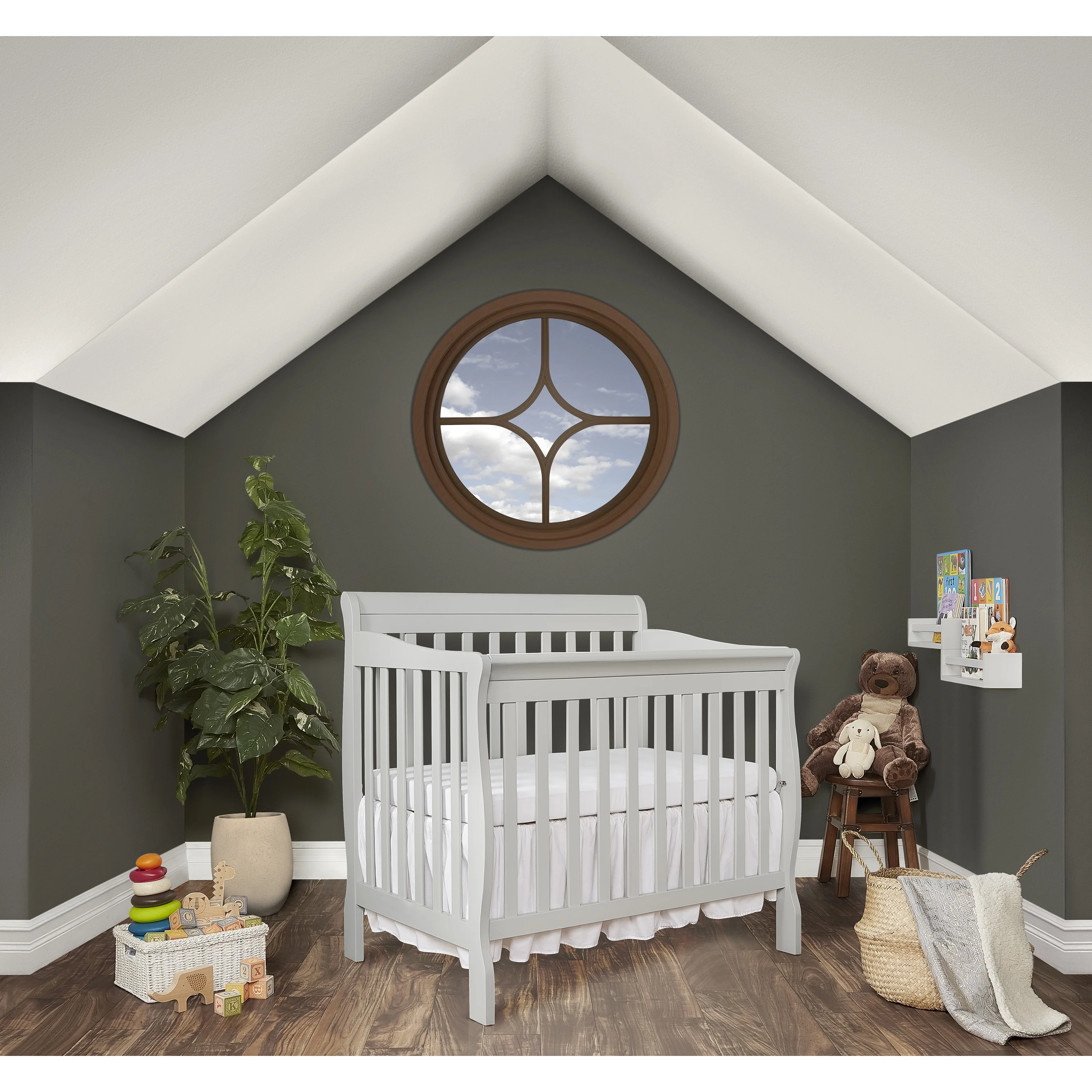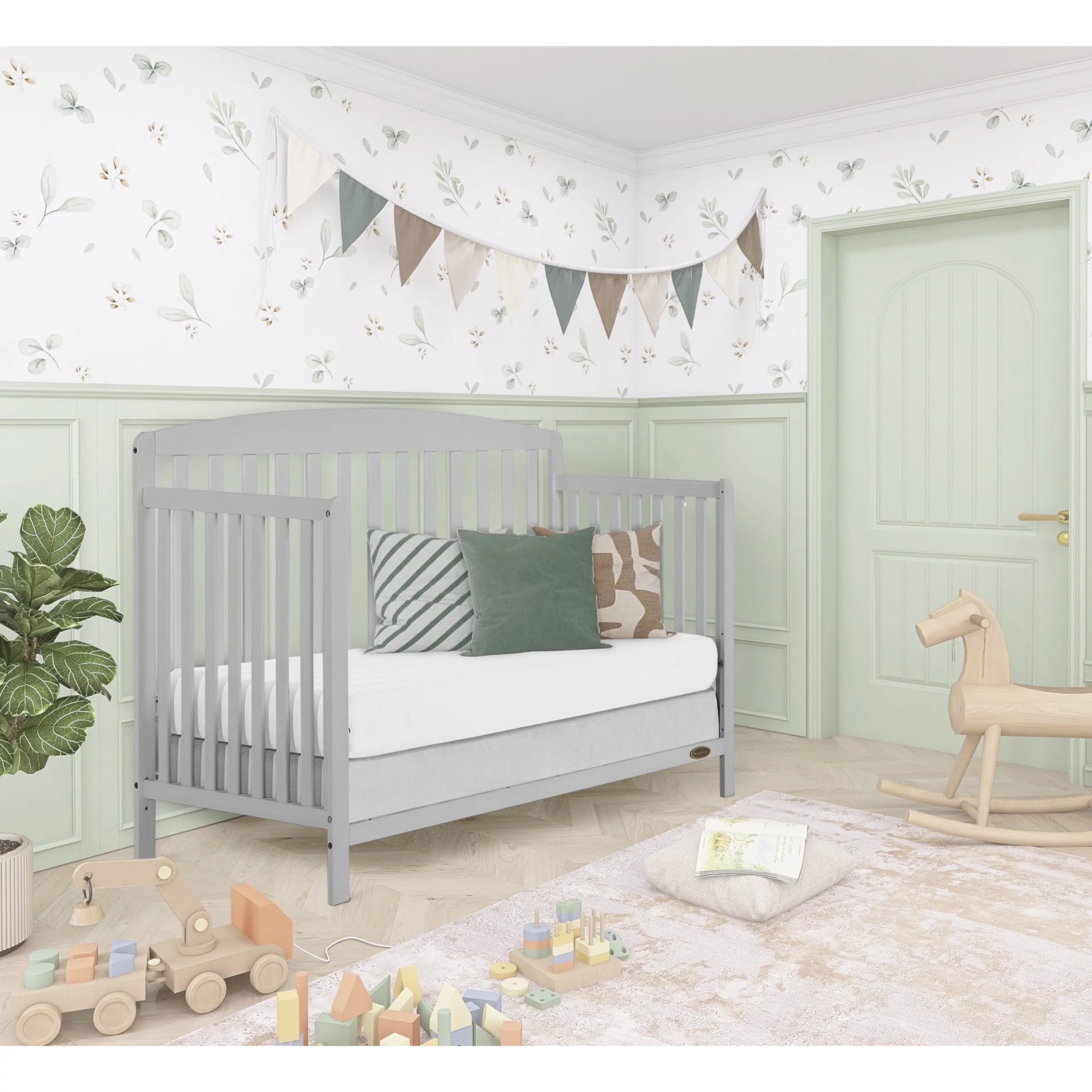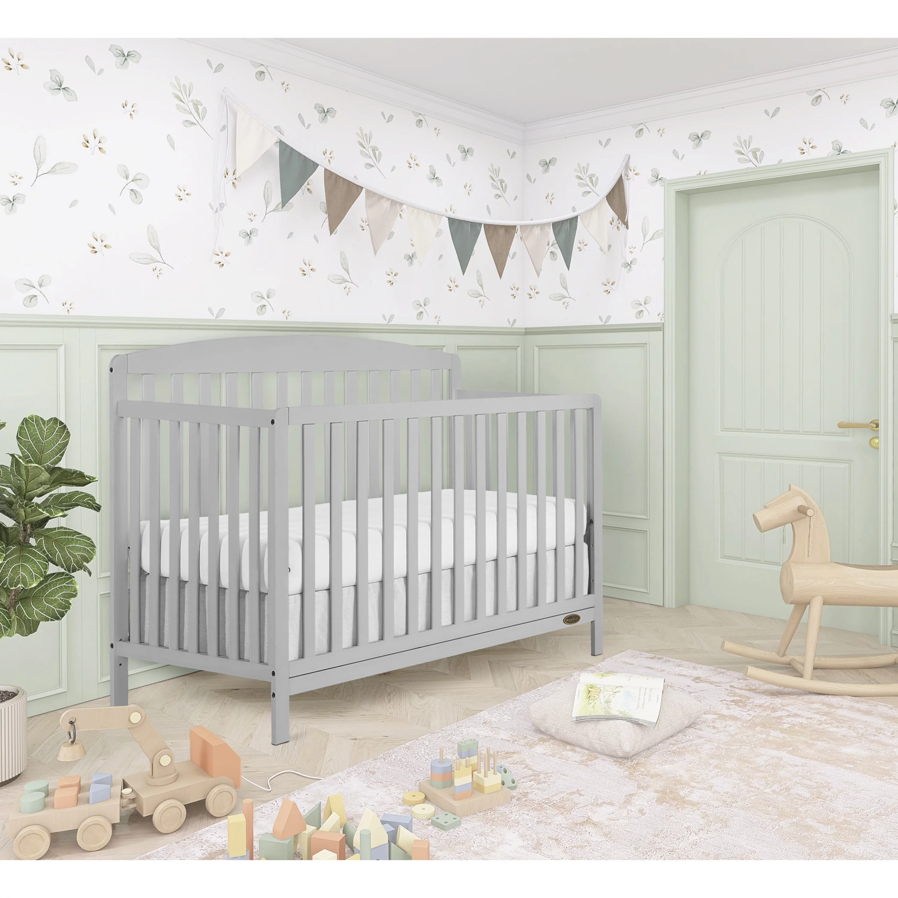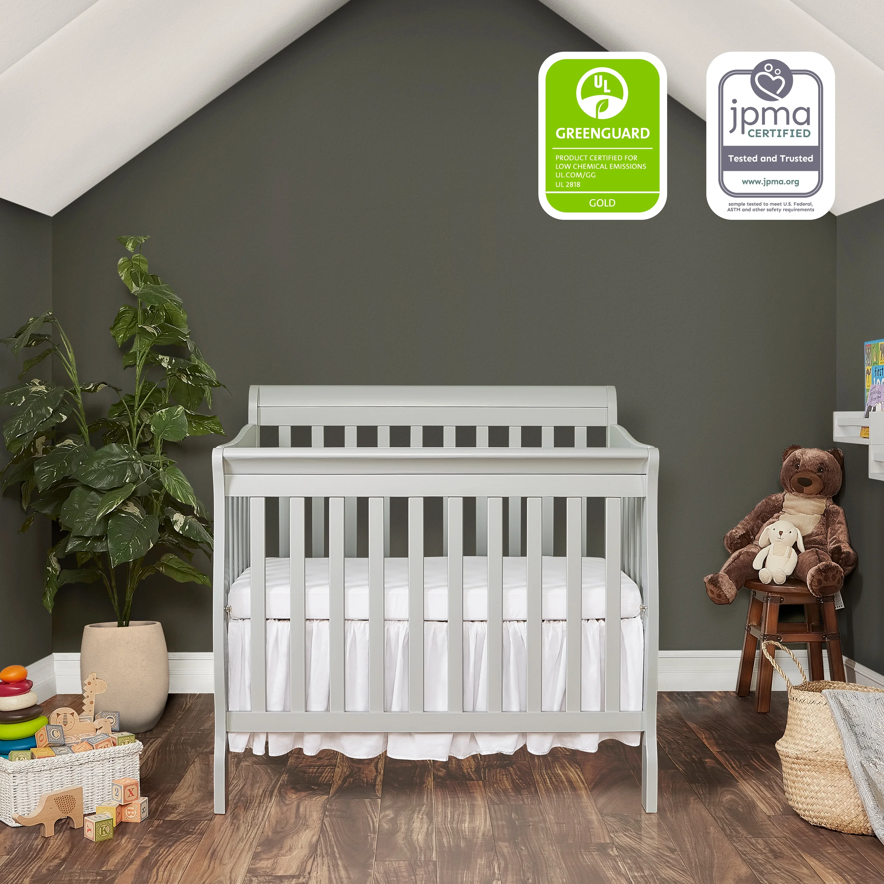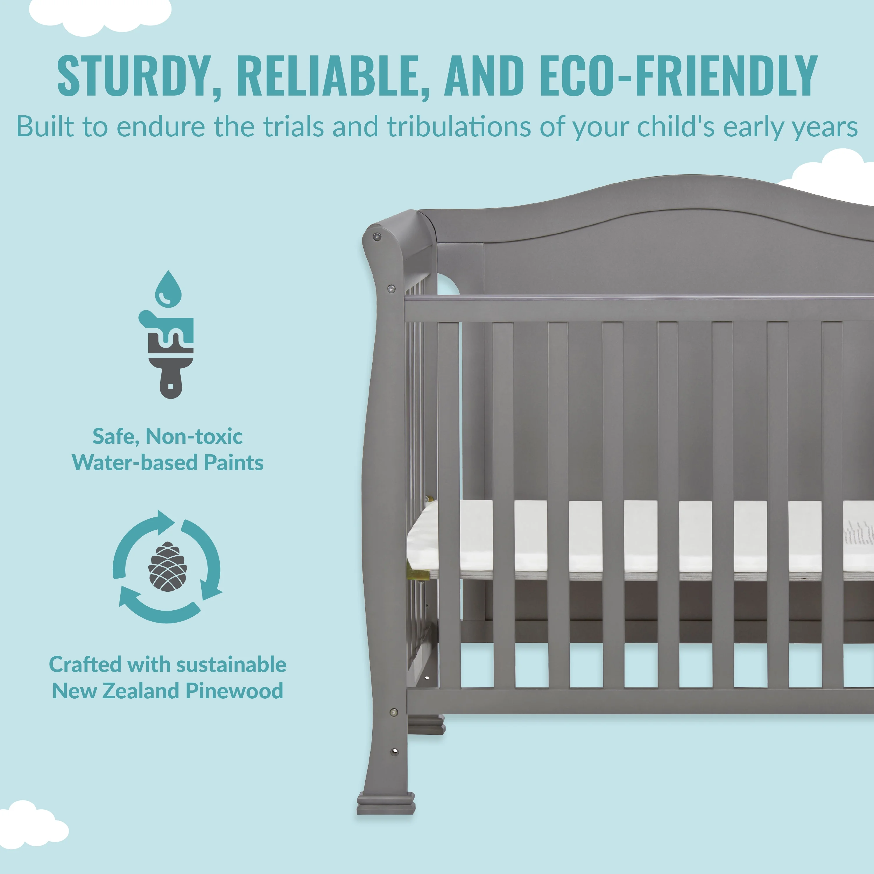Dream On Me Lexington 4 in 1 Convertible Mini Crib, Sustainable New Zealand Pinewood, Pebble Grey