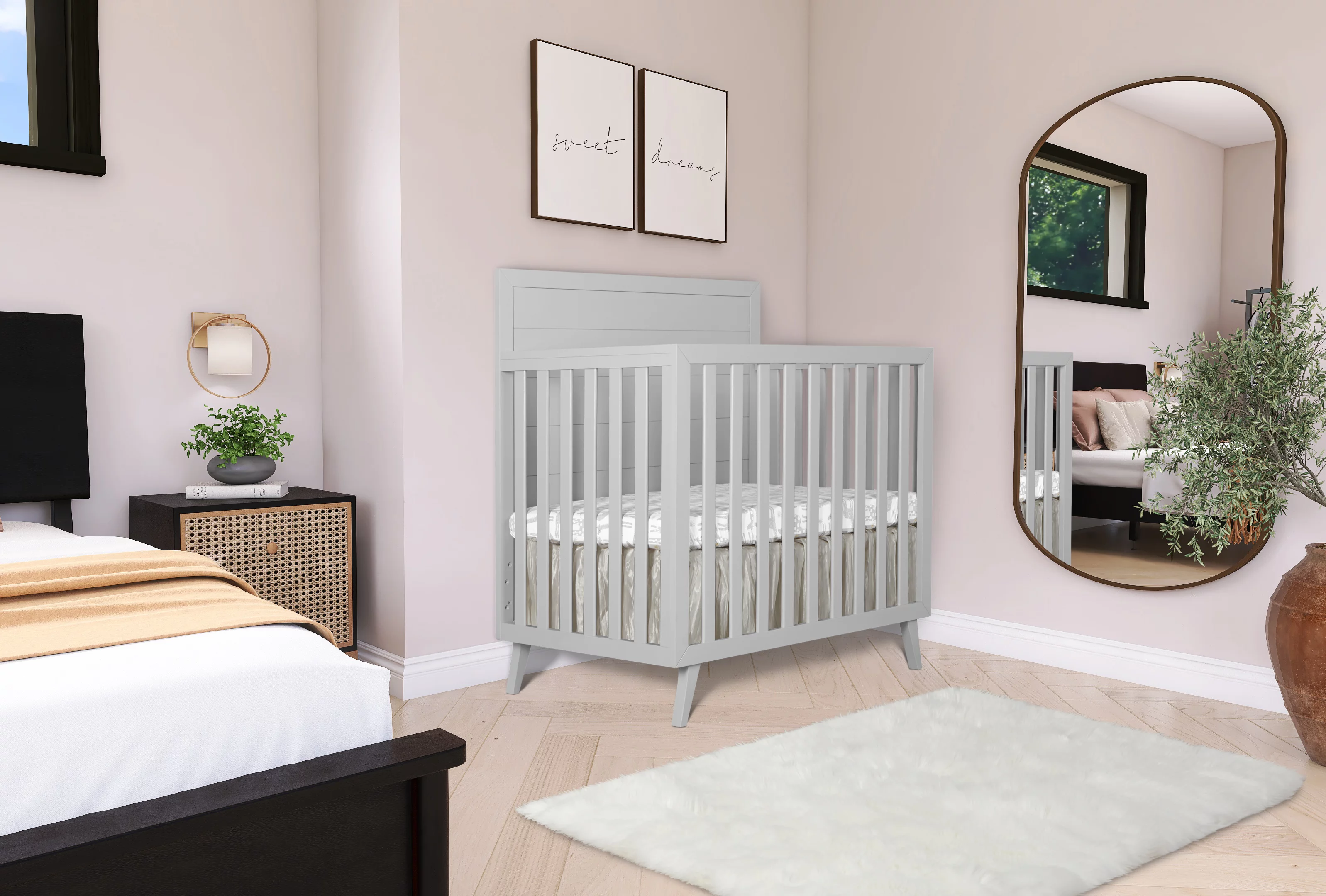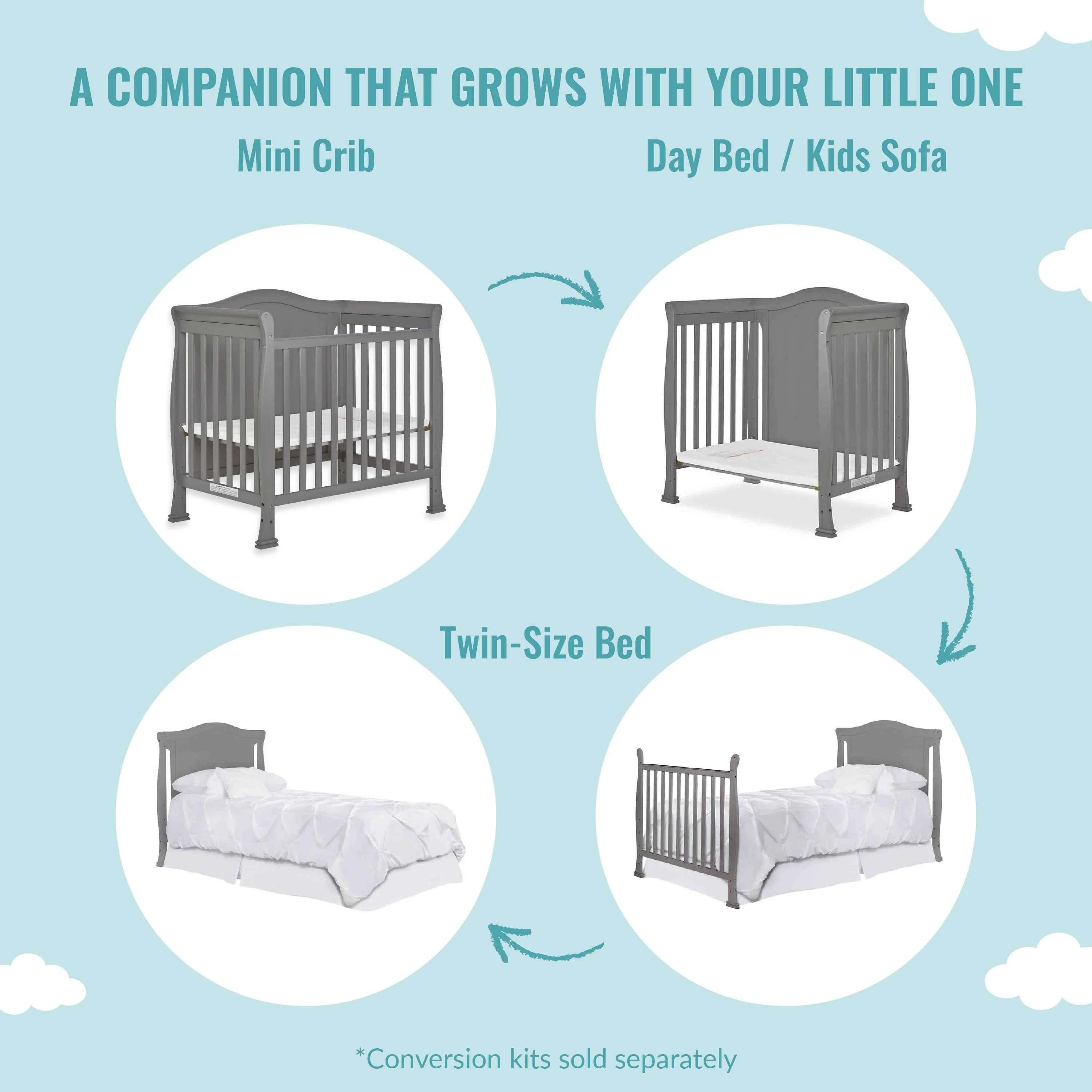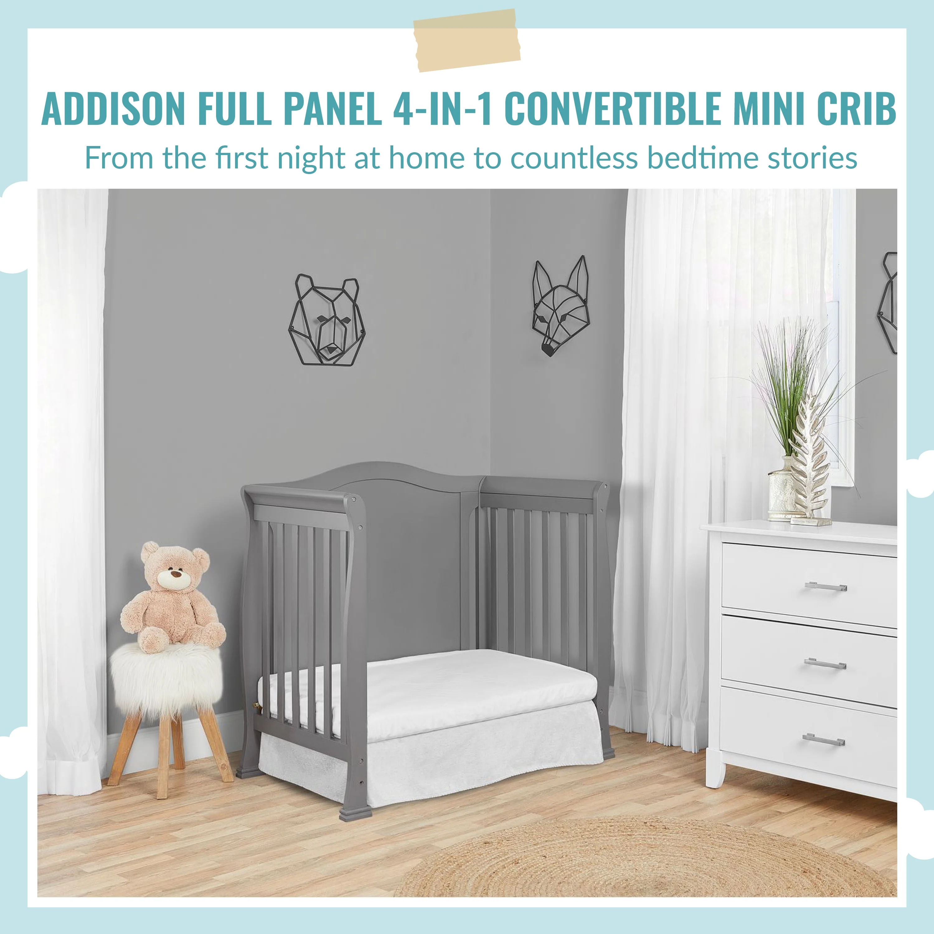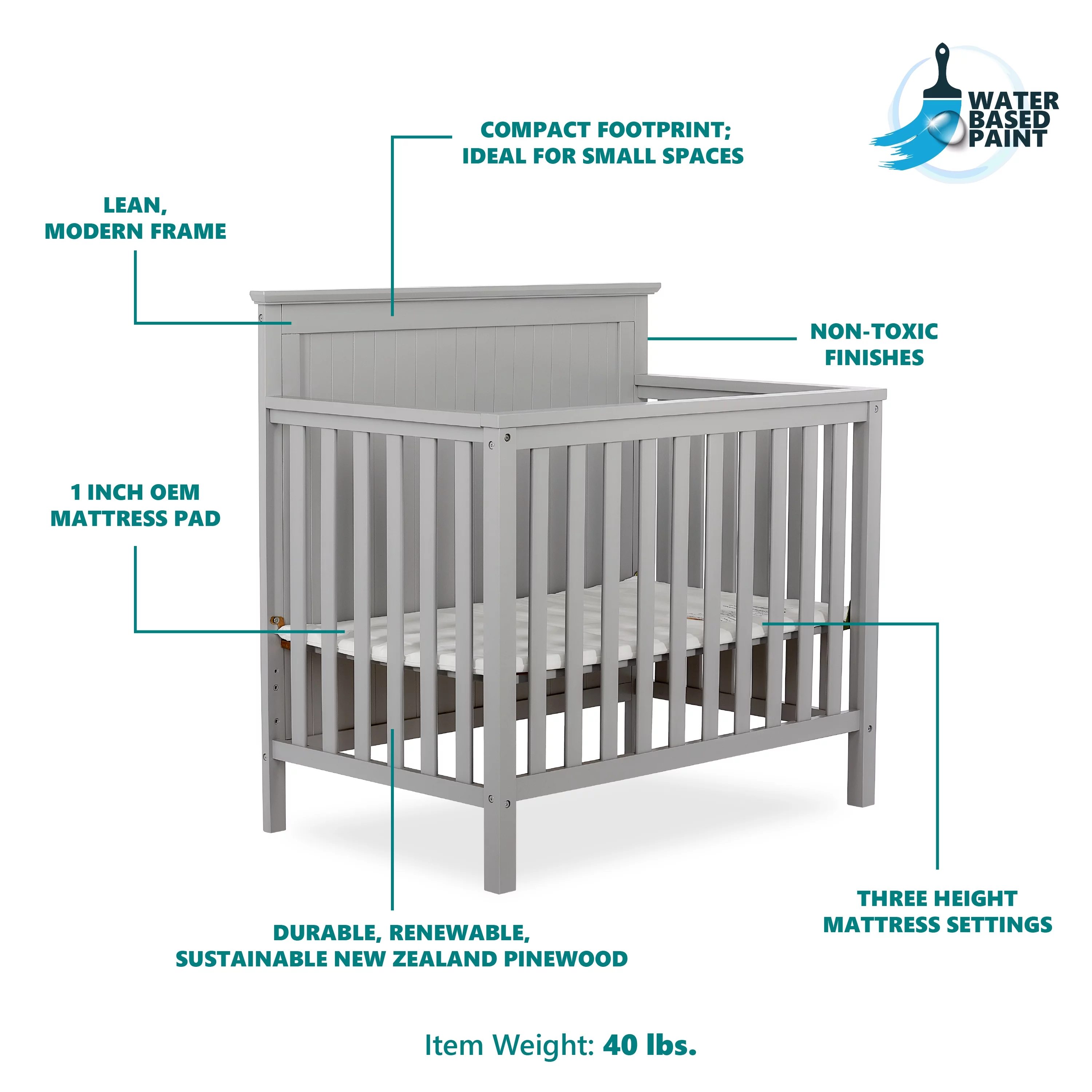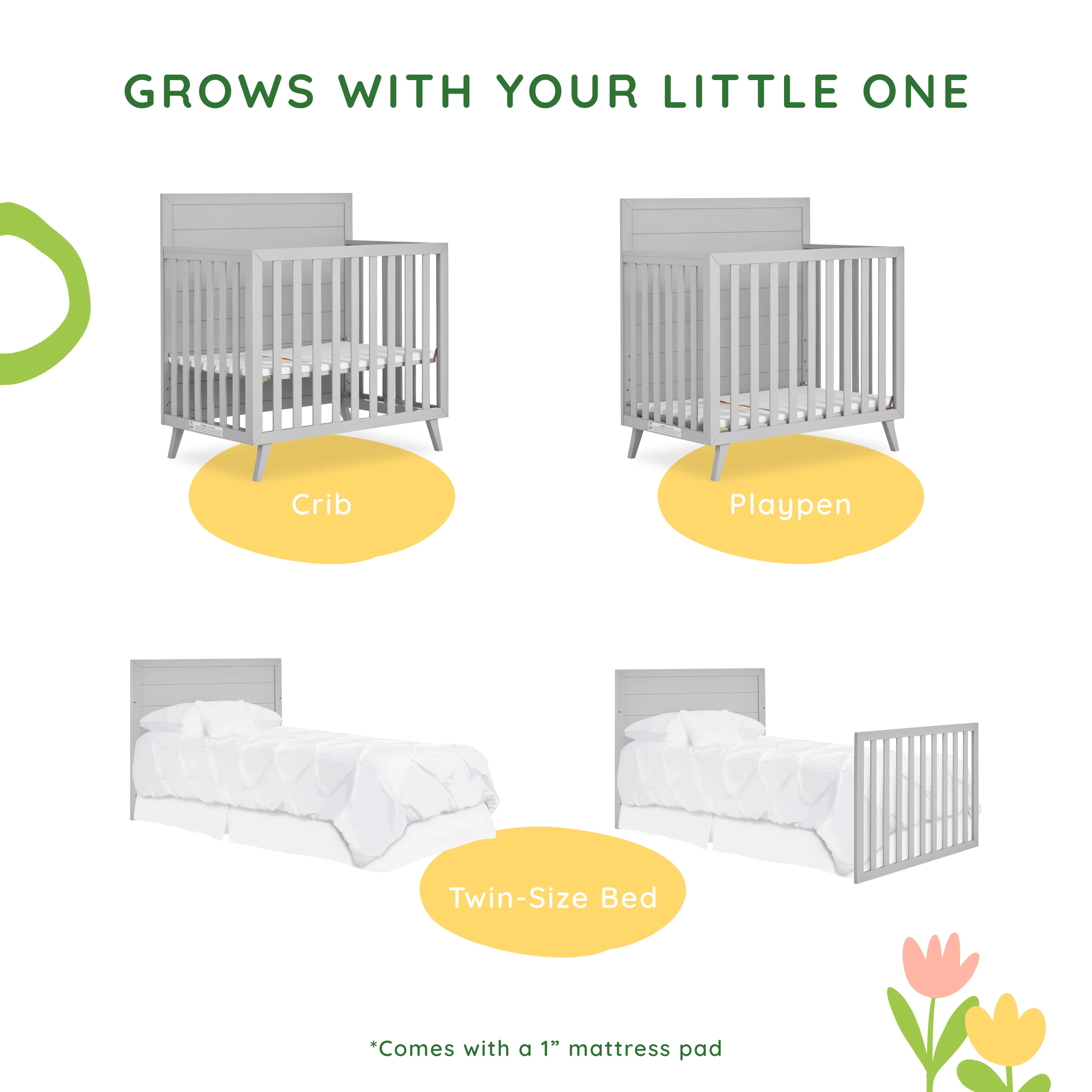 Dream On Me Lexington 4 in 1 Convertible Mini Crib, Sustainable New Zealand Pinewood, Pebble Grey