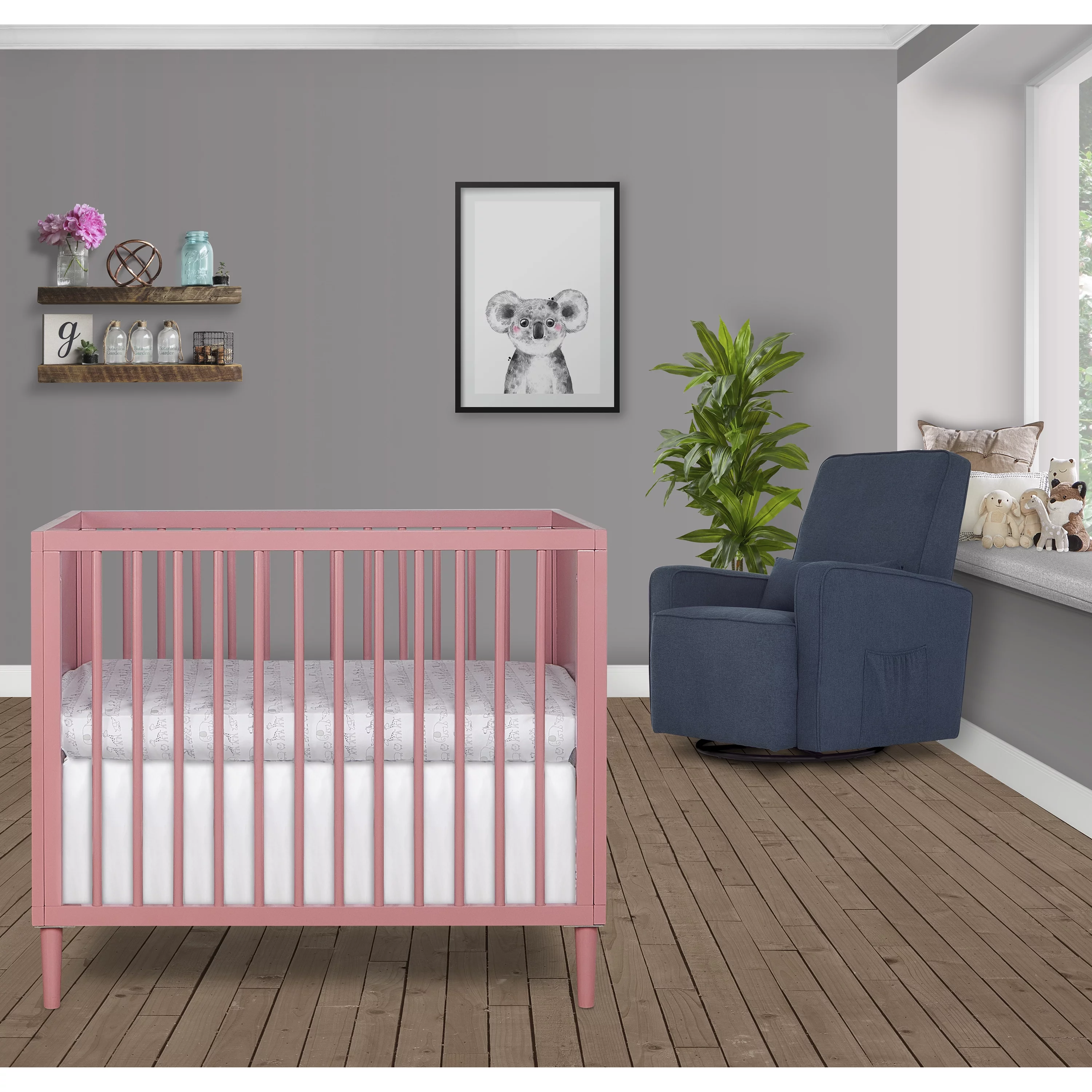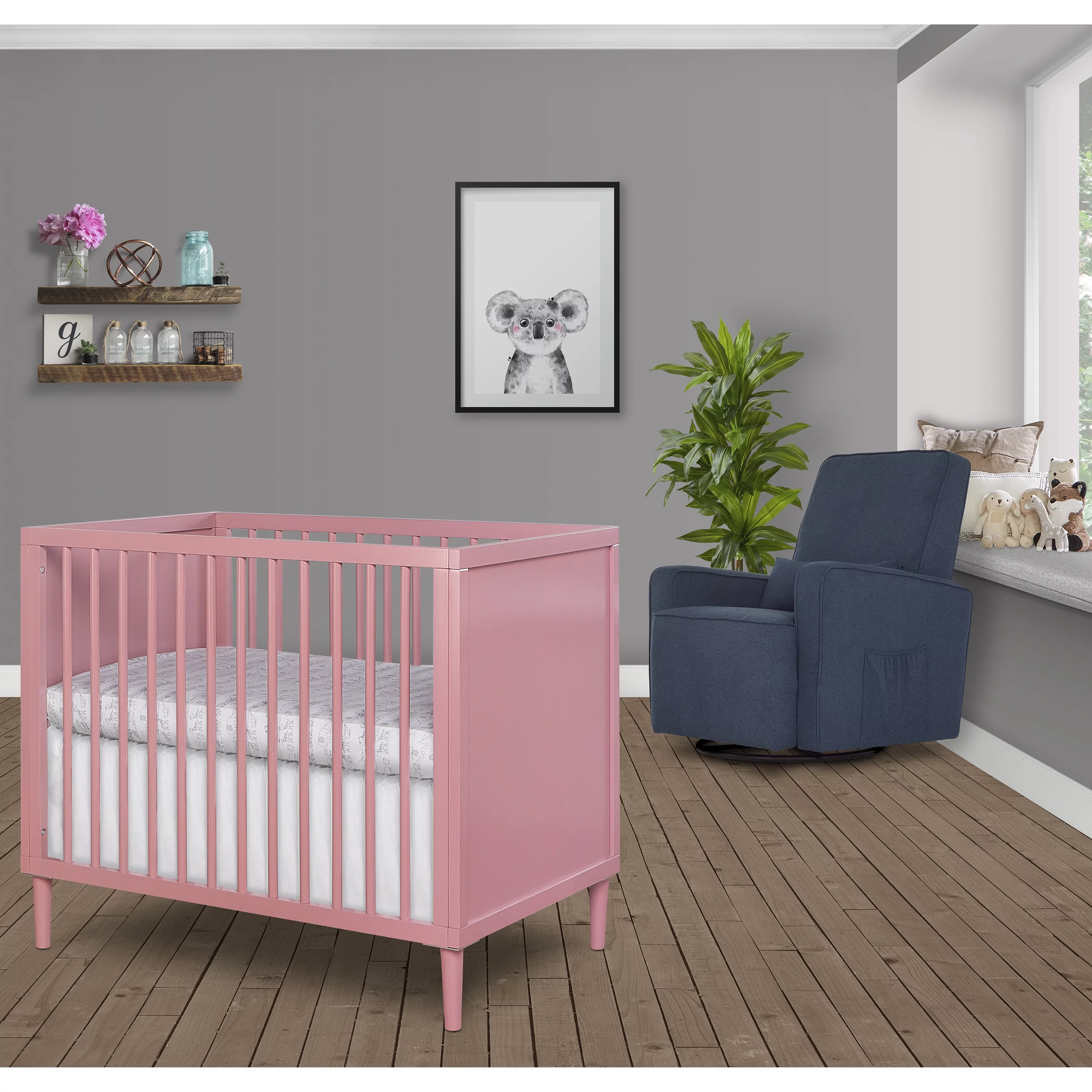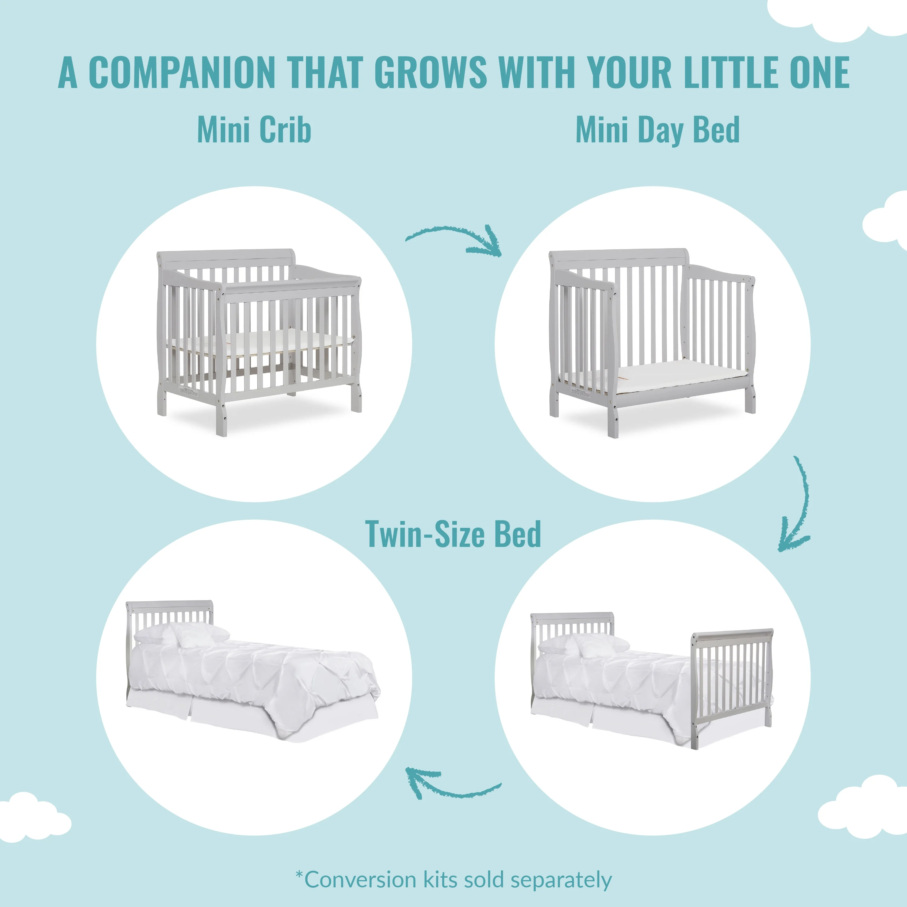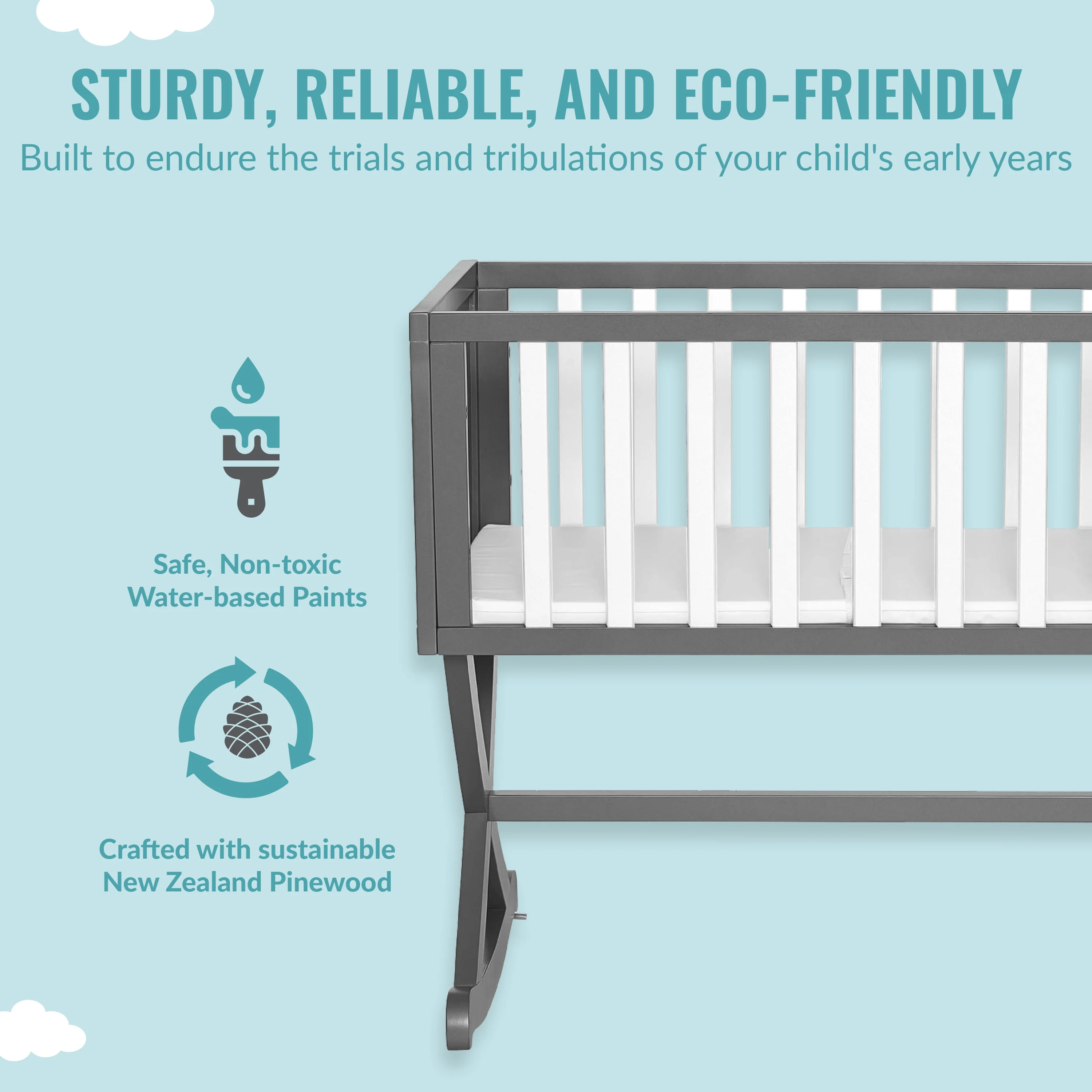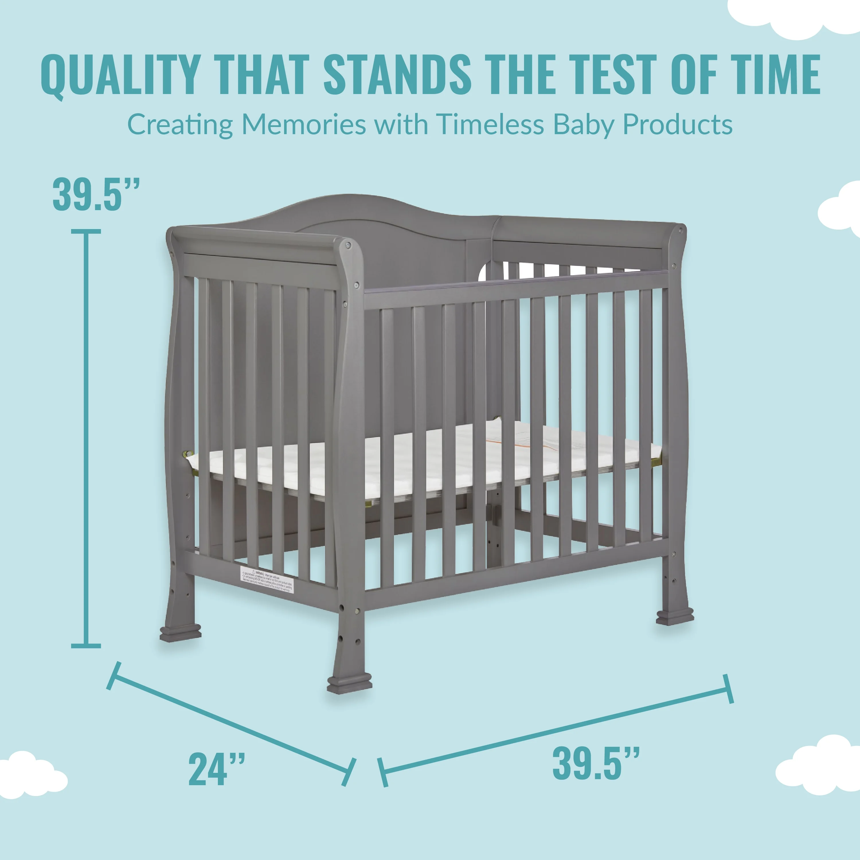 Dream On Me Lexington 4 in 1 Convertible Mini Crib, Sustainable New Zealand Pinewood, Pebble Grey