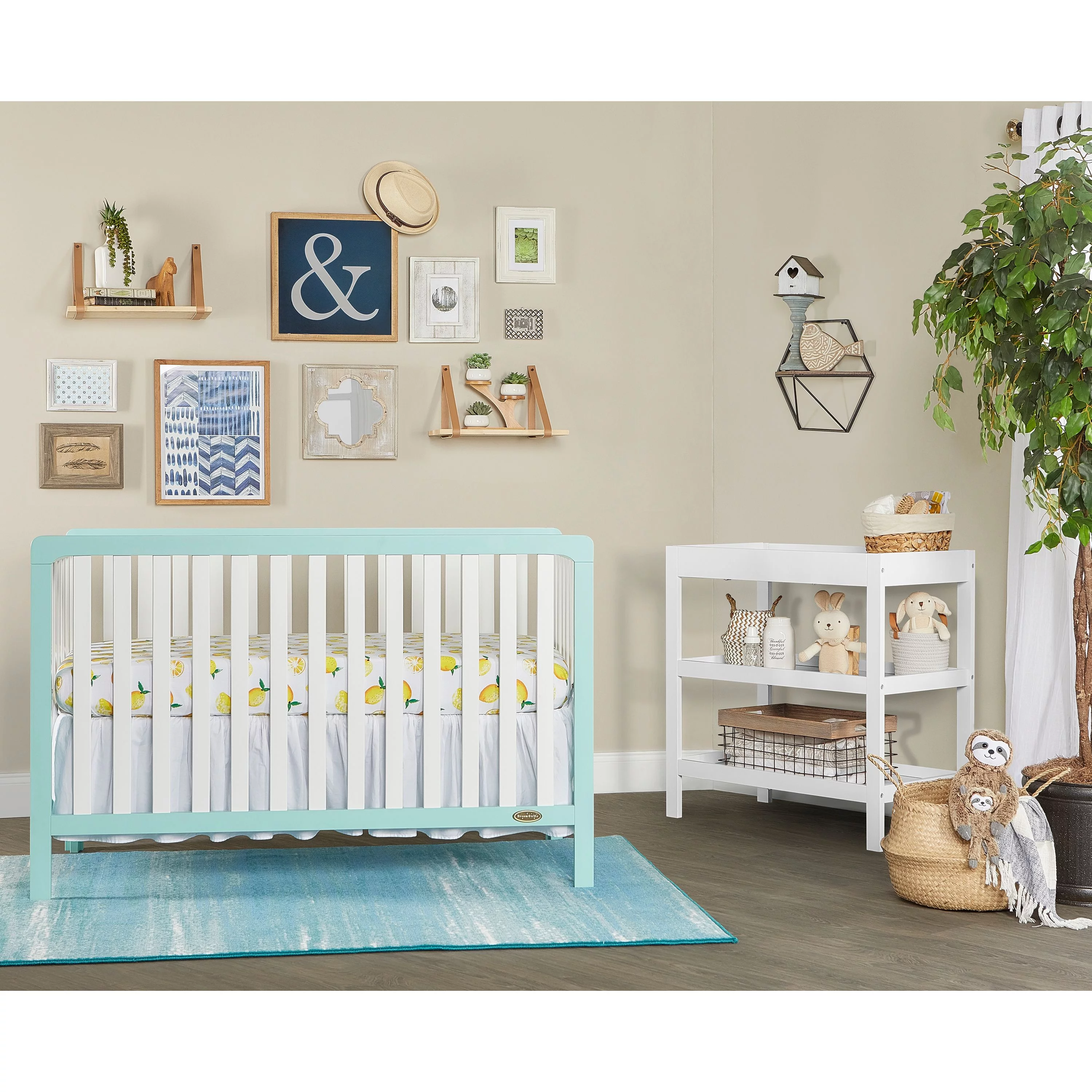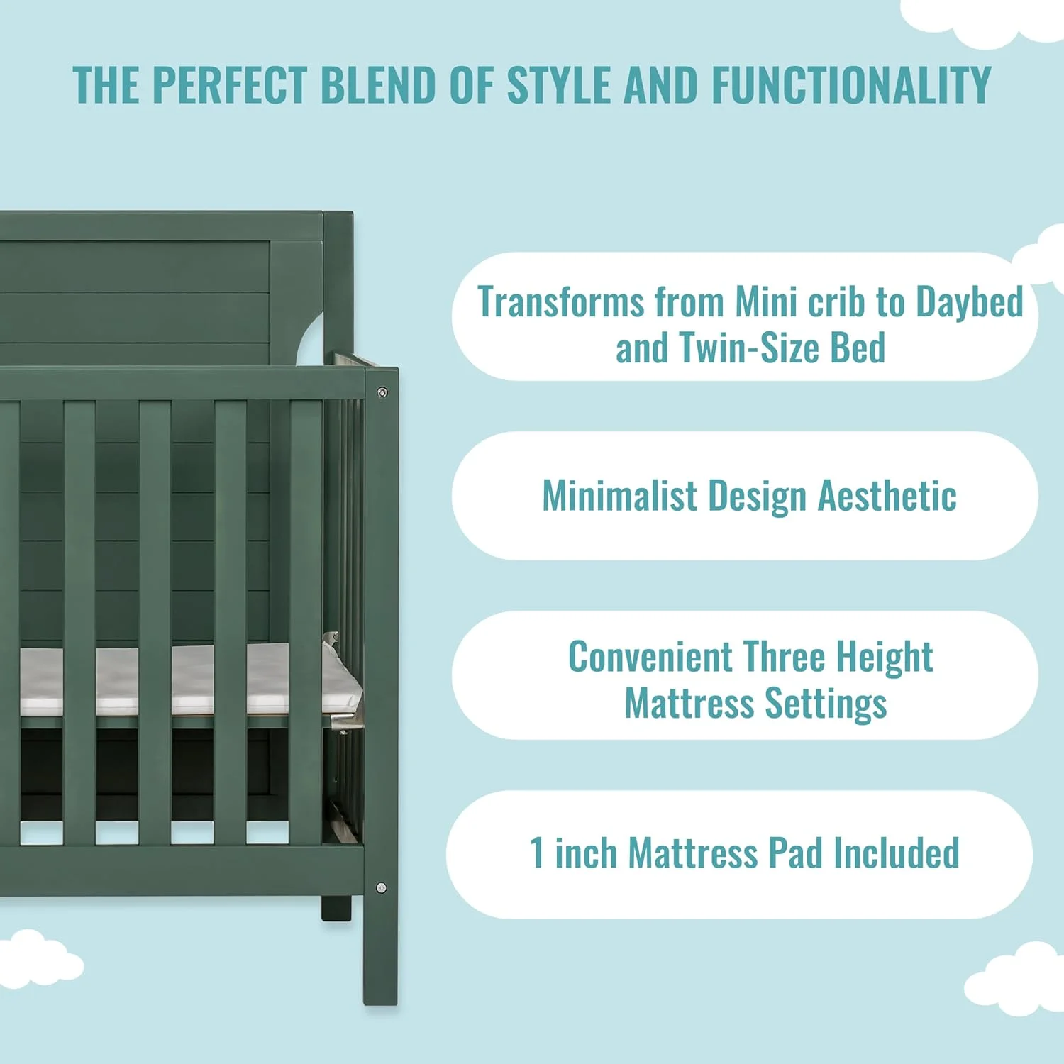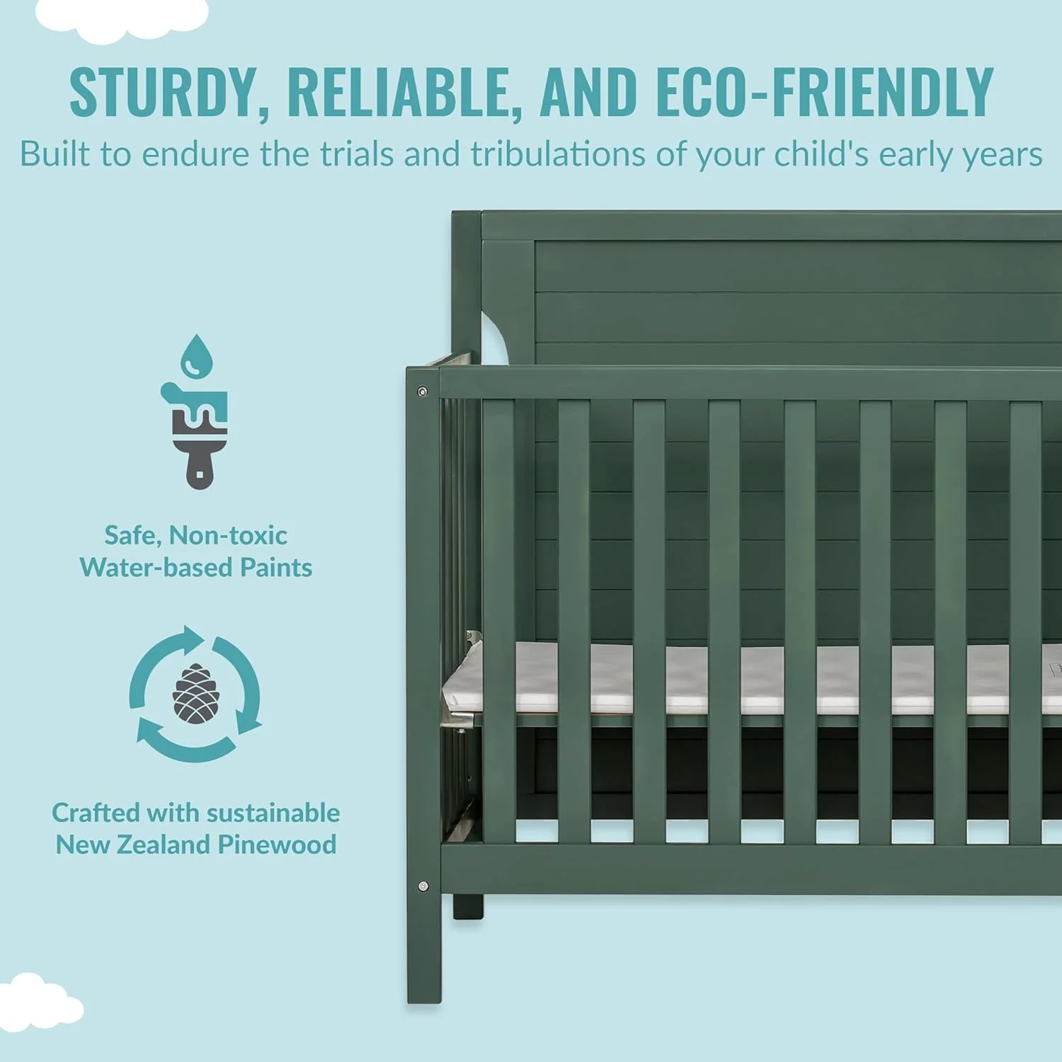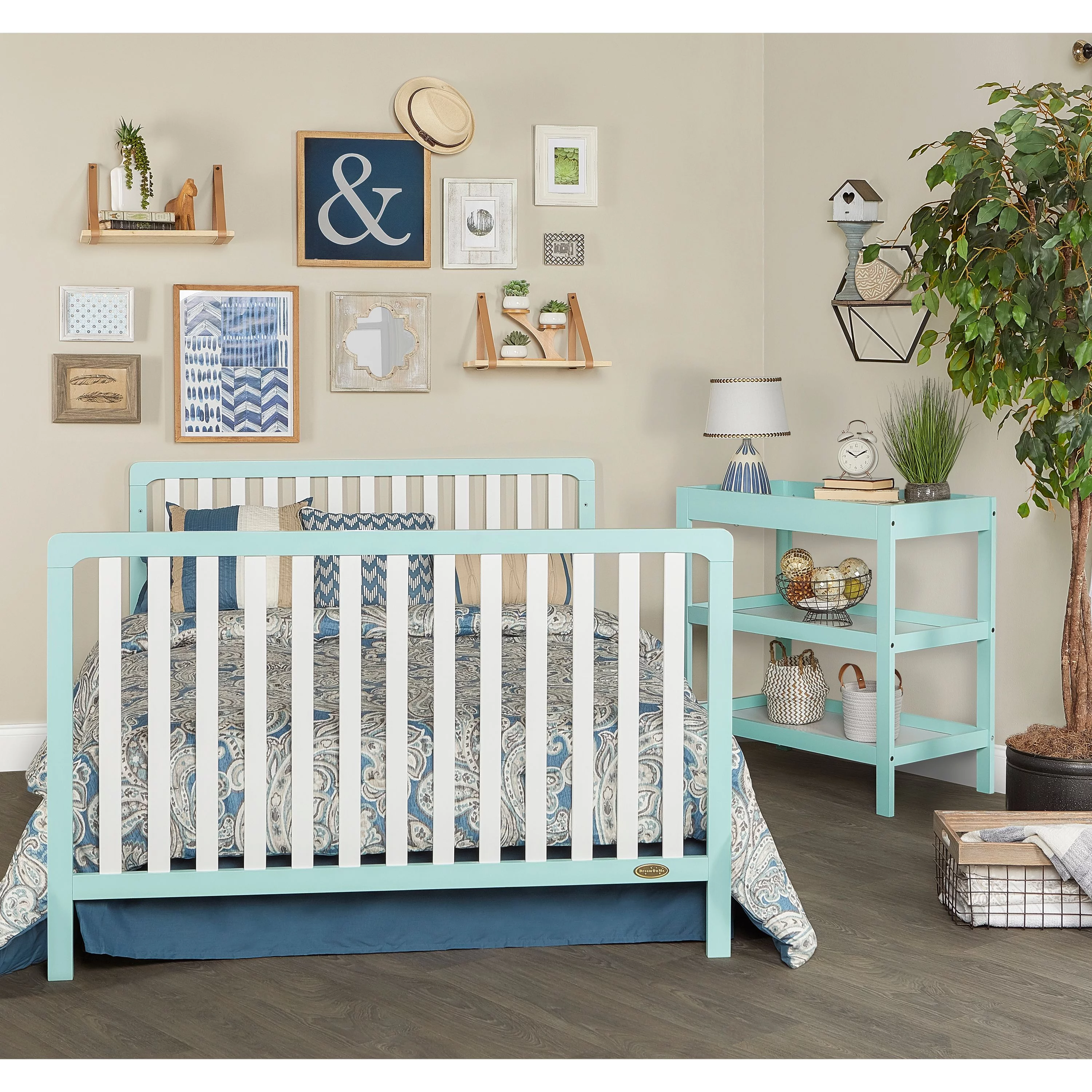 Dream On Me Ridgefield 5-in-1 Convertible Crib in Mint & White, Greenguard Gold Certified
