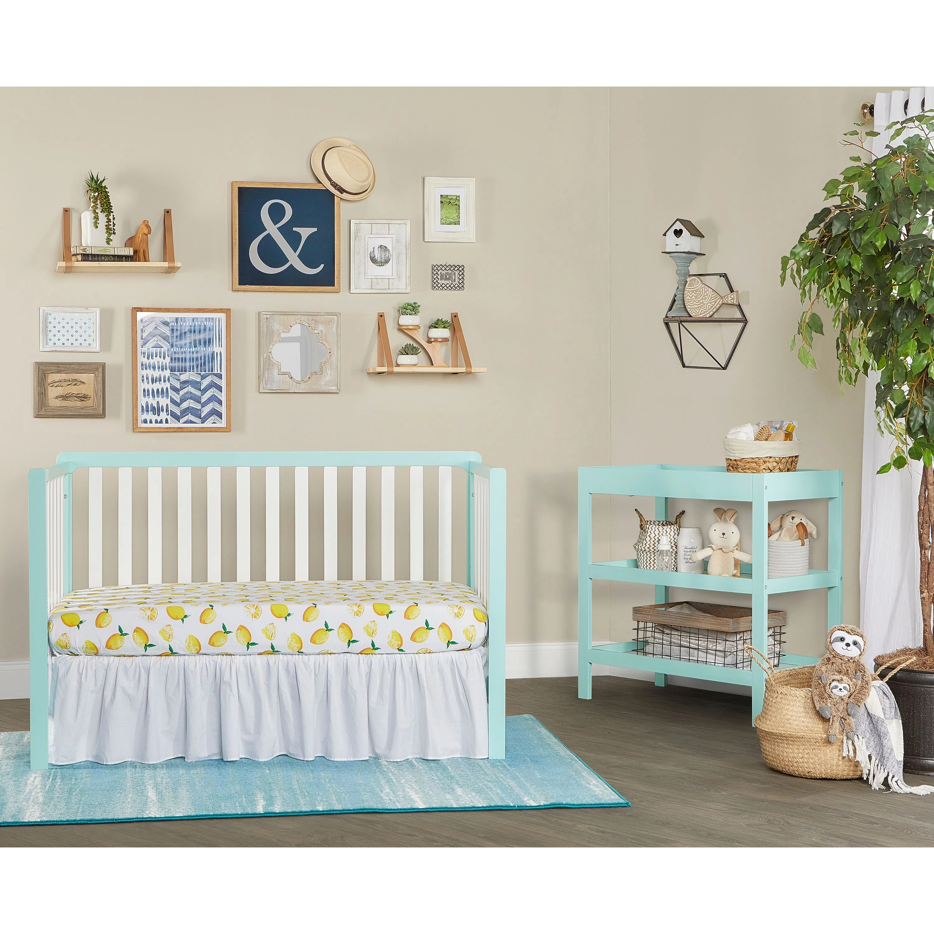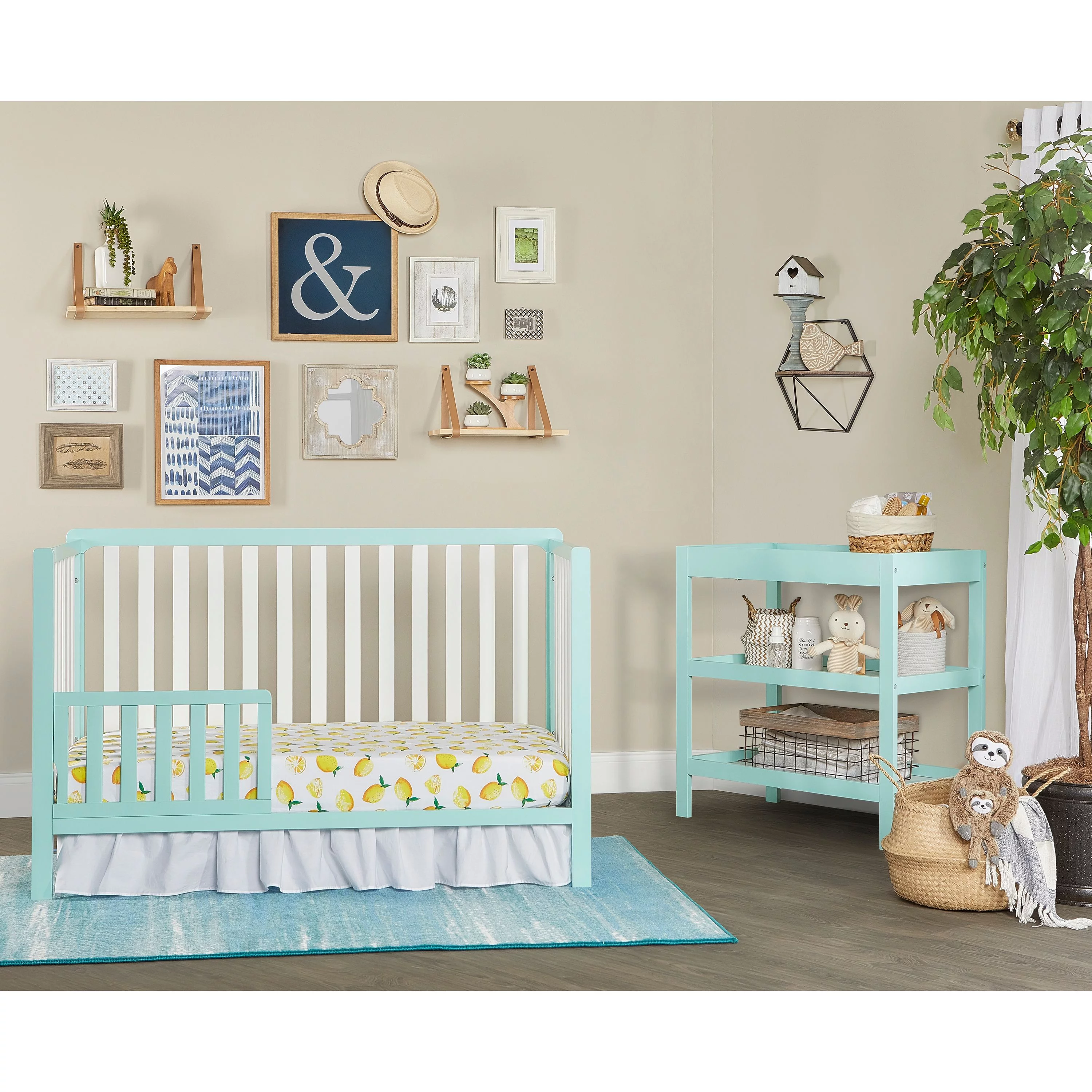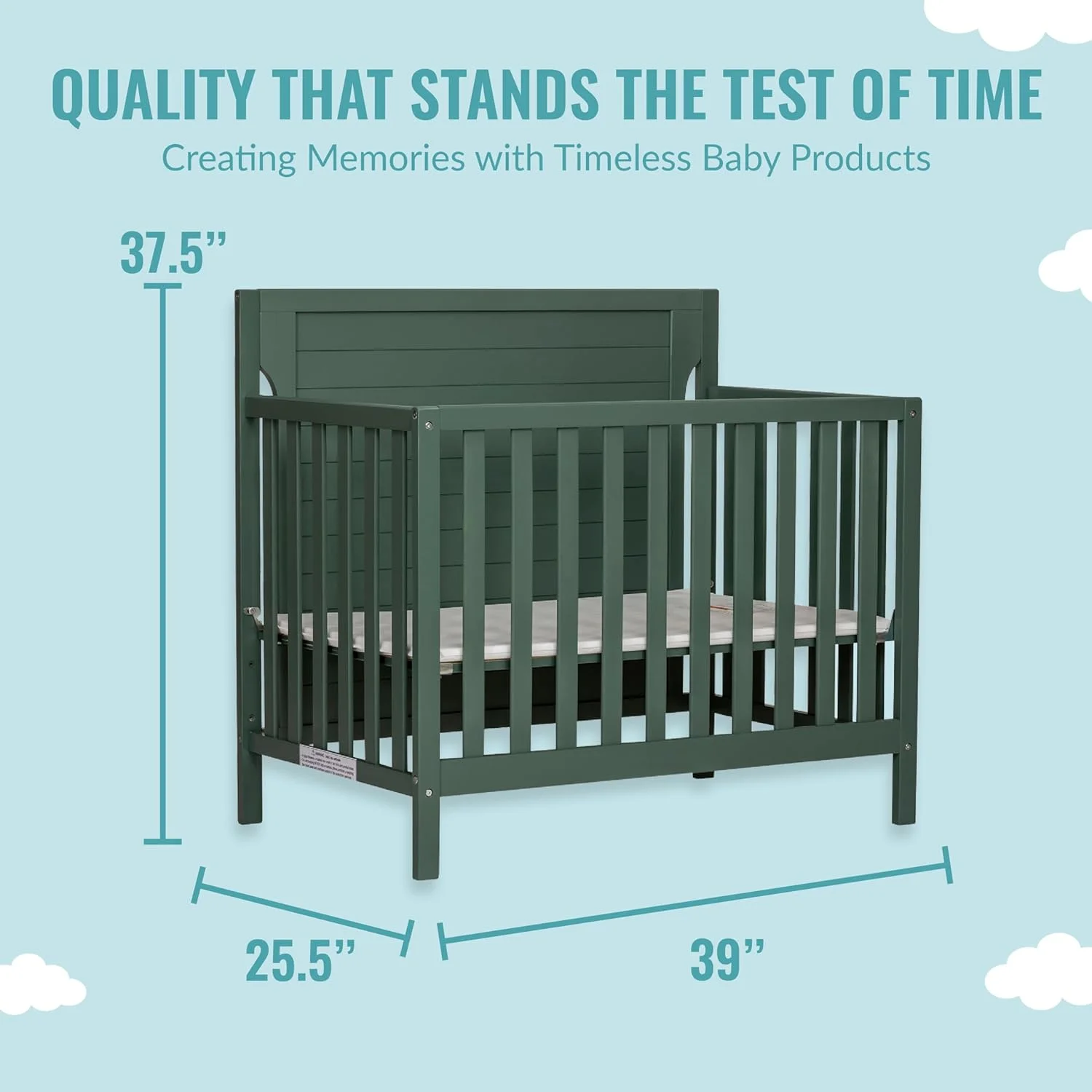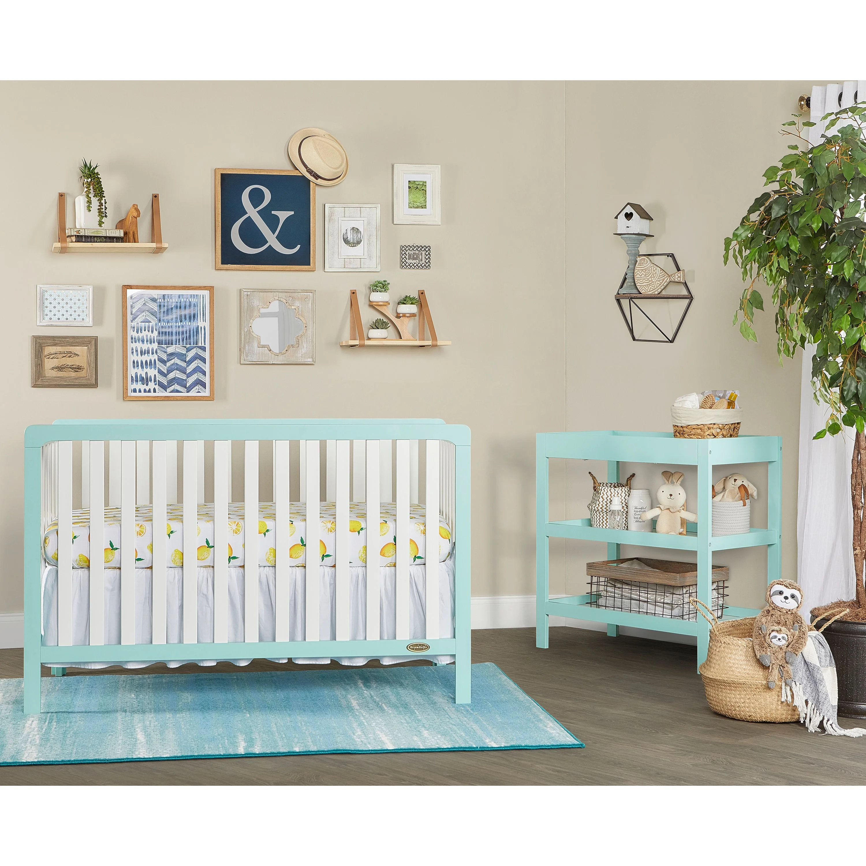 Dream On Me Ridgefield 5-in-1 Convertible Crib in Mint & White, Greenguard Gold Certified