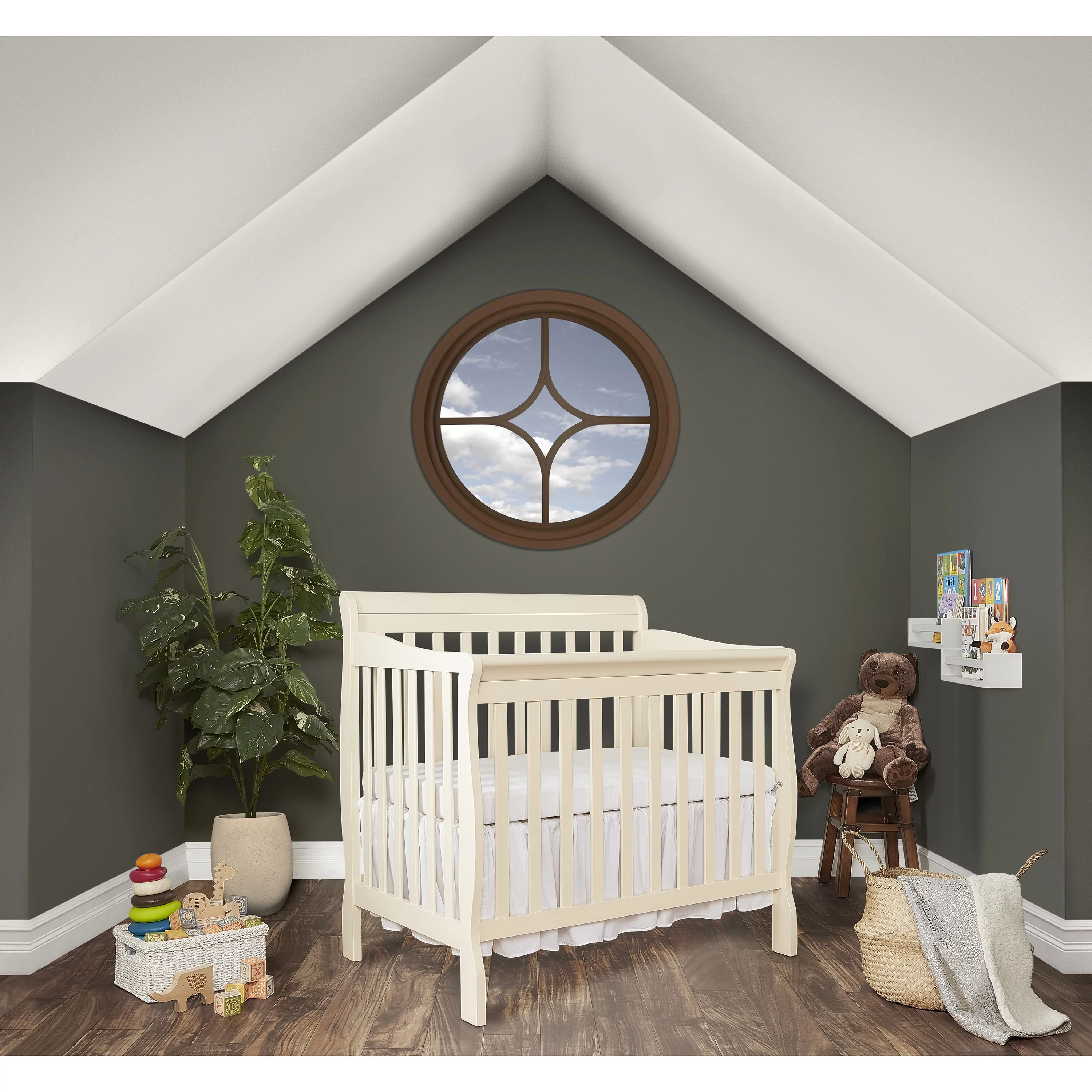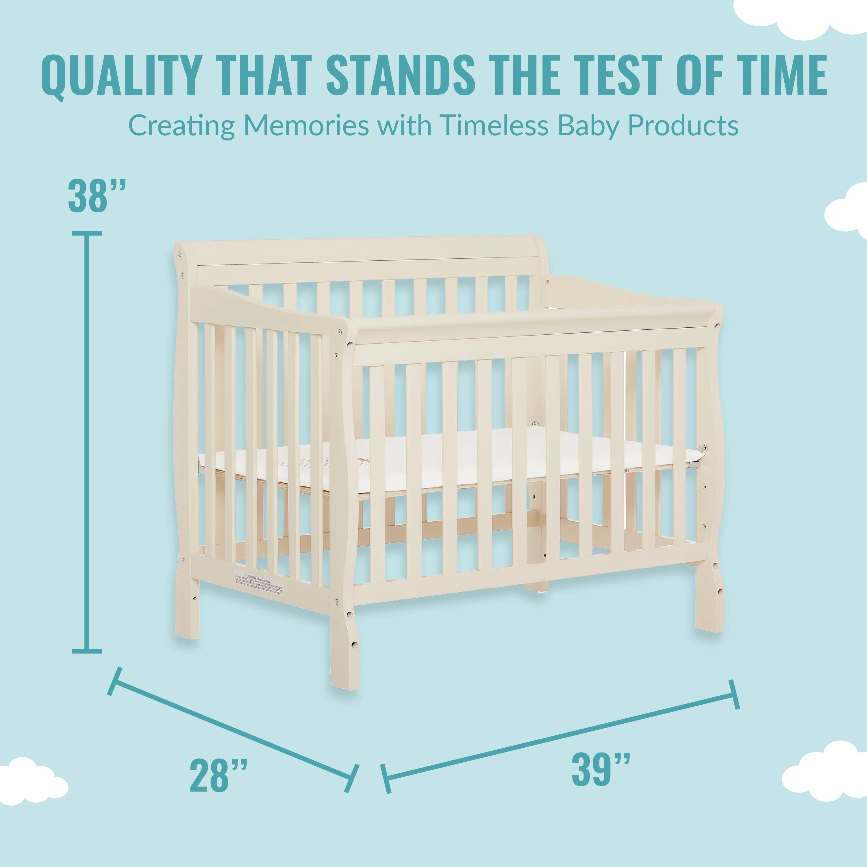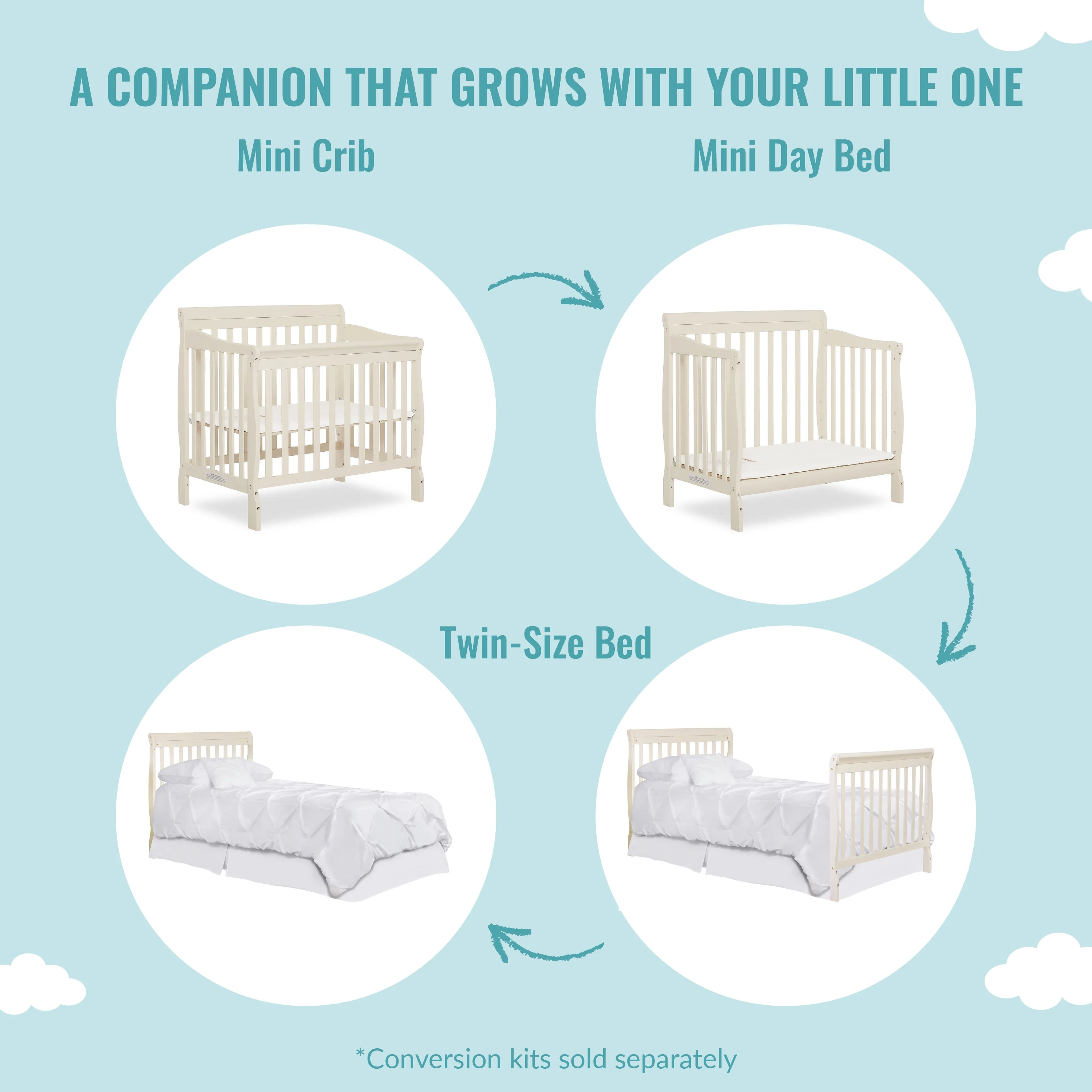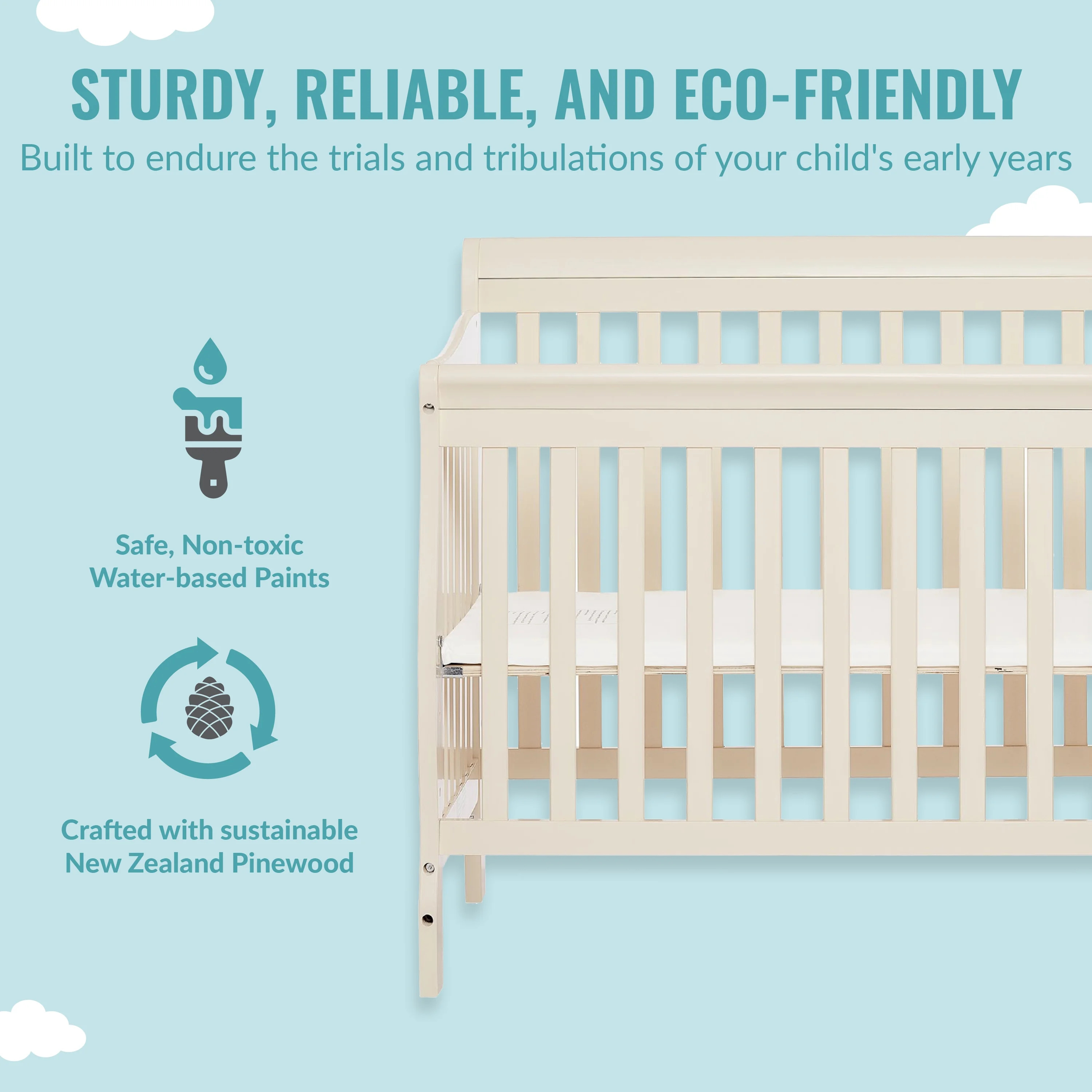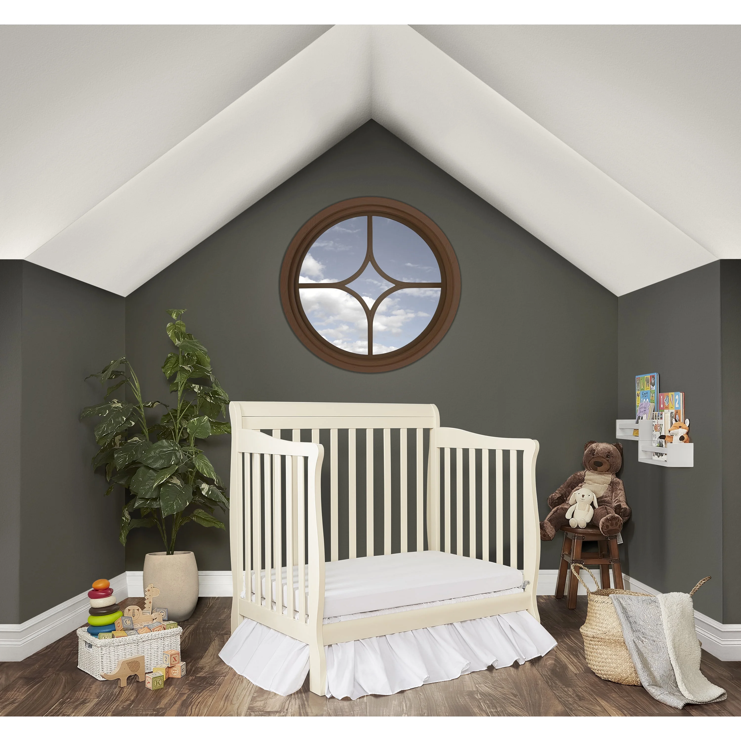 Dream On Me Aden 4-in-1 Convertible Mini Crib In French White, Greenguard Gold Certified