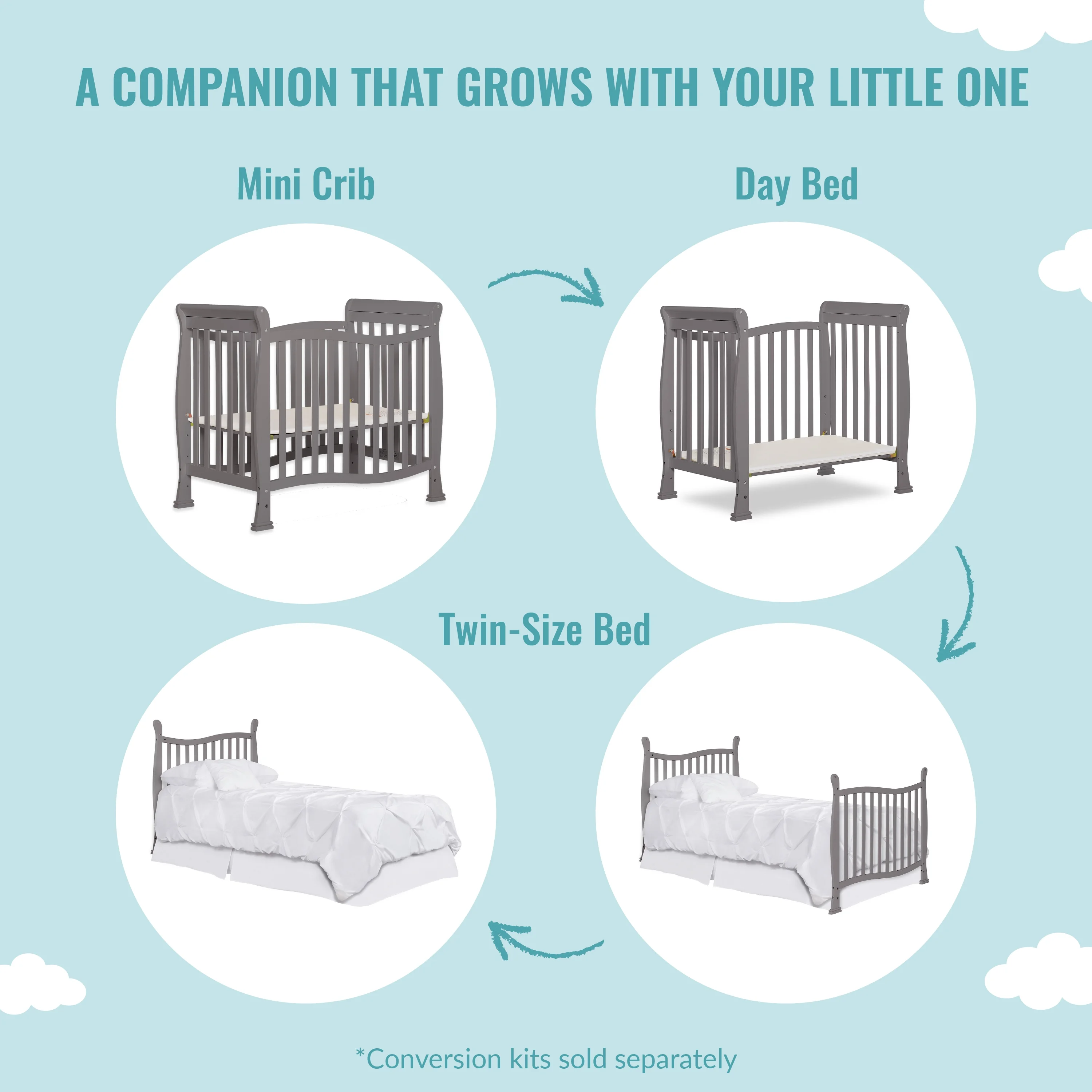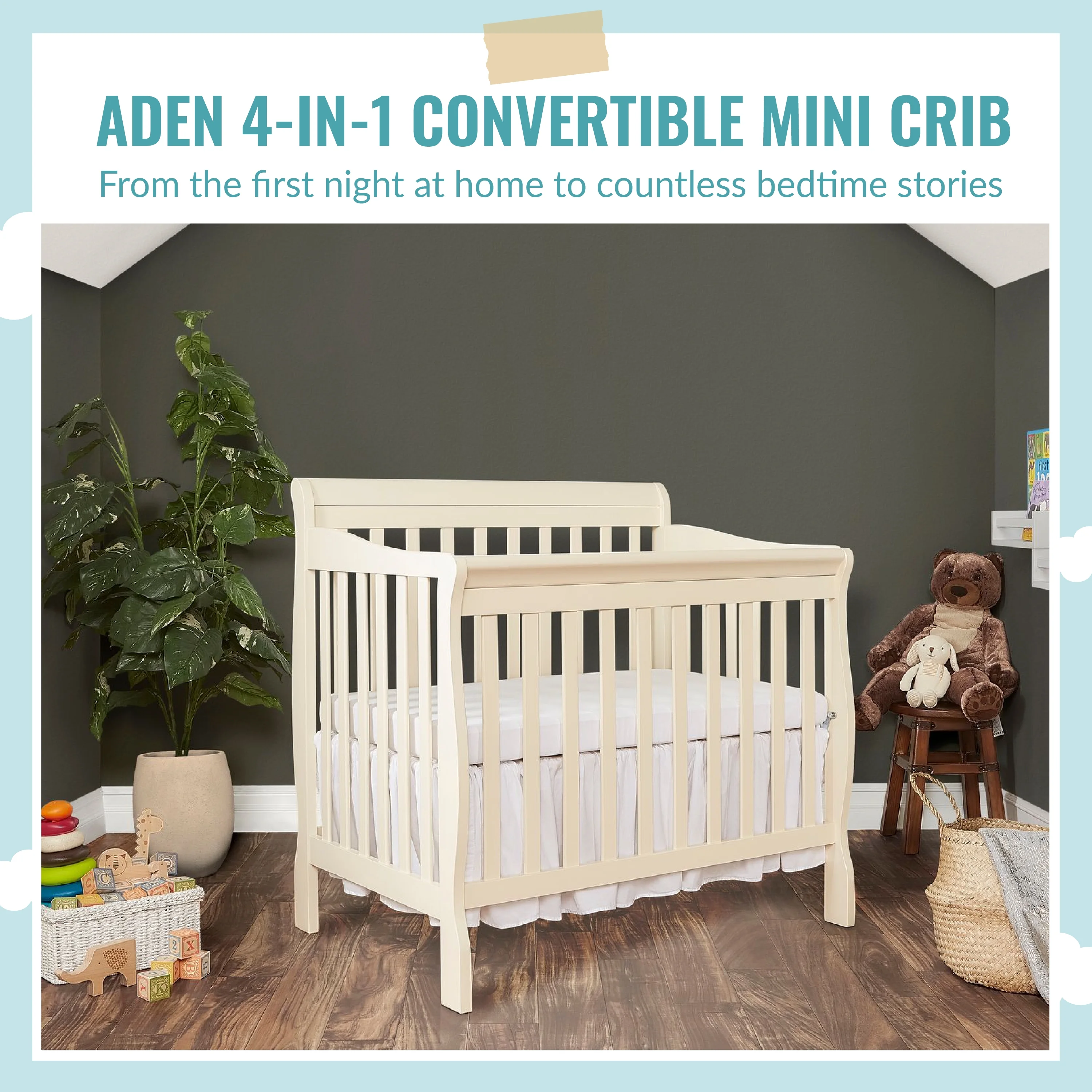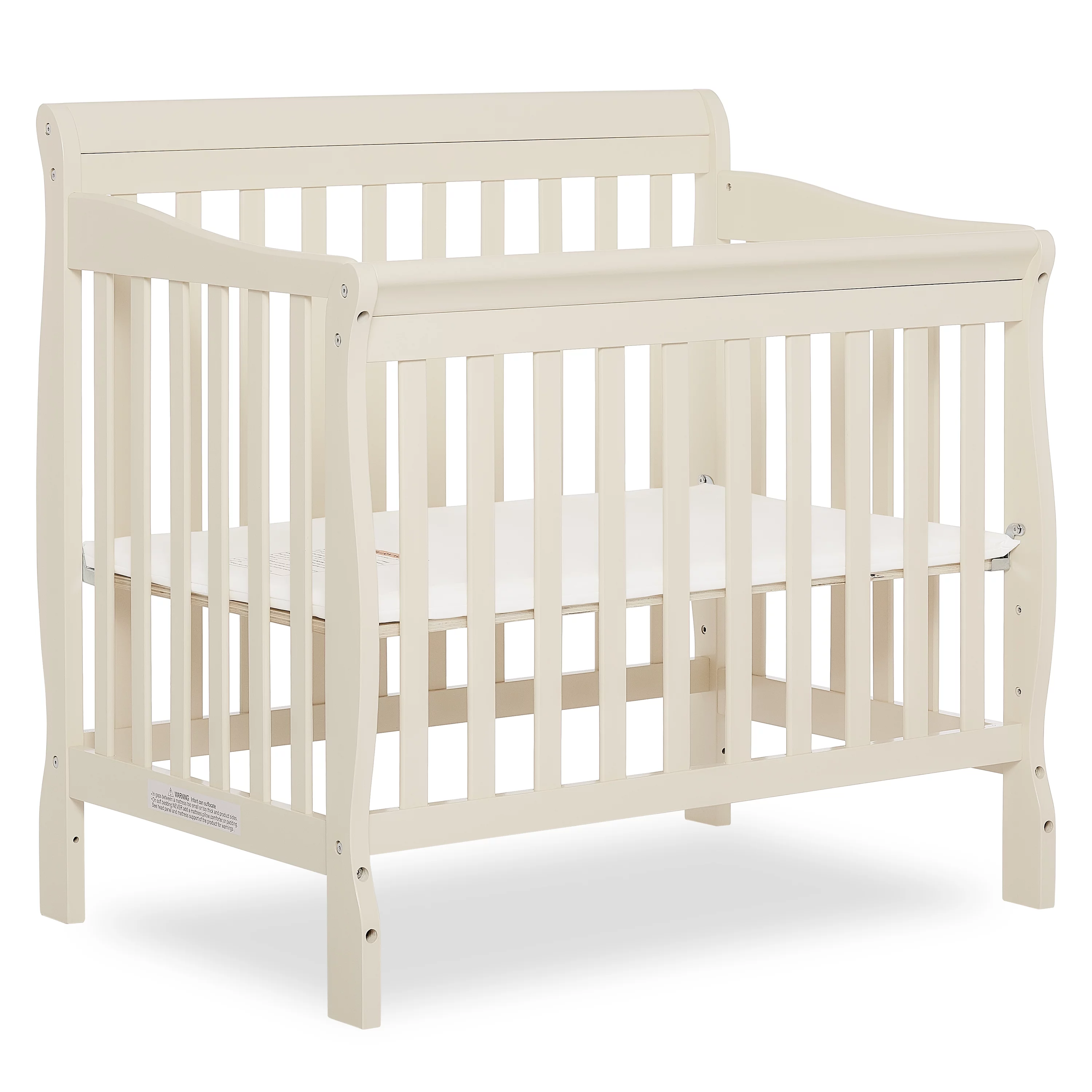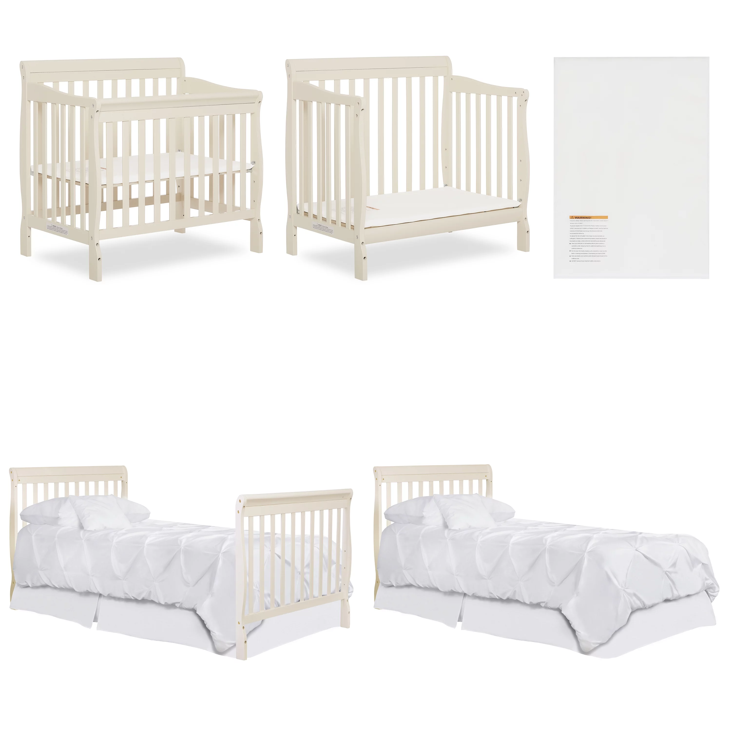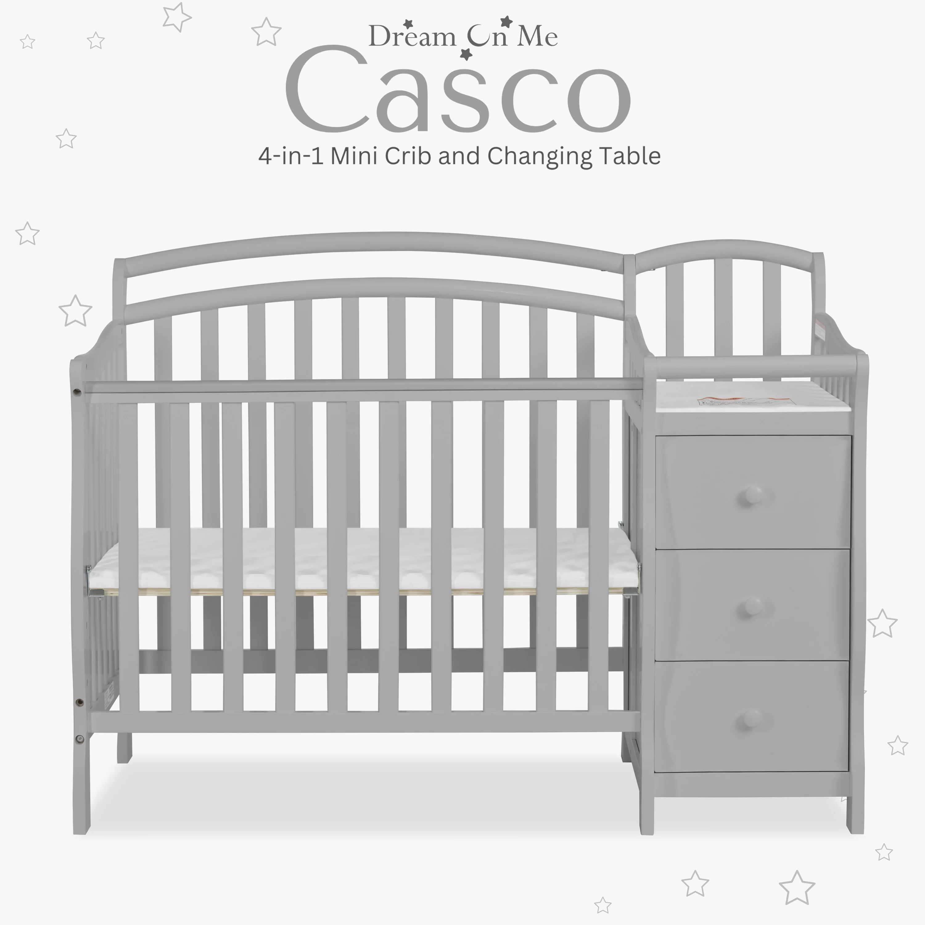 Dream On Me Aden 4-in-1 Convertible Mini Crib In French White, Greenguard Gold Certified