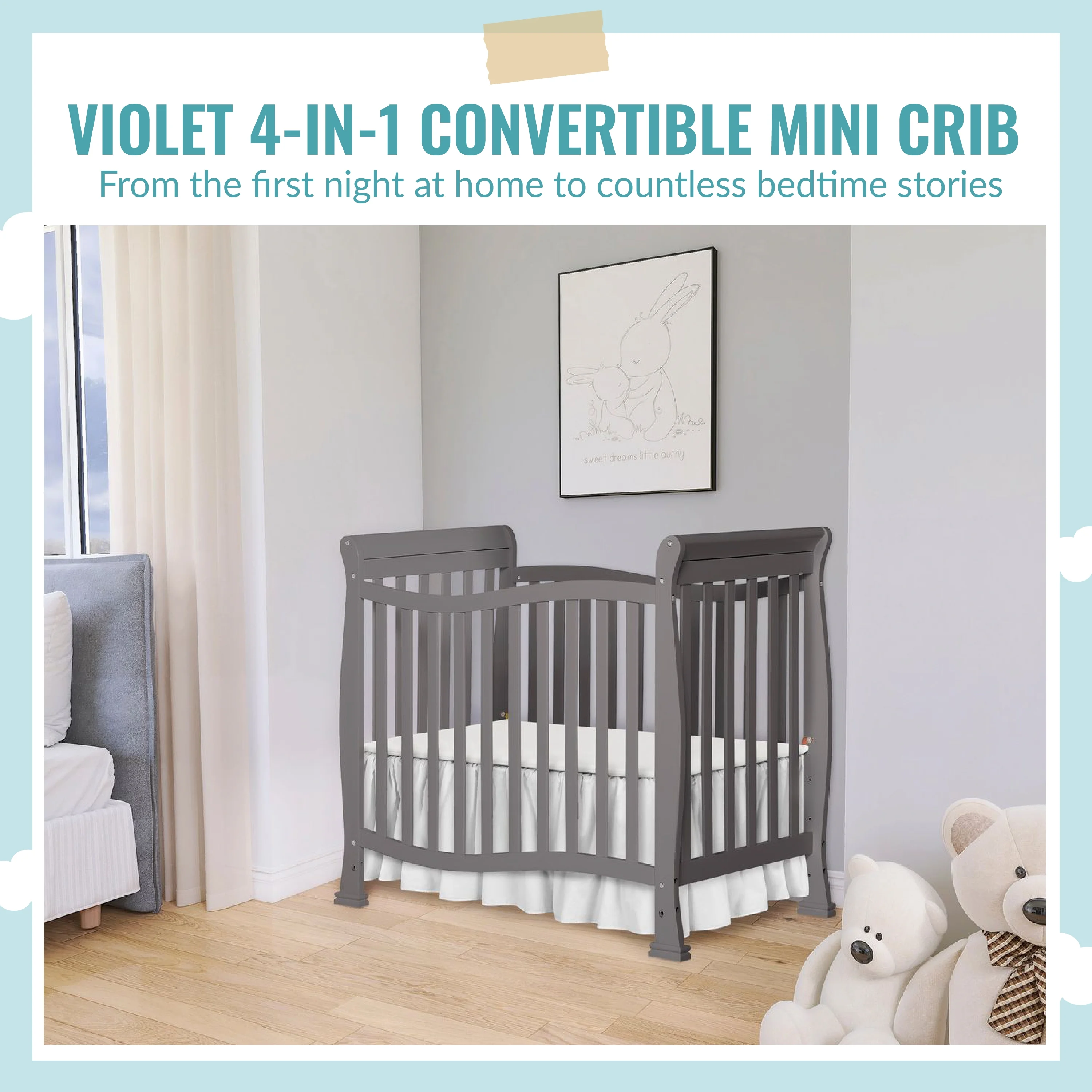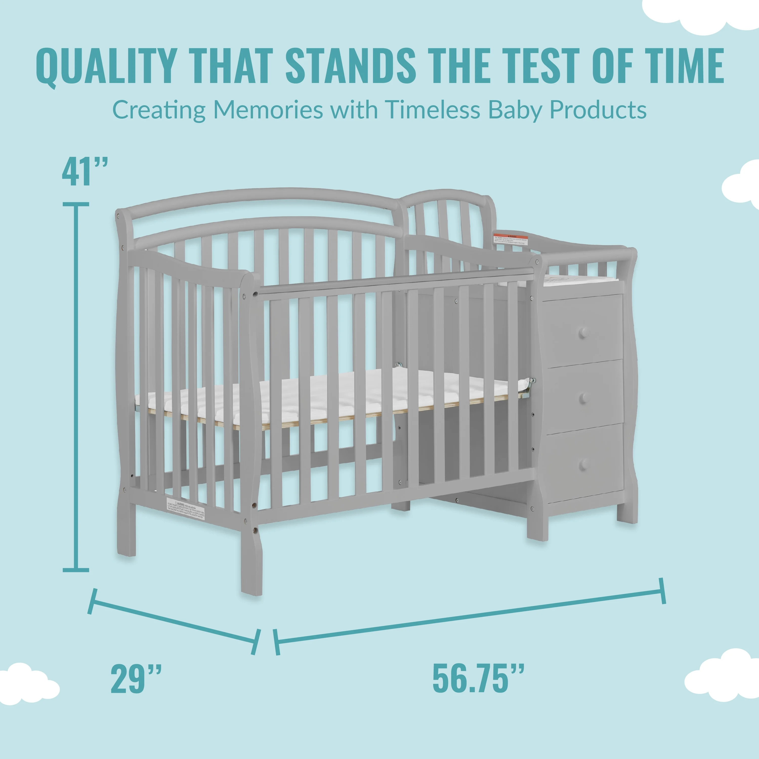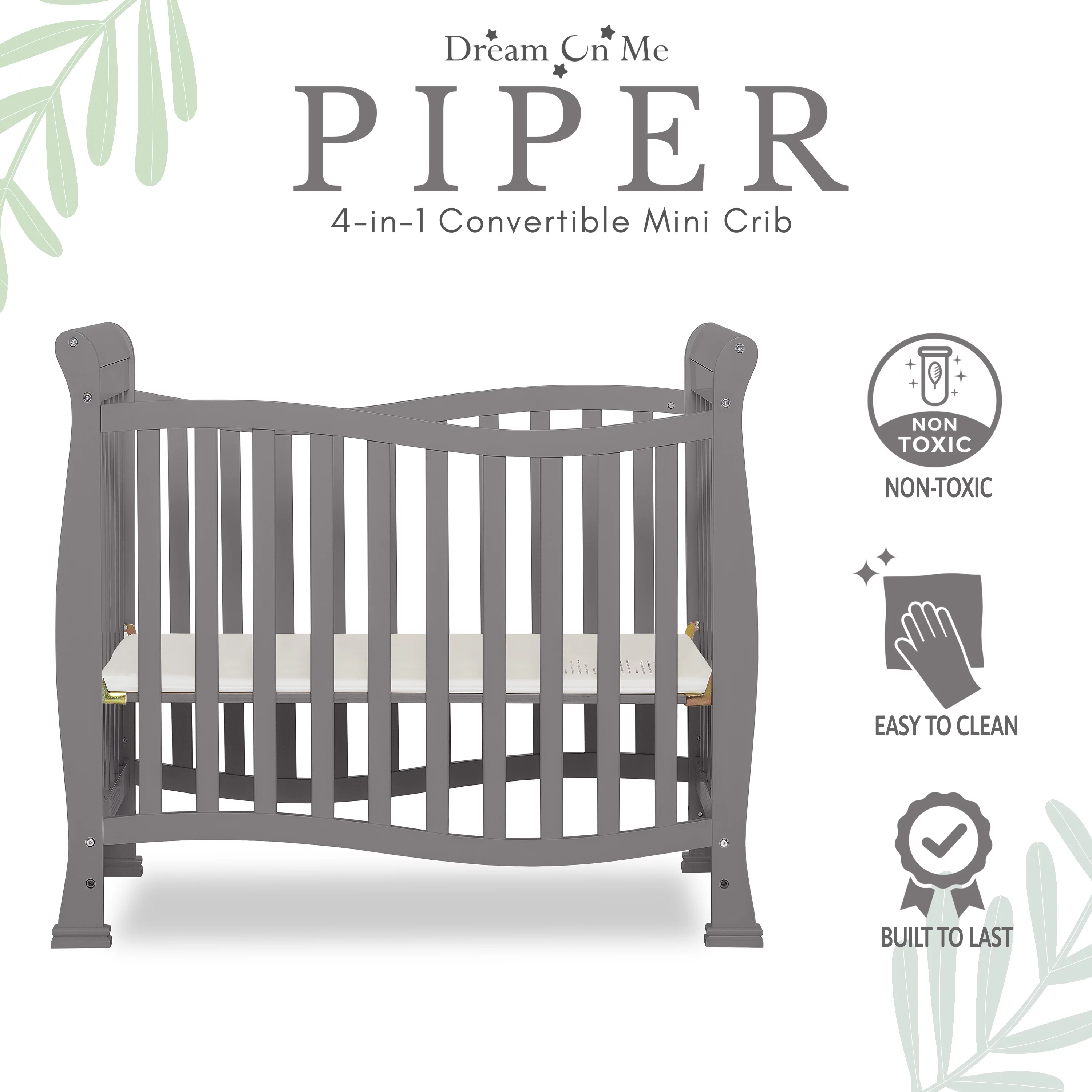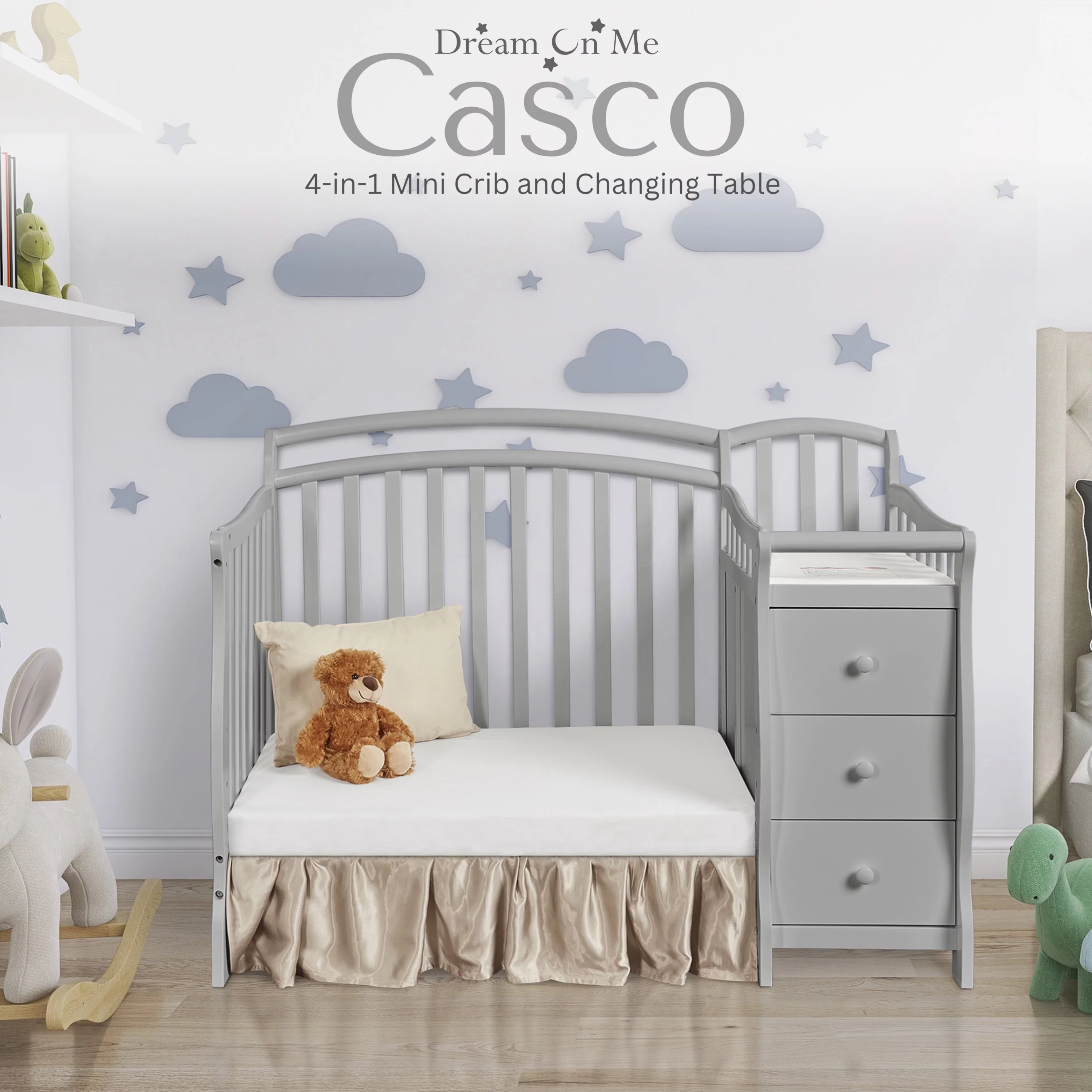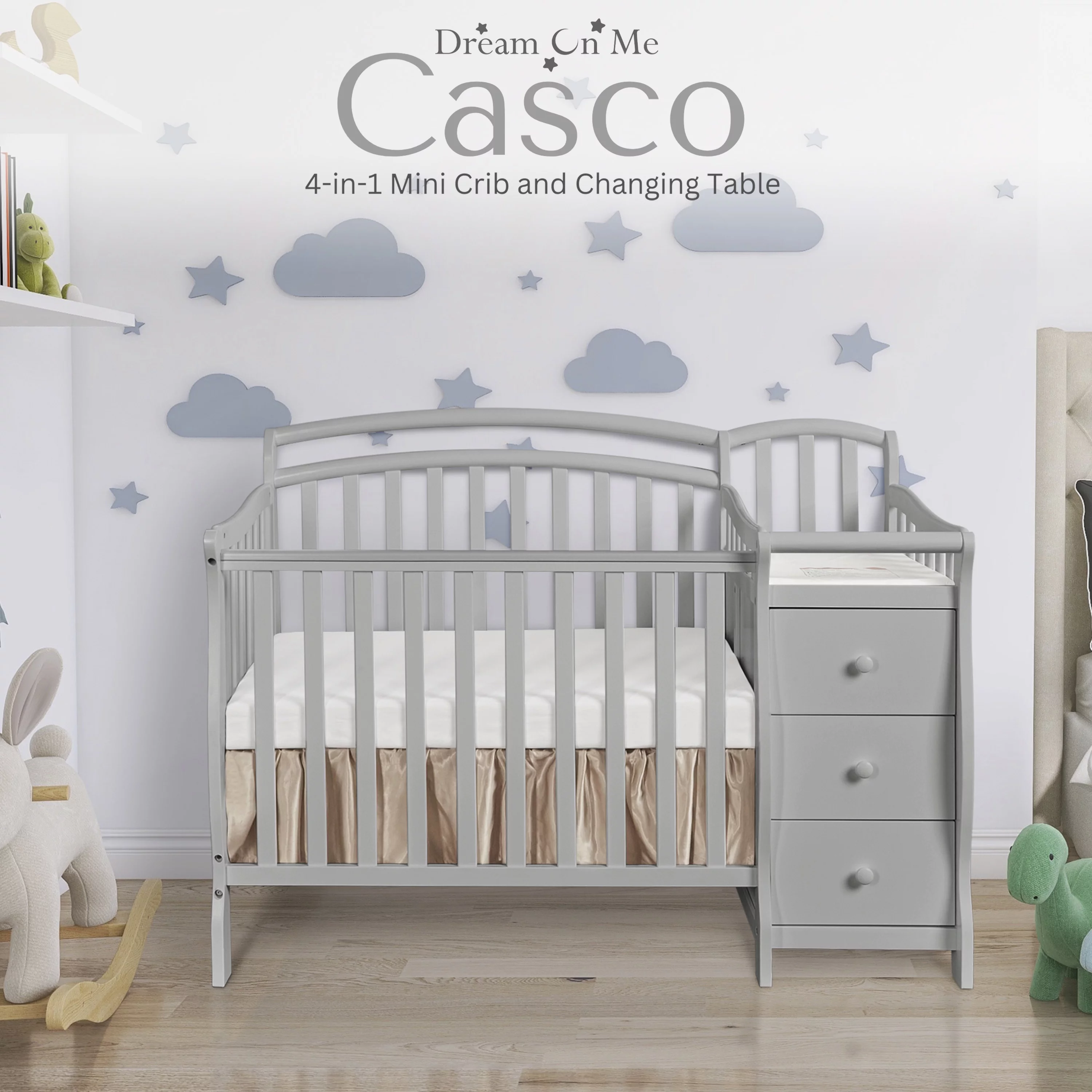 Dream On Me Aden 4-in-1 Convertible Mini Crib In French White, Greenguard Gold Certified