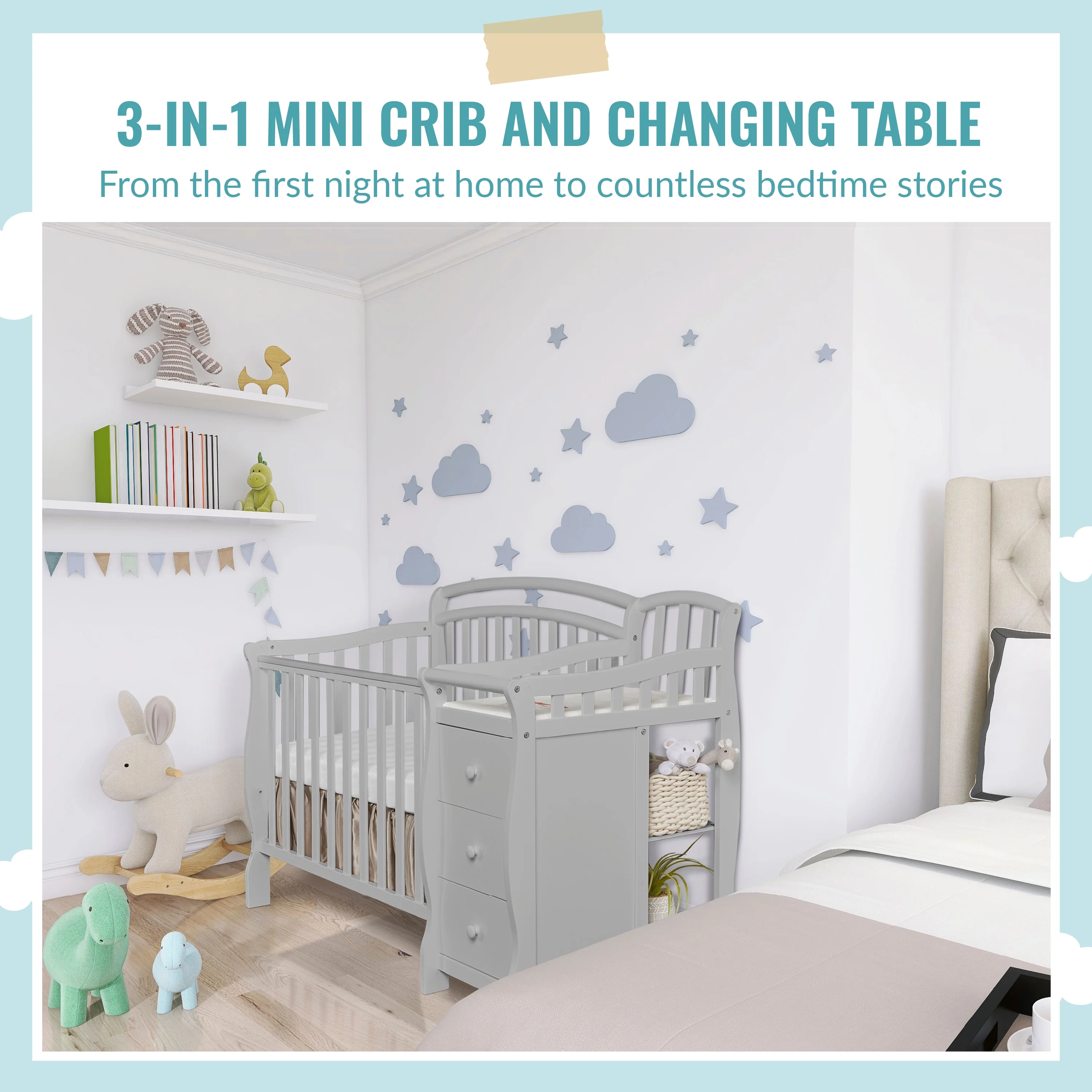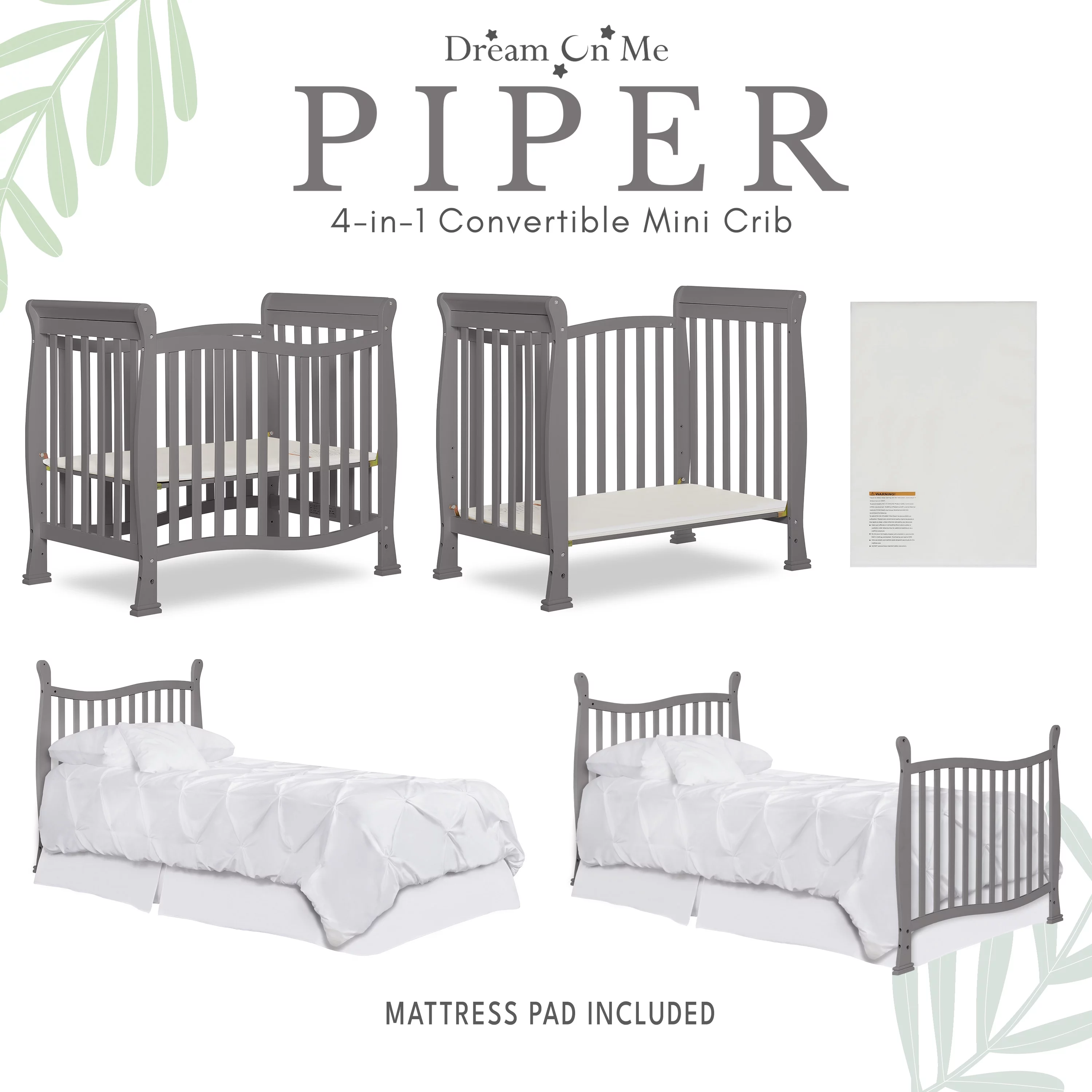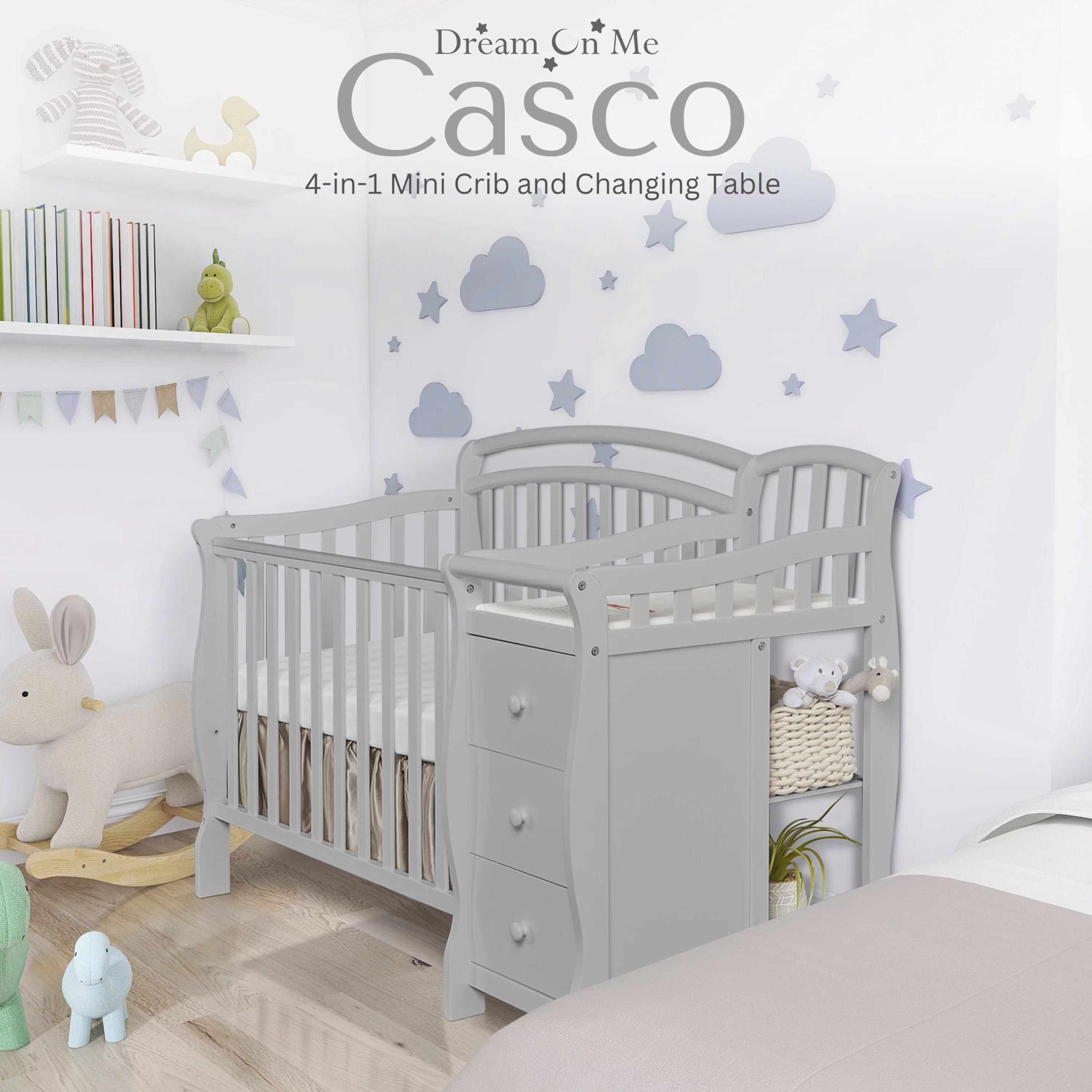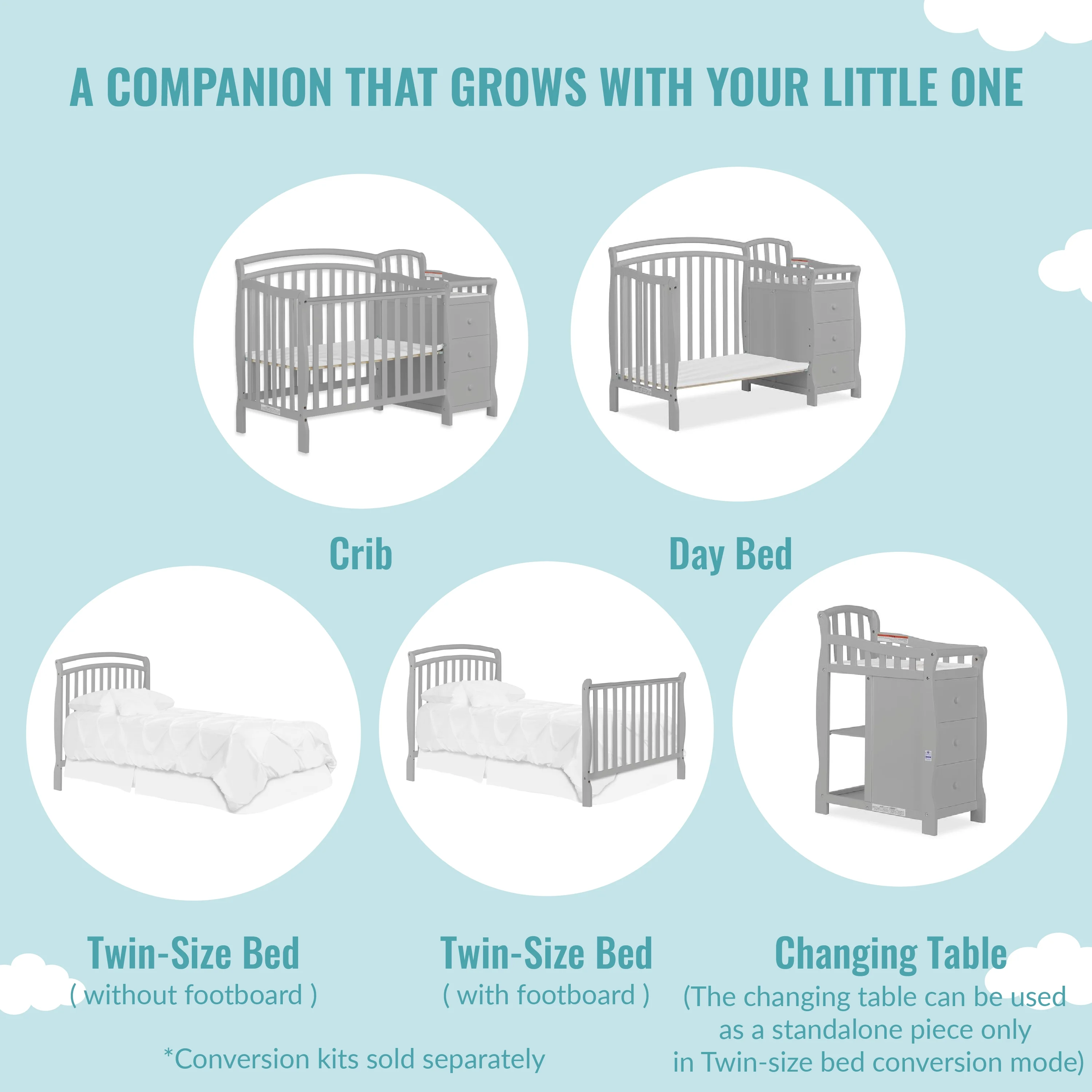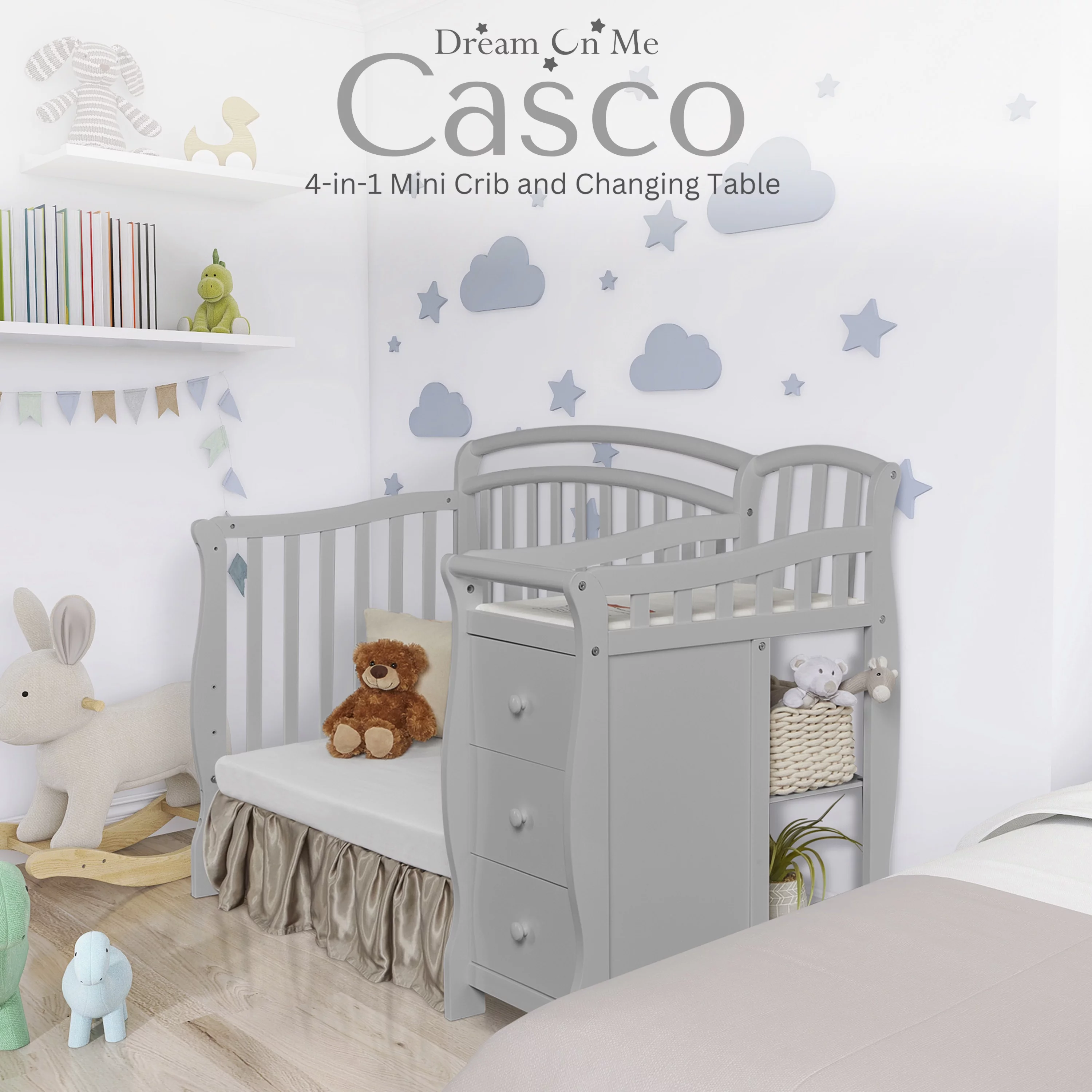 Dream On Me Aden 4-in-1 Convertible Mini Crib In French White, Greenguard Gold Certified
