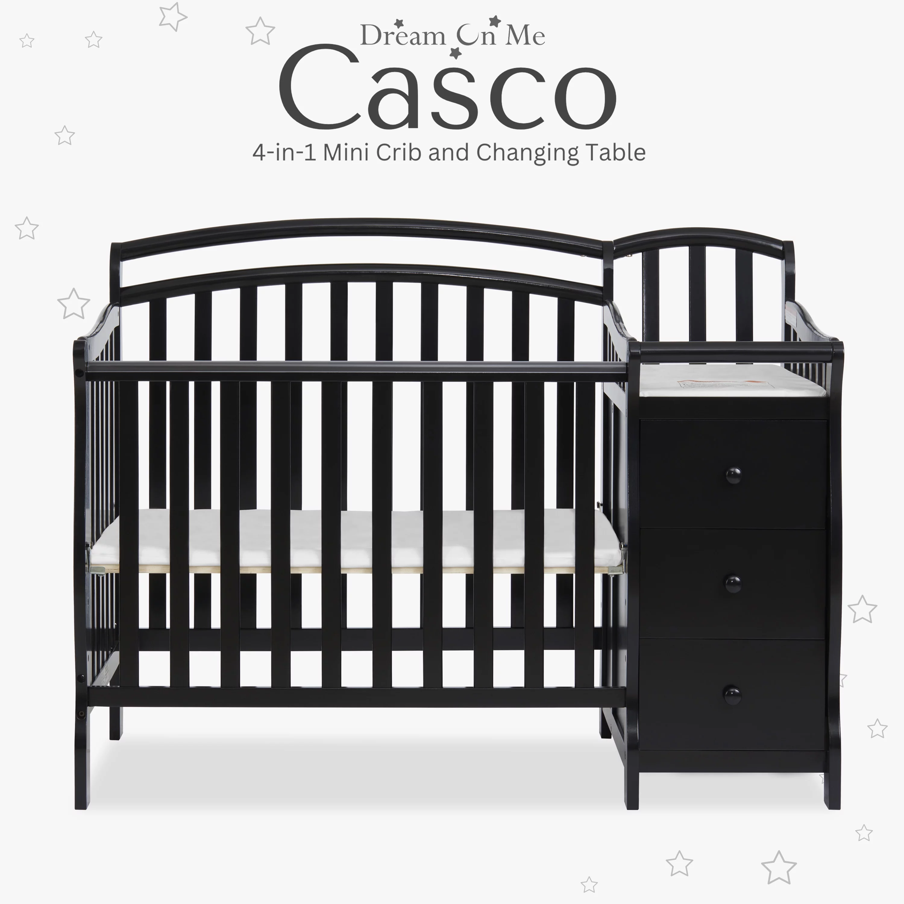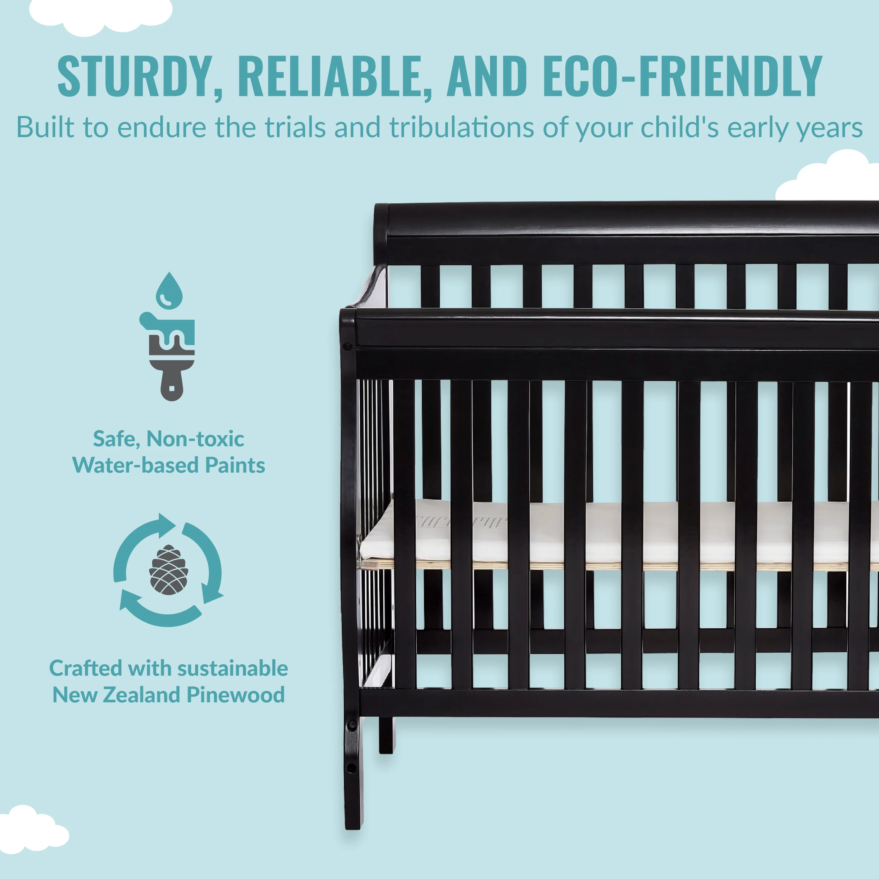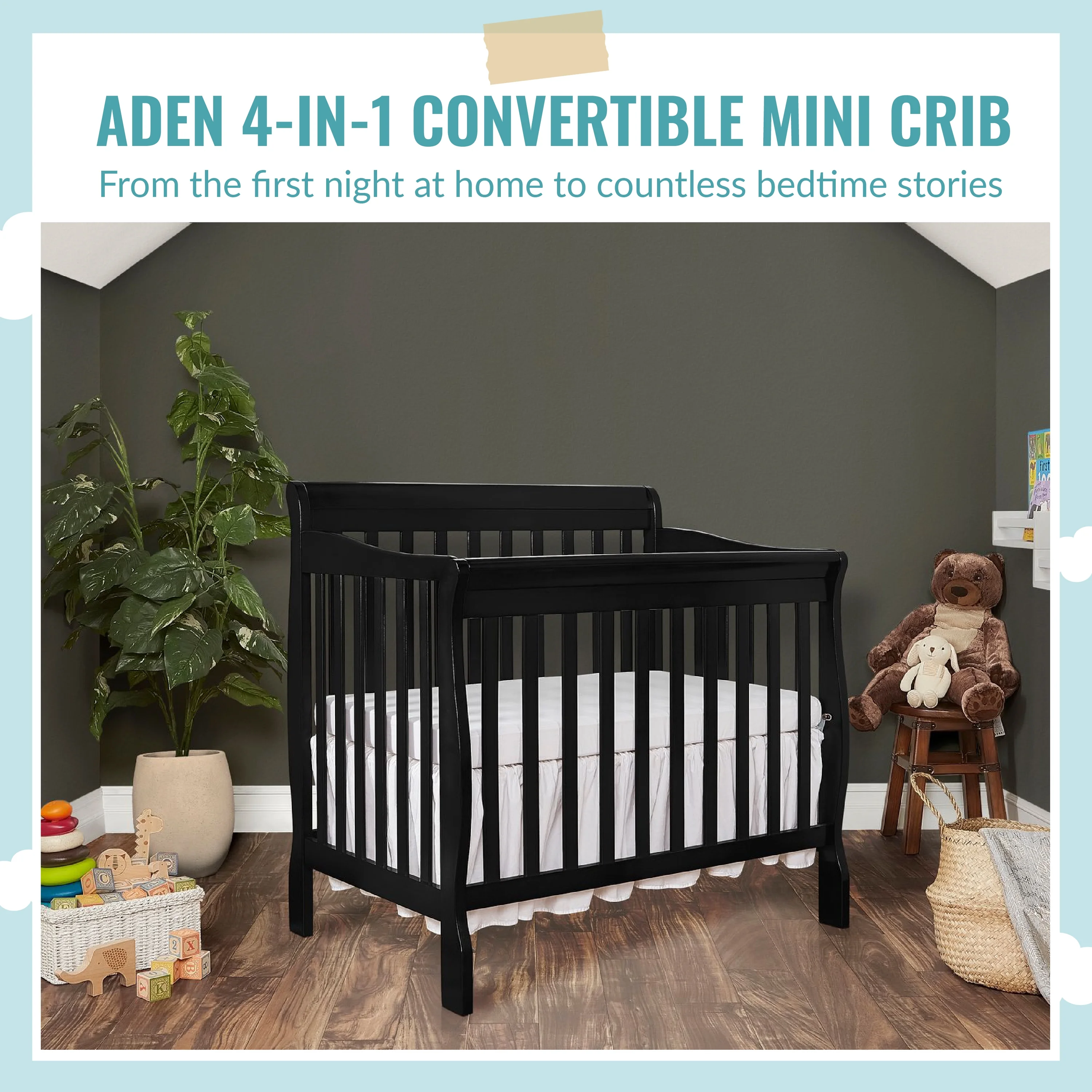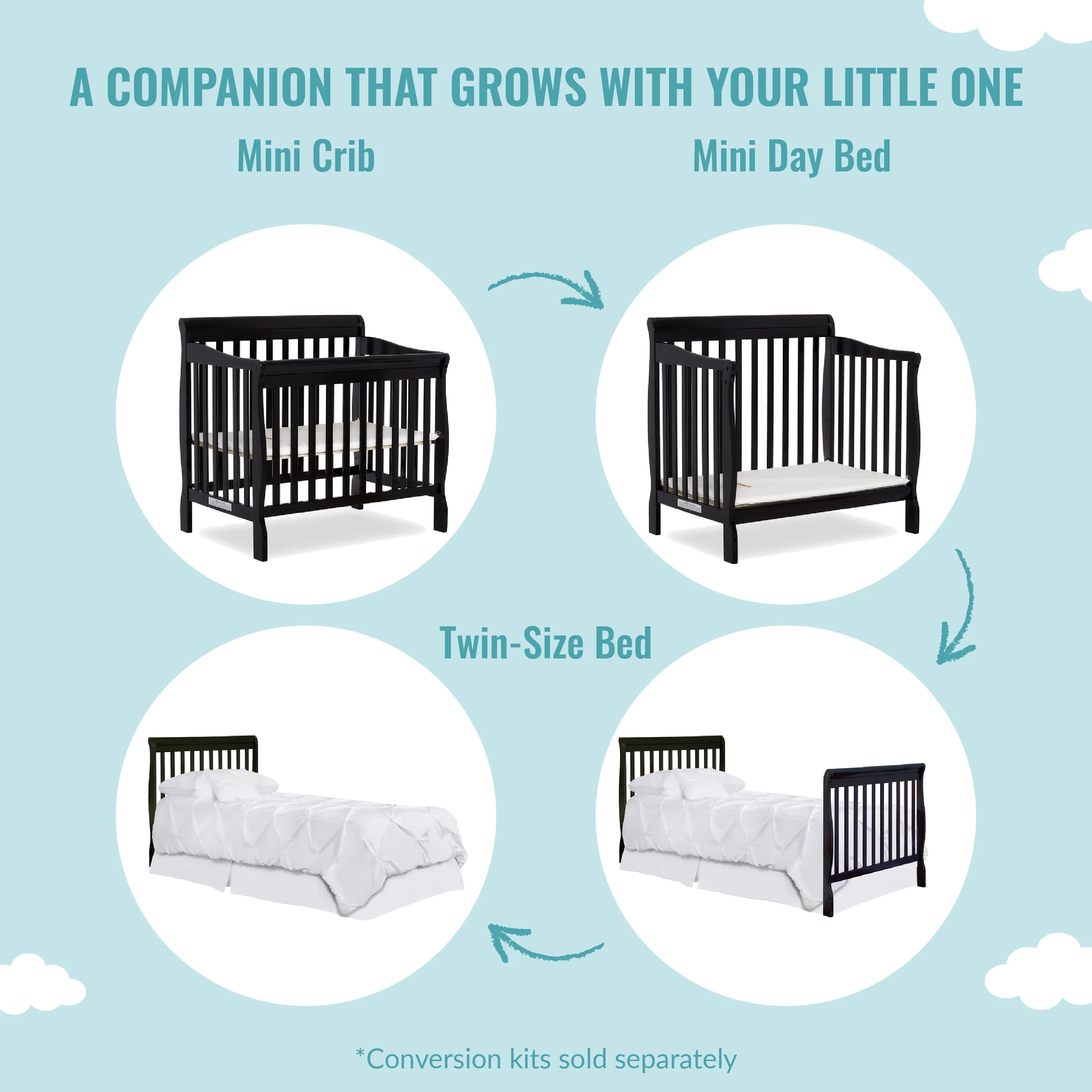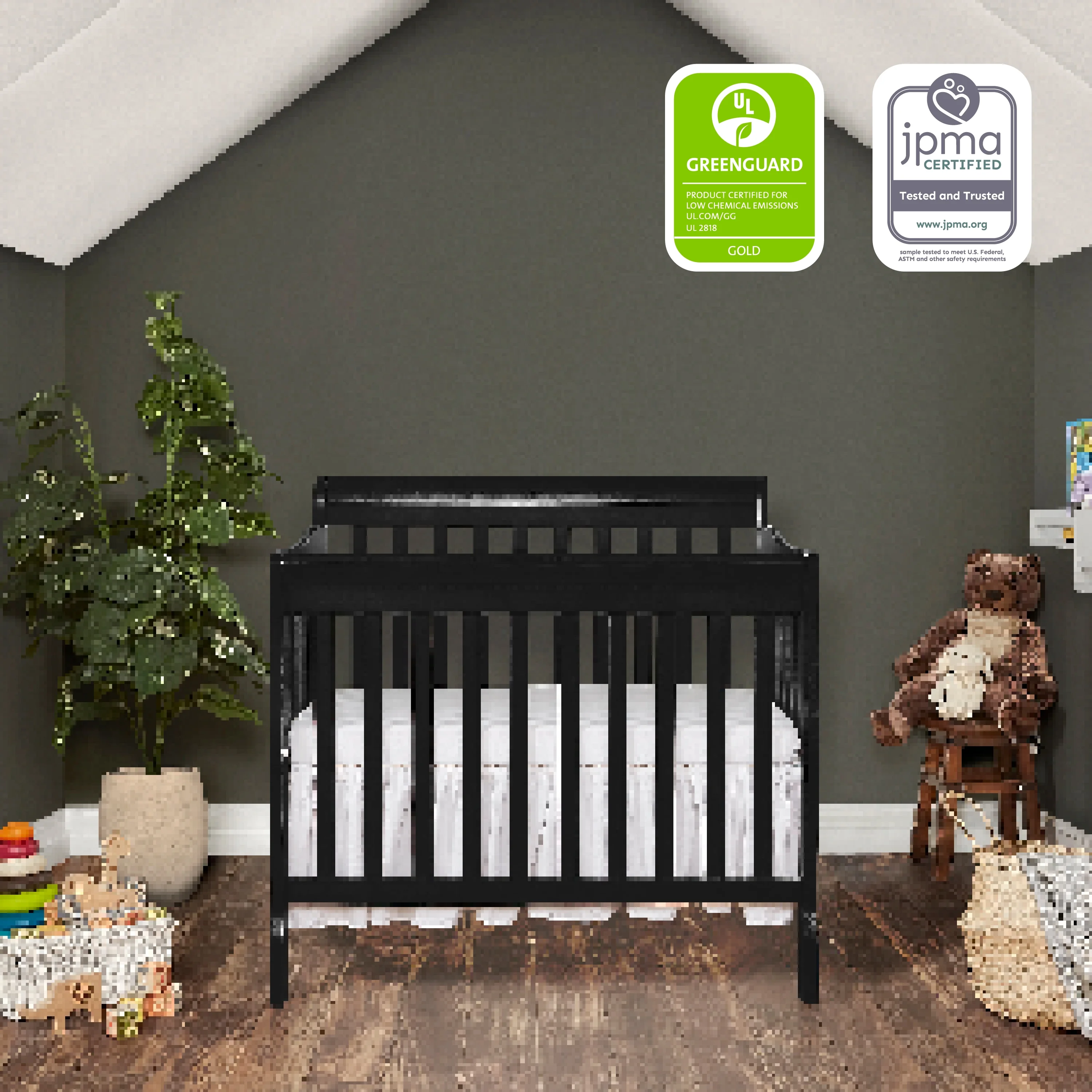 Dream On Me Aden 4-in-1 Convertible Mini Crib In Black, Greenguard Gold Certified