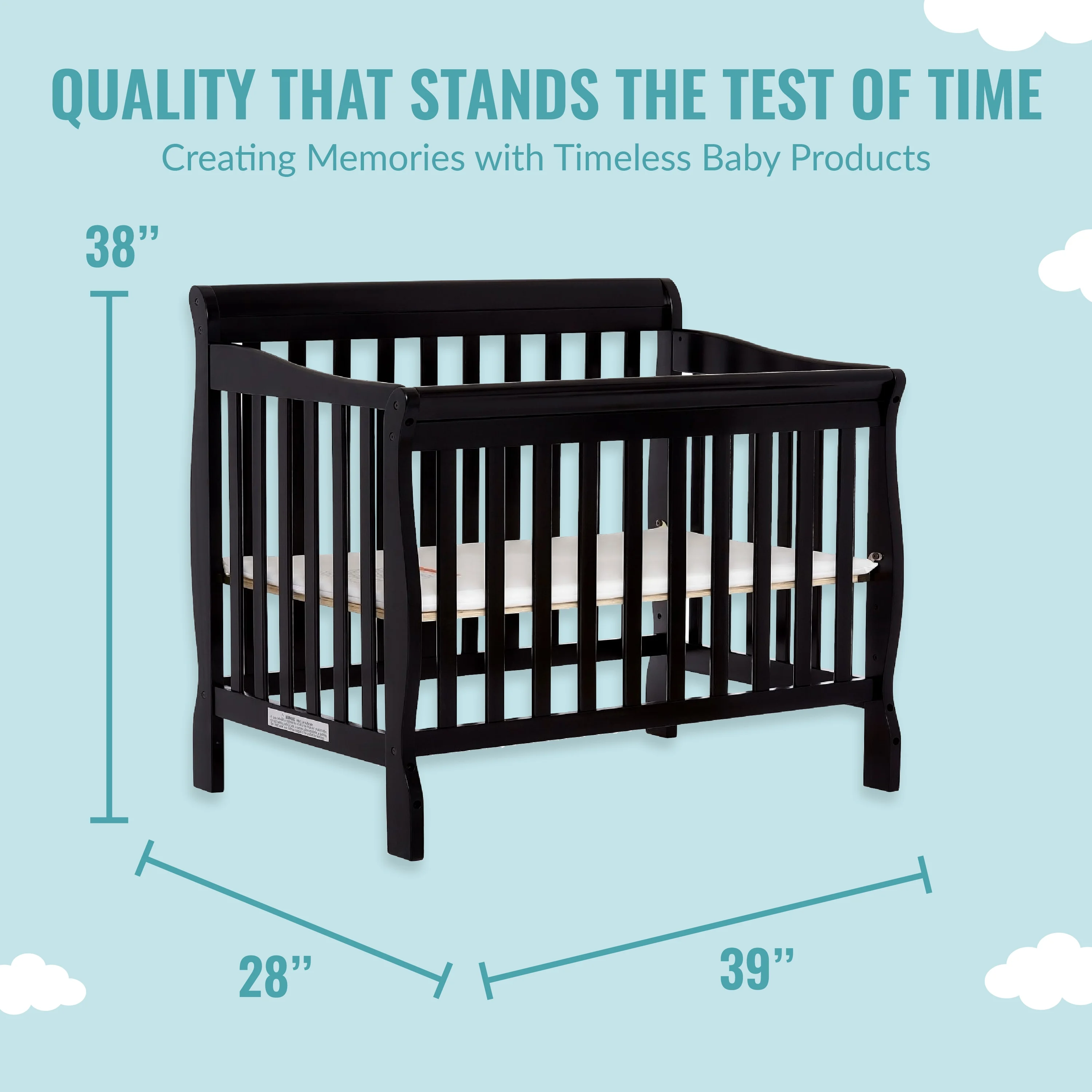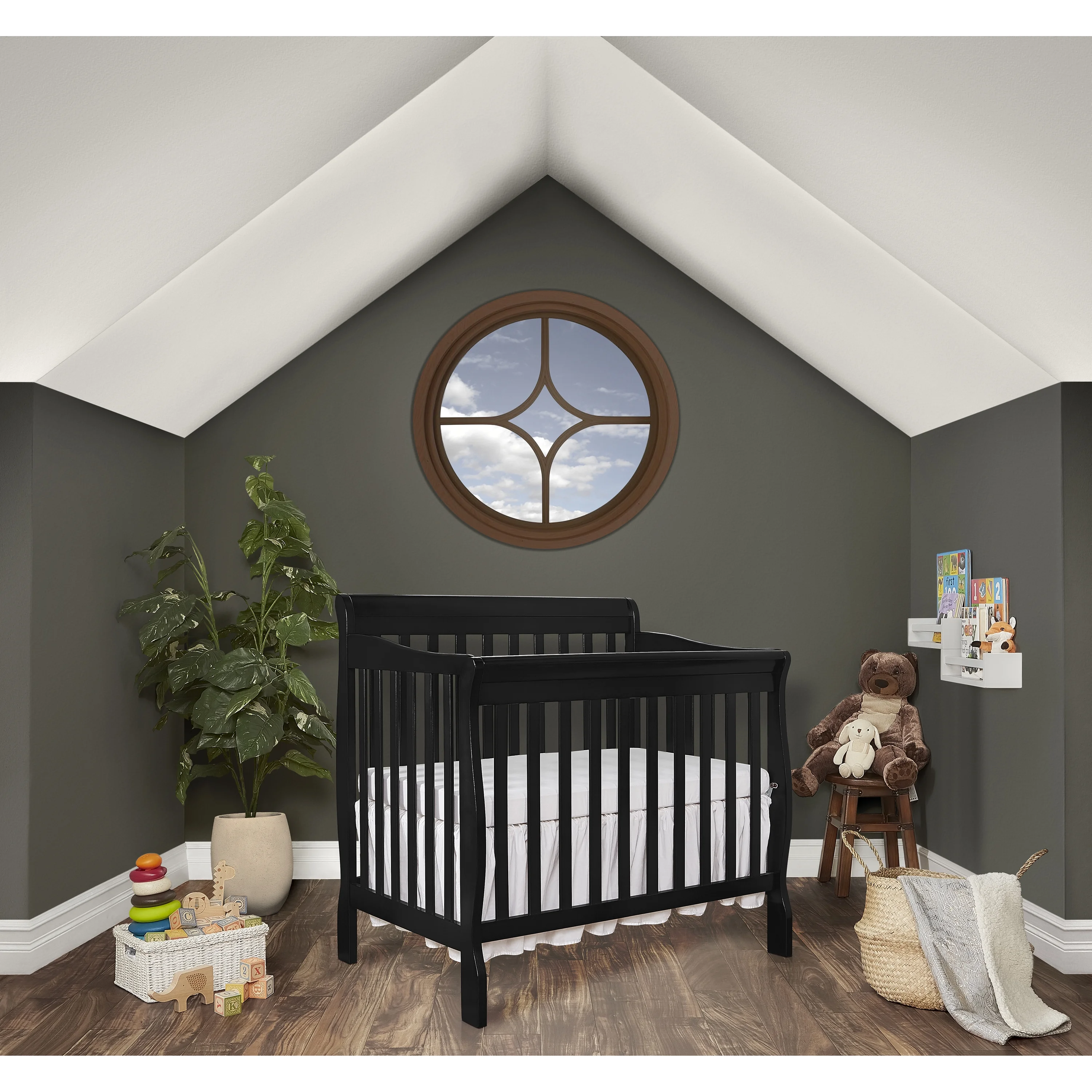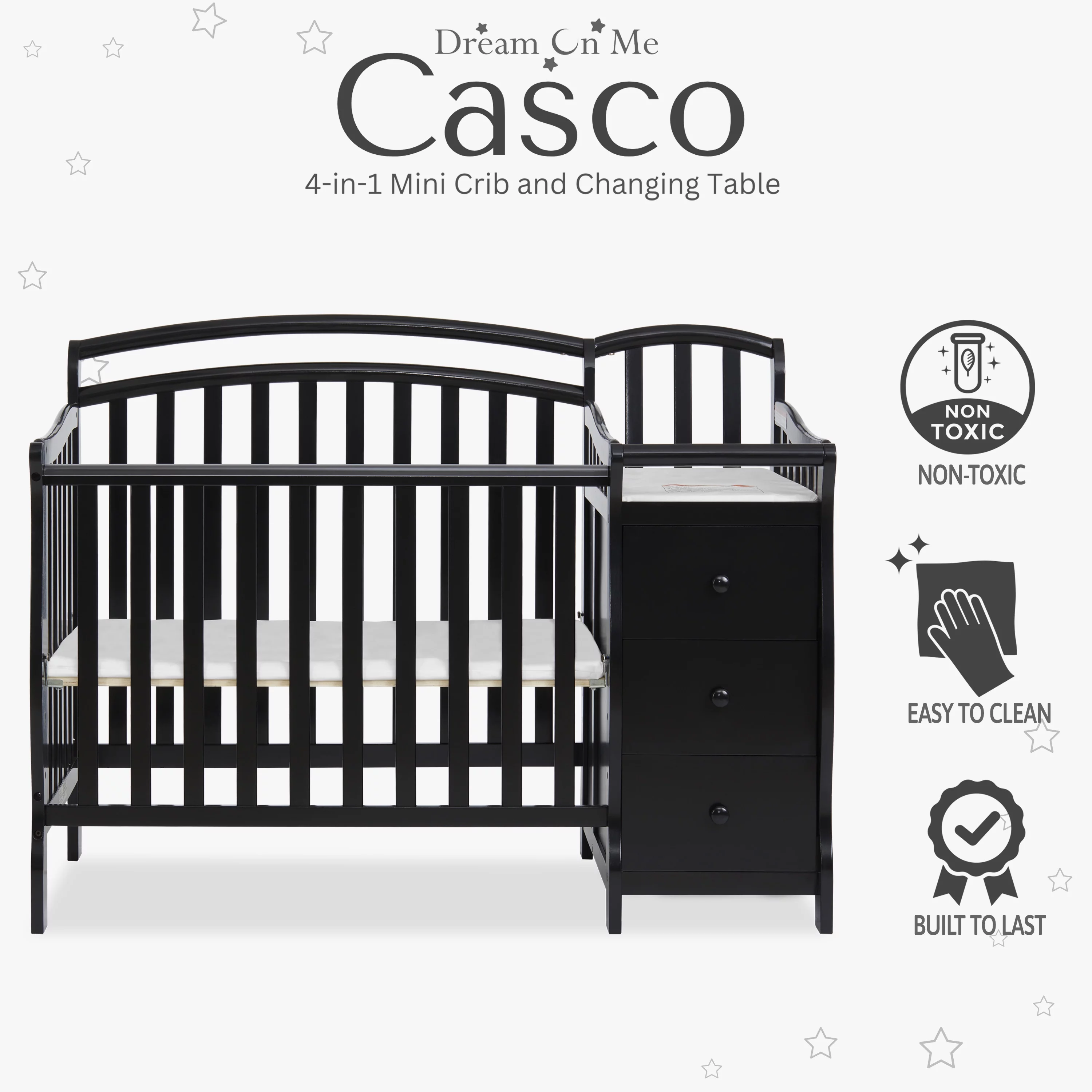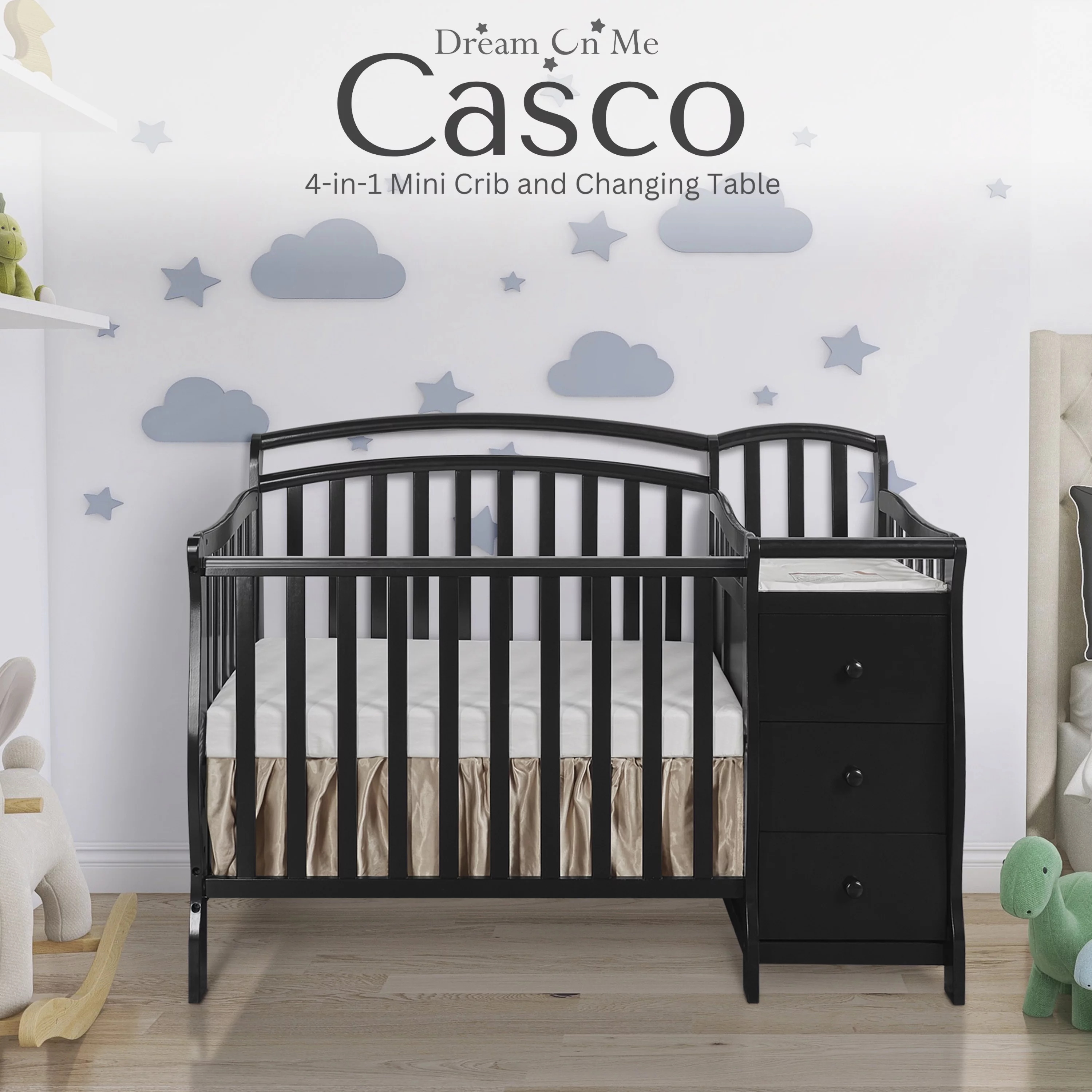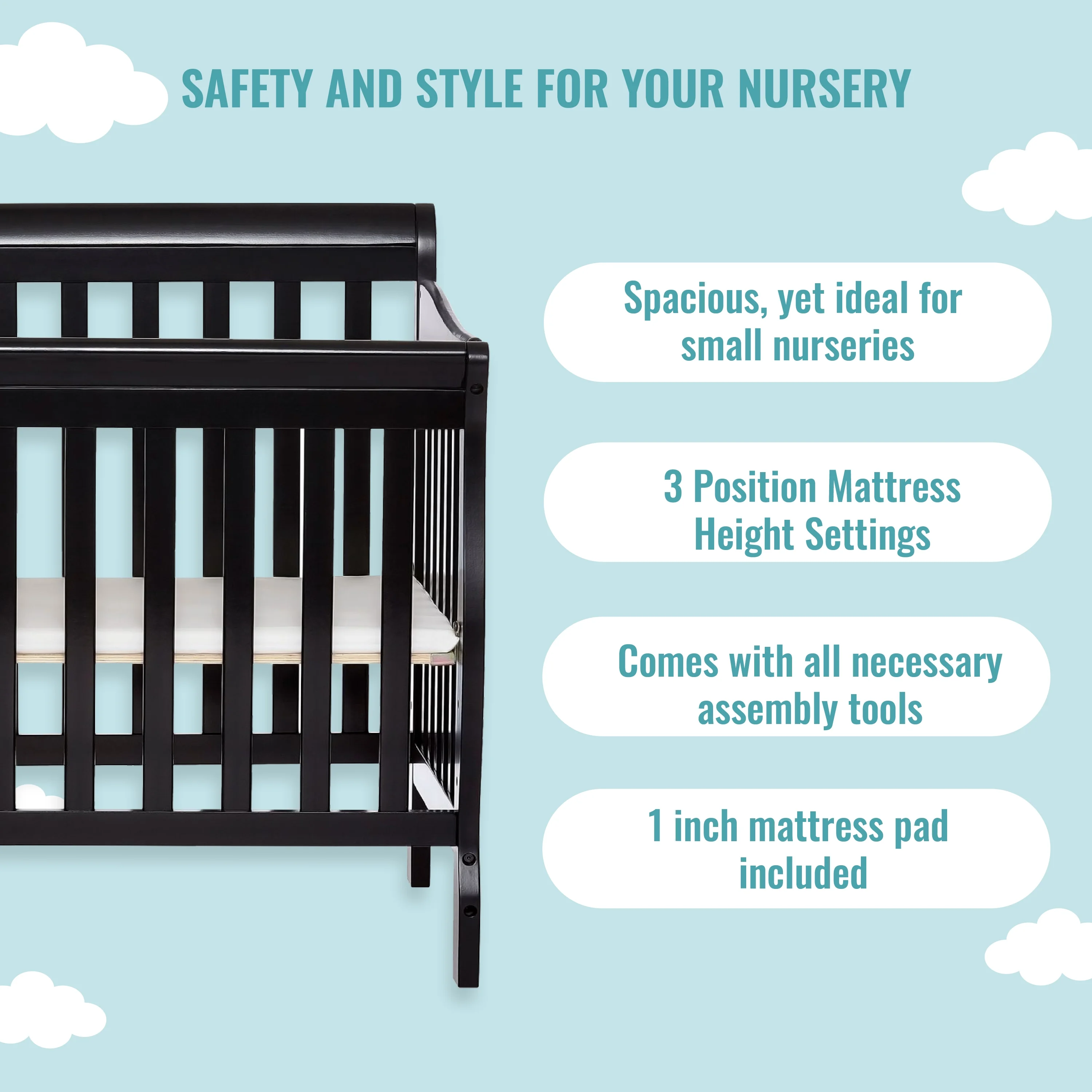 Dream On Me Aden 4-in-1 Convertible Mini Crib In Black, Greenguard Gold Certified