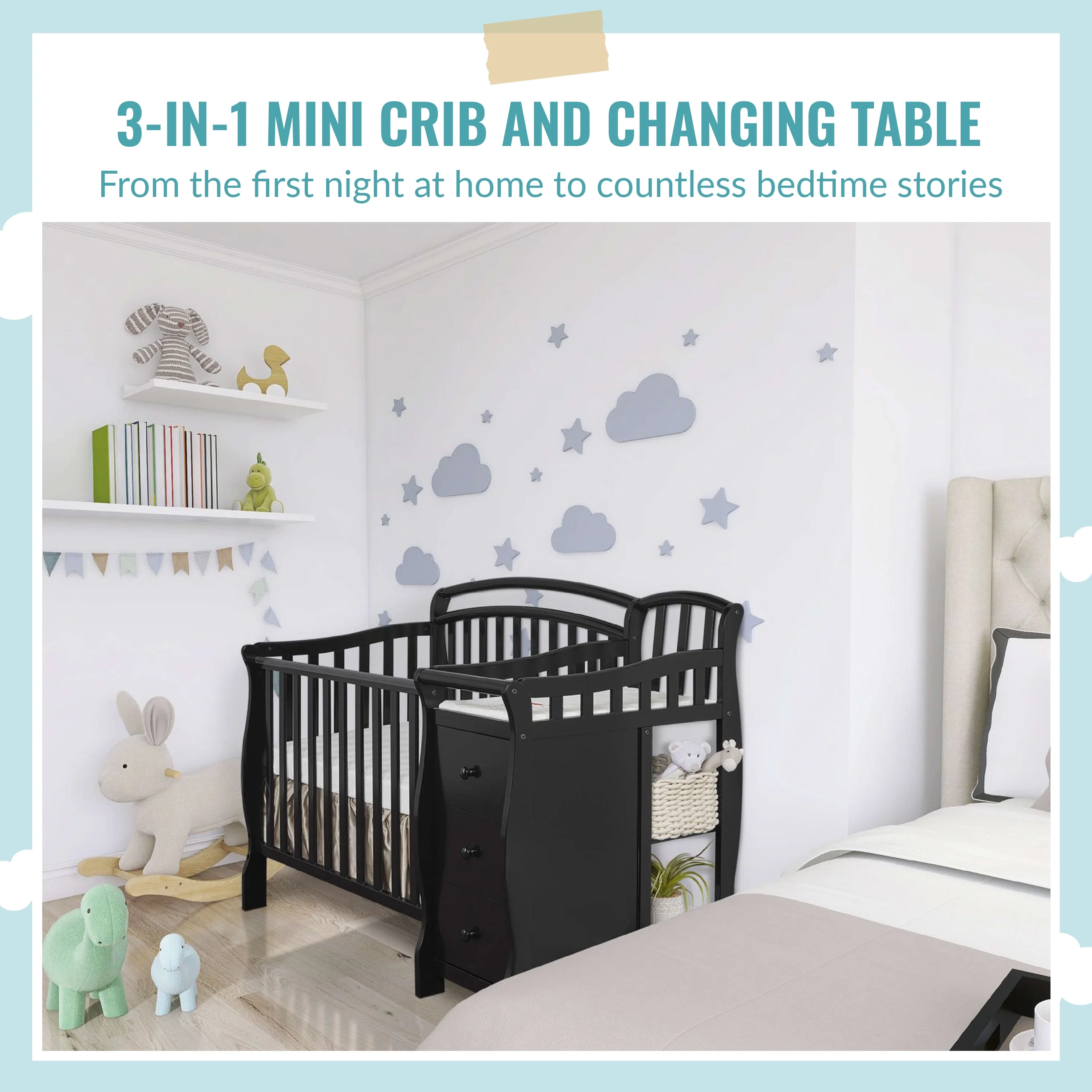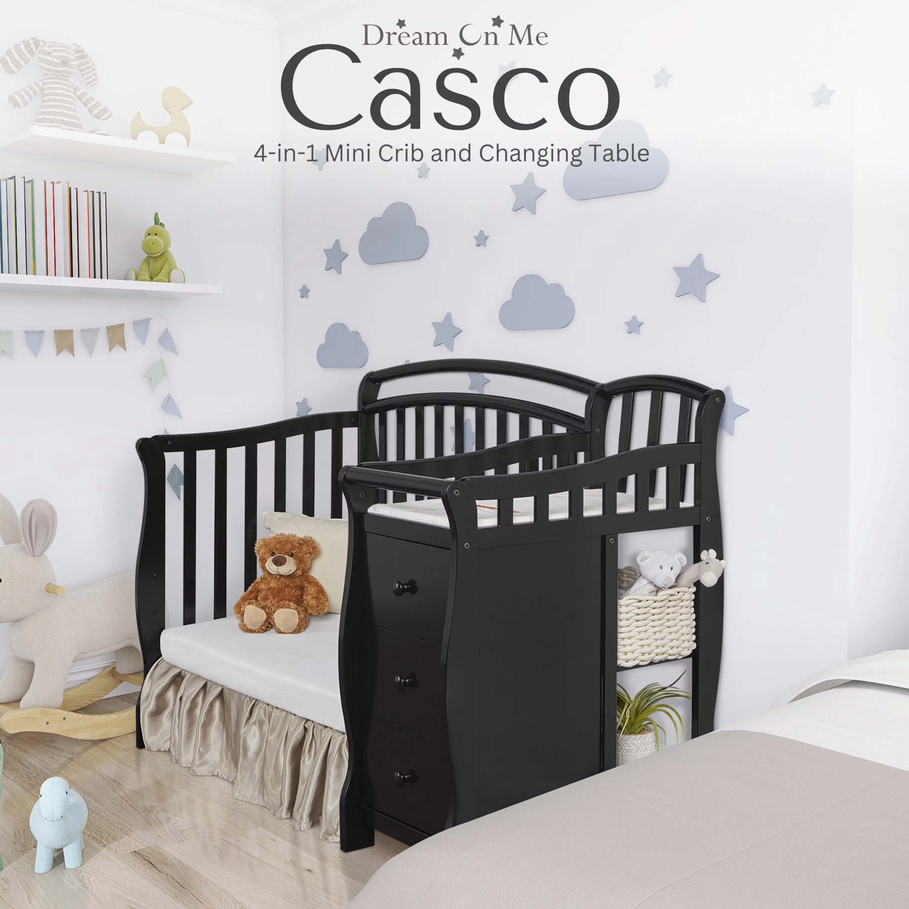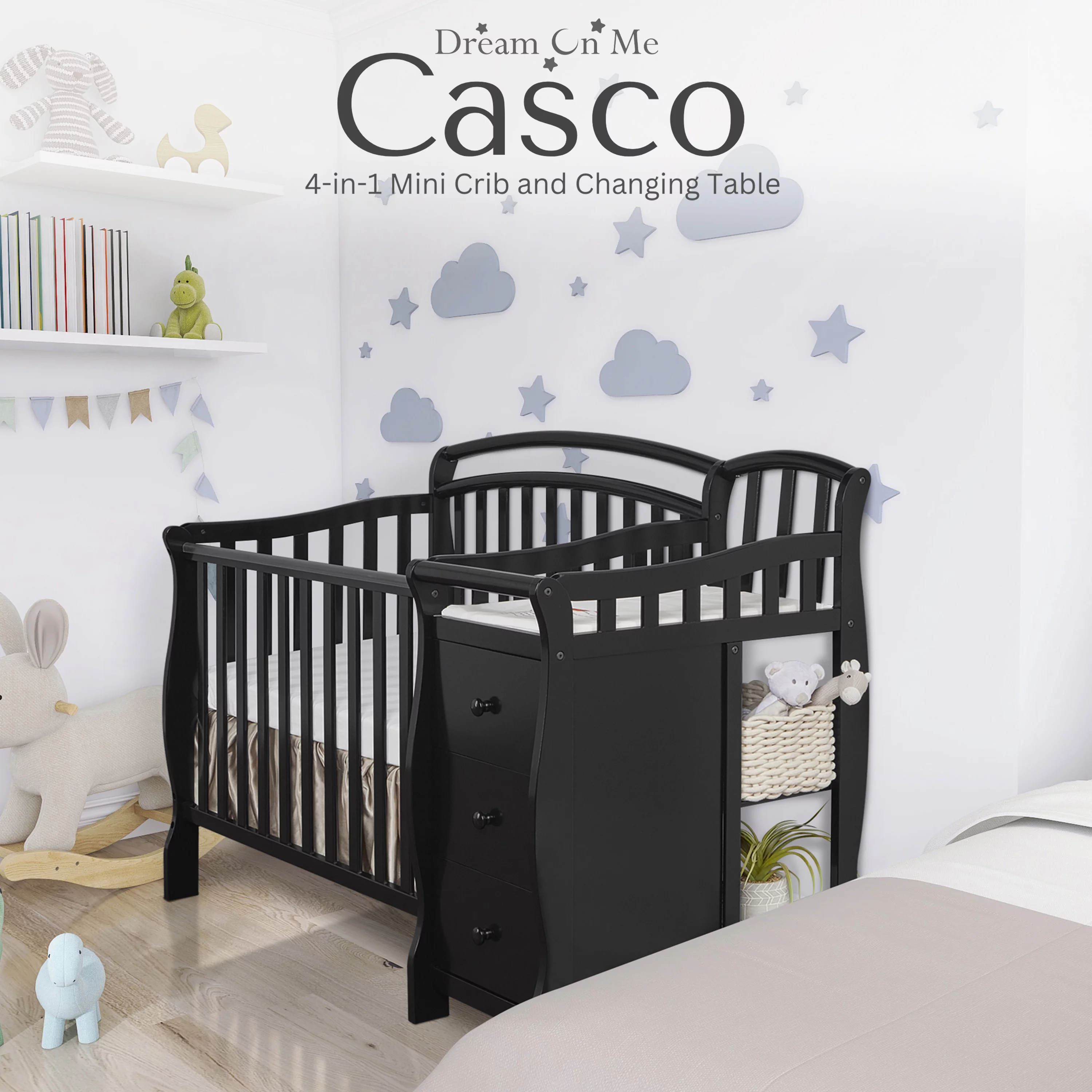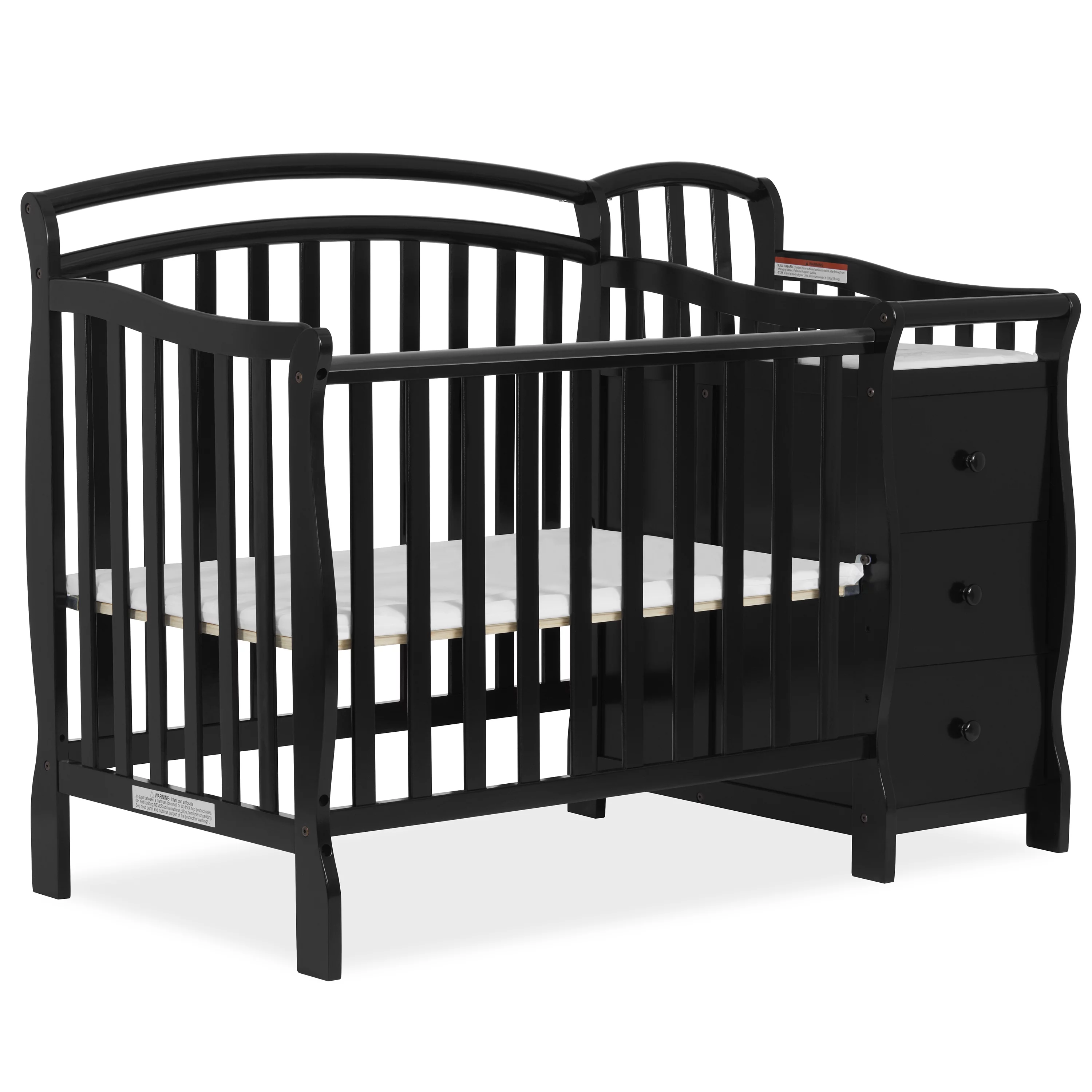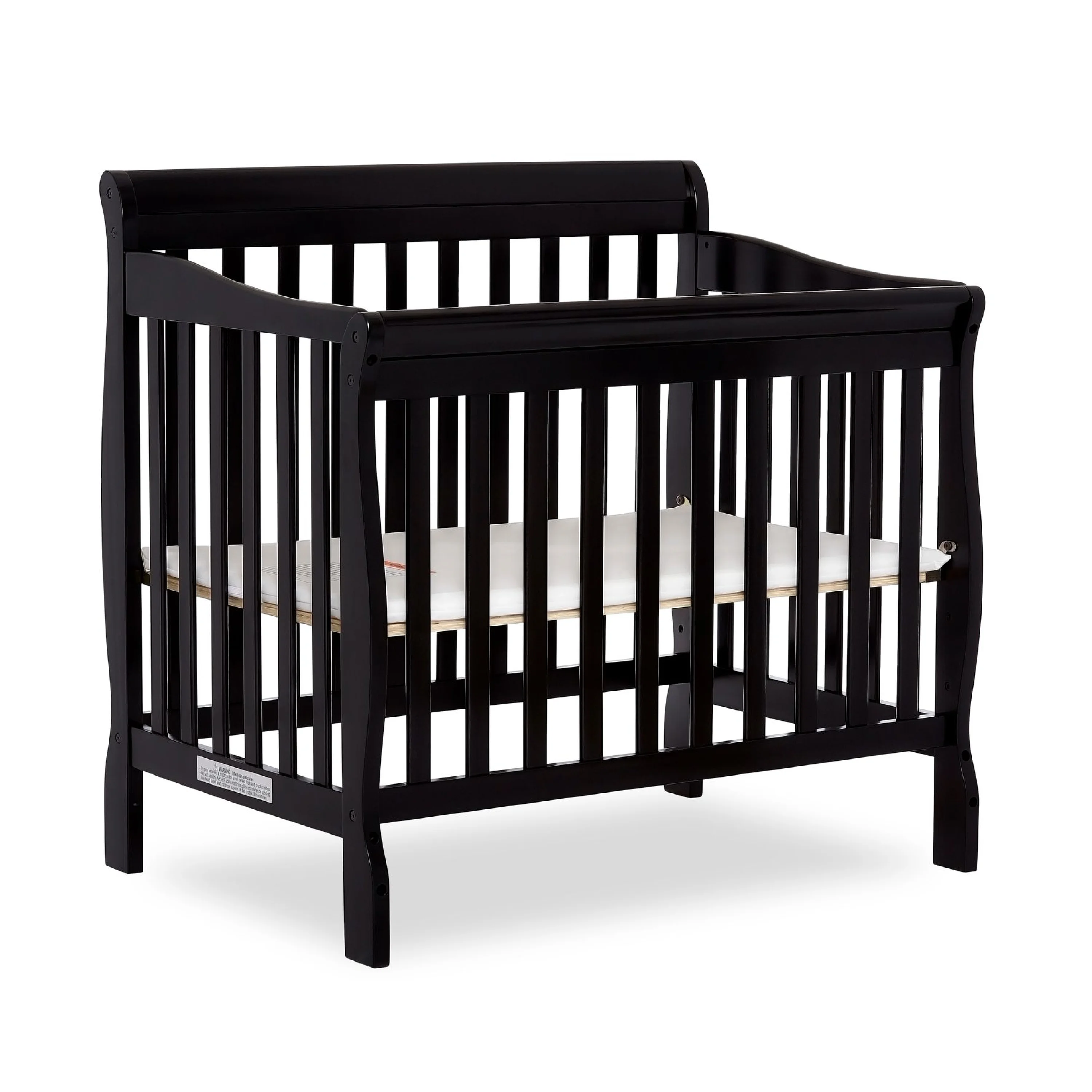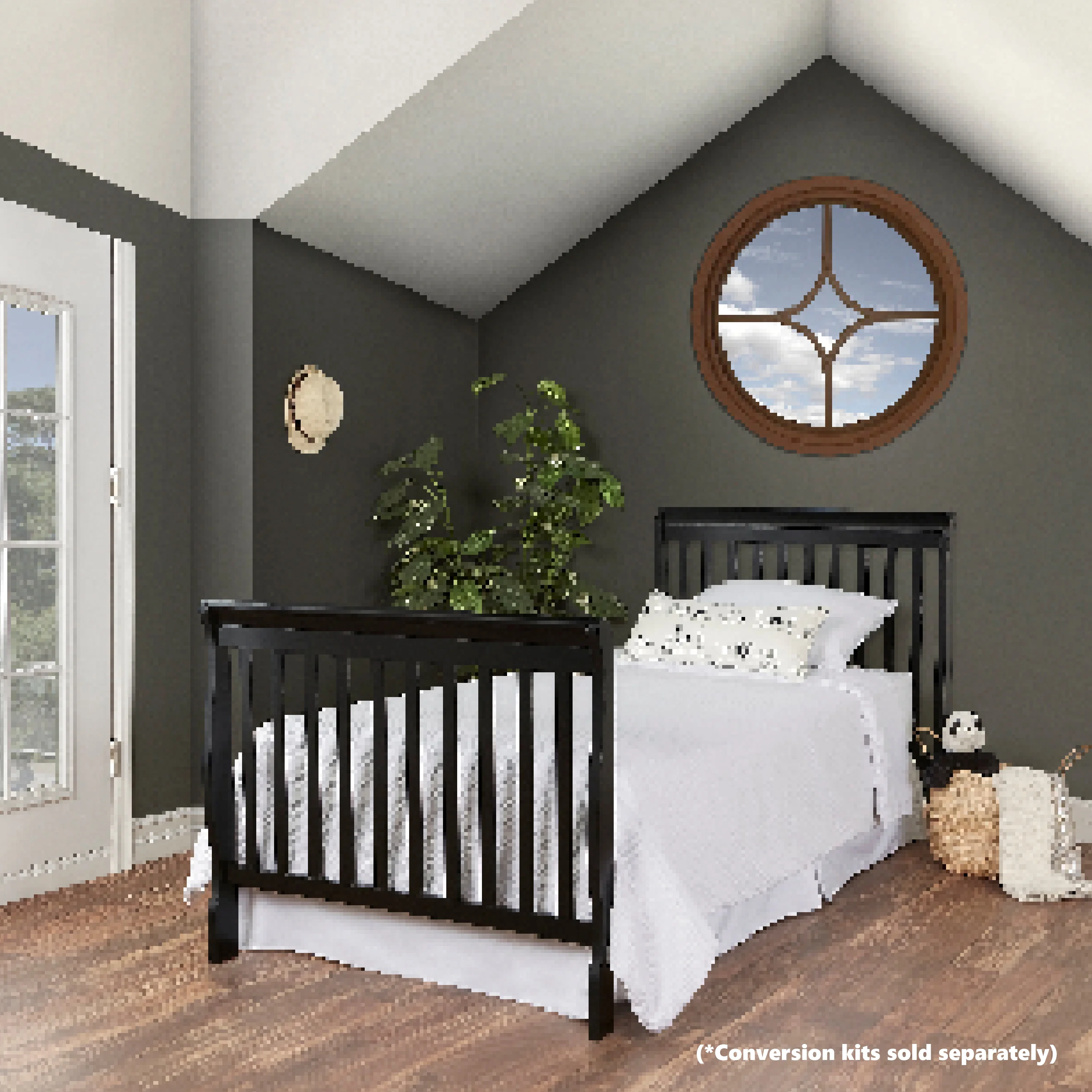 Dream On Me Aden 4-in-1 Convertible Mini Crib In Black, Greenguard Gold Certified