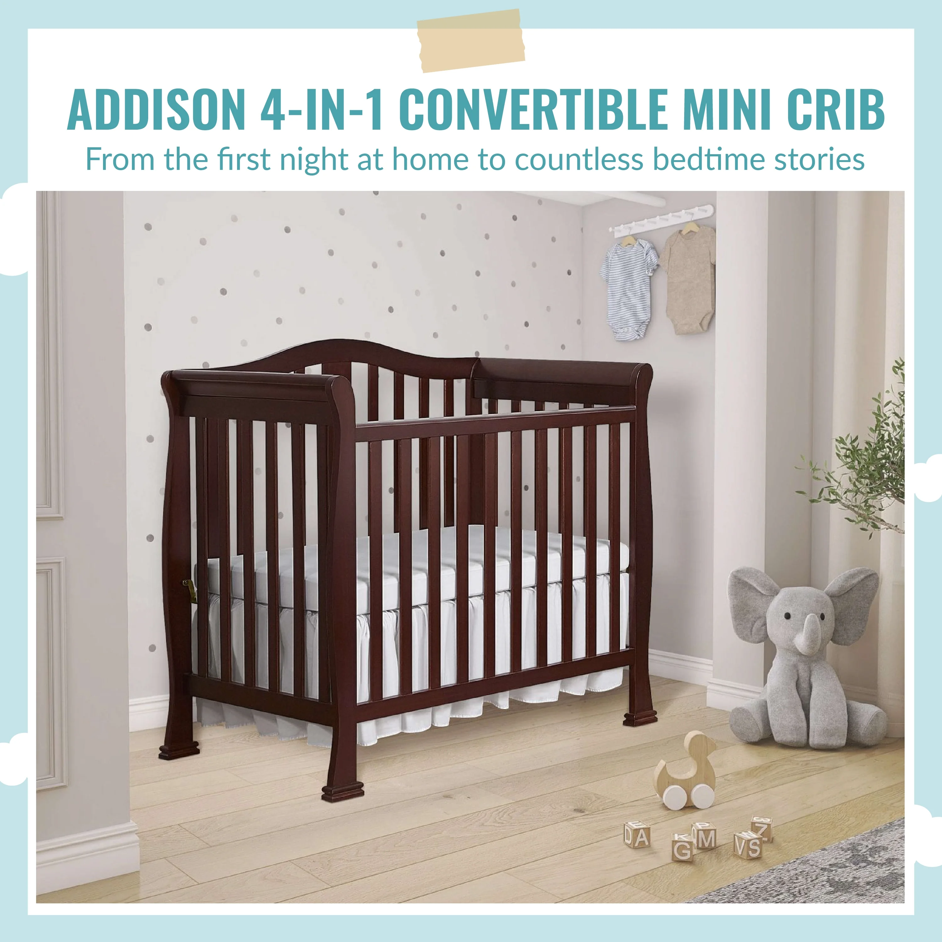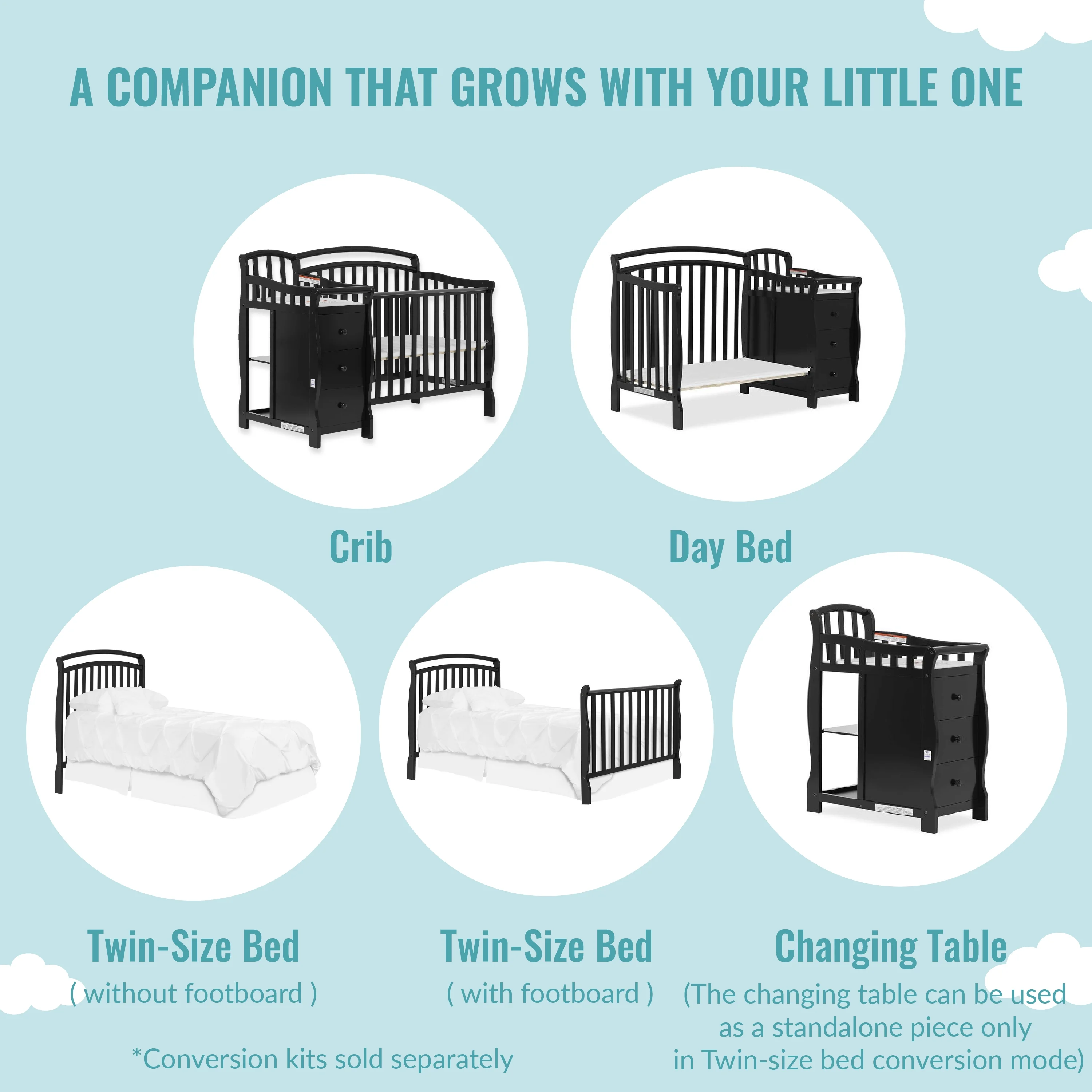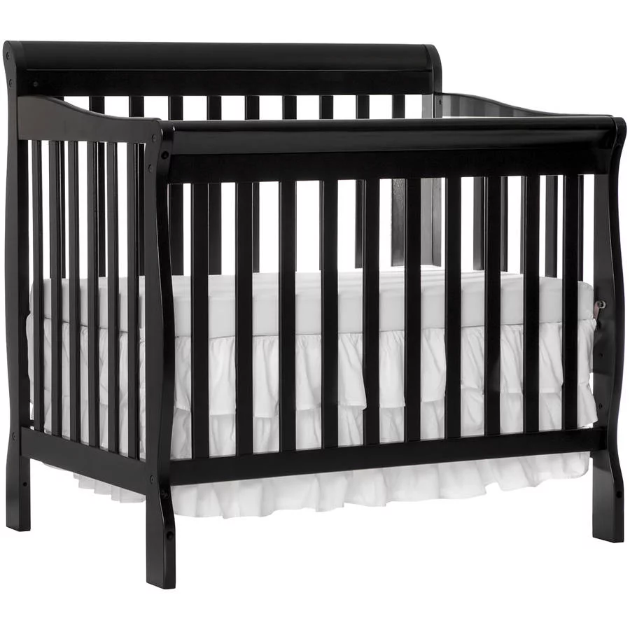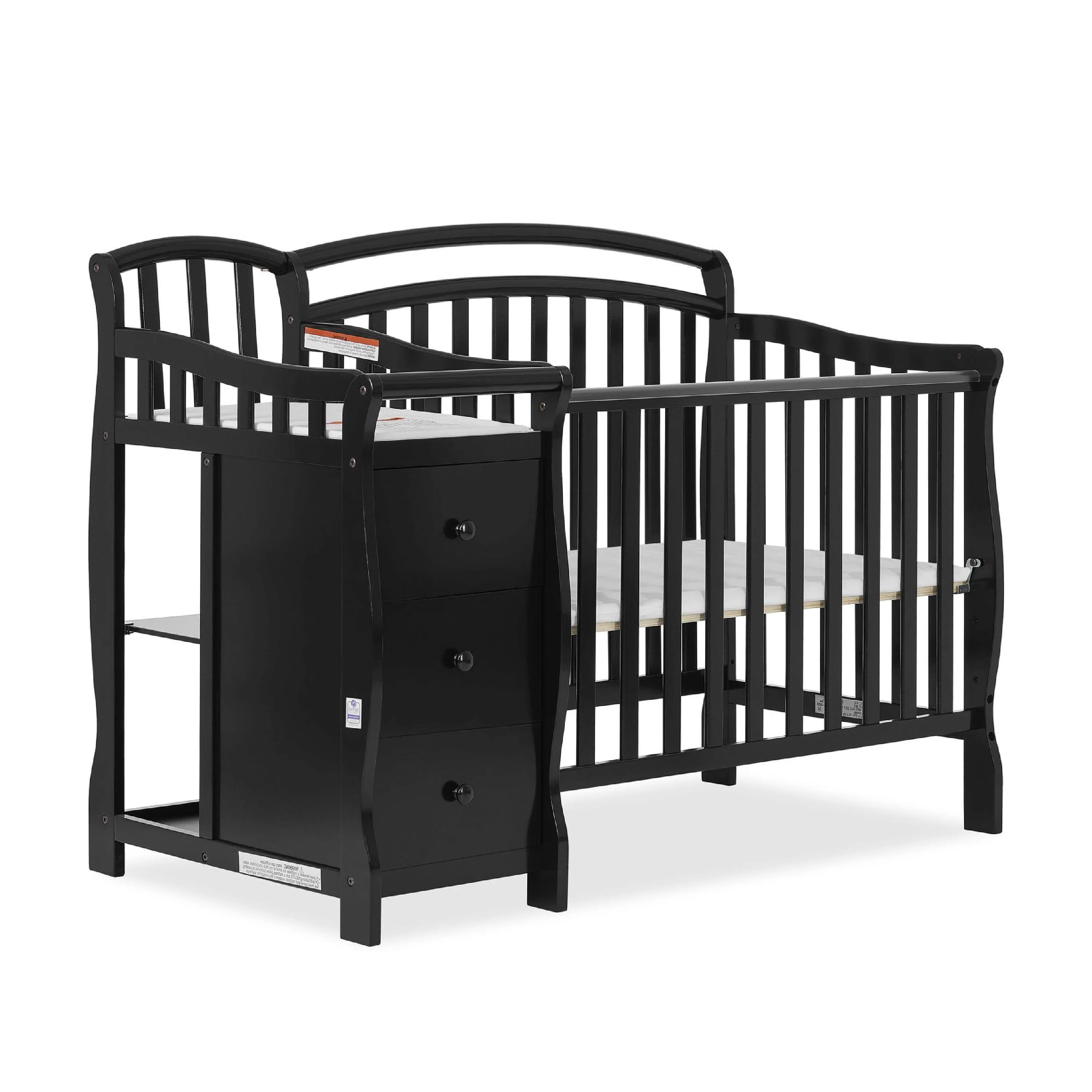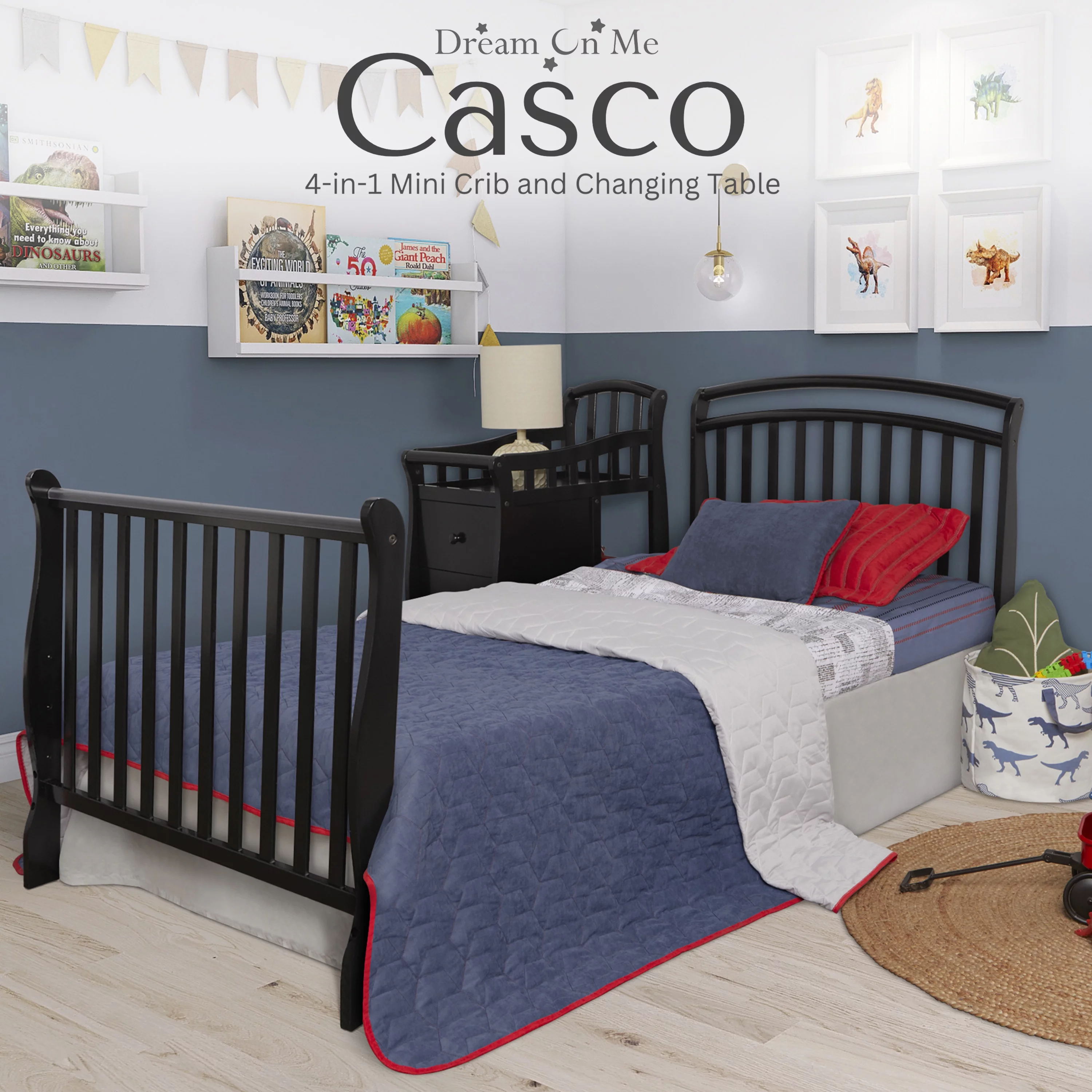 Dream On Me Aden 4-in-1 Convertible Mini Crib In Black, Greenguard Gold Certified