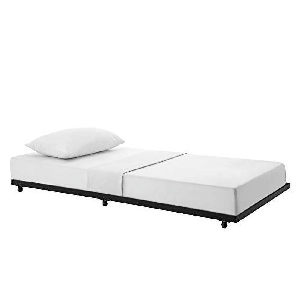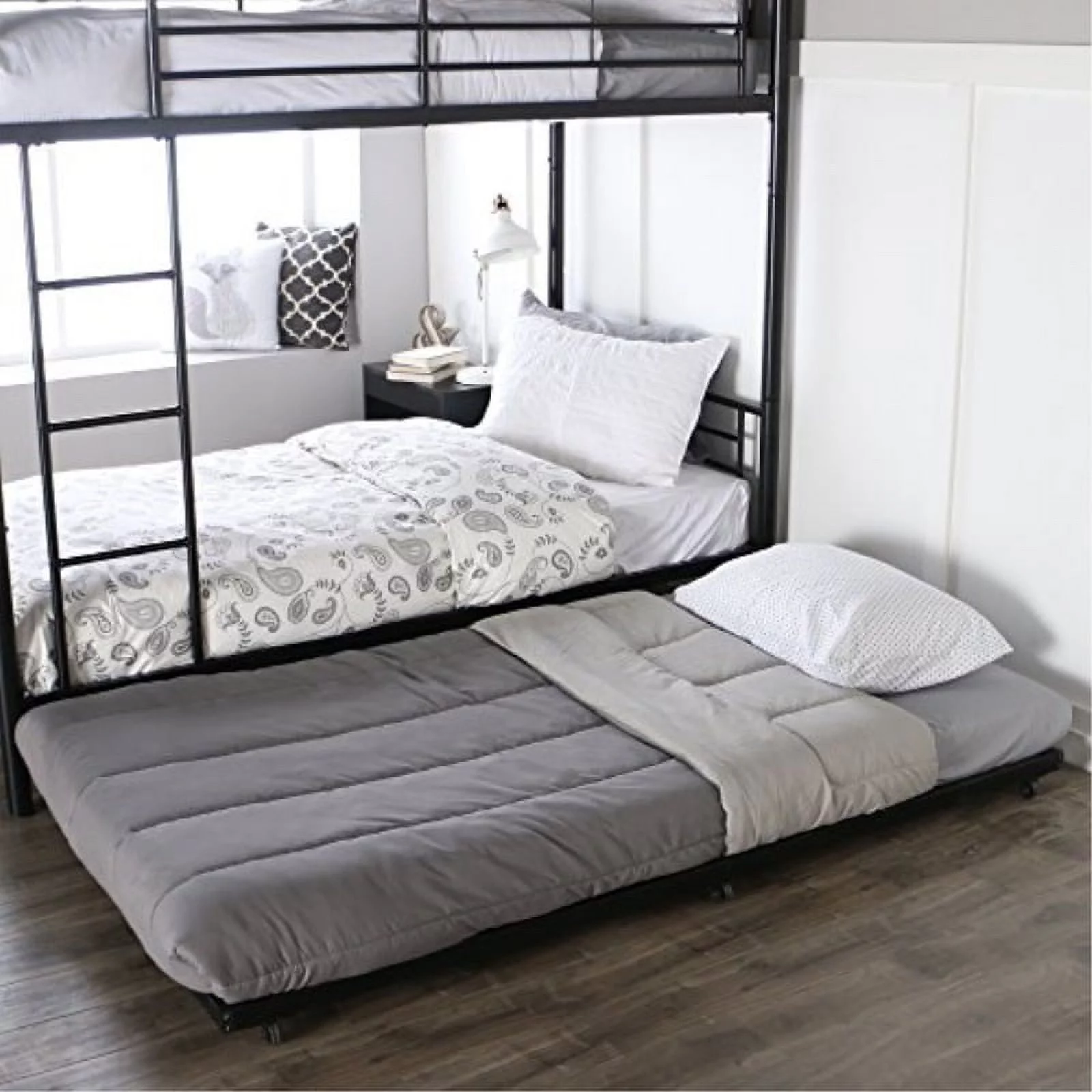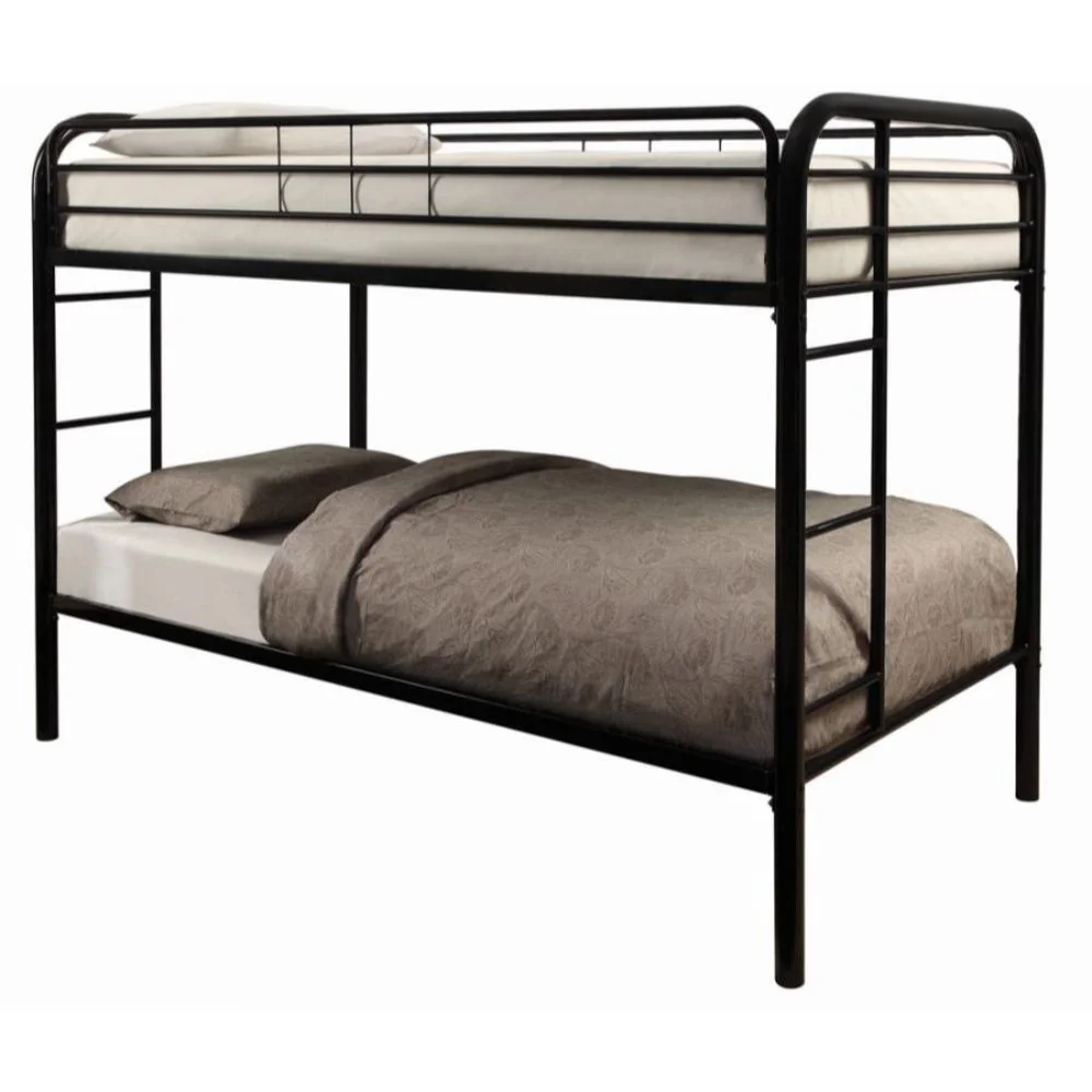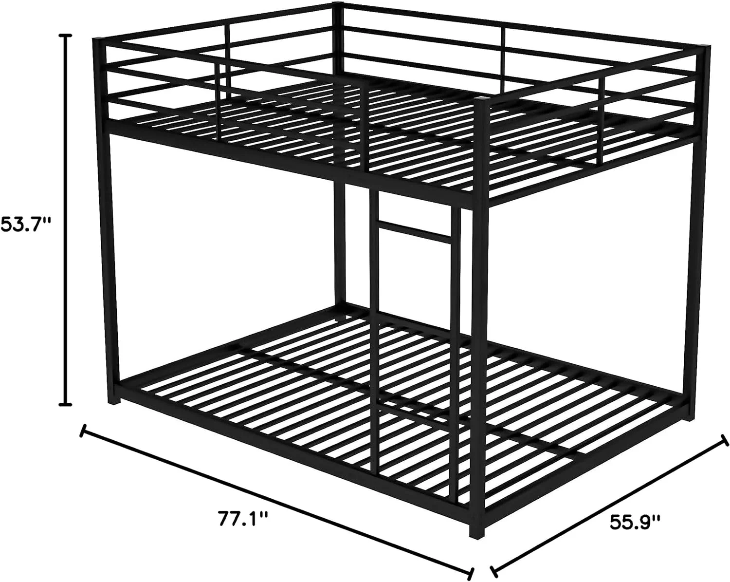 Leadzm Full over Full Metal Bunk Bed, Low Bunk Bed with Ladder, Black