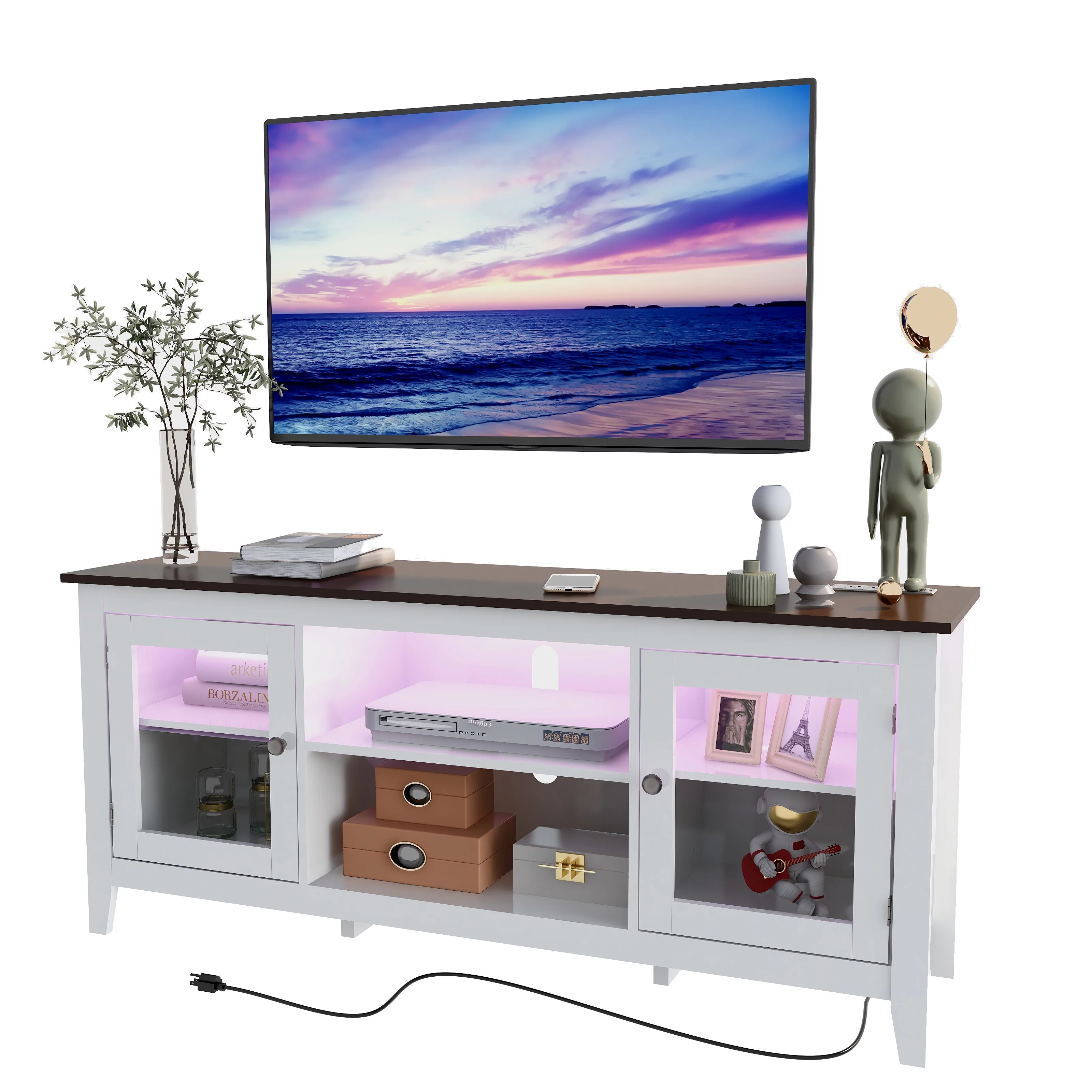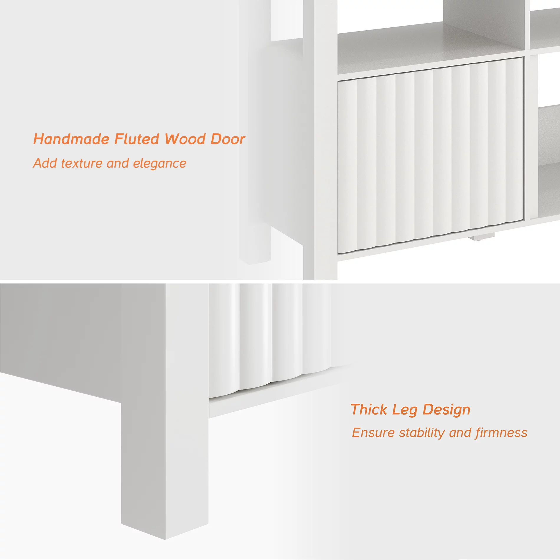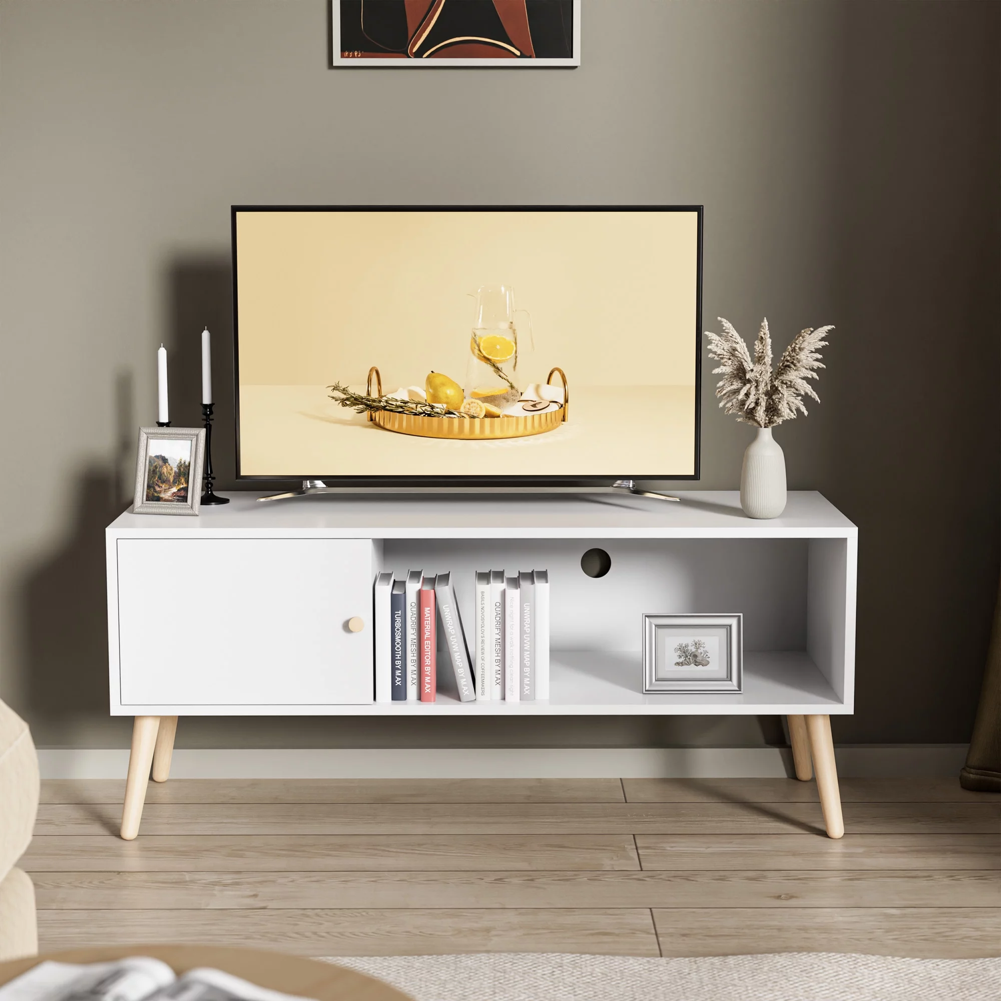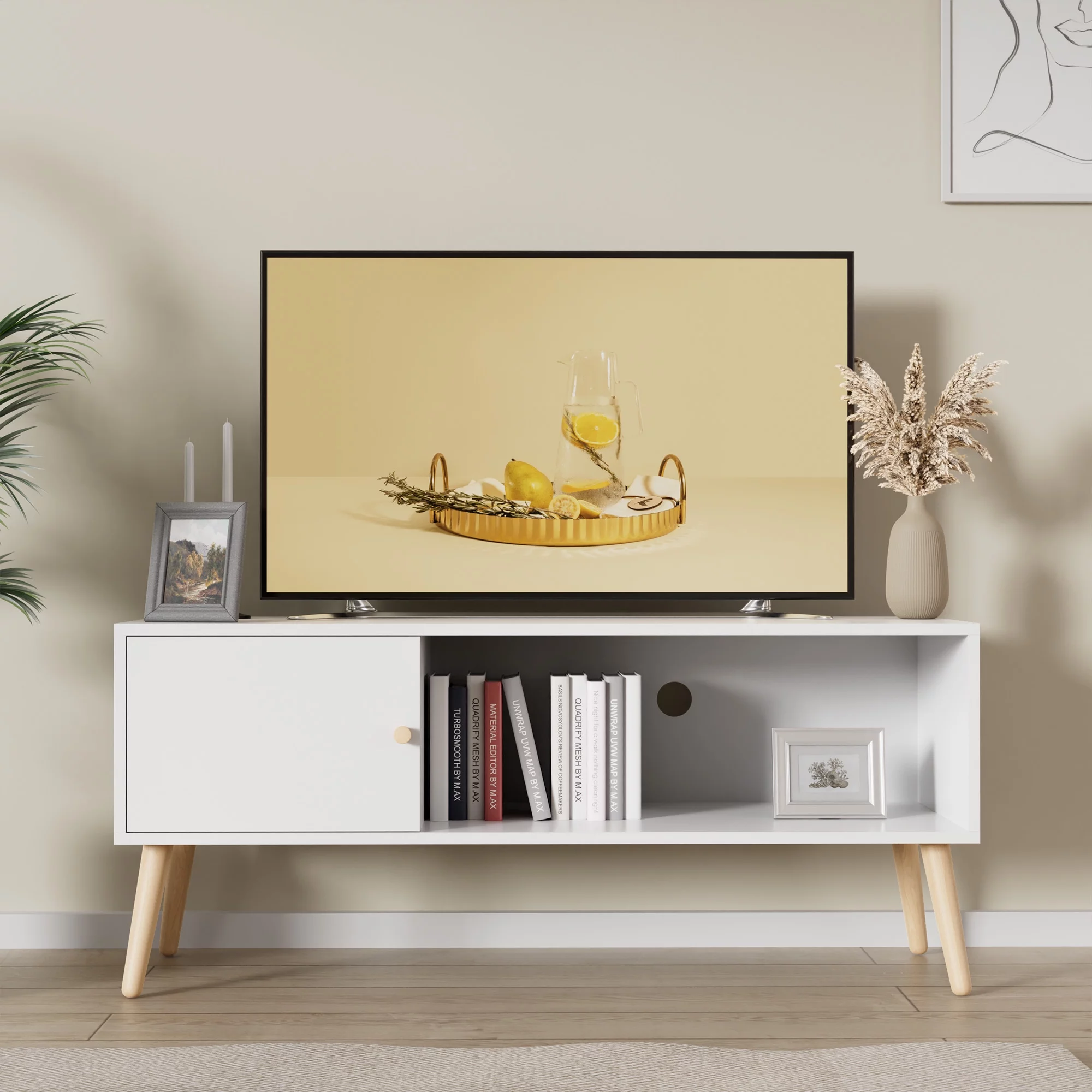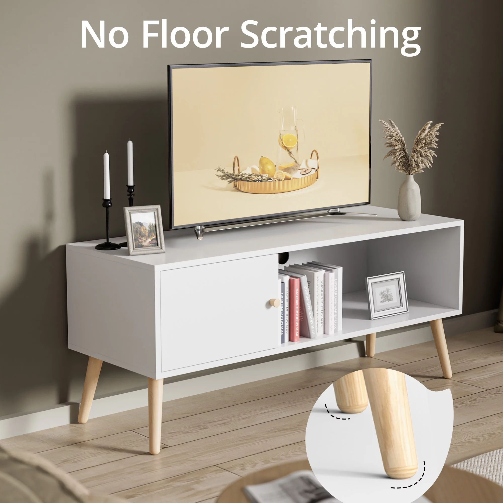 Mid-Century Modern TV Stand for TVs up to 75 inch Flat Screen Wood TV Console Media Cabinet with Storage